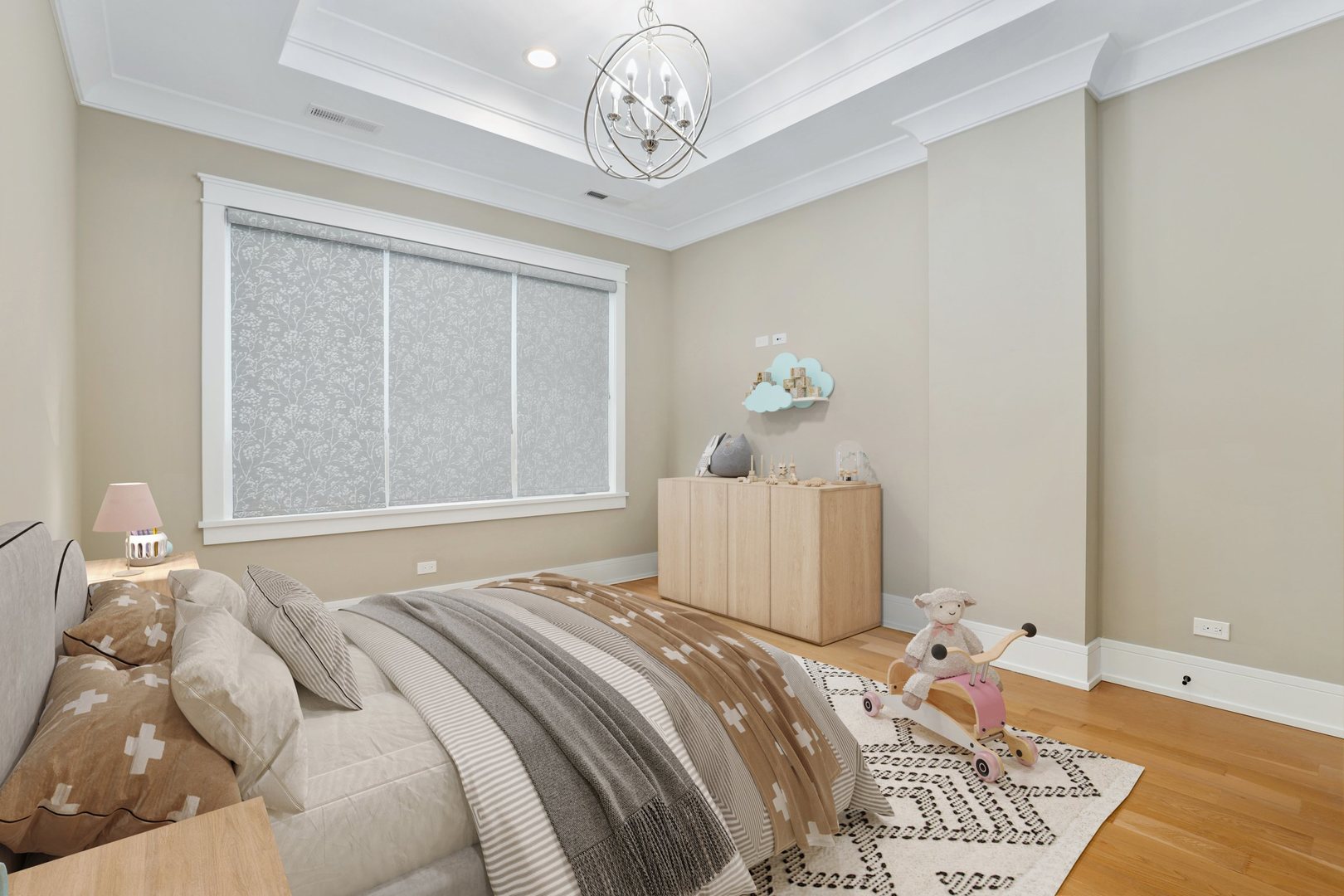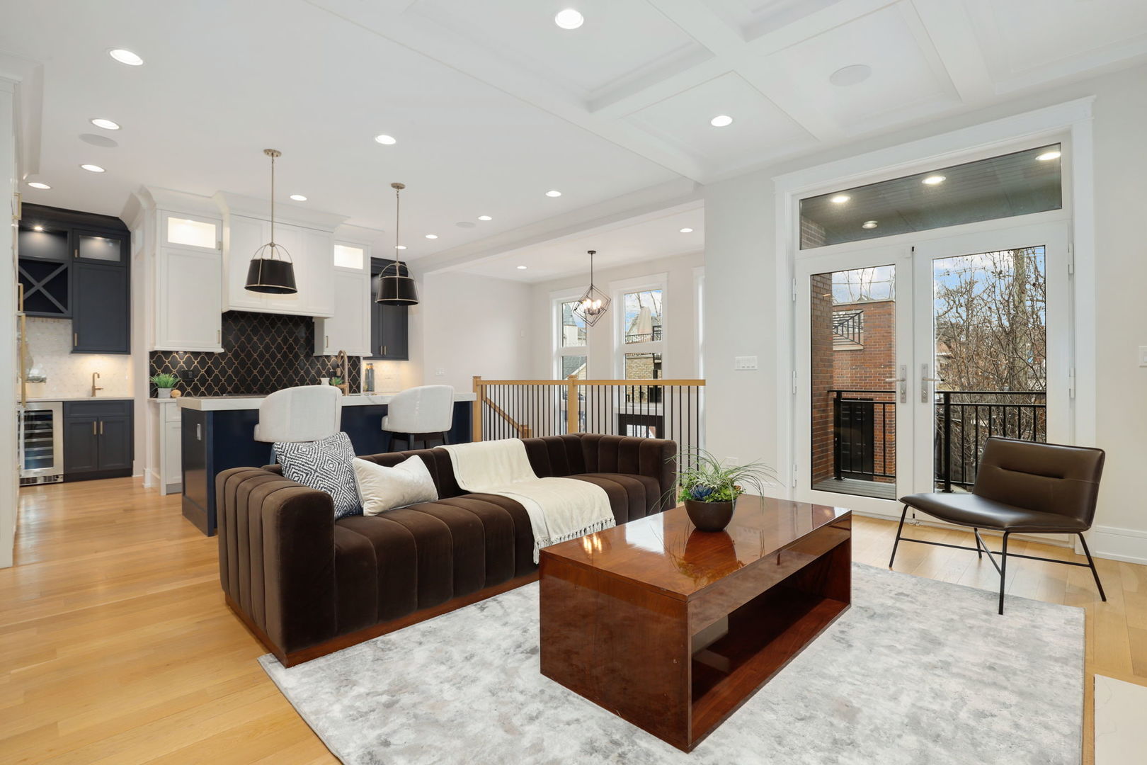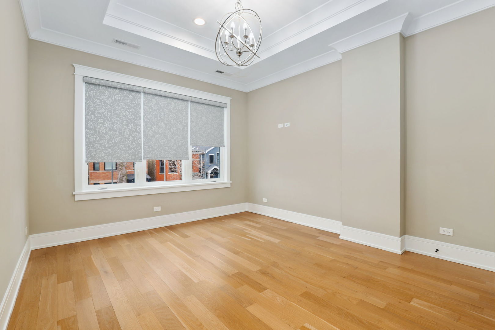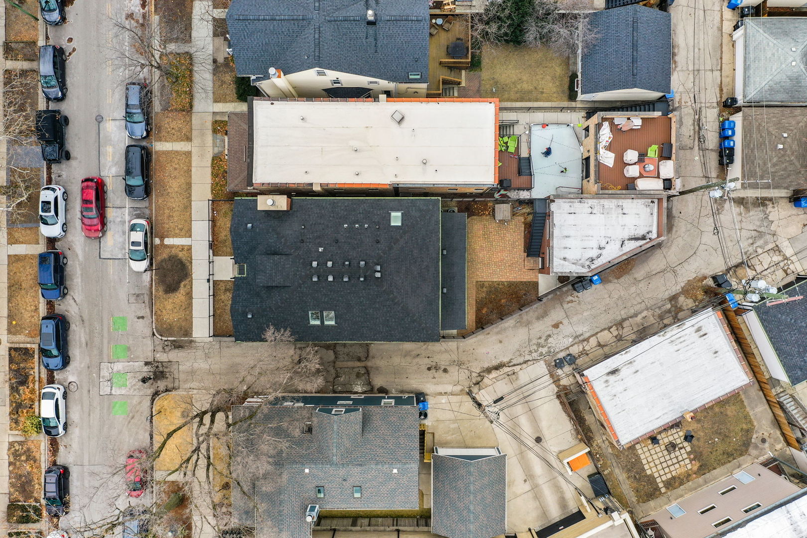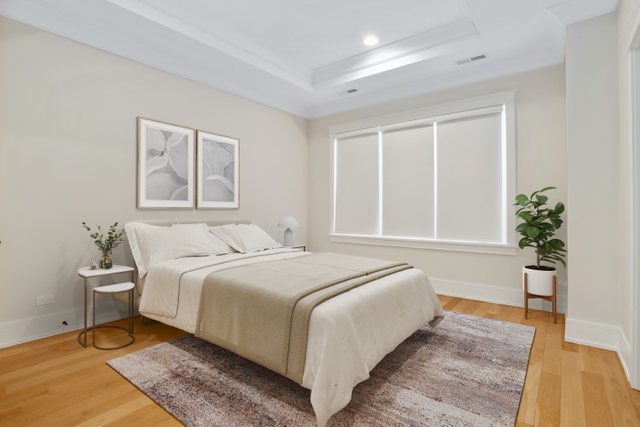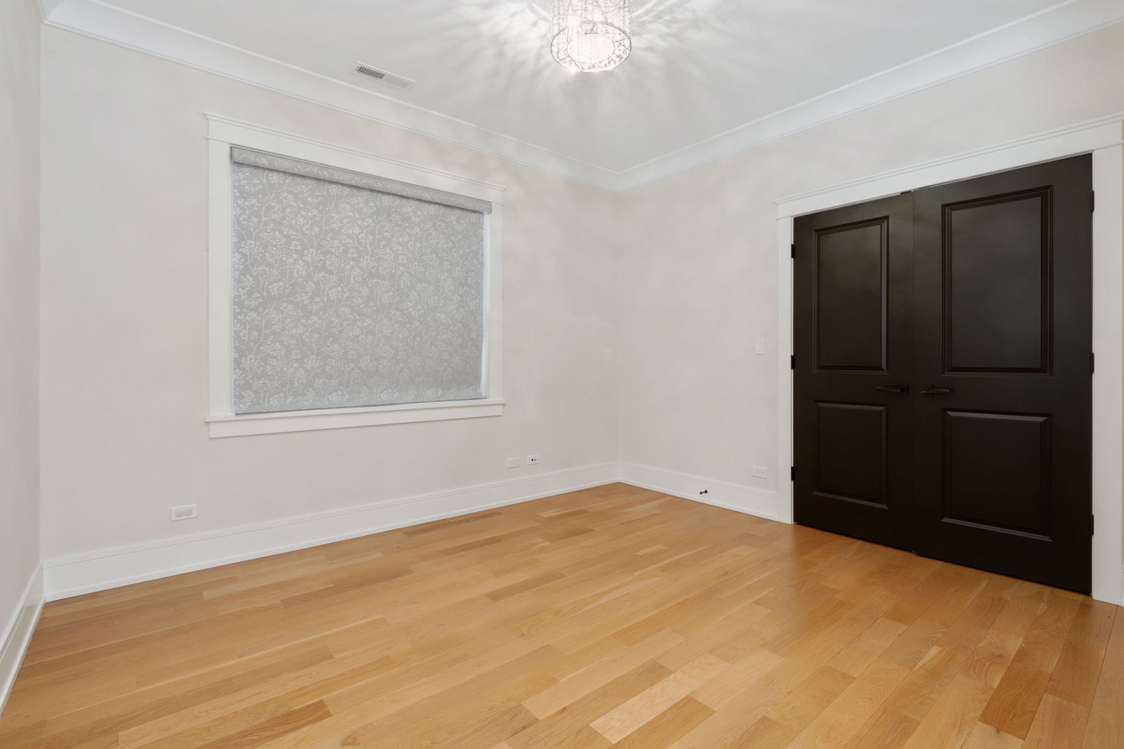 Welcome to this stunning, modern, and elegant all-brick single-family home, perfectly situated on a picturesque tree-lined street. Located on an extra-wide 38' corner lot in the esteemed Bell School District, this 6-bedroom, 6-bath residence showcases exceptional attention to detail from the moment you step inside. Designed for both comfort and entertaining, the spacious and open floor plan features custom millwork, coffered ceilings, and an abundance of natural light. The gracious foyer leads to a sophisticated home office and formal dining area, setting the tone for refined living. The gourmet chef's kitchen is a true showpiece, boasting custom cabinetry, quartz countertops, a large island, high-end Wolf appliances, a beautiful backsplash, a spacious pantry, and a wet bar with a wine chiller. This space seamlessly flows into the expansive family complete with a fireplace with a mantel, and built-in cabinetry. The luxurious primary suite is a private retreat, featuring a tray ceiling, dual walk-in closets, and a spa-like bathroom with a soaking tub, rainfall shower, heated floors, a double vanity, and a water closet. Three additional generously sized bedrooms upstairs offer ample closet space, along with the convenience of a large laundry room with a side-by-side washer and dryer. The lower level is designed for ultimate entertainment, featuring a sprawling recreation/family room with 9' ceilings, heated floors, a wet bar, and a walk-in wine room. Two additional bedrooms, a second laundry area, and a private entrance make this level perfect for an in-law suite or au pair living arrangement. Outdoor living is equally impressive, with a terrace off the family room, a beautifully landscaped backyard with pavers, and the potential to expand outdoor space by completing a rooftop deck above the 2.5-car garage. A motorized gate provides two access points for seamless parking and storage. Enjoy all the conveniences of Roscoe Village, North Center, Lakeview and just steps from top-rated restaurants, shops, Trader Joe's, coffee spots, and public transportation, this home offers the best of city living.