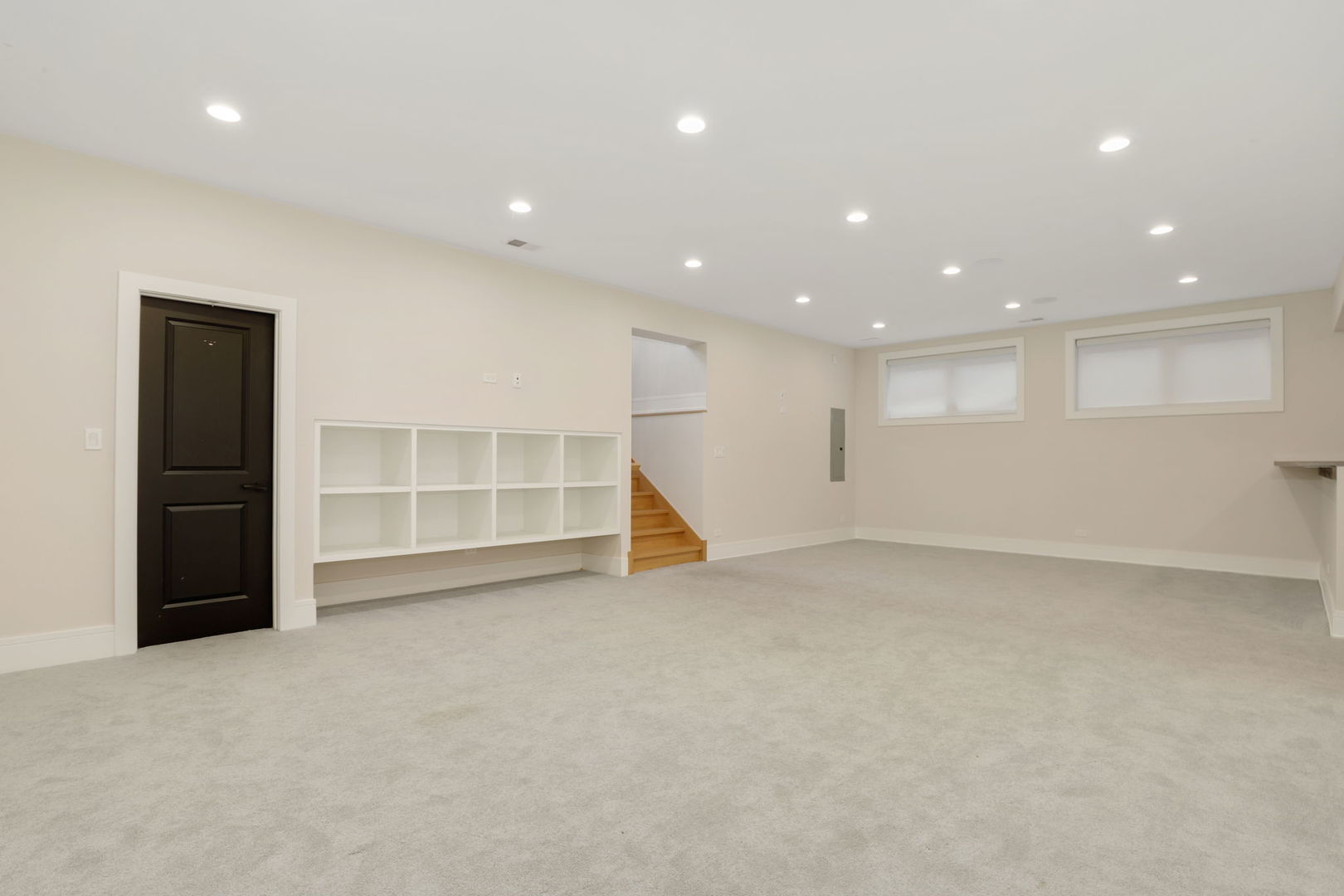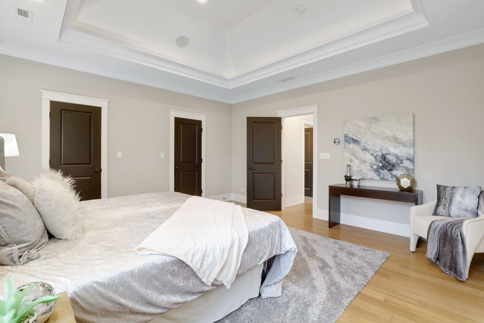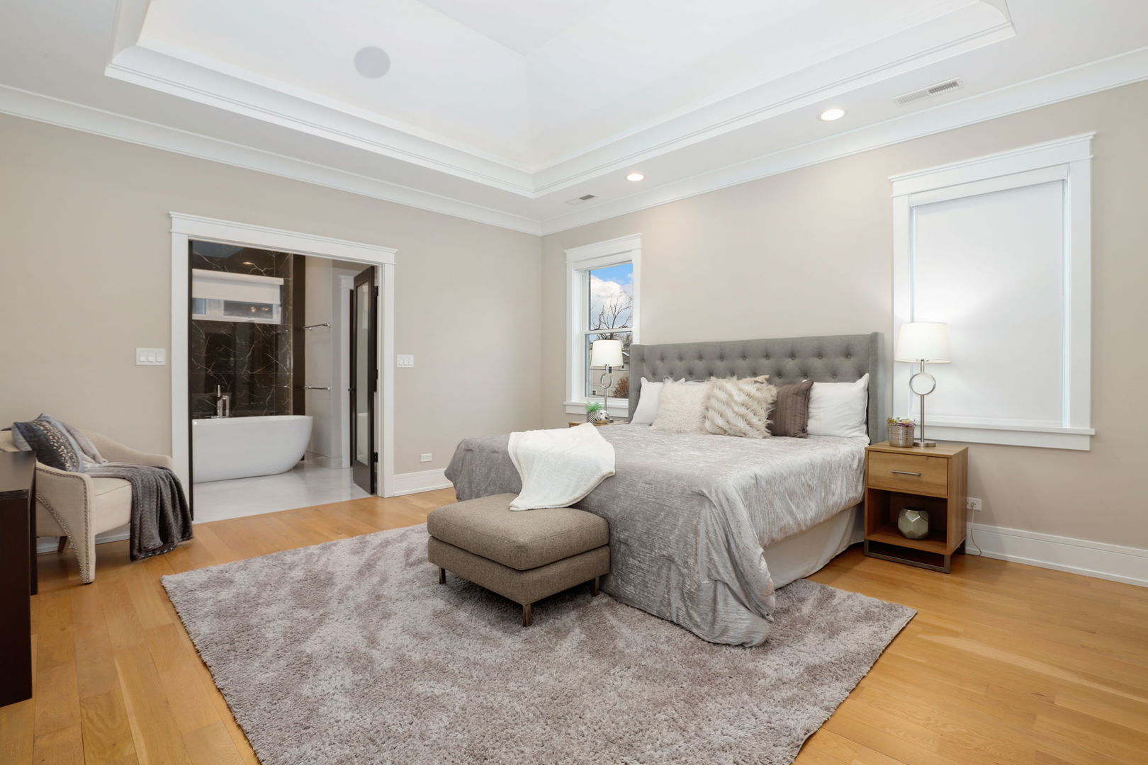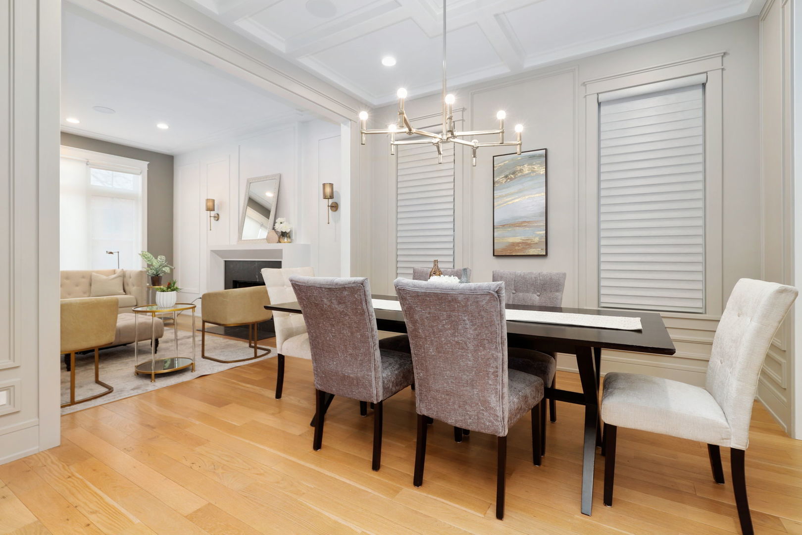 Welcome to this stunning, modern, and elegant all-brick single-family home, perfectly situated on a picturesque tree-lined street. Located on an extra-wide 38' corner lot in the esteemed Bell School District, this 6-bedroom, 6-bath residence showcases exceptional attention to detail from the moment you step inside. Designed for both comfort and entertaining, the spacious and open floor plan features custom millwork, coffered ceilings, and an abundance of natural light. The gracious foyer leads to a sophisticated home office and formal dining area, setting the tone for refined living. The gourmet chef's kitchen is a true showpiece, boasting custom cabinetry, quartz countertops, a large island, high-end Wolf appliances, a beautiful backsplash, a spacious pantry, and a wet bar with a wine chiller. This space seamlessly flows into the expansive family complete with a fireplace with a mantel, and built-in cabinetry. The luxurious primary suite is a private retreat, featuring a tray ceiling, dual walk-in closets, and a spa-like bathroom with a soaking tub, rainfall shower, heated floors, a double vanity, and a water closet. Three additional generously sized bedrooms upstairs offer ample closet space, along with the convenience of a large laundry room with a side-by-side washer and dryer. The lower level is designed for ultimate entertainment, featuring a sprawling recreation/family room with 9' ceilings, heated floors, a wet bar, and a walk-in wine room. Two additional bedrooms, a second laundry area, and a private entrance make this level perfect for an in-law suite or au pair living arrangement. Outdoor living is equally impressive, with a terrace off the family room, a beautifully landscaped backyard with pavers, and the potential to expand outdoor space by completing a rooftop deck above the 2.5-car garage. A motorized gate provides two access points for seamless parking and storage. Enjoy all the conveniences of Roscoe Village, North Center, Lakeview and just steps from top-rated restaurants, shops, Trader Joe's, coffee spots, and public transportation, this home offers the best of city living.