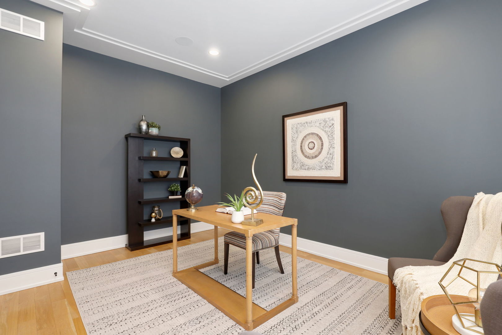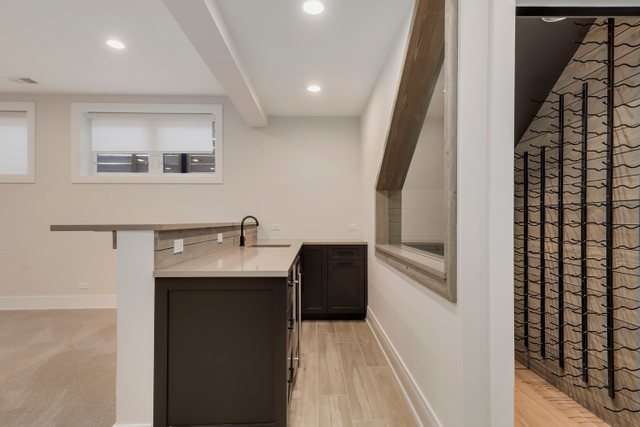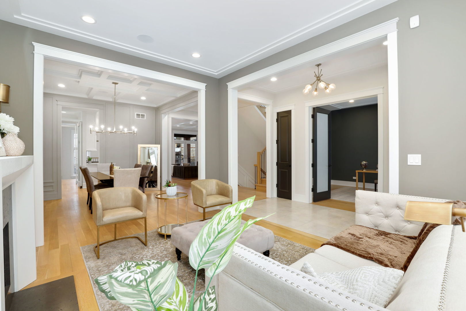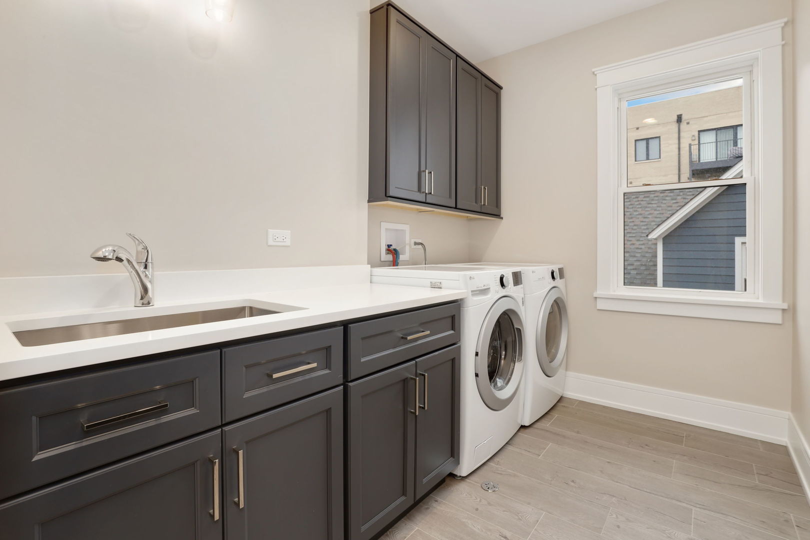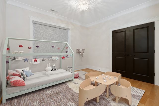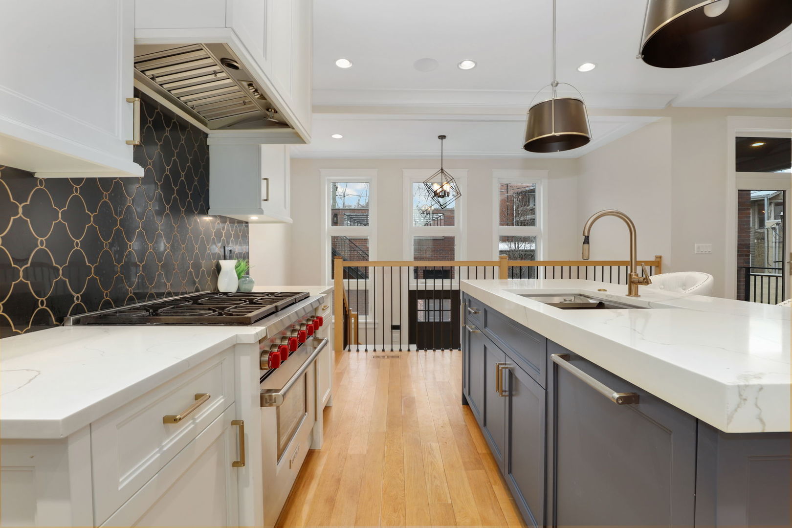 Welcome to this stunning, modern, and elegant all-brick single-family home, perfectly situated on a picturesque tree-lined street. Located on an extra-wide 38' corner lot in the esteemed Bell School District, this 6-bedroom, 6-bath residence showcases exceptional attention to detail from the moment you step inside. Designed for both comfort and entertaining, the spacious and open floor plan features custom millwork, coffered ceilings, and an abundance of natural light. The gracious foyer leads to a sophisticated home office and formal dining area, setting the tone for refined living. The gourmet chef's kitchen is a true showpiece, boasting custom cabinetry, quartz countertops, a large island, high-end Wolf appliances, a beautiful backsplash, a spacious pantry, and a wet bar with a wine chiller. This space seamlessly flows into the expansive family complete with a fireplace with a mantel, and built-in cabinetry. The luxurious primary suite is a private retreat, featuring a tray ceiling, dual walk-in closets, and a spa-like bathroom with a soaking tub, rainfall shower, heated floors, a double vanity, and a water closet. Three additional generously sized bedrooms upstairs offer ample closet space, along with the convenience of a large laundry room with a side-by-side washer and dryer. The lower level is designed for ultimate entertainment, featuring a sprawling recreation/family room with 9' ceilings, heated floors, a wet bar, and a walk-in wine room. Two additional bedrooms, a second laundry area, and a private entrance make this level perfect for an in-law suite or au pair living arrangement. Outdoor living is equally impressive, with a terrace off the family room, a beautifully landscaped backyard with pavers, and the potential to expand outdoor space by completing a rooftop deck above the 2.5-car garage. A motorized gate provides two access points for seamless parking and storage. Enjoy all the conveniences of Roscoe Village, North Center, Lakeview and just steps from top-rated restaurants, shops, Trader Joe's, coffee spots, and public transportation, this home offers the best of city living.