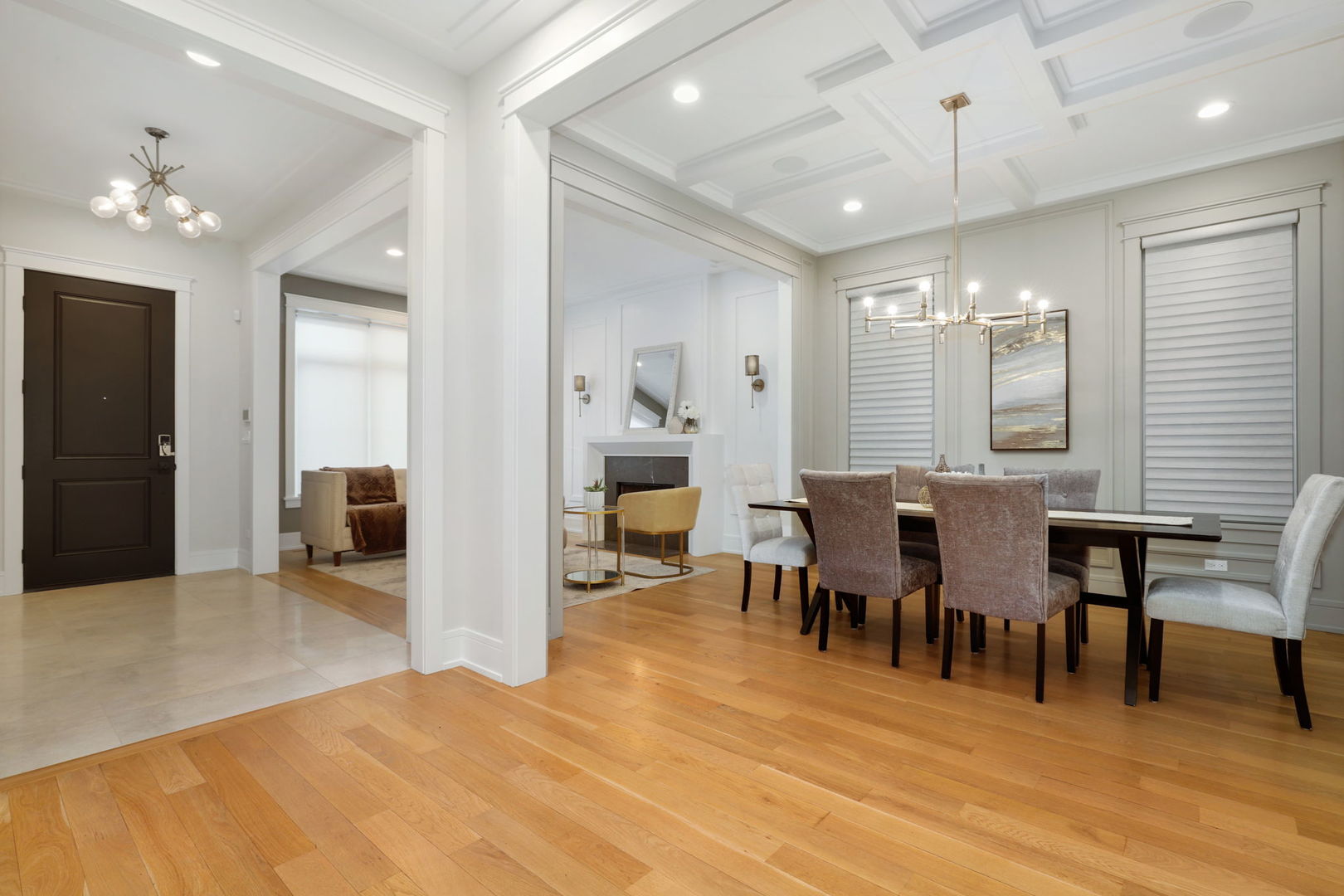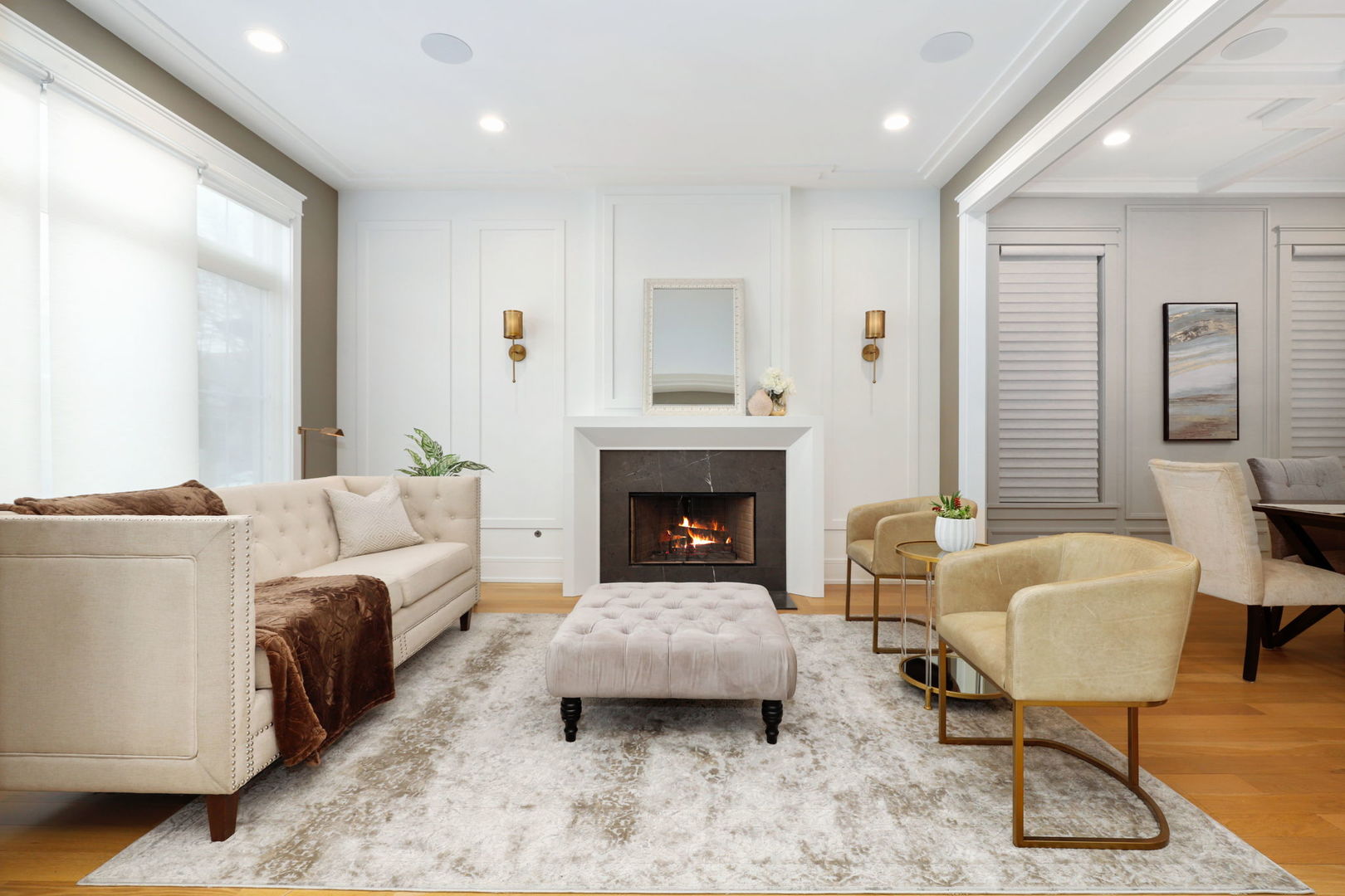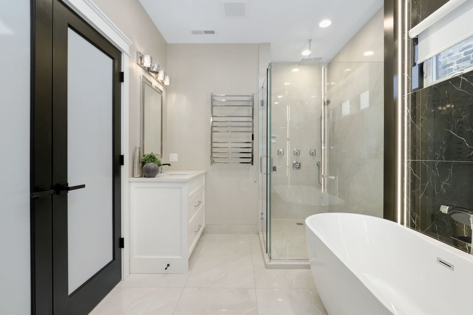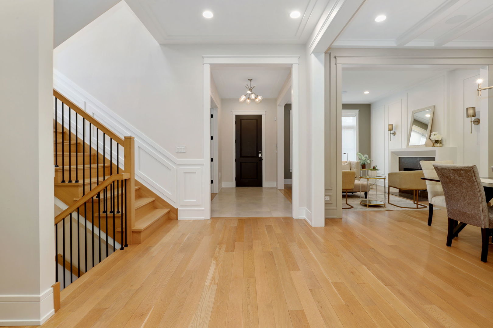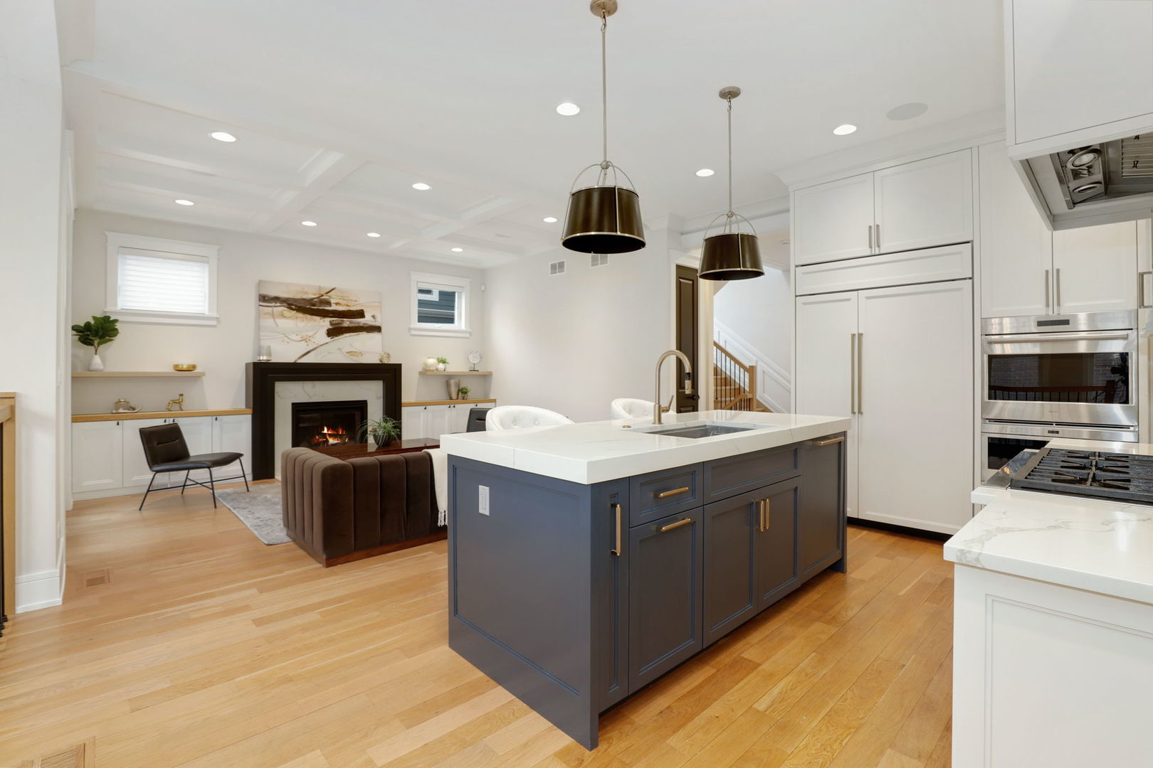 Welcome to this stunning, modern, and elegant all-brick single-family home, perfectly situated on a picturesque tree-lined street. Located on an extra-wide 38' corner lot in the esteemed Bell School District, this 6-bedroom, 6-bath residence showcases exceptional attention to detail from the moment you step inside. Designed for both comfort and entertaining, the spacious and open floor plan features custom millwork, coffered ceilings, and an abundance of natural light. The gracious foyer leads to a sophisticated home office and formal dining area, setting the tone for refined living. The gourmet chef's kitchen is a true showpiece, boasting custom cabinetry, quartz countertops, a large island, high-end Wolf appliances, a beautiful backsplash, a spacious pantry, and a wet bar with a wine chiller. This space seamlessly flows into the expansive family complete with a fireplace with a mantel, and built-in cabinetry. The luxurious primary suite is a private retreat, featuring a tray ceiling, dual walk-in closets, and a spa-like bathroom with a soaking tub, rainfall shower, heated floors, a double vanity, and a water closet. Three additional generously sized bedrooms upstairs offer ample closet space, along with the convenience of a large laundry room with a side-by-side washer and dryer. The lower level is designed for ultimate entertainment, featuring a sprawling recreation/family room with 9' ceilings, heated floors, a wet bar, and a walk-in wine room. Two additional bedrooms, a second laundry area, and a private entrance make this level perfect for an in-law suite or au pair living arrangement. Outdoor living is equally impressive, with a terrace off the family room, a beautifully landscaped backyard with pavers, and the potential to expand outdoor space by completing a rooftop deck above the 2.5-car garage. A motorized gate provides two access points for seamless parking and storage. Enjoy all the conveniences of Roscoe Village, North Center, Lakeview and just steps from top-rated restaurants, shops, Trader Joe's, coffee spots, and public transportation, this home offers the best of city living.