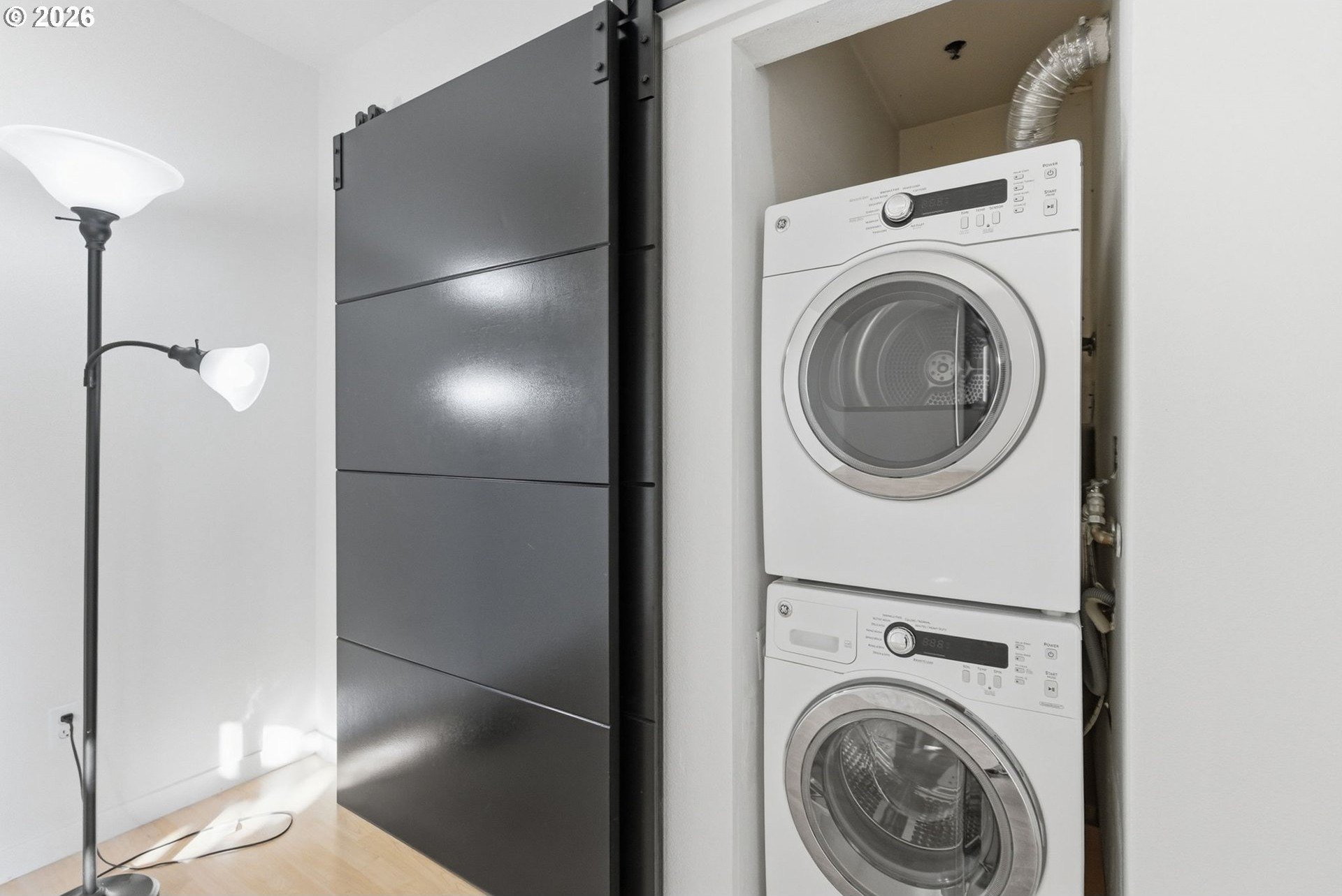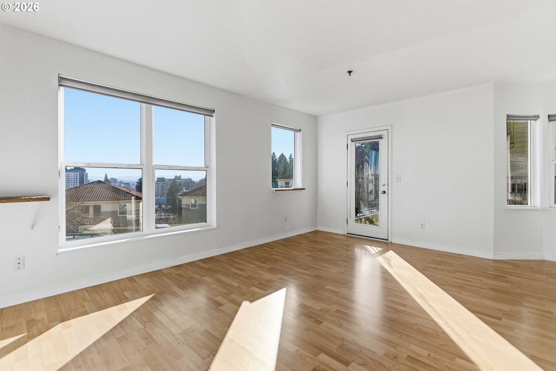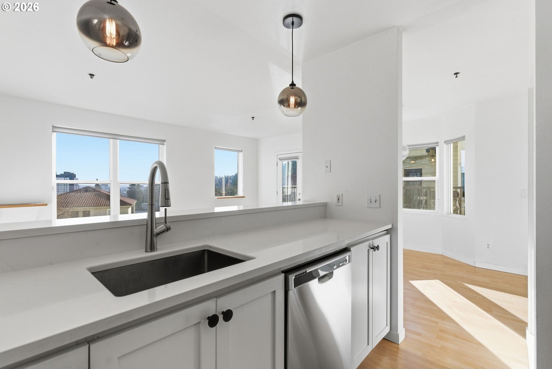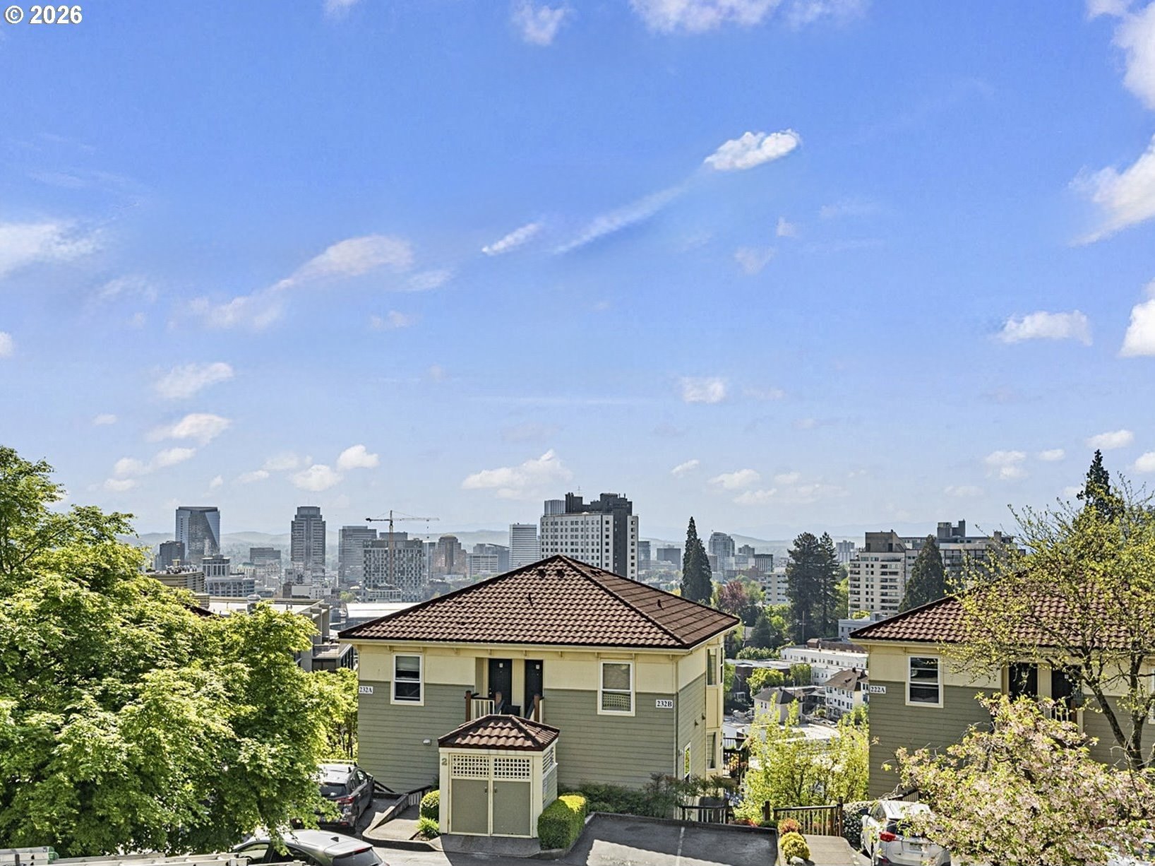 Enjoy breathtaking views, peaceful living, and unbeatable walkability in this beautifully updated condo tucked away in a serene, wooded setting- just steps from the vibrant shops, dining, and energy of NW 23rd. Perfectly positioned up one flight of stairs, this home truly lives large, offering privacy, quiet, and exceptional natural light.The bright and inviting living room flows seamlessly into an open kitchen featuring sleek quartz countertops and stainless steel appliances- ideal for both everyday living and entertaining. The spacious bedroom includes a generous walk-in closet with ample storage, creating a comfortable and functional retreat.A rare highlight of this home is the massive, 10.5' x 17' oversized outdoor patio- the largest in the complex- perfect for hosting friends, relaxing with morning coffee, or enjoying the peaceful surroundings and incredible views. These condos are renowned for having some of the best views in all of Downtown Portland, set within a secluded, clean, and private enclave surrounded by mature trees.Additional features include an assigned parking space (#36), extra storage, and access to a community dog area conveniently located below the lower buildings. With low HOA dues and a fully updated, clean, and bright interior, this condo offers an exceptional combination of comfort, privacy, and location- truly one of the best values in the city. You cannot beat it!