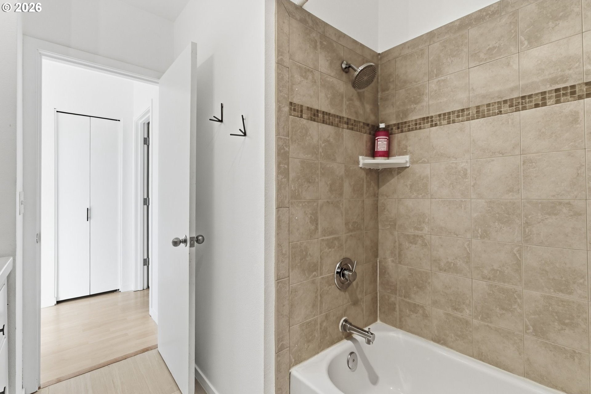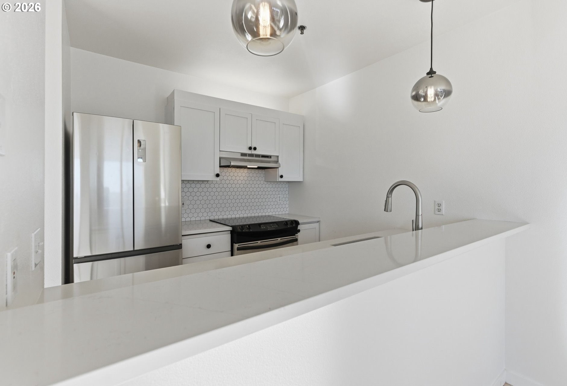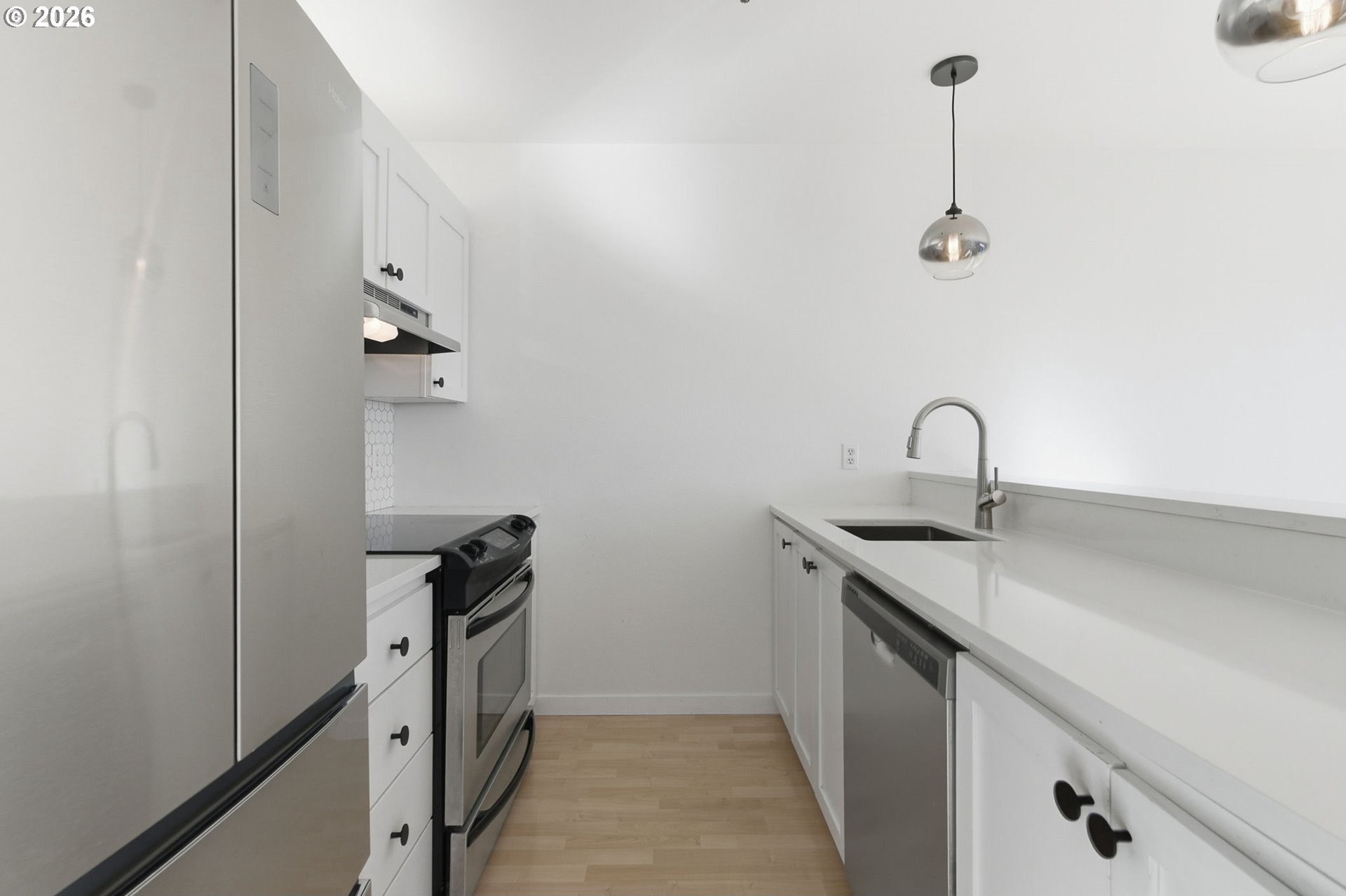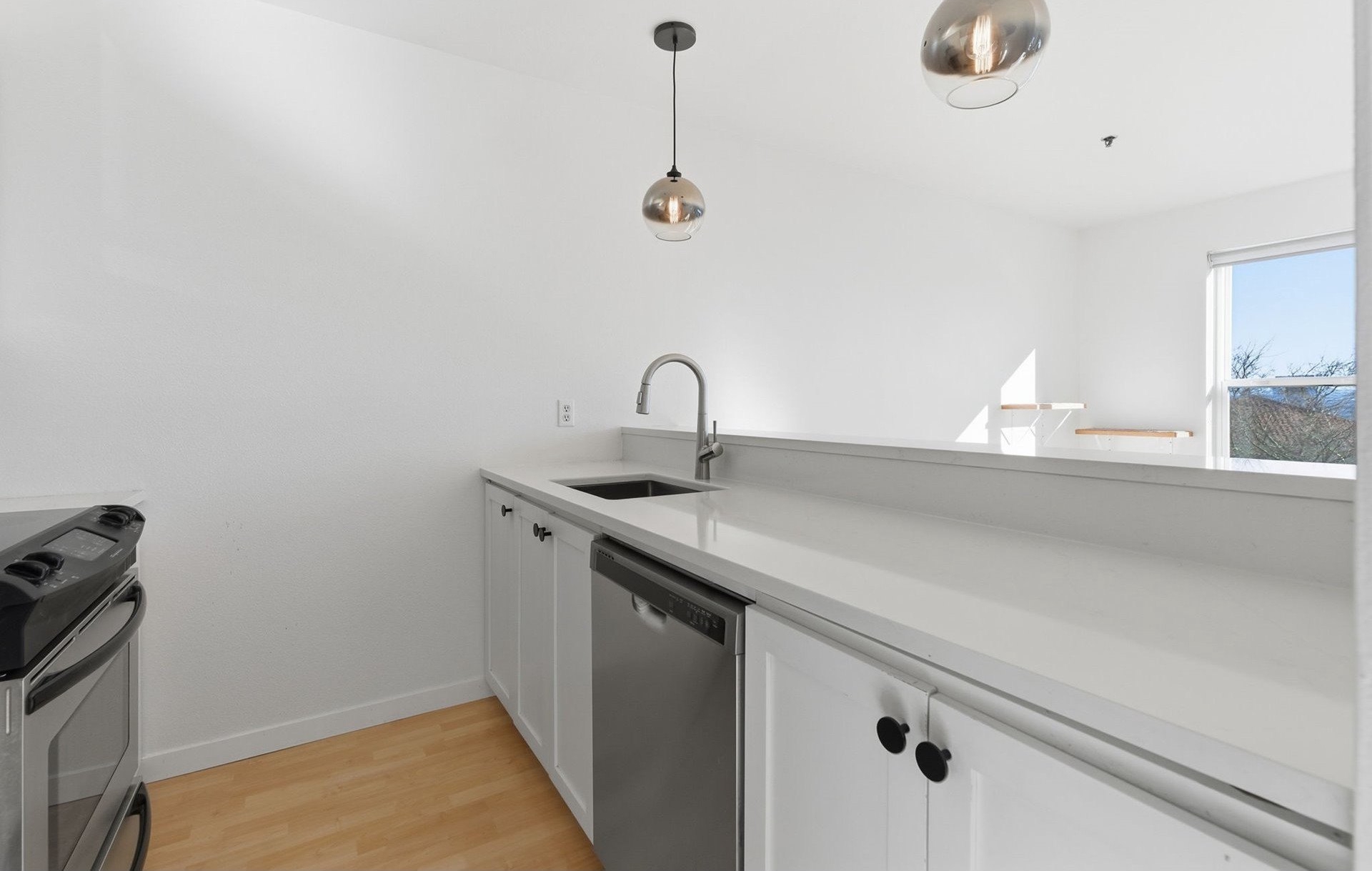 Enjoy breathtaking views, peaceful living, and unbeatable walkability in this beautifully updated condo tucked away in a serene, wooded setting- just steps from the vibrant shops, dining, and energy of NW 23rd. Perfectly positioned up one flight of stairs, this home truly lives large, offering privacy, quiet, and exceptional natural light.The bright and inviting living room flows seamlessly into an open kitchen featuring sleek quartz countertops and stainless steel appliances- ideal for both everyday living and entertaining. The spacious bedroom includes a generous walk-in closet with ample storage, creating a comfortable and functional retreat.A rare highlight of this home is the massive, 10.5' x 17' oversized outdoor patio- the largest in the complex- perfect for hosting friends, relaxing with morning coffee, or enjoying the peaceful surroundings and incredible views. These condos are renowned for having some of the best views in all of Downtown Portland, set within a secluded, clean, and private enclave surrounded by mature trees.Additional features include an assigned parking space (#36), extra storage, and access to a community dog area conveniently located below the lower buildings. With low HOA dues and a fully updated, clean, and bright interior, this condo offers an exceptional combination of comfort, privacy, and location- truly one of the best values in the city. You cannot beat it!