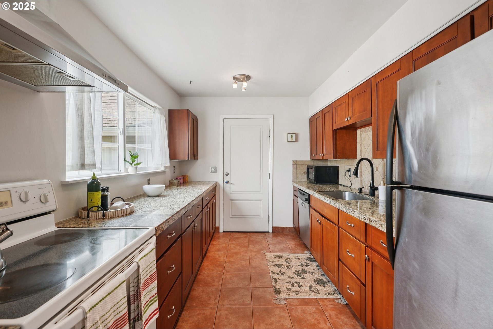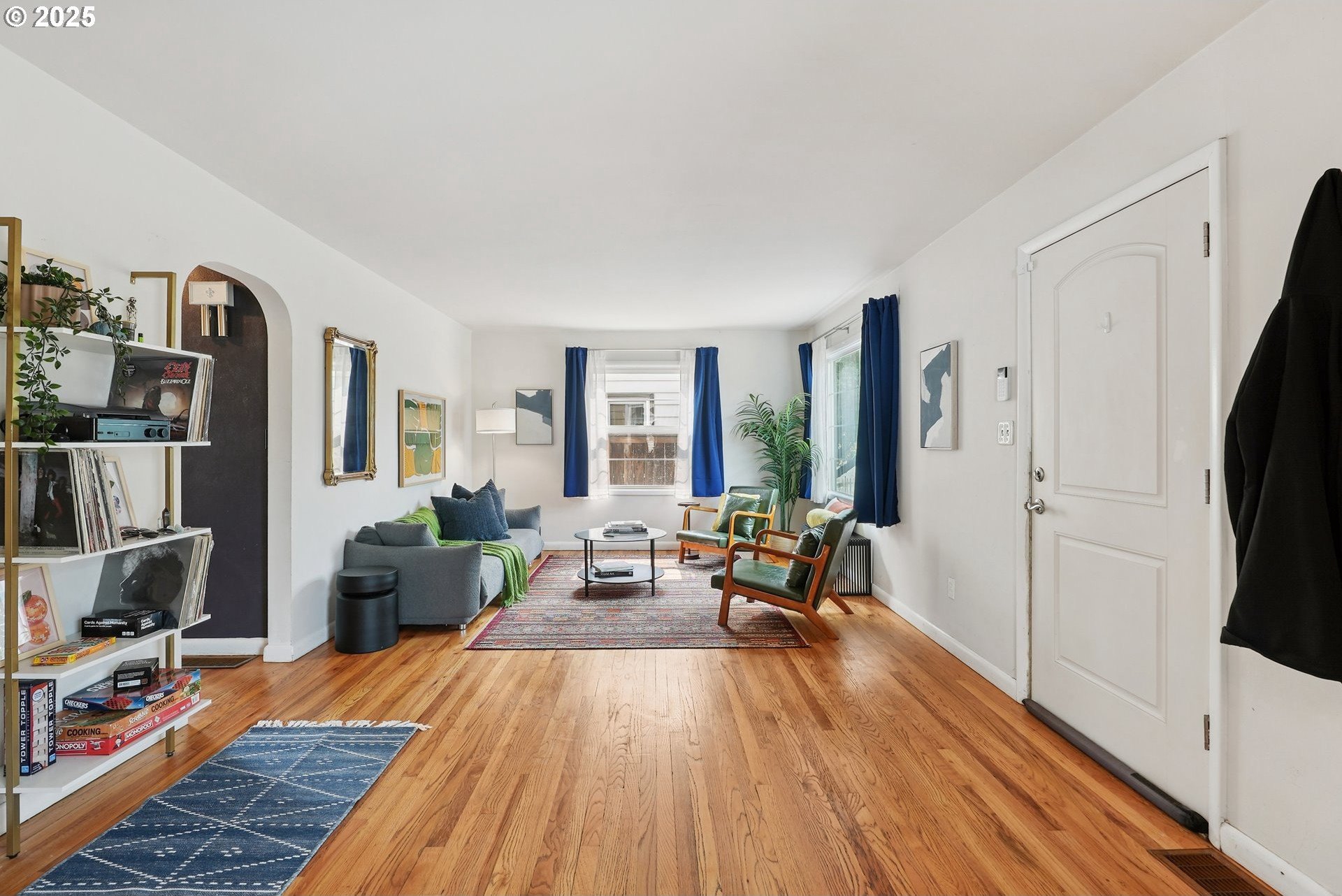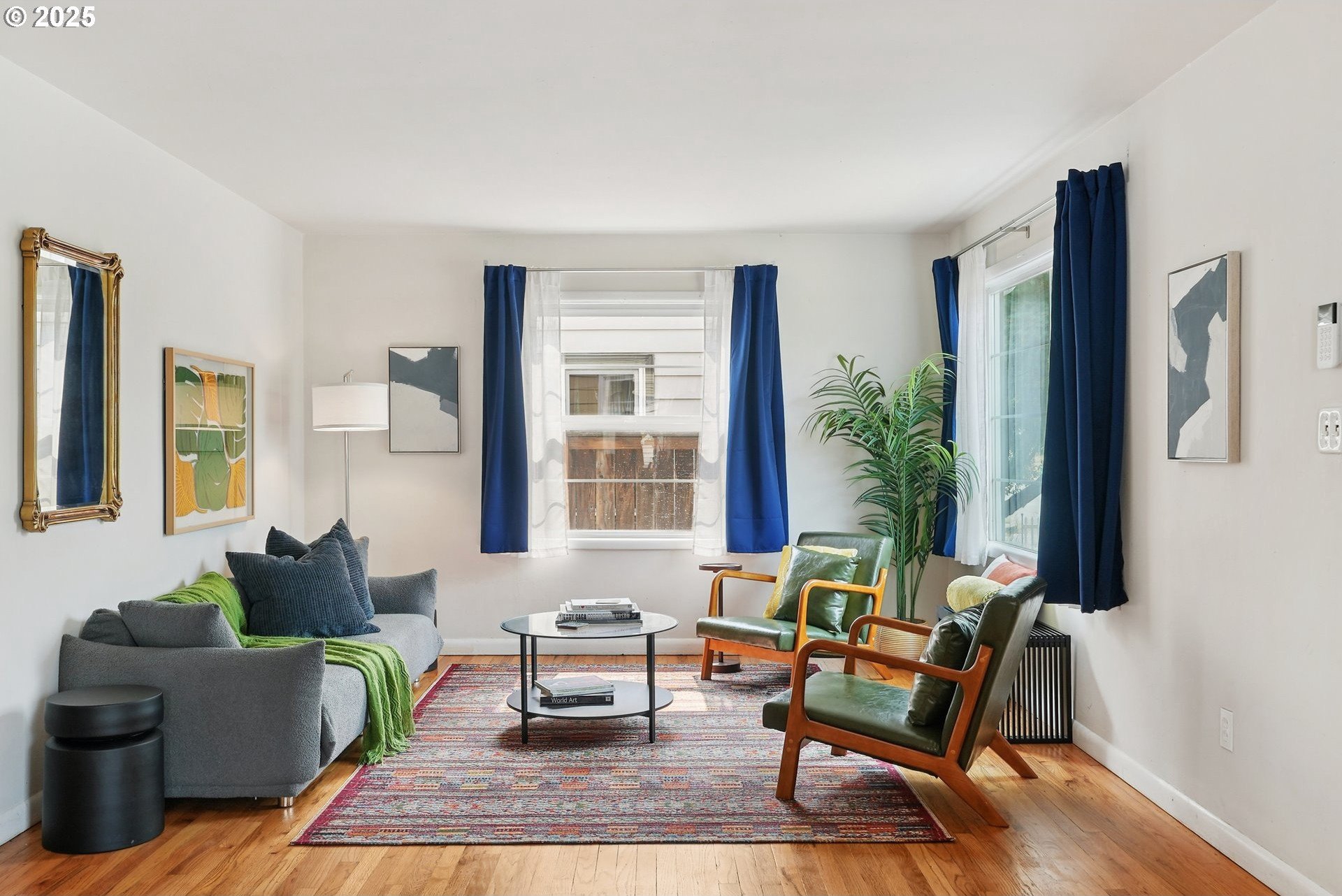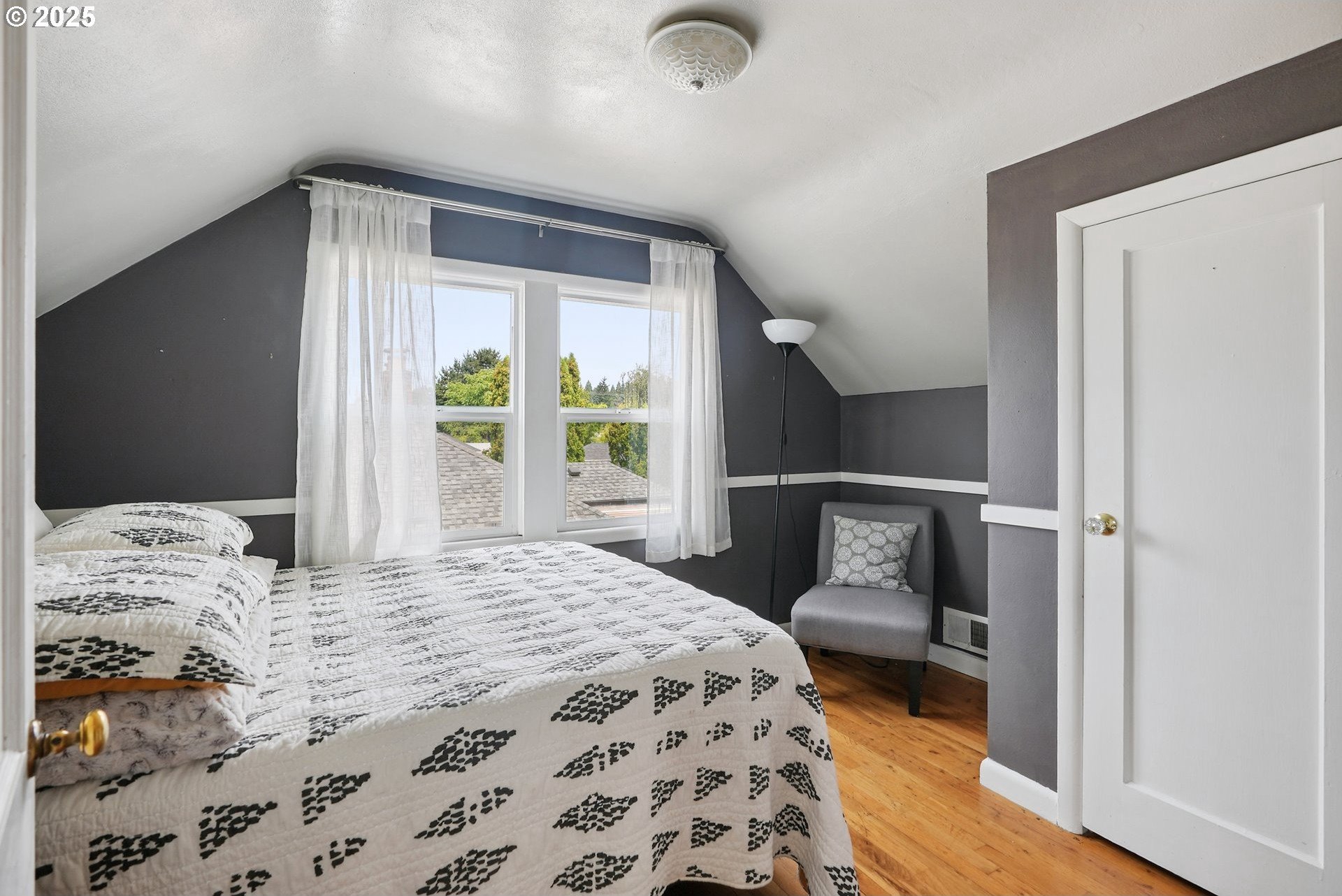 Charming Classic Bungalow in Northeast PDX w/ Rocky Butte views. This home has limitless potential. The natural oak floors flow throughout the home & provide soft ambiance. Amazing natural sunlight gleams into all rooms of the home. The large galley kitchen has great countertop space. Thoughtful updates include newer HVAC/AC (2022), newer electrical panel (2022), refinished oak floors, fresh interior paint, and fresh landscaping. Roof has Malarkey shingles and is less than 10 years of age. This 2 story home provides a generous size bedroom on the main floor, providing ample closet space with french doors that open to the back yard. You can walk out with your cup of joe and take in the breathtaking view of Rocky Butte Natural Area. The upstairs holds two more bedrooms which are perfect for guest(s) or another primary bedroom. At the top of the stairs you'll find a landing space that is perfect for a reading nook, yoga area, or office space. The oversized attached garage offers generous storage options for gardening tools, outdoor gear, or even a home gym. Attached garage to be sold As Is. Just outside your door, enjoy all the charm and convenience of the Madison South Neighborhood. PBOT building a better 82nd is in action bringing more convenience to the area. Don't miss the Rocky Butte Farmers market-going till October. Grab a smoothie or sandwich at Fresh Love. Not in the mood to cook, step over to Portland's restaurant of the year (2023) Ki'ikibáa to grab delicious Yucatecan food. Stroll over to The People's Courts- Pickleball is waiting for you. Book your tour today.
