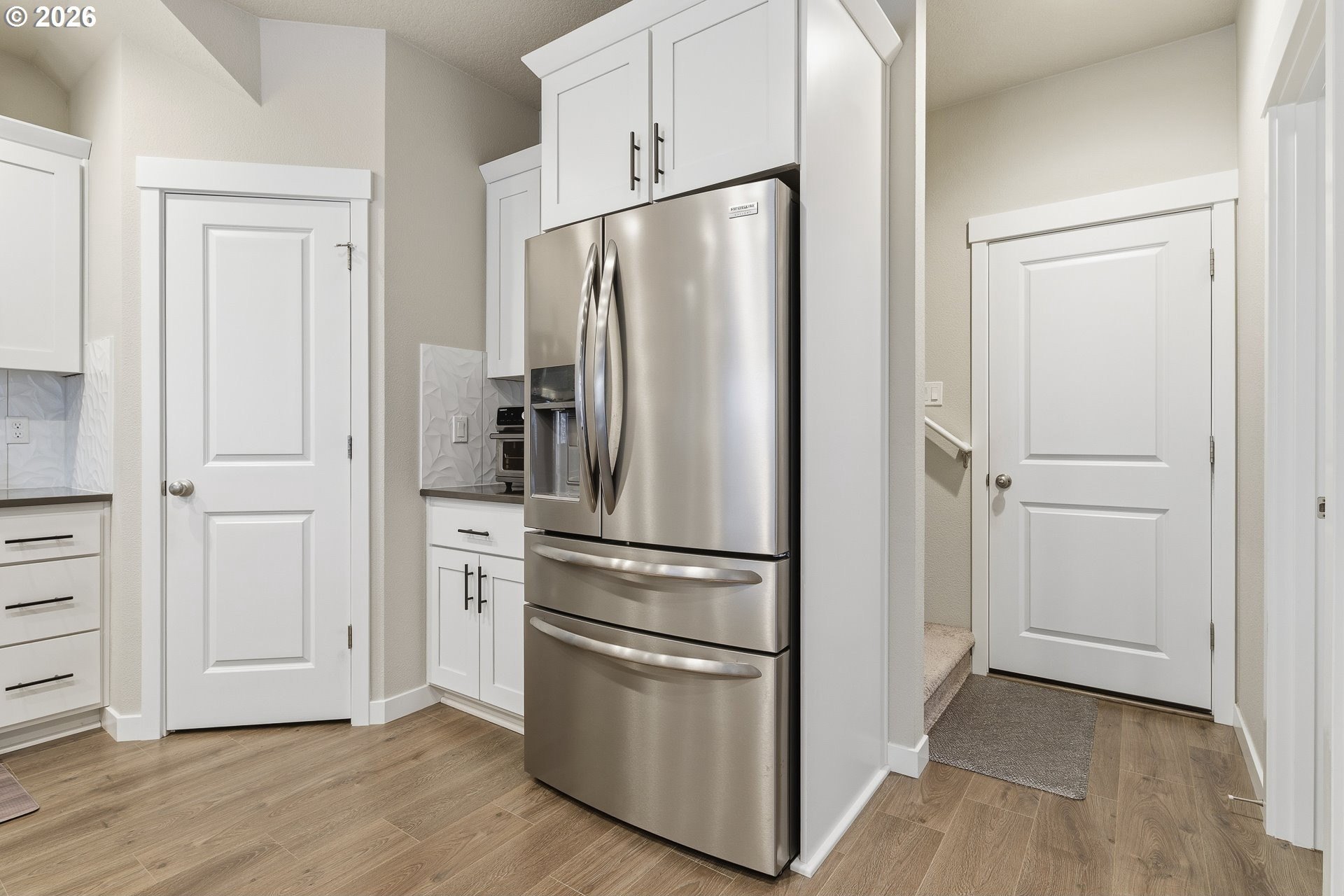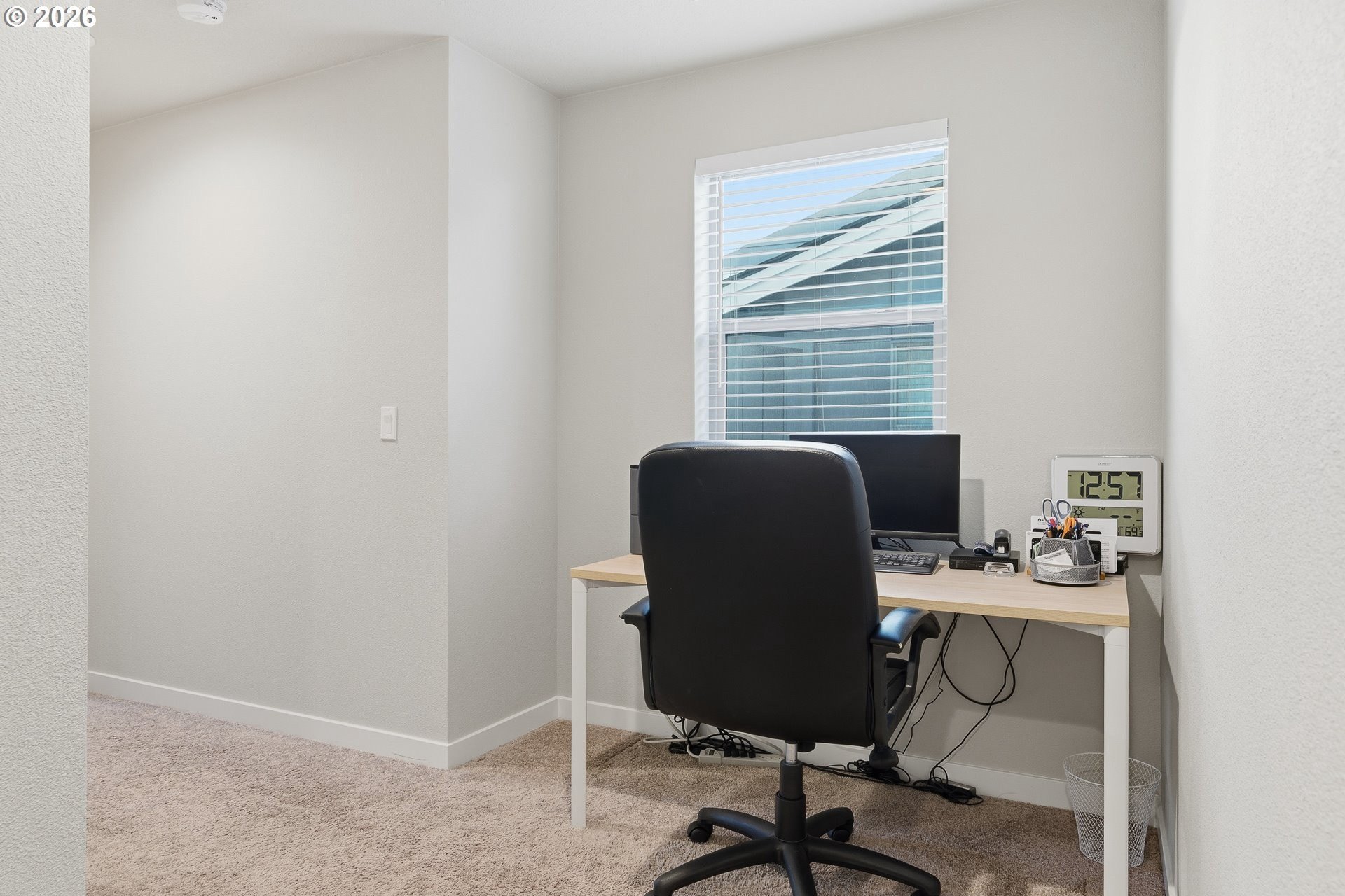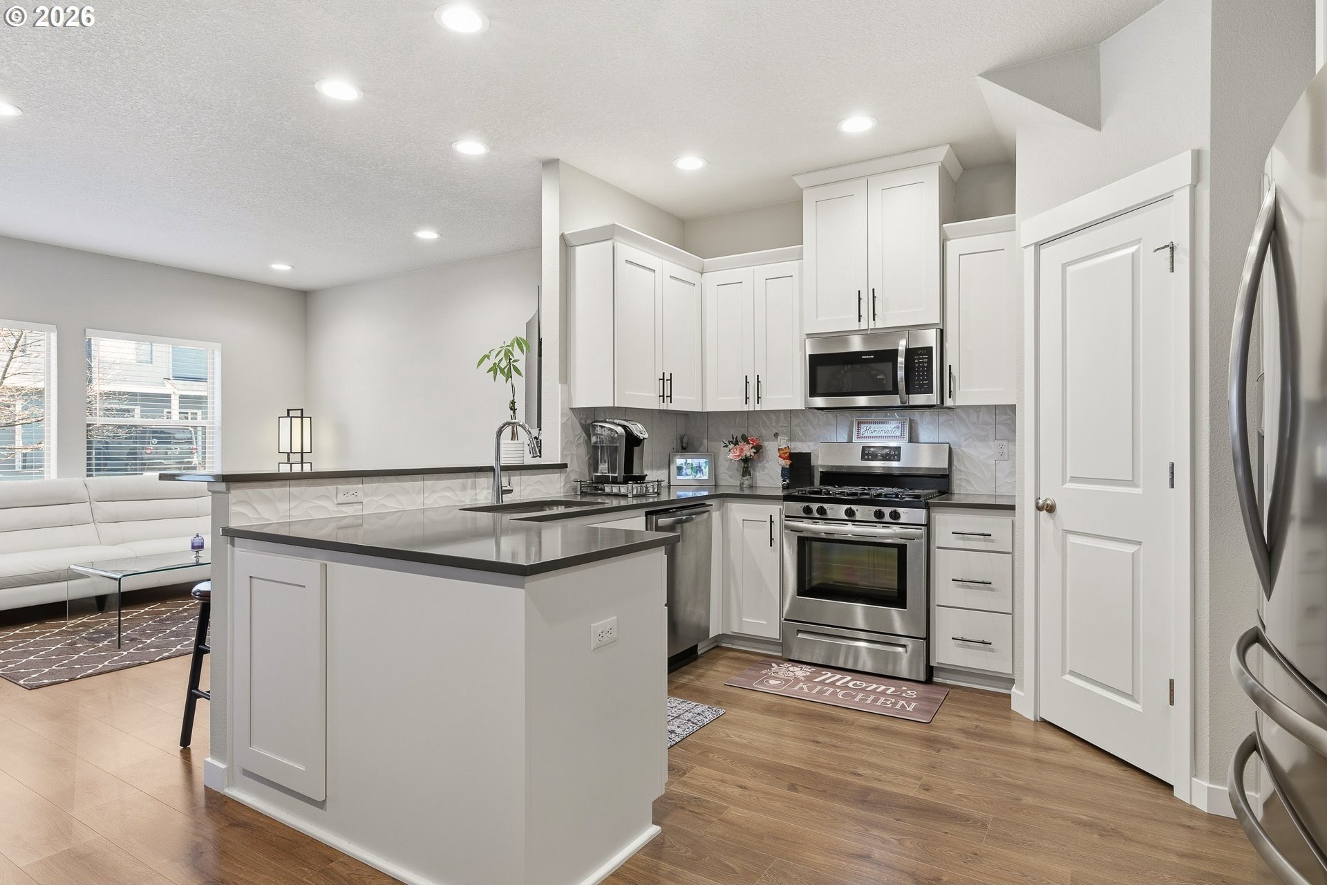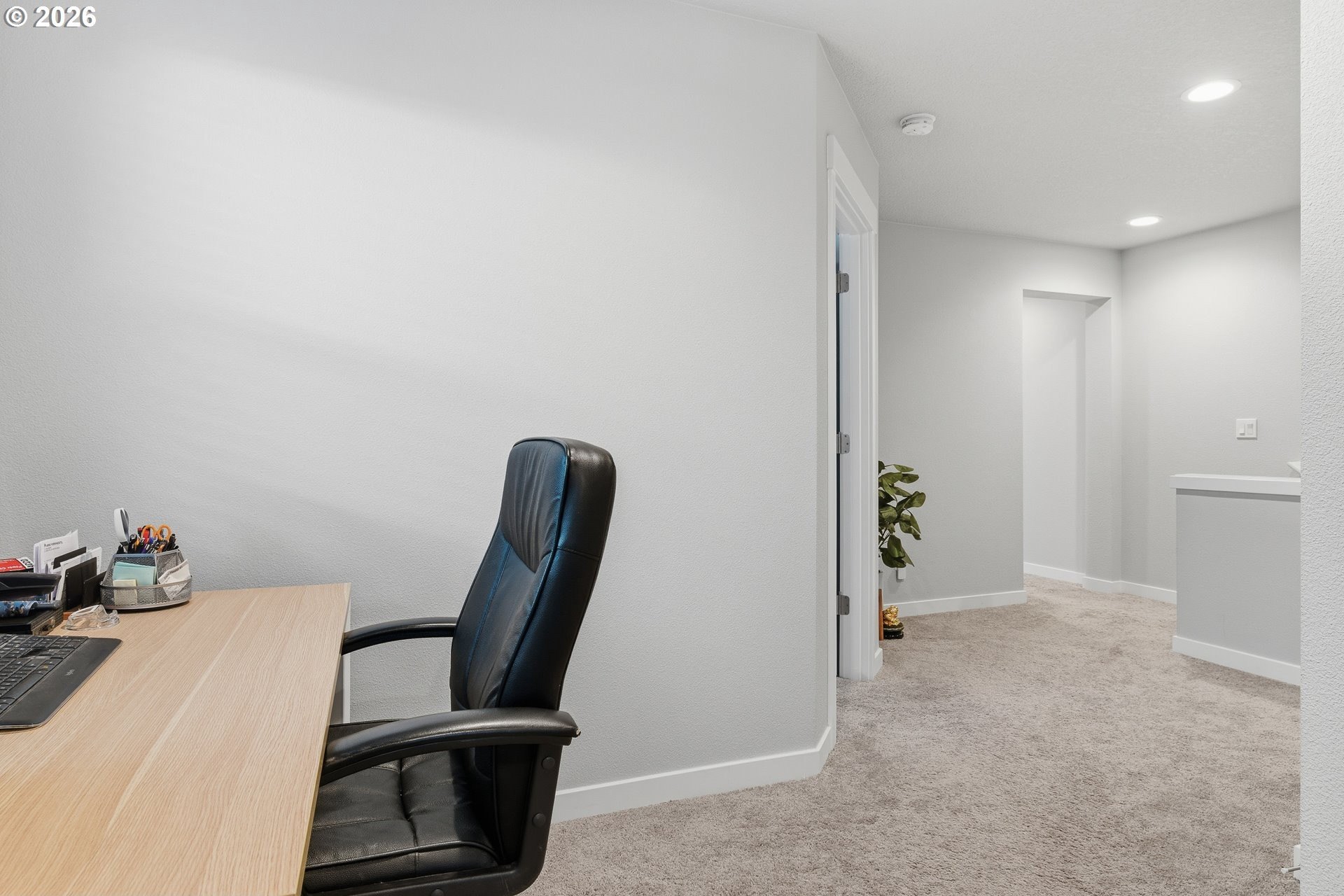 Beautifully maintained 3-bedroom, 2.5-bath townhome, offering 1,547 sq ft of modern, comfortable living. Built in 2020, this one-owner home features an open-concept main level with luxury laminate flooring, recessed lighting, and a bright, inviting layout. The stylish kitchen includes quartz countertops, white cabinetry, stainless steel appliances, tile backsplash, a walk-in pantry, and an eating bar that flows seamlessly into the dining and living areas. The living room is highlighted by a wall-mounted electric fireplace and large TV space. Upstairs, the spacious primary suite offers a walk-in closet and private bath with double vanity and walk-in shower. Two additional bedrooms, a full bath, and a dedicated laundry room complete the upper level. A flex room/office space provides the perfect space for working from home or hobbies. Additional features include ductless mini-split heating & cooling, 2-car garage, and a covered front porch. Enjoy low maintenance living with nearby community park, walking trails, shopping and dining.