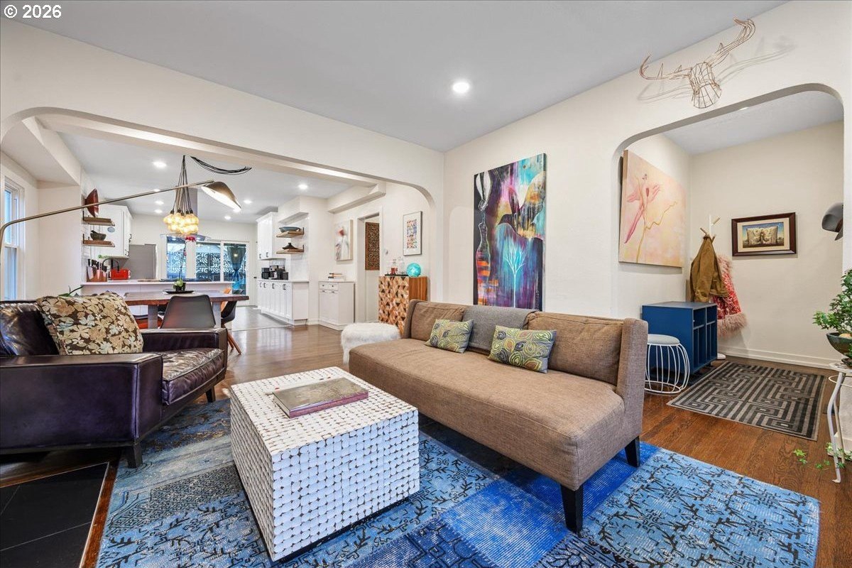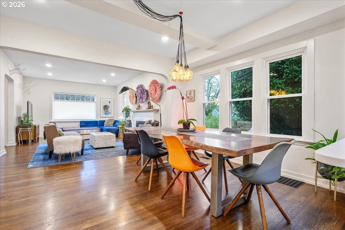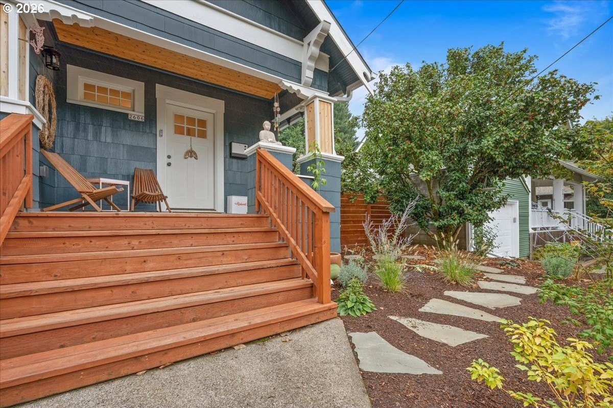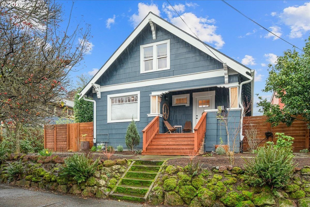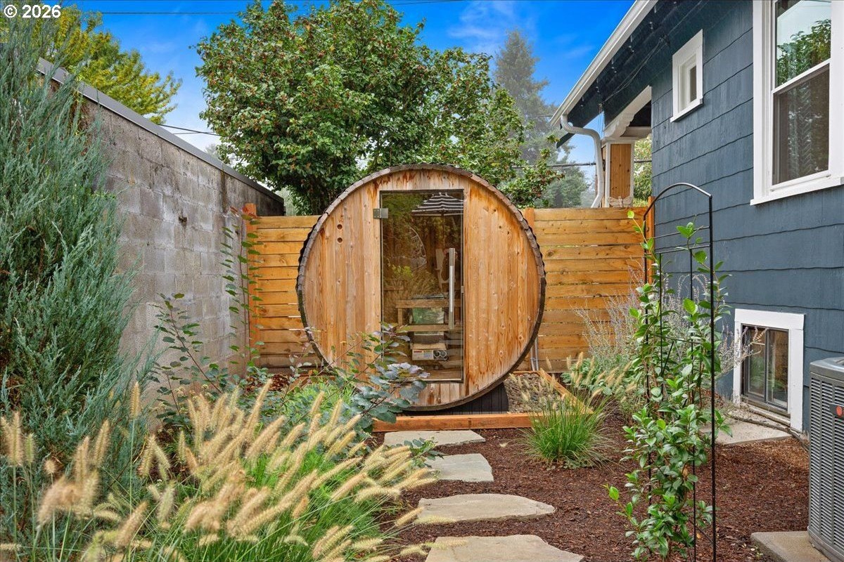 OPEN FRI 1/9 6-8PM & SAT/SUN 11-1.This truly special 3BD/3BA Craftsman bungalow on a spacious corner lot is an urban oasis in the heart of vibrant SE Portland, just blocks away from Division's restaurants/shops and within amile of Mt. Tabor. The light-filled main level features hardwoods, an open kitchen/dining/livinglayout, custom window coverings, and a cozy gas fireplace, flowing beautifully for everyday modern living and entertaining. The renovated kitchen offers abundant counter space, full-sizepantry, and new appliances. The spacious upstairs primary suite includes a walk-in closet, doublesinks, and oversized shower. The full-height basement with exterior entry and freshly paintedfloor provides flexible bonus space with potential ADU options. Outside, retreat to a covered entertaining deck with privacy screens, flanked by a professionally landscaped, fenced yard with native plantings, raised vegetable garden beds, dog run, and private sauna. Rare secure parkingincludes a dedicated pad plus room for multiple vehicles and RV/boat/trailer storage behind anautomatic, secure gate. Extensive updates include roof, plumbing, electrical, furnace, paint, and more. All appliances included. [Home Energy Score = 1. HES Report