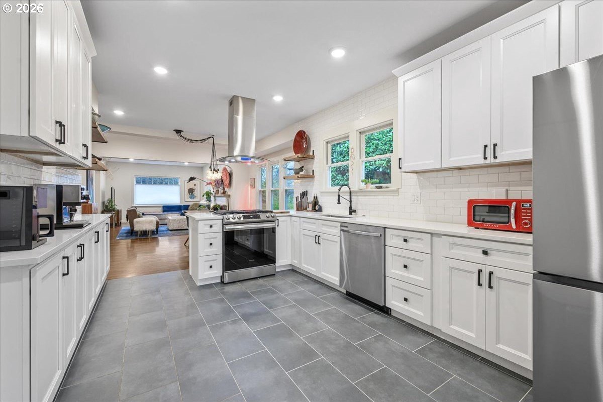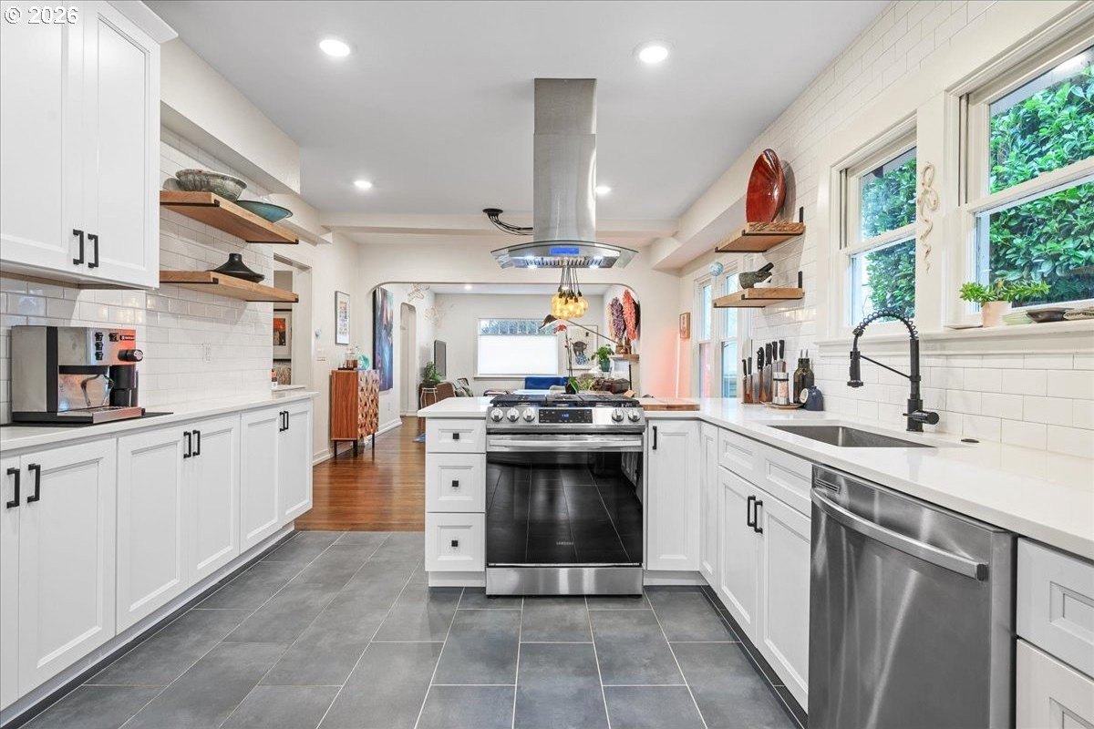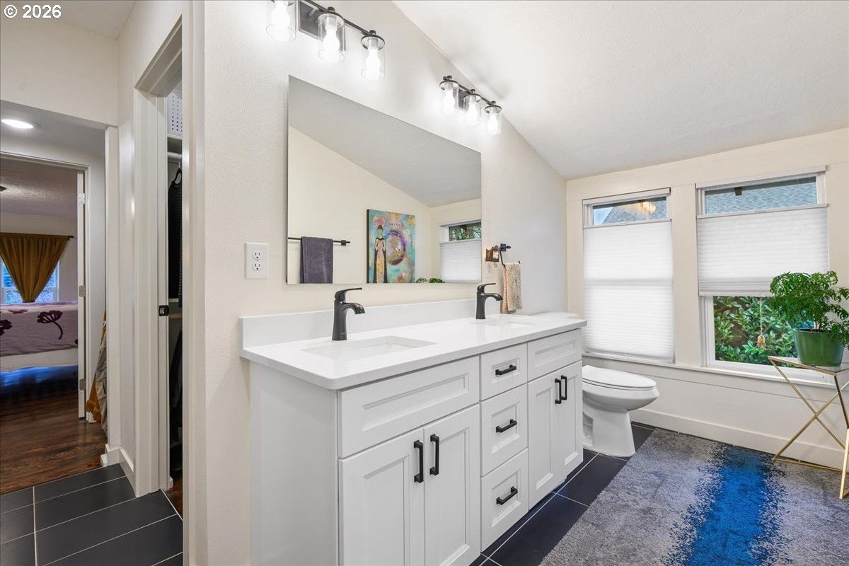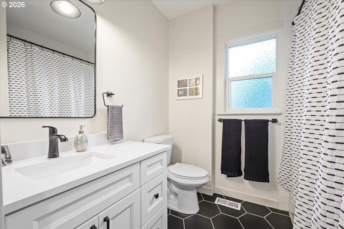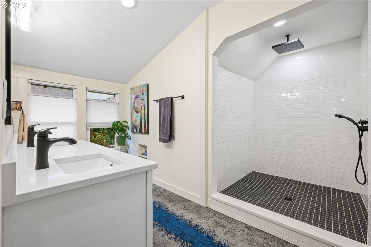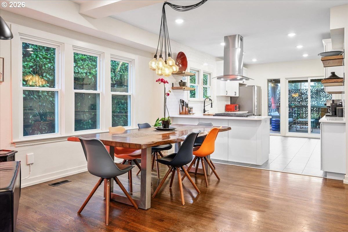 OPEN FRI 1/9 6-8PM & SAT/SUN 11-1.This truly special 3BD/3BA Craftsman bungalow on a spacious corner lot is an urban oasis in the heart of vibrant SE Portland, just blocks away from Division's restaurants/shops and within amile of Mt. Tabor. The light-filled main level features hardwoods, an open kitchen/dining/livinglayout, custom window coverings, and a cozy gas fireplace, flowing beautifully for everyday modern living and entertaining. The renovated kitchen offers abundant counter space, full-sizepantry, and new appliances. The spacious upstairs primary suite includes a walk-in closet, doublesinks, and oversized shower. The full-height basement with exterior entry and freshly paintedfloor provides flexible bonus space with potential ADU options. Outside, retreat to a covered entertaining deck with privacy screens, flanked by a professionally landscaped, fenced yard with native plantings, raised vegetable garden beds, dog run, and private sauna. Rare secure parkingincludes a dedicated pad plus room for multiple vehicles and RV/boat/trailer storage behind anautomatic, secure gate. Extensive updates include roof, plumbing, electrical, furnace, paint, and more. All appliances included. [Home Energy Score = 1. HES Report