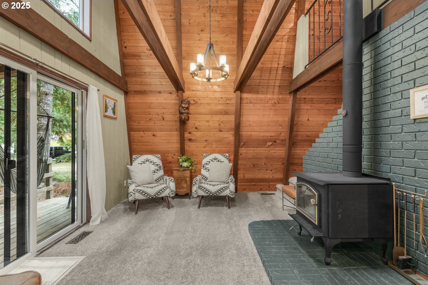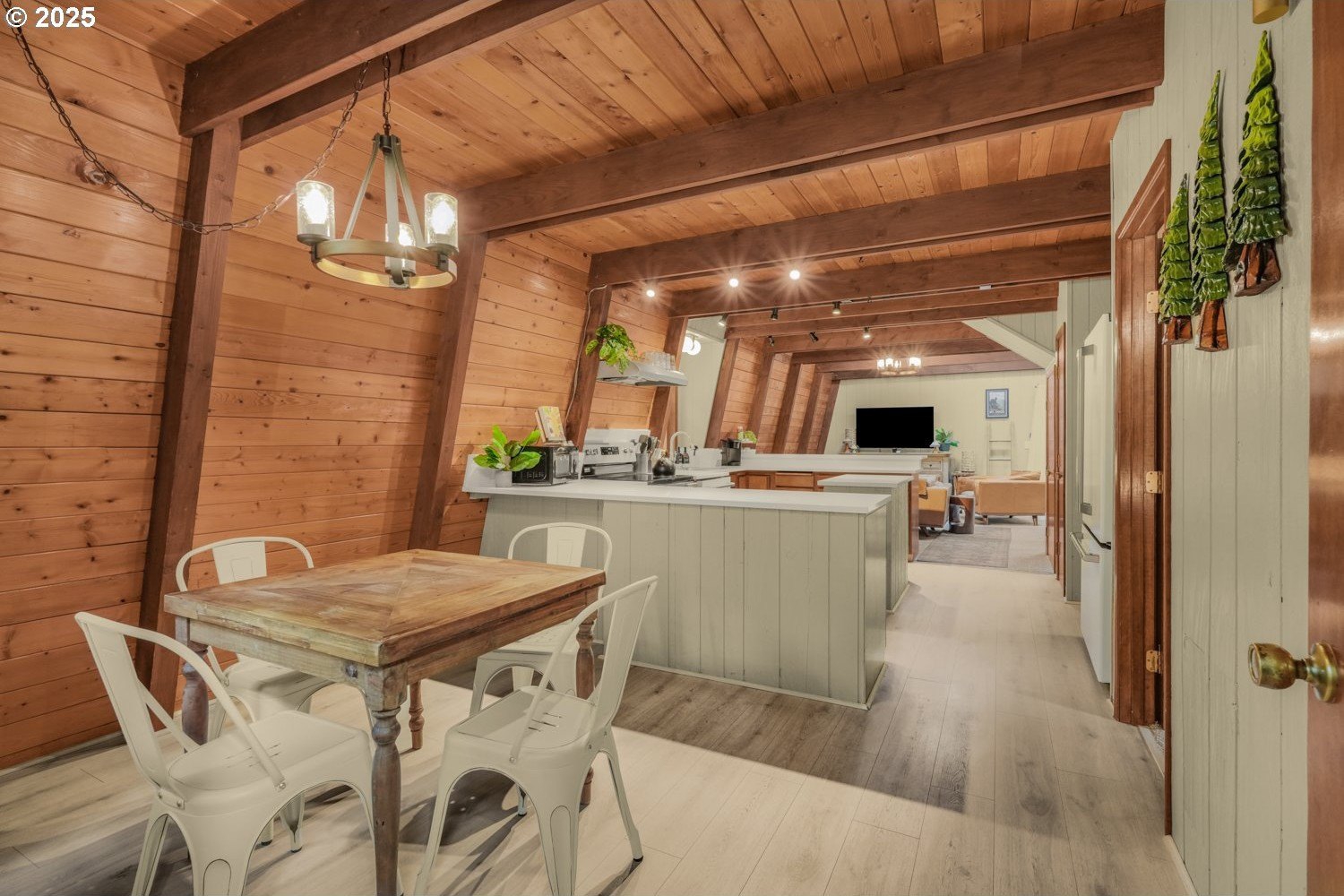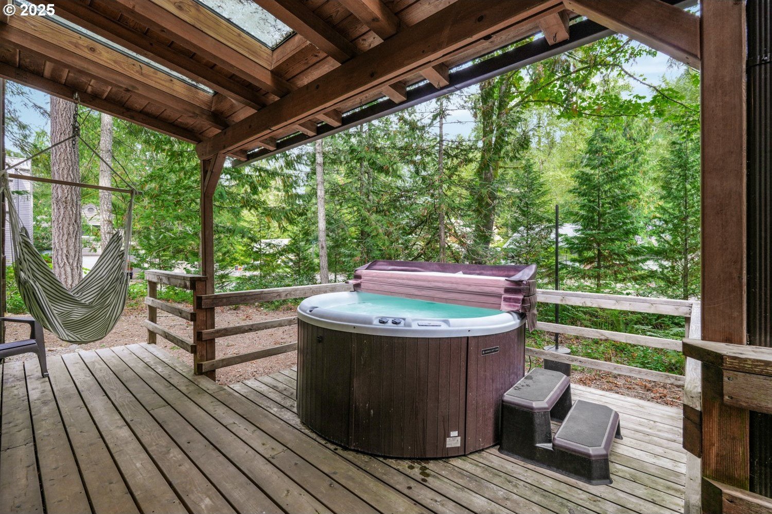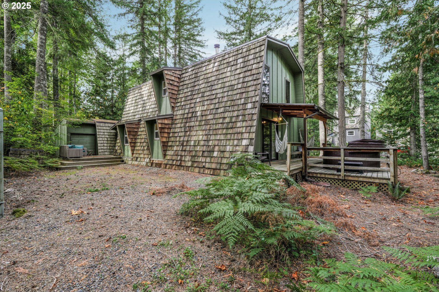 Welcome to this beautifully updated 3-bedroom, 1.5-bath home in the desirable Timberline Rim community of Rhododendron on a massive corner lot. Currently operating as a successful vacation rental, with the option to purchase fully furnished, this property offers a perfect blend of comfort, charm, and investment potential. Just about an hour from Portland, this mountain retreat provides year-round access to world-class hiking, skiing, and the charm of local restaurants and nature at your doorstep. With 1,792 sq. ft. of living space on nearly a .25 acre wooded lot, the setting offers both privacy and tranquility. You'll also be just a short walk to the Sandy River, ideal for fishing, kayaking, or peaceful strolls along the water. The Timberline Rim community offers exceptional amenities including a pool, tennis and basketball courts, and access to scenic common areas that's perfect for recreation and relaxation. Inside, the home shines with thoughtful updates including fresh interior paint, and a stylish kitchen that blends rustic wood cabinetry with modern quartz countertops. The open-concept living area has soaring vaulted ceilings and a cozy wood-burning stove, creating a warm, inviting space to unwind after a day of mountain adventure. All three bedrooms are spacious and versatile, while the updated bathrooms showcase a modern, clean design. Step outside to your private backyard, complete with a hot tub, hammock chairs, and forested serenity making it an ideal place to relax and recharge. Whether you're looking for a primary residence, vacation home, or turn-key rental investment, this property offers it all. Don't miss your chance to own this stunning mountain getaway in one of Rhododendron's most sought-after neighborhoods.