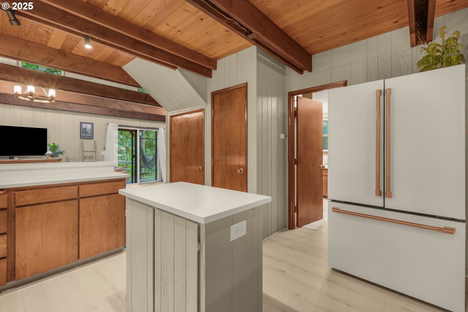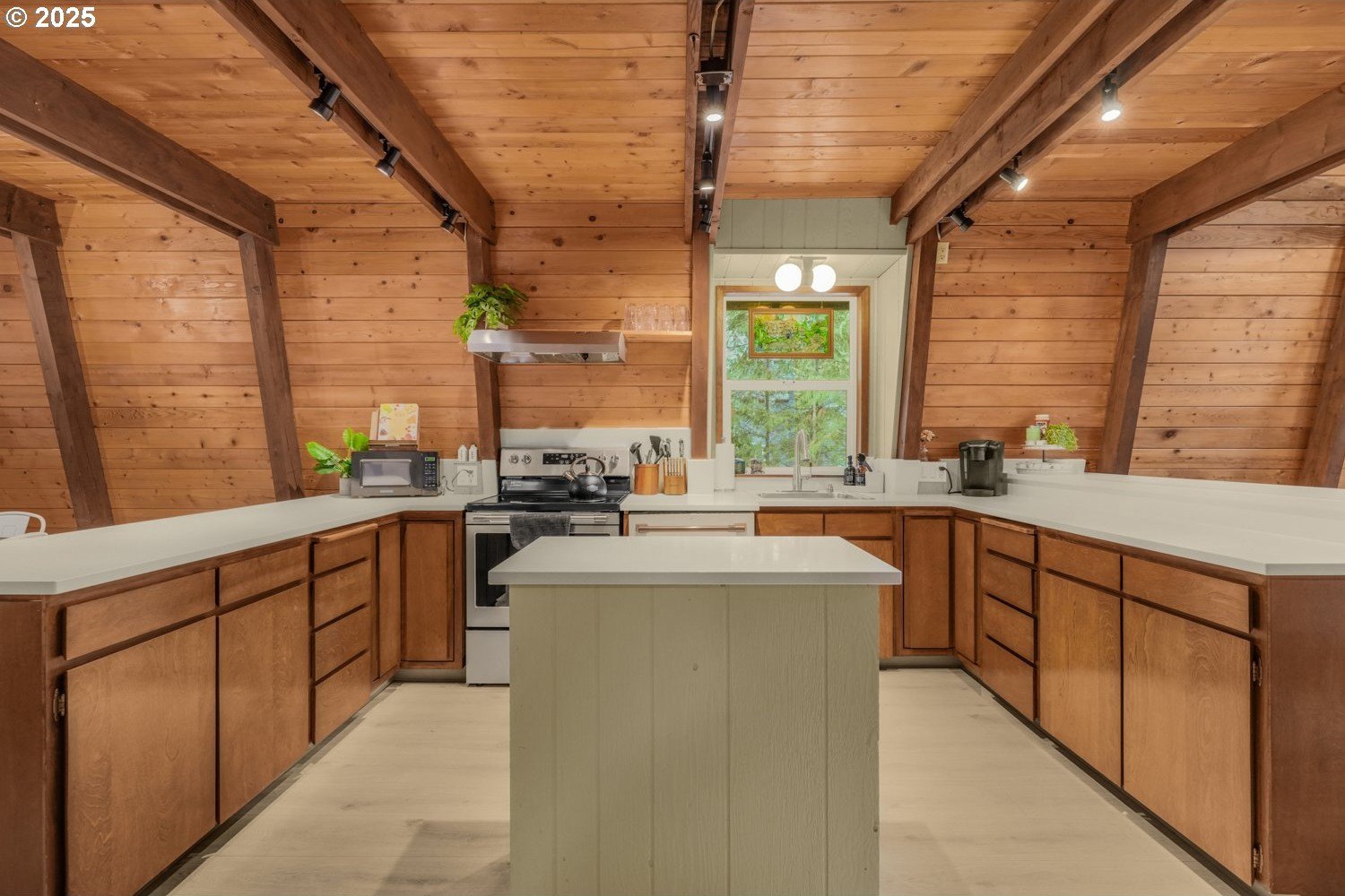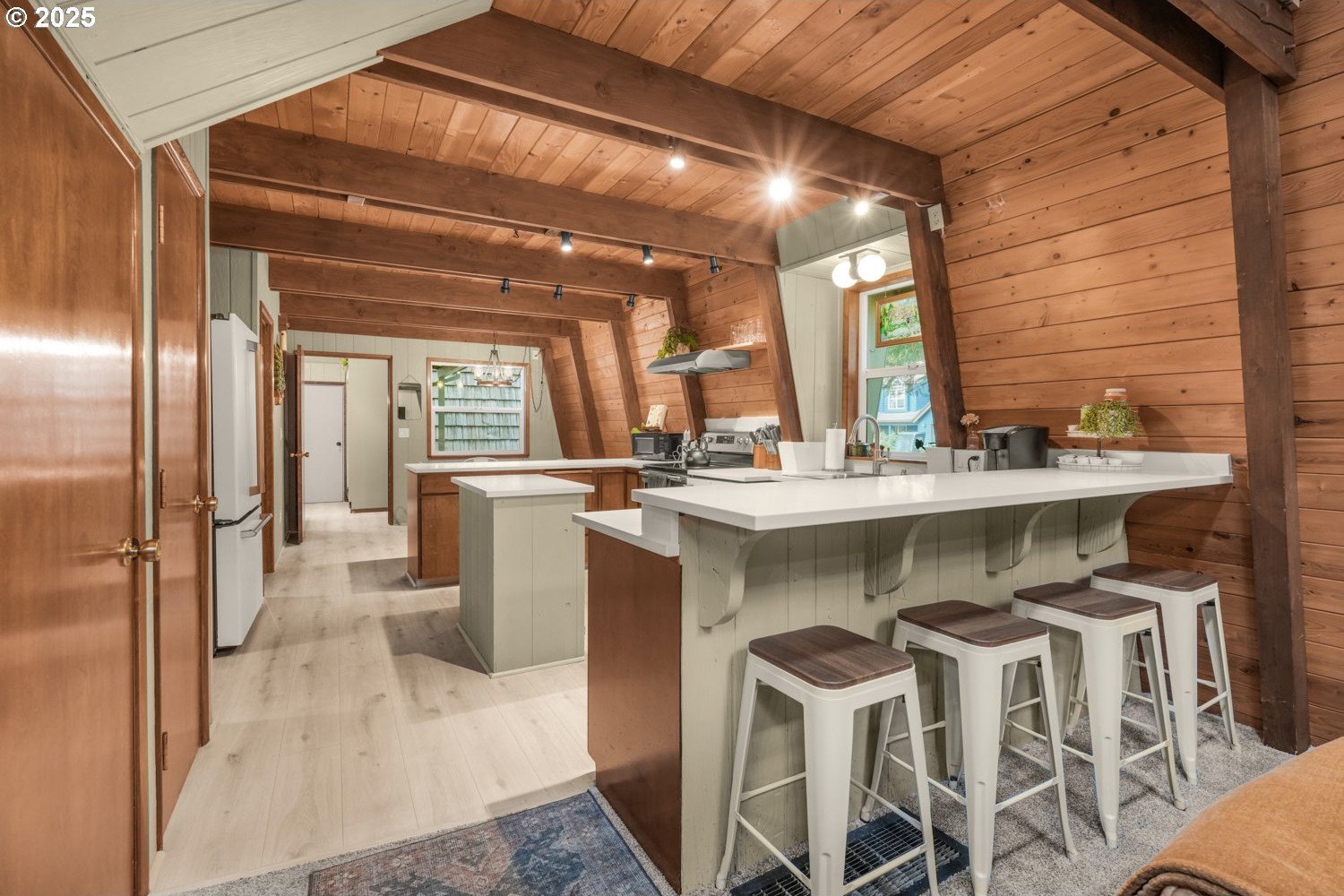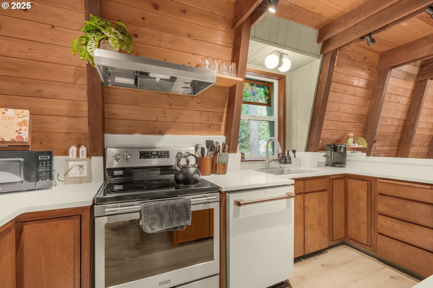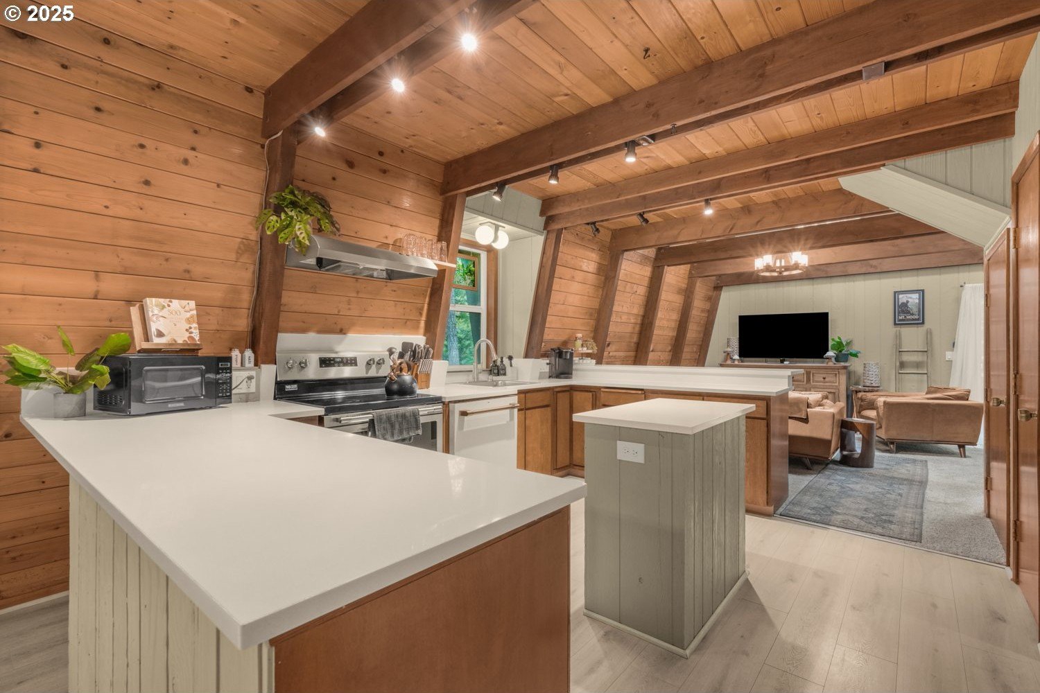 Welcome to this beautifully updated 3-bedroom, 1.5-bath home in the desirable Timberline Rim community of Rhododendron on a massive corner lot. Currently operating as a successful vacation rental, with the option to purchase fully furnished, this property offers a perfect blend of comfort, charm, and investment potential. Just about an hour from Portland, this mountain retreat provides year-round access to world-class hiking, skiing, and the charm of local restaurants and nature at your doorstep. With 1,792 sq. ft. of living space on nearly a .25 acre wooded lot, the setting offers both privacy and tranquility. You'll also be just a short walk to the Sandy River, ideal for fishing, kayaking, or peaceful strolls along the water. The Timberline Rim community offers exceptional amenities including a pool, tennis and basketball courts, and access to scenic common areas that's perfect for recreation and relaxation. Inside, the home shines with thoughtful updates including fresh interior paint, and a stylish kitchen that blends rustic wood cabinetry with modern quartz countertops. The open-concept living area has soaring vaulted ceilings and a cozy wood-burning stove, creating a warm, inviting space to unwind after a day of mountain adventure. All three bedrooms are spacious and versatile, while the updated bathrooms showcase a modern, clean design. Step outside to your private backyard, complete with a hot tub, hammock chairs, and forested serenity making it an ideal place to relax and recharge. Whether you're looking for a primary residence, vacation home, or turn-key rental investment, this property offers it all. Don't miss your chance to own this stunning mountain getaway in one of Rhododendron's most sought-after neighborhoods.