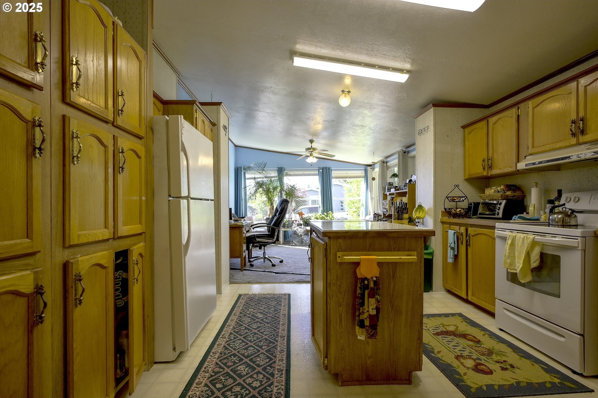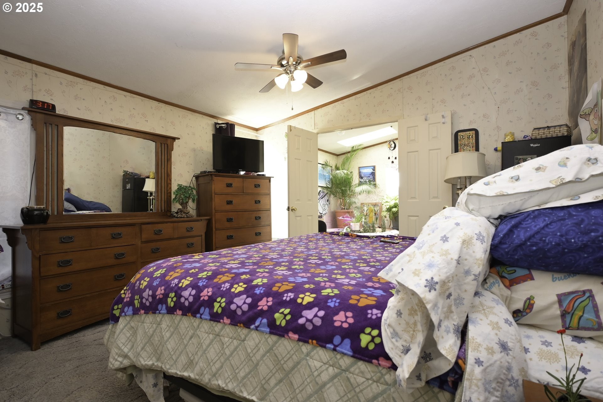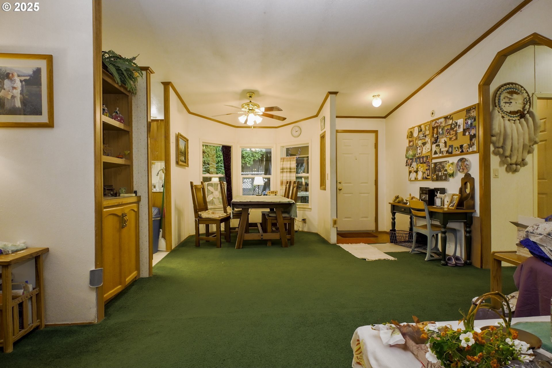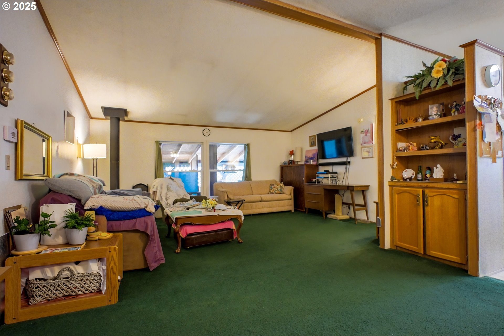 3 bed 2 bath home, 1620 SQ ft. Features open kitchen adjoining the sunroom/family room, dining area, large living room with vaulted ceilings and wood burning stove. The Primary bedroom has a jetted tub, step in shower. 2 more bedrooms and a utility room with washer & dyer. Attached covered carport currently being used for storage and 1 car space, but could easily be turned back into a 2 car carport. Fully fenced front and back yards with a small deck. Roof replaced in 2018, furnace is about 5 years old and a newer hot water heater.This home is just in need of some cosmetic updating, it is a solid home just waiting for you to make it your own.Park Space Rent is $1276 per month- Covers Management, water and sewer.