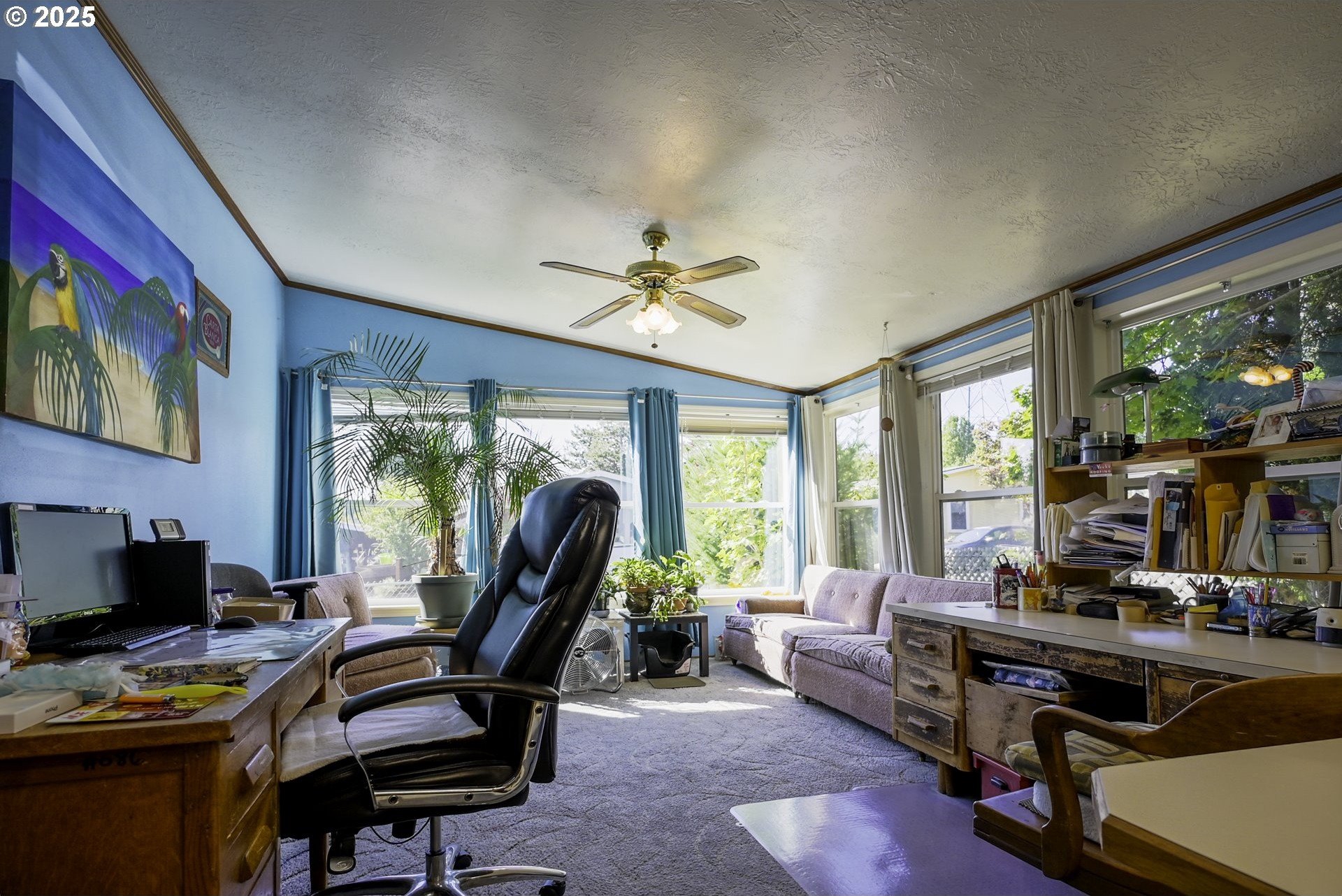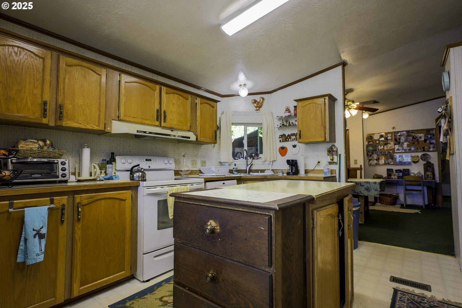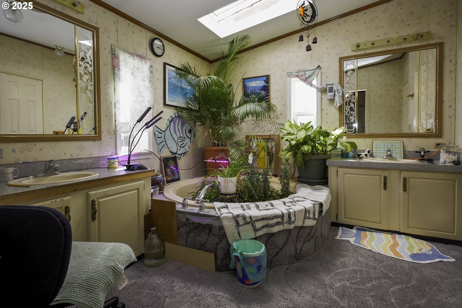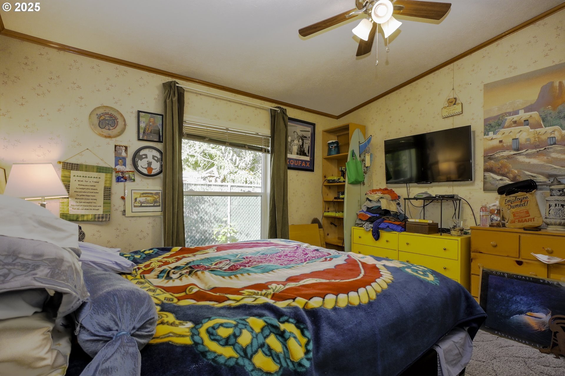 3 bed 2 bath home, 1620 SQ ft. Features open kitchen adjoining the sunroom/family room, dining area, large living room with vaulted ceilings and wood burning stove. The Primary bedroom has a jetted tub, step in shower. 2 more bedrooms and a utility room with washer & dyer. Attached covered carport currently being used for storage and 1 car space, but could easily be turned back into a 2 car carport. Fully fenced front and back yards with a small deck. Roof replaced in 2018, furnace is about 5 years old and a newer hot water heater.This home is just in need of some cosmetic updating, it is a solid home just waiting for you to make it your own.Park Space Rent is $1276 per month- Covers Management, water and sewer.