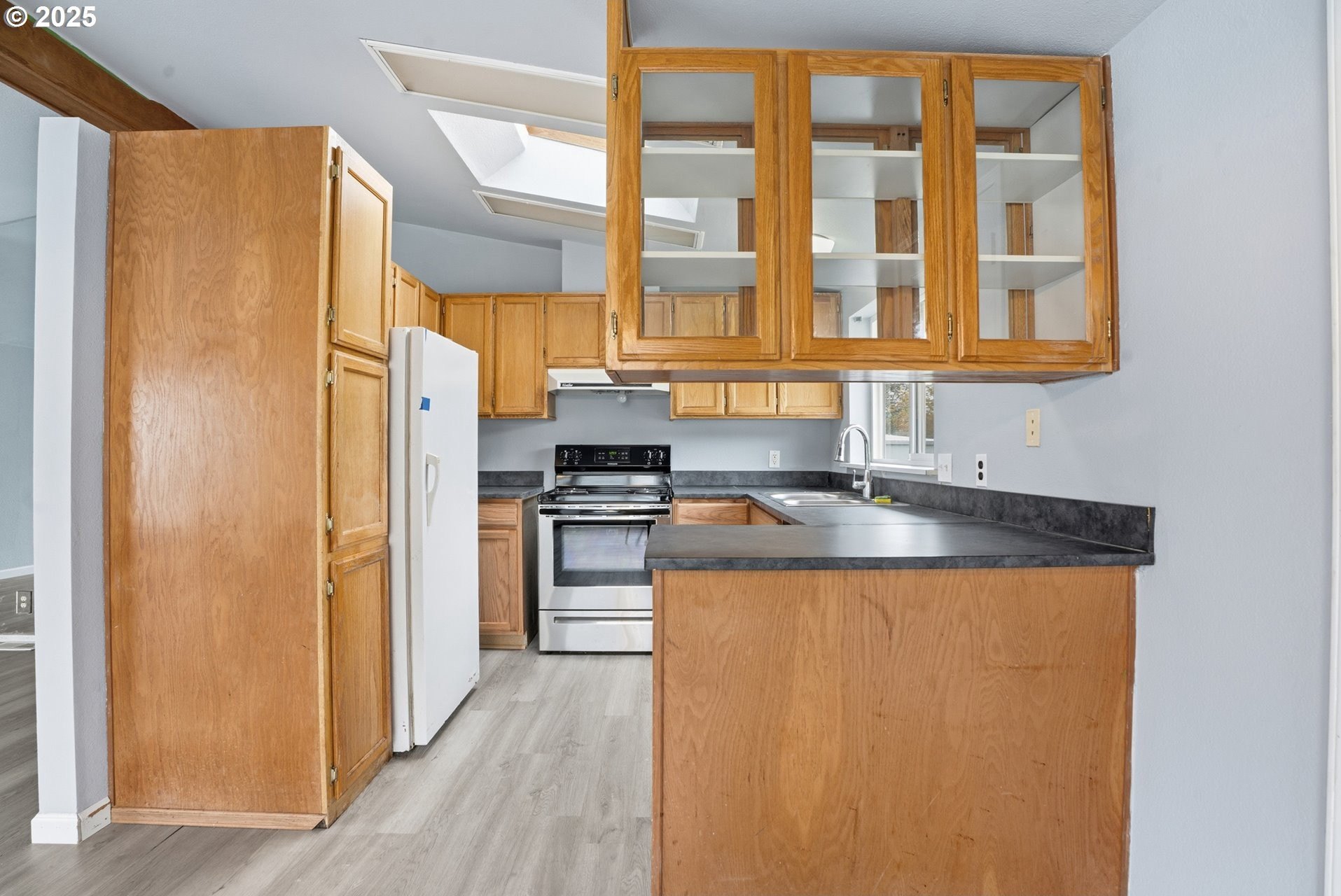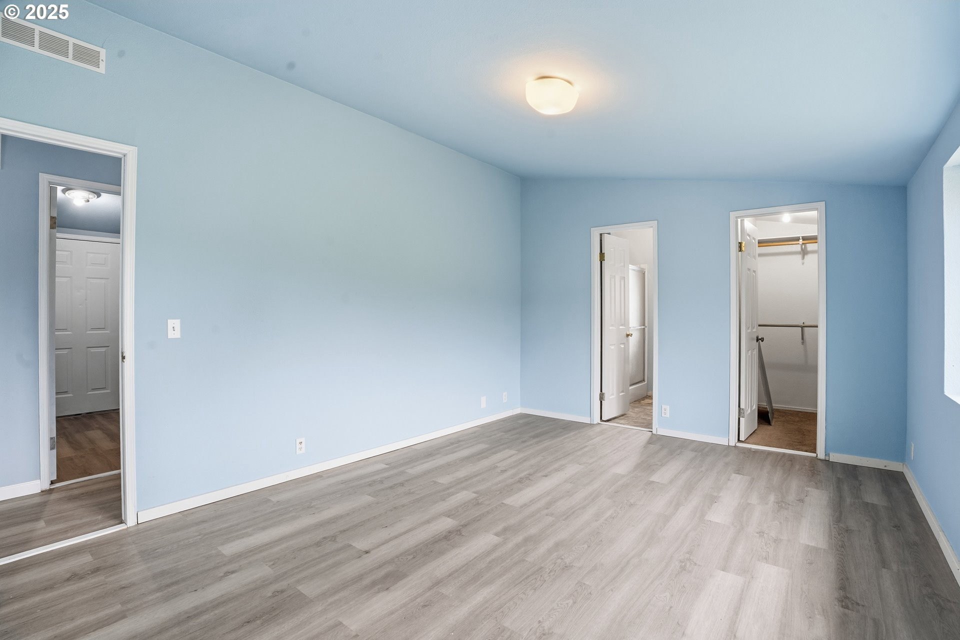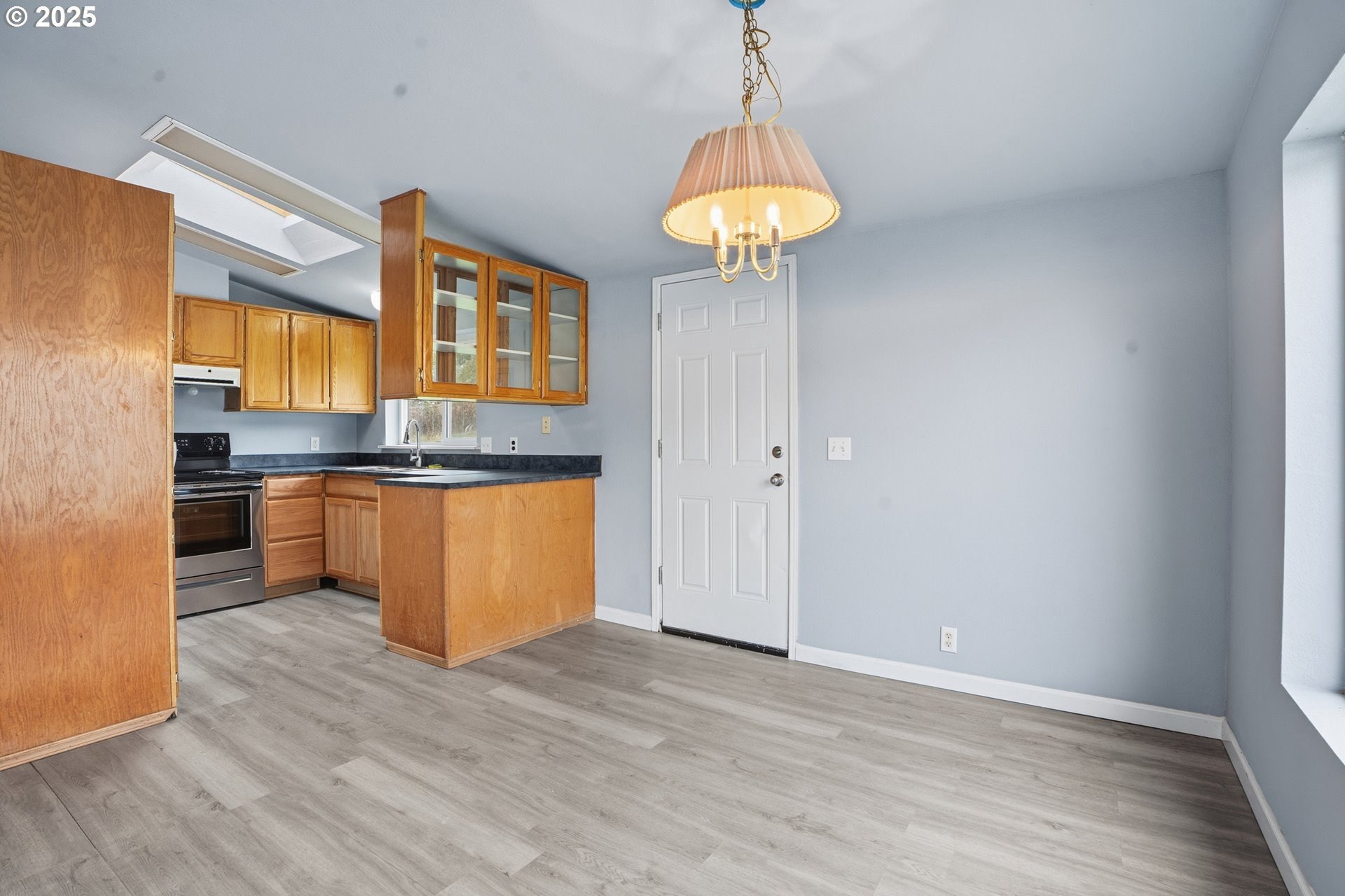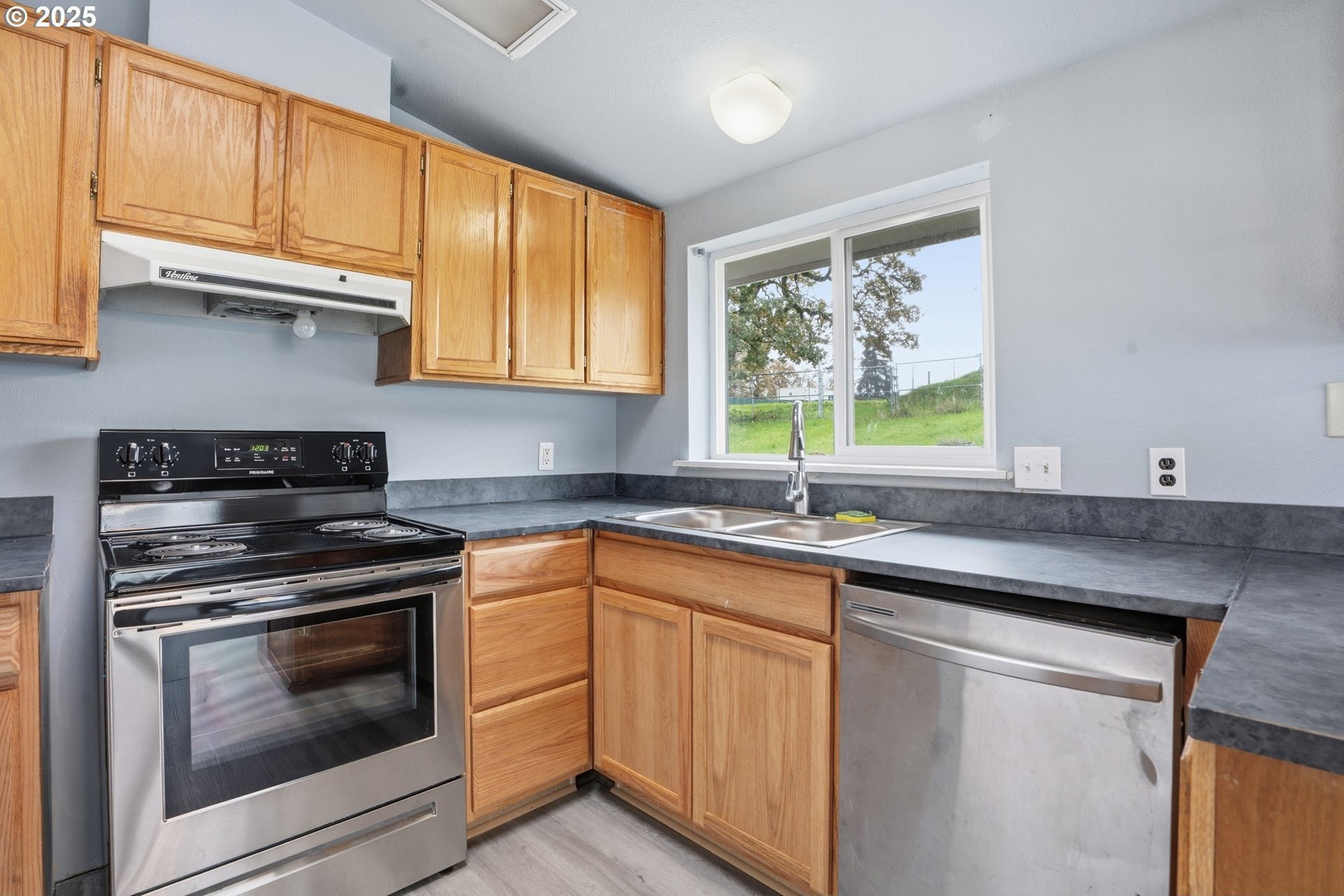 Airy, open-concept home in ALL AGES Park, in St. Helens, Oregon. OPEN HOUSE SUNDAY, NOV. 9, FROM NOON - 2:00PM. 2 bedrooms, 2 full baths, 1100 sf. Huge 100 x 40 lot. Vaulted ceiling. New vinyl plank flooring throughout, new interior paint throughout. Huge primary bedroom is 16" x 11.5", with ensuite bathroom and walk in closet. Kitchen has new SS stove and recent SS dishwasher. Double pane vinyl windows. Back deck and large, grassy (sloped) back yard. Single-car garage with garage door opener, and cement parking area for more two cars. Budget-friendly space rent of $575 a month. RV parking is available from the park for $25 a month. Park allows max two pets, with total weight of both pets together capped at 100 pounds. Please note, some dog breeds are prohibited.