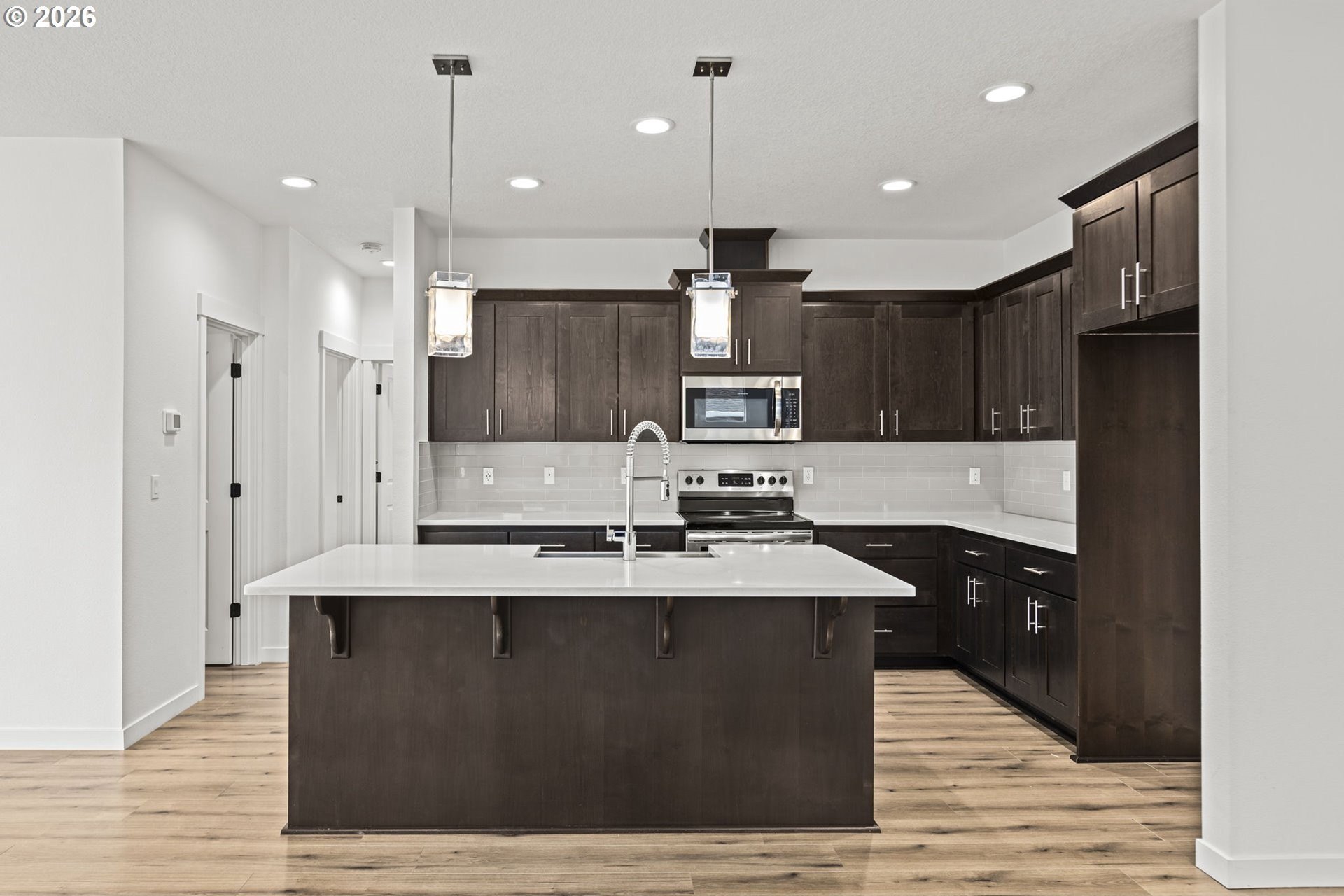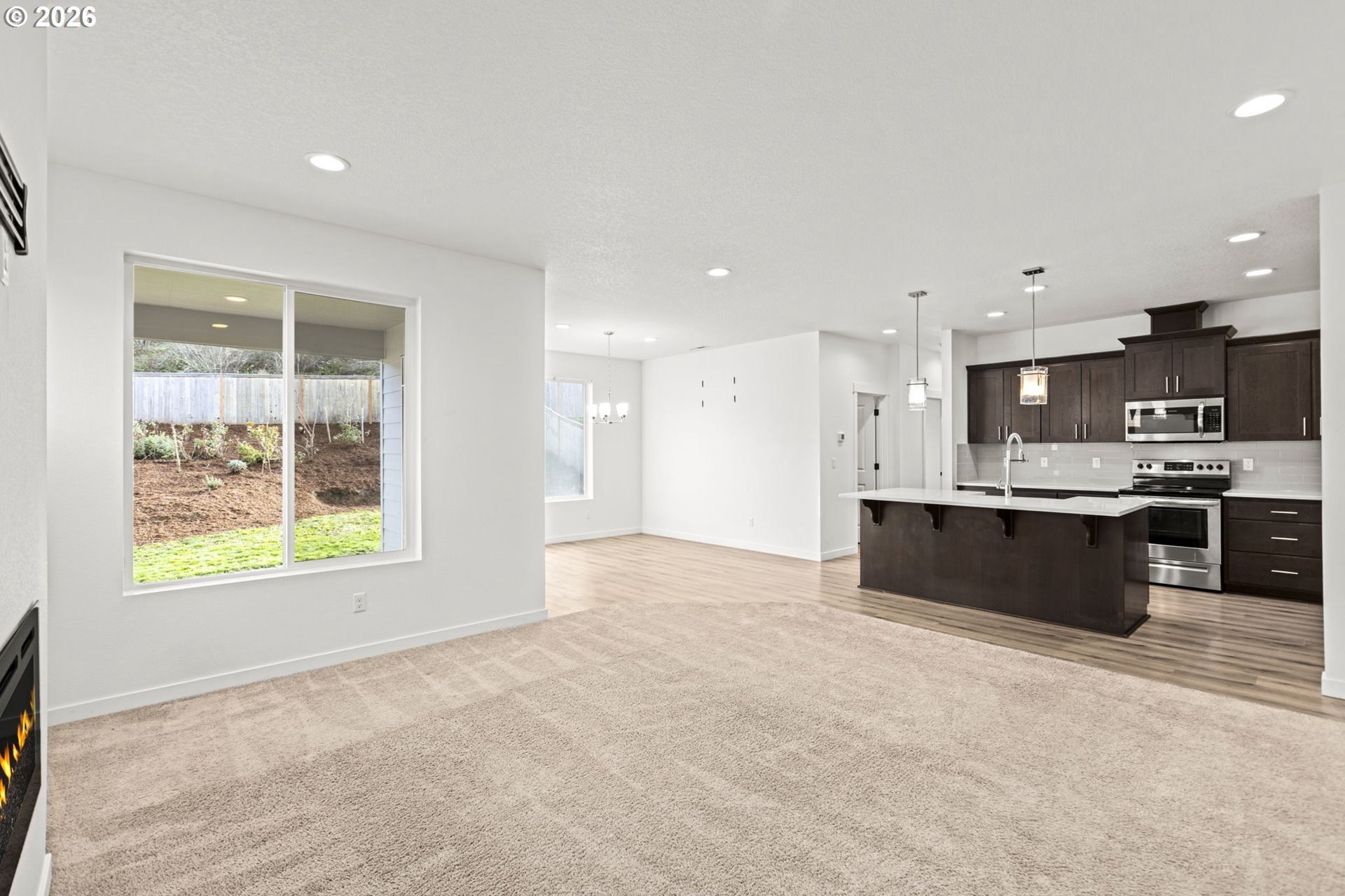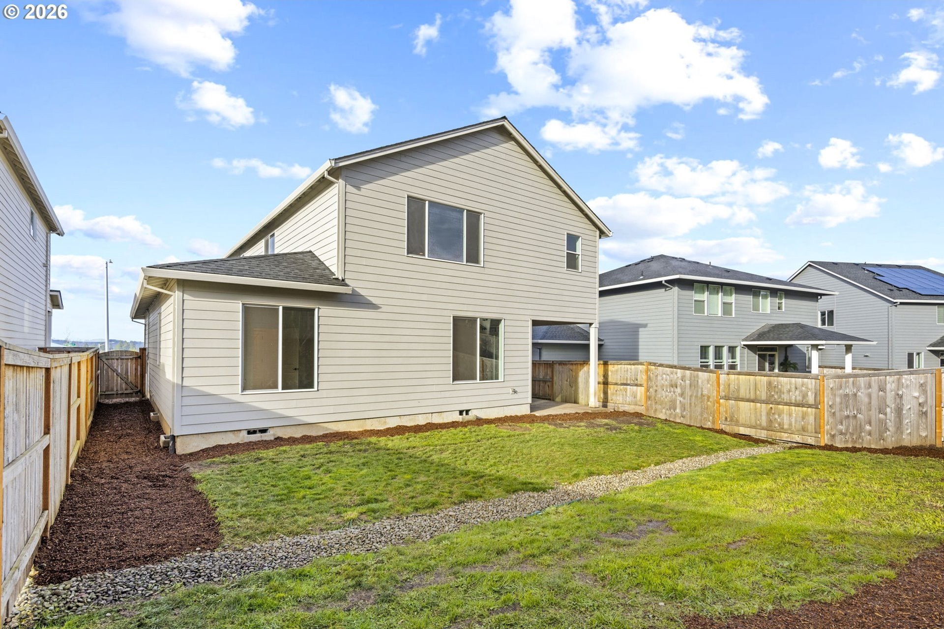 Welcome to this like-new, two-story home nestled on a quiet street in a beautiful, brand-new Estacada community. Offering 2,452 square feet of thoughtfully designed living space, this 4-bedroom, 3-FULL bathroom residence showcases modern luxury finishes and exceptional functionality throughout. The open and airy floor plan is ideal for both everyday living and entertaining, featuring high-quality materials, clean modern lines, and abundant natural light. The chef-inspired kitchen serves as the heart of the home with sleek cabinetry, premium surfaces, oversized island and contemporary fixtures, flowing seamlessly into the primary living area. A main-level bedroom and full bath provide flexibility for guests, a home office, or multigenerational living. Upstairs, an expansive loft bonus room allows for versatile and dynamic space. The spacious primary suite offers a spa-like bathroom and generous closet space, along with additional well-appointed bedrooms and baths. Every detail reflects the home's nearly new condition and modern design aesthetic. Step outside to enjoy a large backyard with room to relax, play, or garden, complemented by a covered patio-perfect for year-round outdoor entertaining. A rare 3-car garage adds ample space for vehicles, storage, or hobbies. Located in a peaceful, newly developed neighborhood, this home delivers the ideal blend of privacy, style, and convenience-just minutes from Estacada's outdoor recreation, shops, and dining.