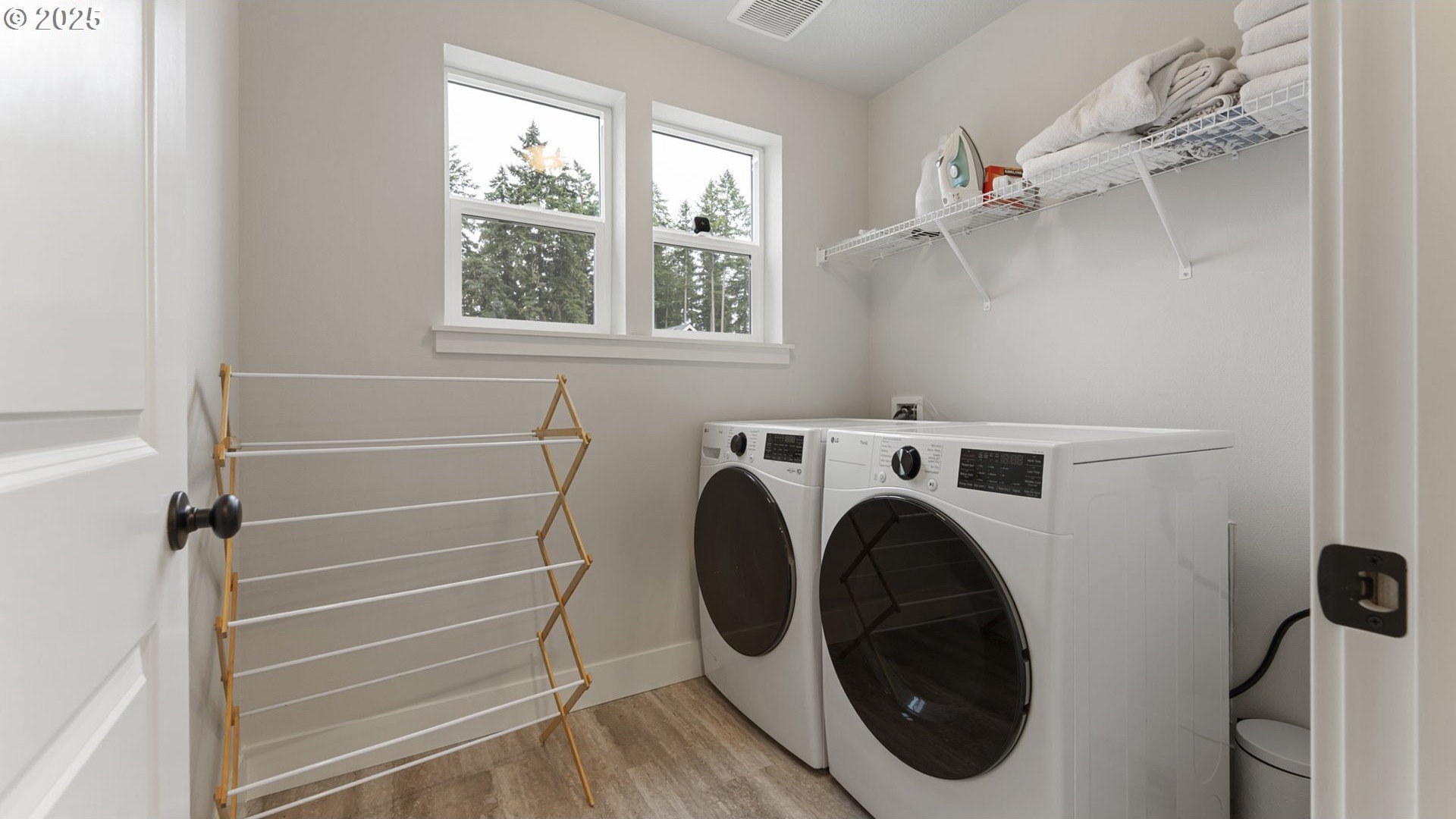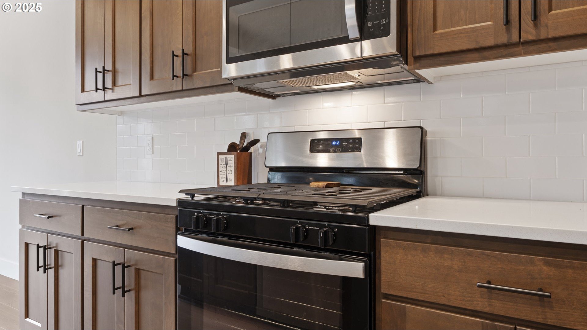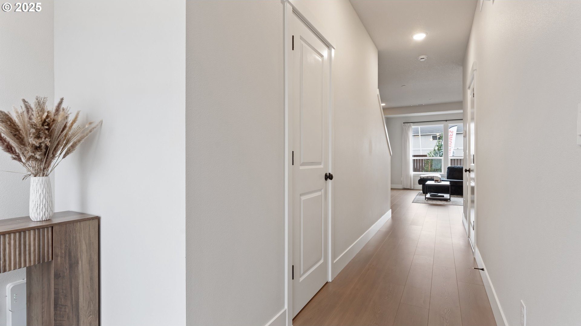 Welcome to the pinnacle of modern living in Hillsboro, OR! This almost brand-new, exquisite 1657 sq ft townhome offers an impeccable blend of style and energy efficiency with a perfect 10/10 energy score, and eco-friendly living, featuring 3 spacious bedrooms and 2.5 elegantly designed bathrooms. Experience the luxury of quartz countertops in the kitchen and baths and the sleek functionality of stainless steel gas appliances. The wide plank laminate flooring offers both durability and a sophisticated aesthetic, complemented by premium soft-close cabinets and drawers with matte finish hardware for a modern touch. Gather around the inviting gas fireplace, adding warmth and ambiance to your living area. A tankless water heater ensures on-demand hot water while offering energy savings, and the solar-ready construction makes it future-proof for eco-friendly enhancements. The home includes a washer/dryer for your convenience and a drop-down TV mount, seamlessly integrating into the living space. Convenience is key, with easy access to local shopping, dining, and major employers, as well as a community recreation center nearby, providing the perfect vibrant backdrop for modern living. Discover the perfect synthesis of comfort, style, and practicality in this exceptional townhome.