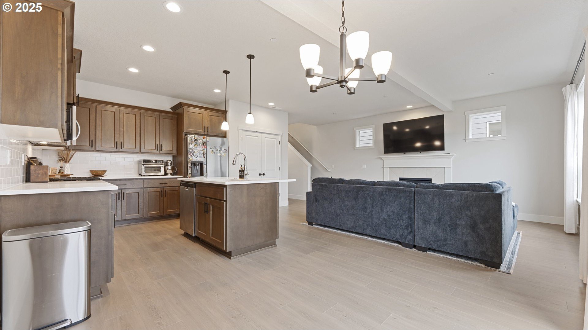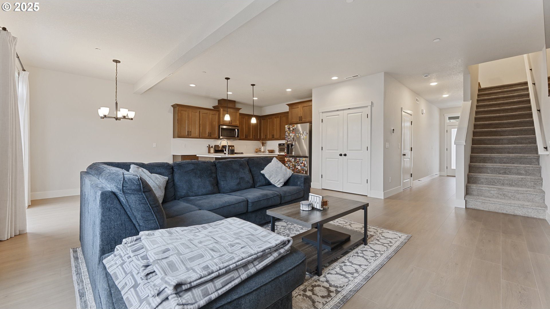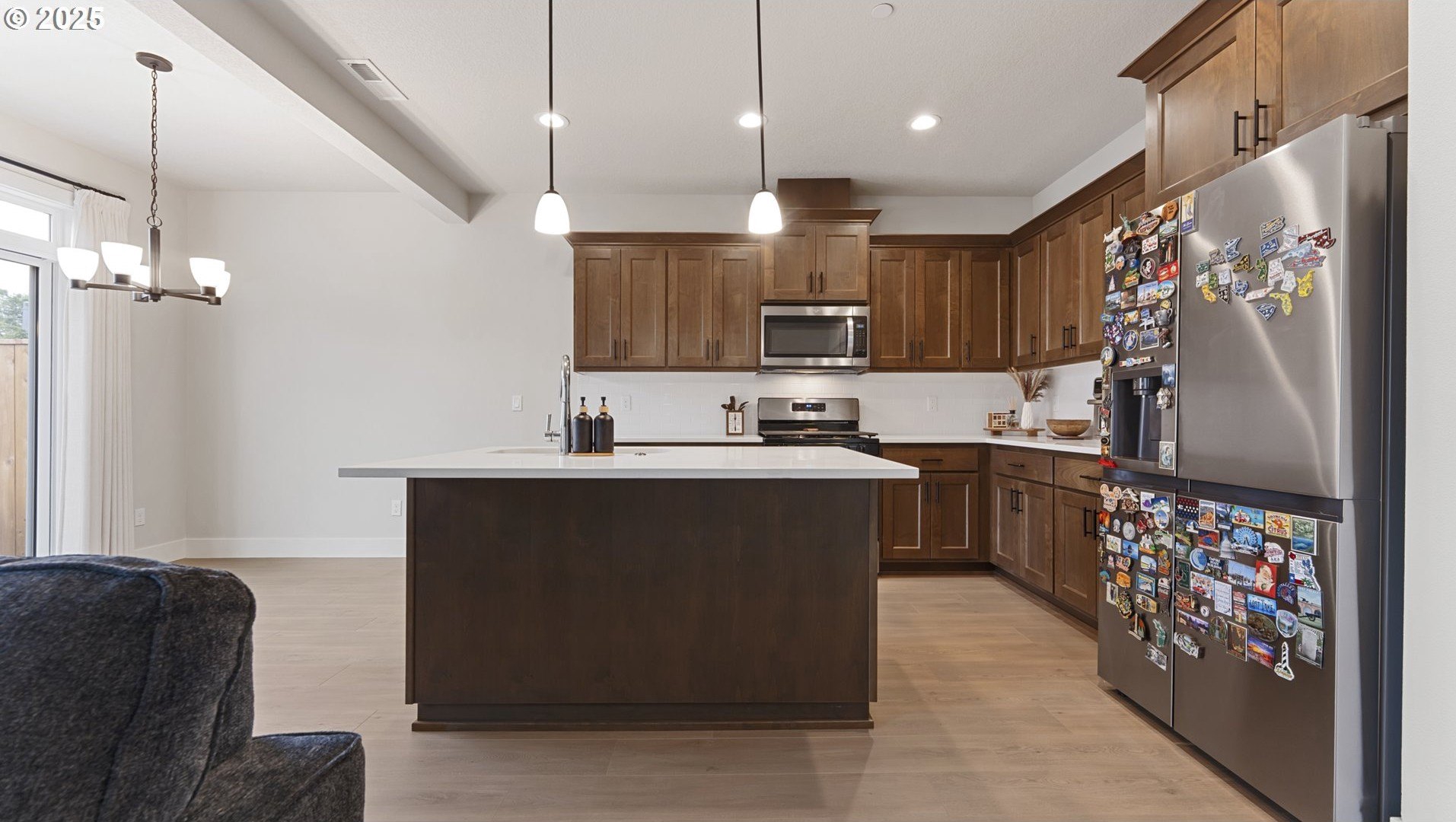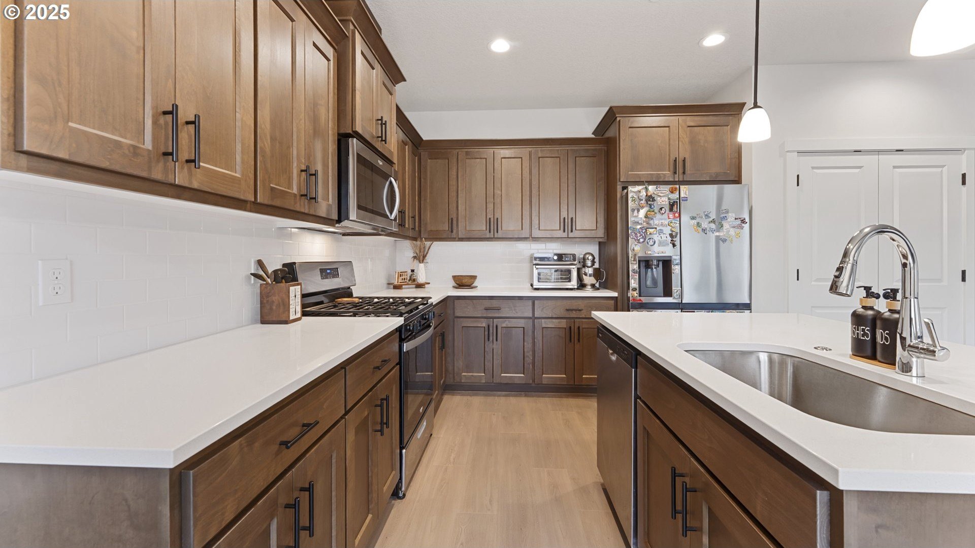 Welcome to the pinnacle of modern living in Hillsboro, OR! This almost brand-new, exquisite 1657 sq ft townhome offers an impeccable blend of style and energy efficiency with a perfect 10/10 energy score, and eco-friendly living, featuring 3 spacious bedrooms and 2.5 elegantly designed bathrooms. Experience the luxury of quartz countertops in the kitchen and baths and the sleek functionality of stainless steel gas appliances. The wide plank laminate flooring offers both durability and a sophisticated aesthetic, complemented by premium soft-close cabinets and drawers with matte finish hardware for a modern touch. Gather around the inviting gas fireplace, adding warmth and ambiance to your living area. A tankless water heater ensures on-demand hot water while offering energy savings, and the solar-ready construction makes it future-proof for eco-friendly enhancements. The home includes a washer/dryer for your convenience and a drop-down TV mount, seamlessly integrating into the living space. Convenience is key, with easy access to local shopping, dining, and major employers, as well as a community recreation center nearby, providing the perfect vibrant backdrop for modern living. Discover the perfect synthesis of comfort, style, and practicality in this exceptional townhome.