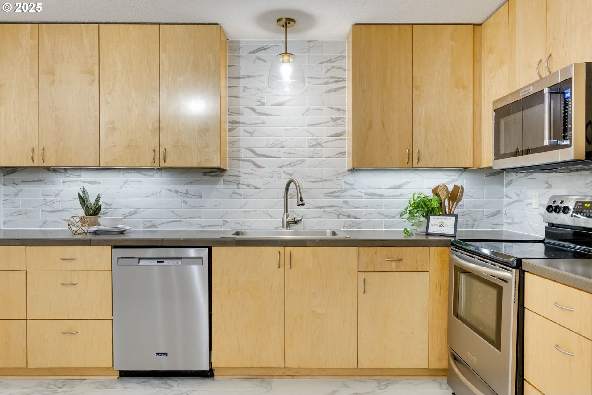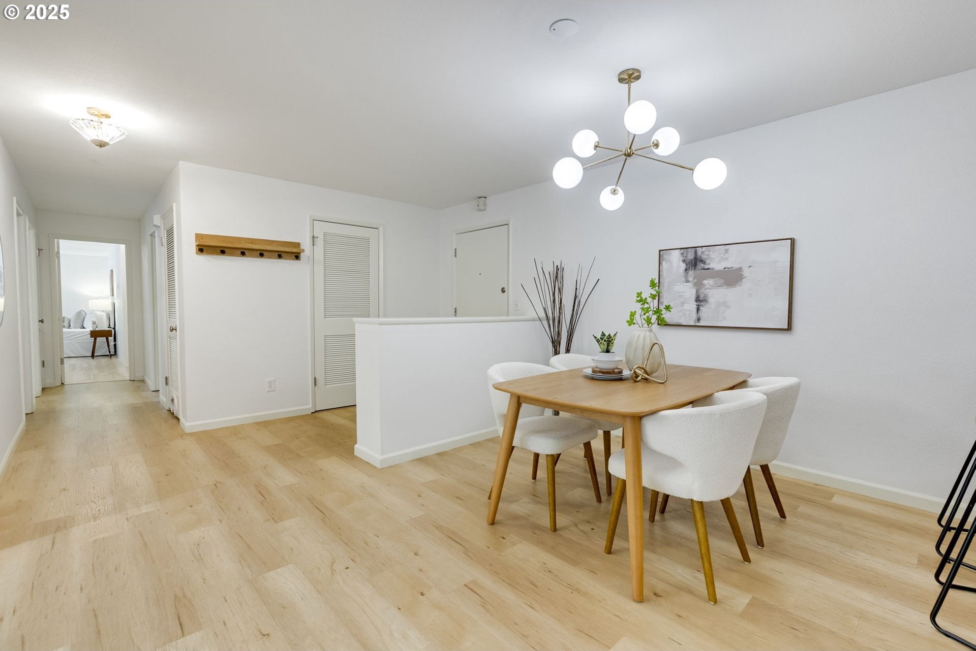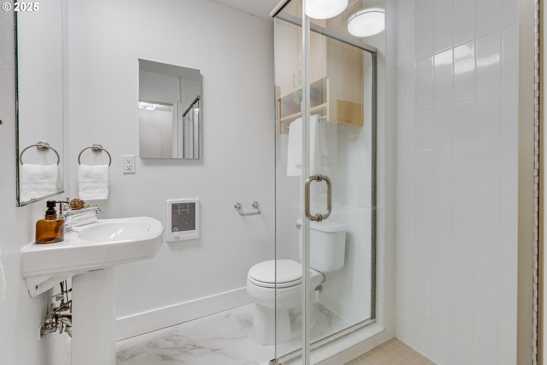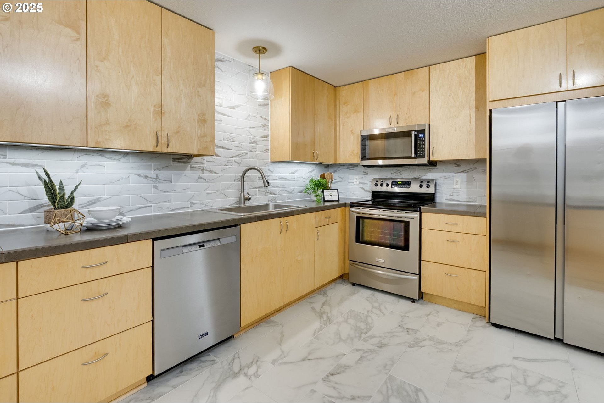 Discover a rare gem in one of Portland’s most sought-after communities. This expansive, single-level 3 bedroom, 2 bathroom condo offers a thoughtfully designed floor plan with a mid-century vibe. One of only two 3-bedroom units in the development, these condos rarely become available, so act fast. The layout is filled with natural light and flows effortlessly from room to room. The expansive great room showcases a wood-burning fireplace and timeless design, creating an inviting space for both relaxation and entertaining. The sleek kitchen boasts contemporary tilework and stainless-steel appliances, blending style and function seamlessly. Adjacent to the kitchen, the dining area offers definition without sacrificing the open-concept feel. The private primary suite features an en-suite bath, walk-in shower, and a dressing area that could easily serve as a home office. Two additional large bedrooms provide access to the oversized balcony, offering flexibility for guests, a home office space, or a creative space. Engineered wood floors throughout, a ductless mini-split system, and curated updates add comfort and sophistication. Enjoy the expansive covered balcony for year-round outdoor living, plus a large storage unit conveniently located adjacent to the condo and a covered parking spot in a secure, gated lot. The well-maintained community offers premium amenities, including two pools, a fitness center, secure bike storage, a meeting room, and dog-friendly spaces. A scenic trail connects the property to George Rogers Park and the riverfront. Spend tranquil evenings near the river or take a short drive to downtown Lake Oswego for boutique shopping, fine dining, Millennium Plaza Park, and the local Farmers Market. Whole Foods is nearby for everyday convenience. This condo combines modern comfort, timeless style, and a prime location; urban living at its finest.