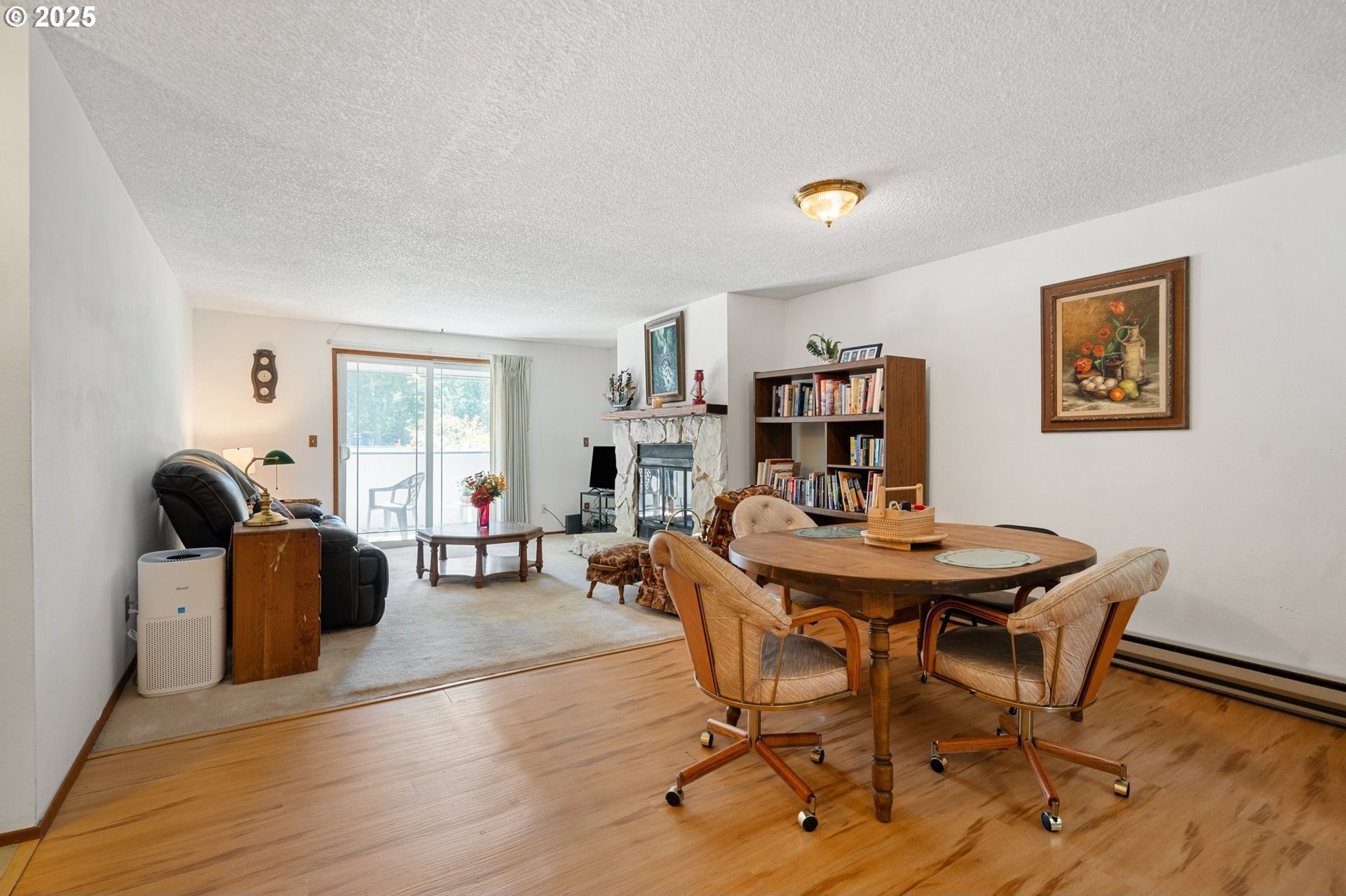 Nestled in the heart of Wilsonville, this charming 2-bedroom, 1-bathroom condo offers a perfect blend of tranquility, comfort and convenience. A full exterior refresh including fresh exterior paint, is complete. Recently updated with new LVP flooring throughout! A cozy living area is centered around a wood-burning fireplace for relaxation. Both the kitchen and bathroom are fully updated and appointed with high-efficiency appliances. The kitchen appliances are all stainless steel with a dual-drawer dishwasher. The laundry, with full-sized washer / dryer, means everything you need is at home. Each bedroom is a peaceful retreat with views of the surrounding trees. Easy one-level living also includes the community amenities: a pool, gym and dedicated parking. With its prime location, this condo is super walkable and just moments away from local parks, the city library, post office, shops, dining and entertainment options, ensuring a lifestyle of ease and accessibility. Whether you're a first-time homebuyer, looking to downsize or in the market for an investment property, this condo is a fantastic opportunity to experience the best of Wilsonville living. Ask about a seller credit. We are ready and motivated to help make this your new home!