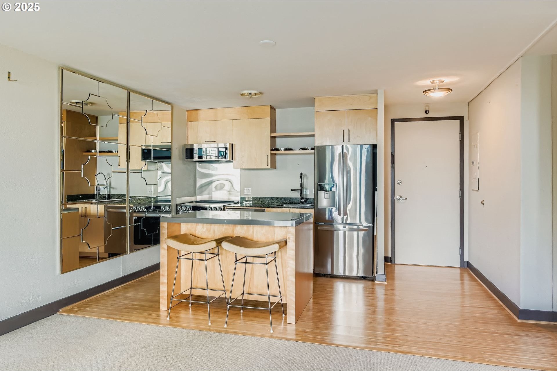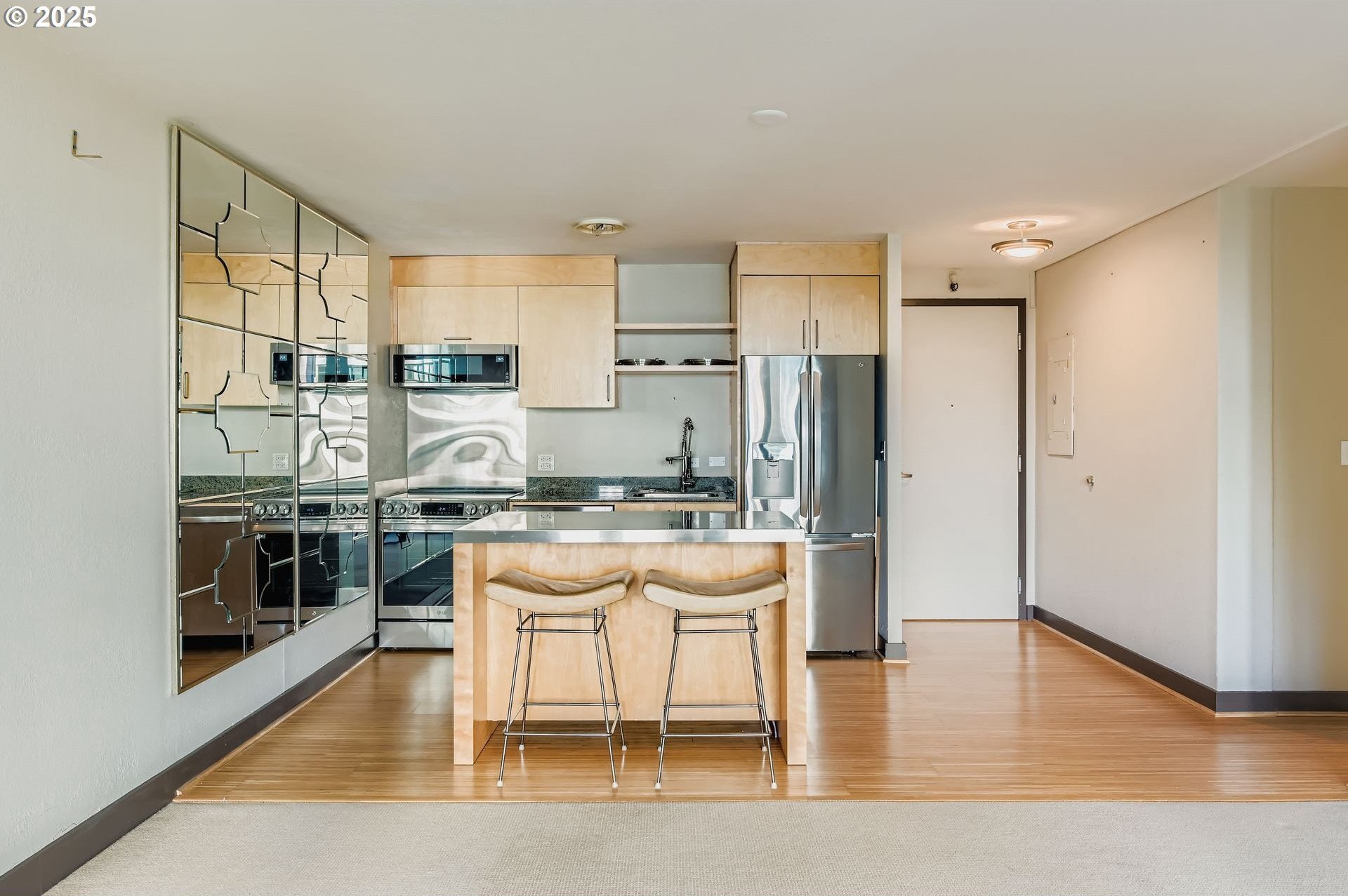 Experience the perfect blend of urban sophistication and natural serenity in this stunning west-facing unit at Harrison East, designed by the legendary architects Skidmore, Owings & Merrill. Enjoy gorgeous panoramic views of the downtown skyline and lush, tree-lined Pettygrove Park from your private terrace, ideal for relaxing or entertaining. Inside, the home boasts high-end, upgraded stainless steel appliances, modern finishes, and spacious interiors that elevate everyday living.This thoughtfully designed home includes a deeded, in-building parking space and a private storage unit, offering true convenience in the heart of the city.Located within the historically protected Halprin Open Sequence, a celebrated collection of interconnected parks and fountains, you’re just steps from PSU, OHSU, and all the vibrant culture, dining, and nightlife that Downtown Portland has to offer. Commuting is a breeze with Streetcar, MAX, and TriMet access right outside your door.