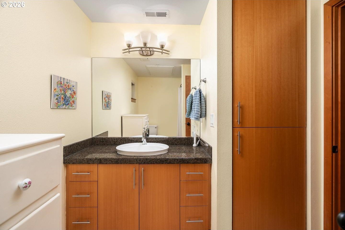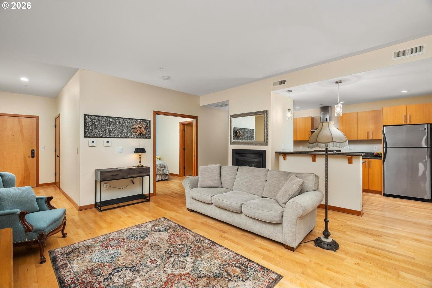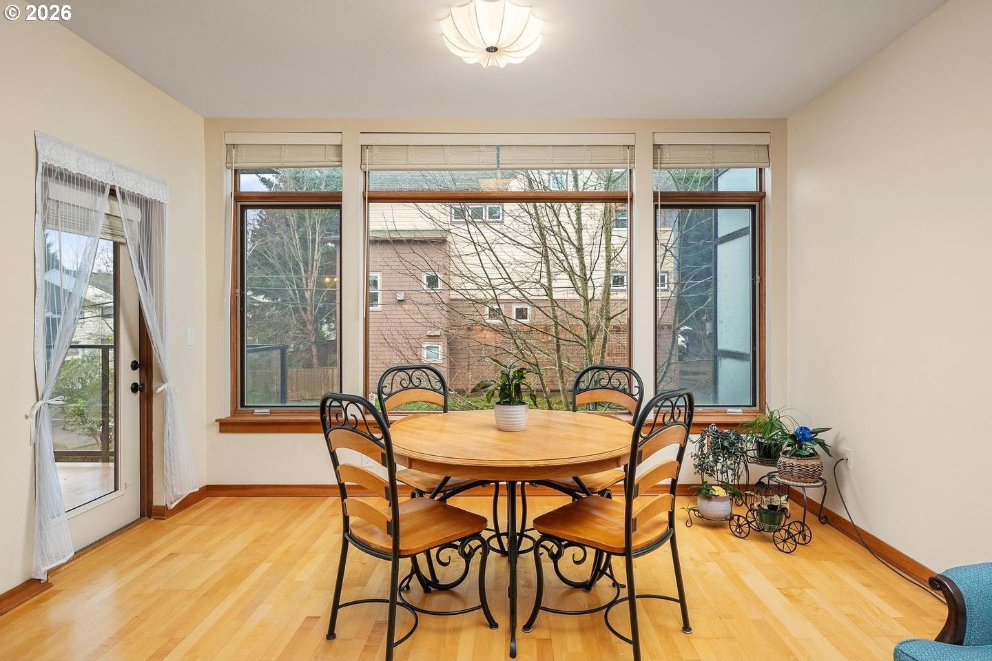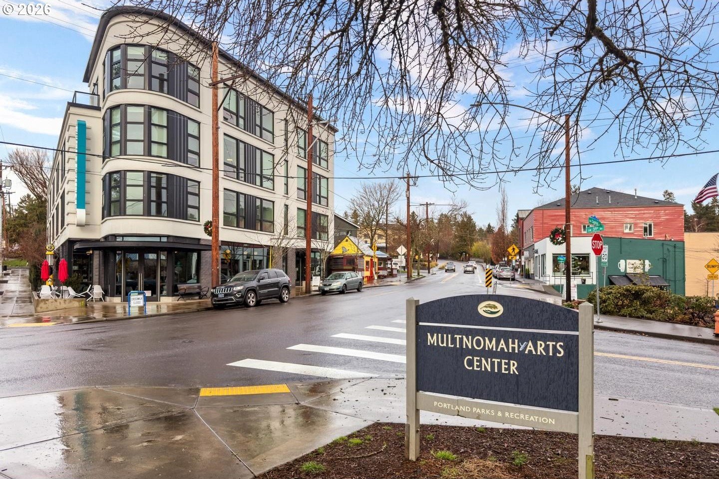 Newer, light-filled condo in the heart of Multnomah Village. Great room with fireplace and wall of windows open to kitchen featuring slab granite counters and stainless gas appliances. Spacious bathroom with subway tile tub/shower, slab granite vanity and tile floor. Nine foot ceilings and extensive hardwood floors. In-unit laundry and centralized forced air heating and air conditioning. Dedicated deck and garage parking spot. Within two tenths of a mile to Village Coffee, Grand Central Bakery, Marco's Cafe, Lucky Lab Public House, Down to Earth Cafe, Yalla and many independent boutiques and shops. Walk score 87, very walkable.