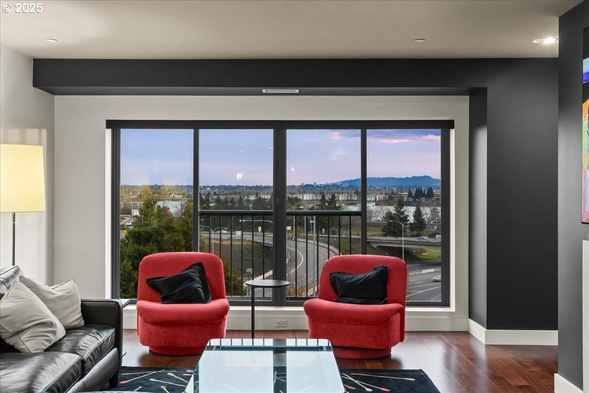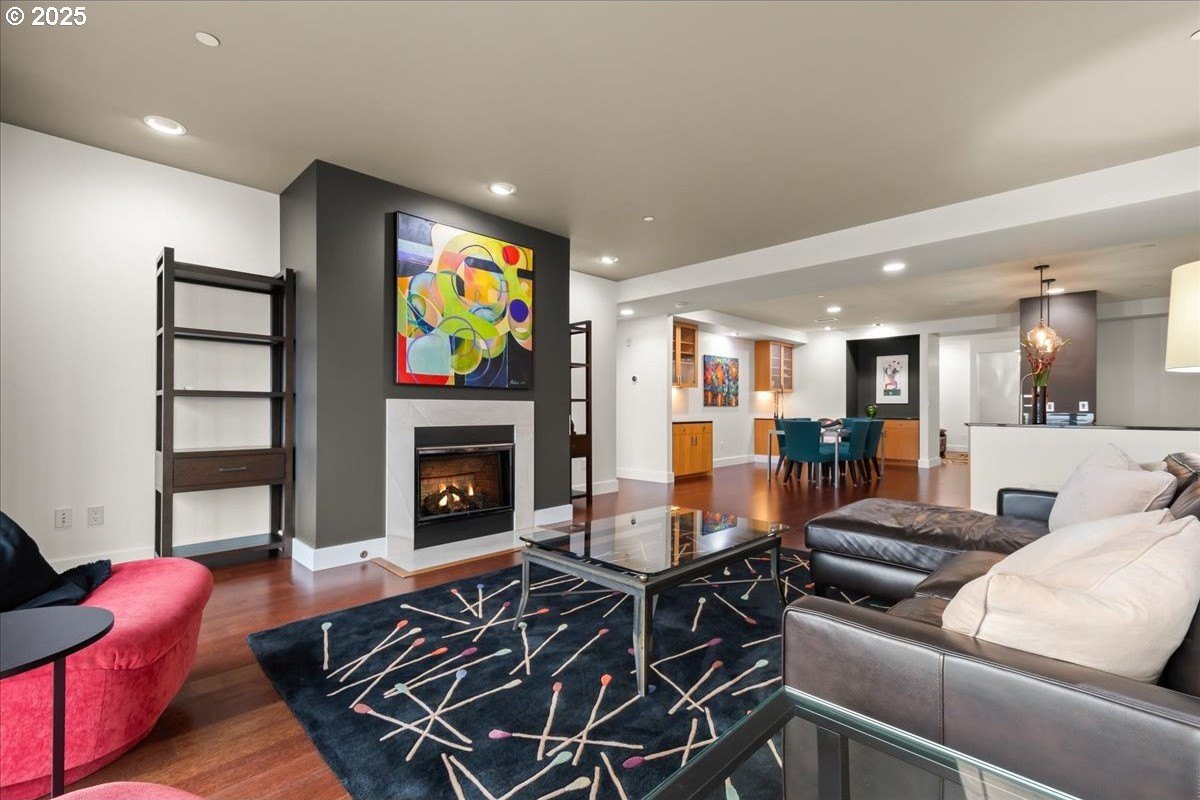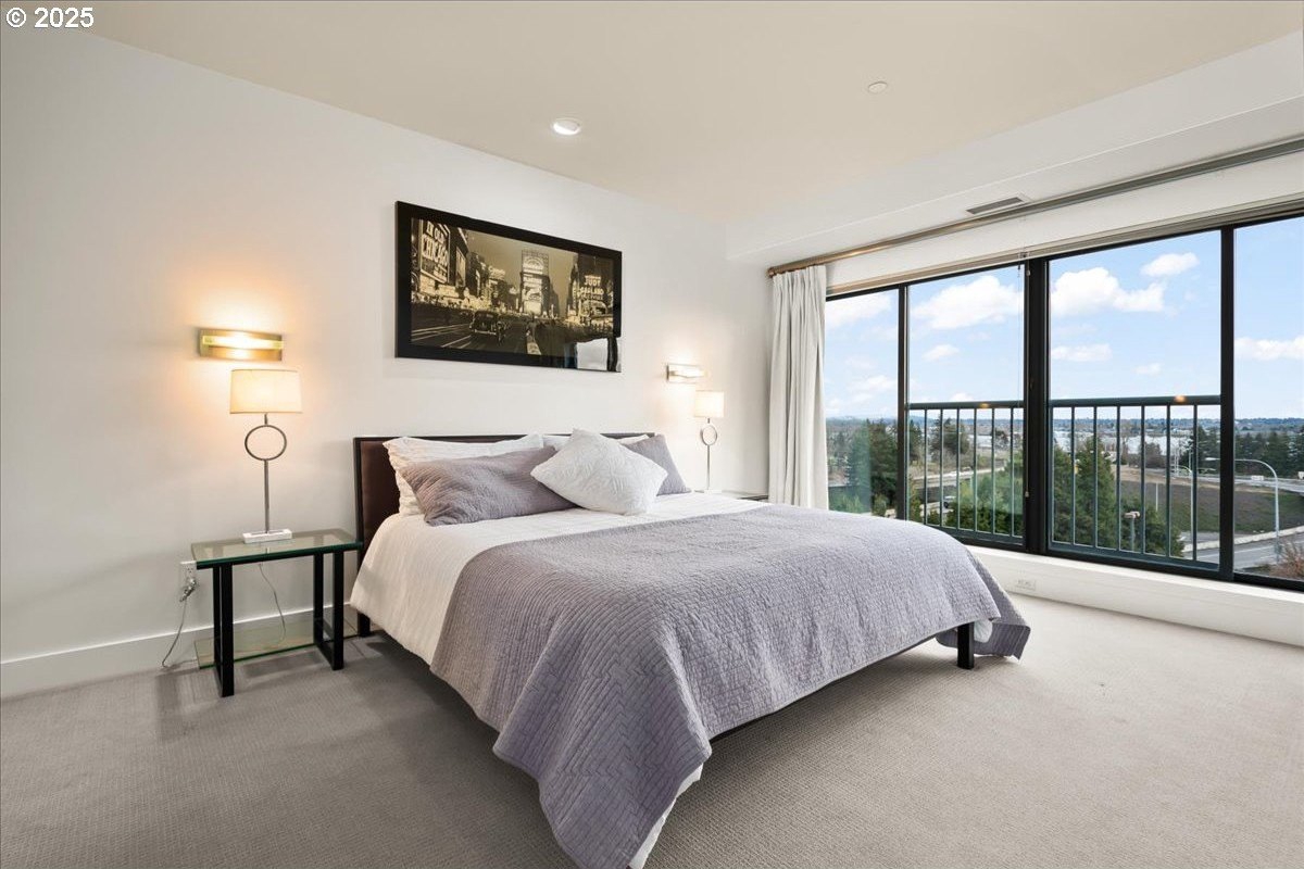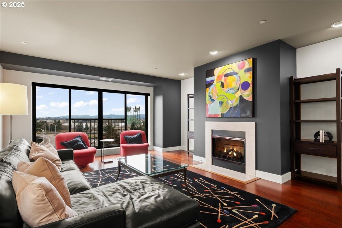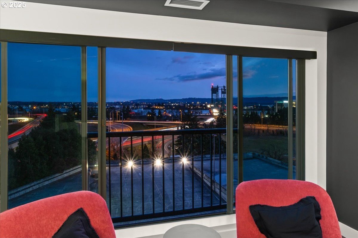Take in spectacular views of sunsets, the Columbia River, and Portland city lights, from this spacious, one level condo that is move-in ready with a recently painted interior. Enjoy the conveniences of living in downtown Vancouver & the secure and easy lifestyle of being able to lock your door and leave for extended periods of time. Visiting the Vancouver Farmers Market will become a weekly ritual, as well as stopping by your favorite Barista for your morning cup of coffee. Create lifetime memories with family & friends when you explore the downtown Waterfront’s walking and biking paths, fine dining & wine tasting at numerous restaurants & wineries, or shopping at the local boutiques. As you enter the condo, you’ll be drawn to the spacious great room with a wall of floor-ceiling windows that overlook the view. A cozy gas fireplace is a secondary focal point and can be enjoyed from the dining room and kitchen. Entertainers will delight with the size of the dining room that can accommodate an extra-long table for large gatherings or scale it down for more intimate gathers. There is plenty of storage space with built-in cabinets, upper cabinets with glass fronts for displaying your fine glass ware, and a convenient corner wet bar. The kitchen is well appointed with ample cabinet and counter space. Slab granite counter tops, stainless steel appliances, gas range with custom hood fan give the room a sleek look. Spacious bar counter is perfect for a morning breakfast bar or extra seating for guests. The primary bedroom is situated for privacy and a wall of windows overlook the view. Spacious walk-in closet with organizer offers plenty storage and ensuite bath has a second small walk-in closet, & walk-in shower with tile surround. Second bedroom has a wall of windows overlooking the view and across the hallway from full bath. Bonus room, currently used as a TV room, offers flex space. Gated, secured parking in basement, 2 deeded parking spots & deeded walk-in storage.