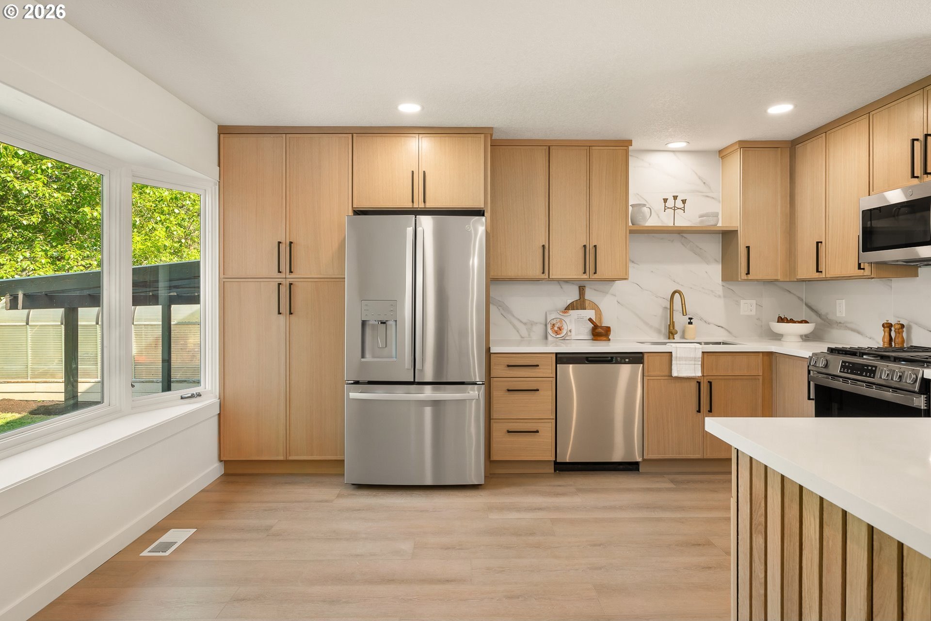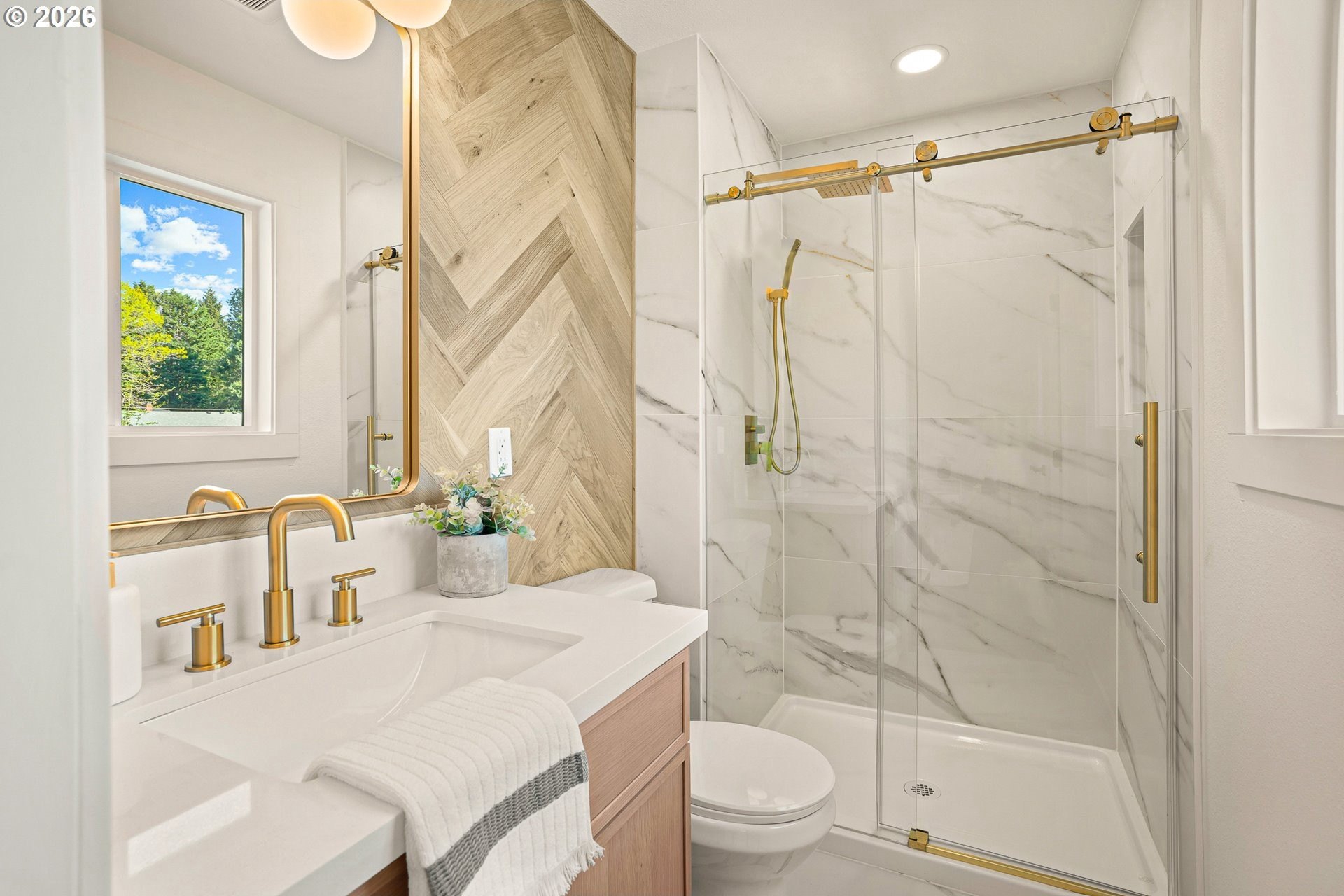 Don't miss this stunning 4-bedroom, 3-bathroom home where modern sophistication blends seamlessly with everyday functionality. Situated in the highly sought-after community of Lake Oswego, this beautiful residence offers an open-concept layout, high-end finishes, and thoughtful design details throughout. As you step inside, you're greeted by a welcoming sitting room and a versatile bedroom accompanied by a stylish full bathroom-perfect for guests or a home office. Sliding doors off the main floor open to a covered patio, creating a seamless indoor-outdoor living experience. The main living area is spacious and open, featuring contemporary finishes and large bay windows that fill the space with natural light. Downstairs, a cozy family room offers the perfect place to relax or entertain, with an additional bedroom, office space, and a full laundry room providing flexible living options for today's lifestyle. Upstairs, you'll find three more bedrooms, including the luxurious primary suite. The primary features an en suite bathroom complete with high-end finishes, a beautifully tiled walk-in shower, and generous closet space. Large windows in the bedrooms offer serene views and abundant natural light. Step outside to enjoy the expansive backyard-complete with a shed/garage for extra storage, and plenty of space for gardening, play, or entertaining. Located across the street from a pristine golf course, a short walk to the new Lake Oswego Recreation and Aquatics Center, and a block away from Lakeridge High School. Don't miss this rare opportunity to own a stylish, spacious home in one of Lake Oswego's most desirable neighborhoods.