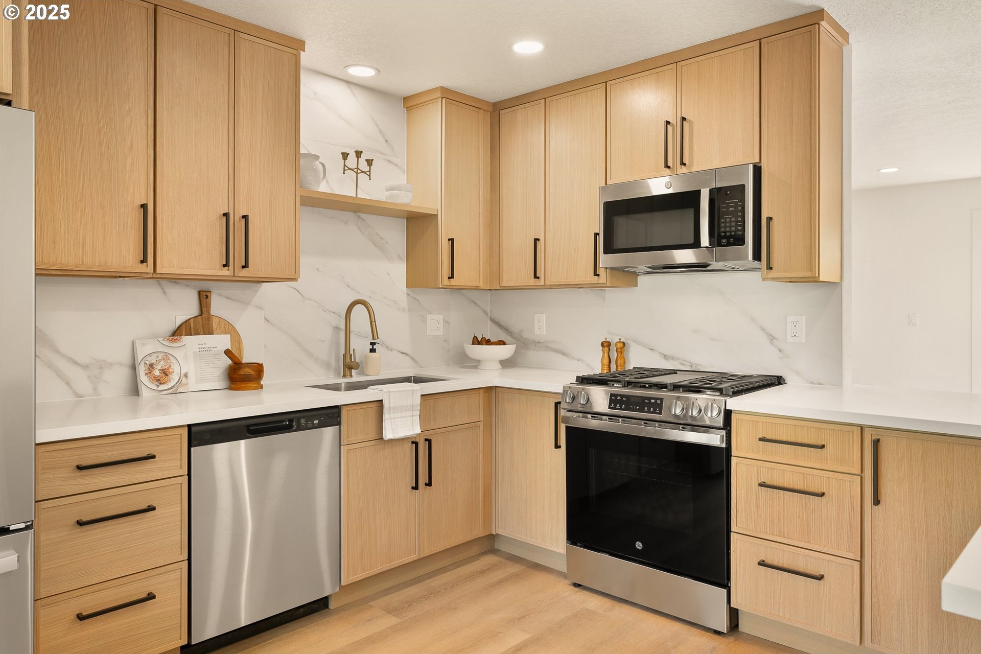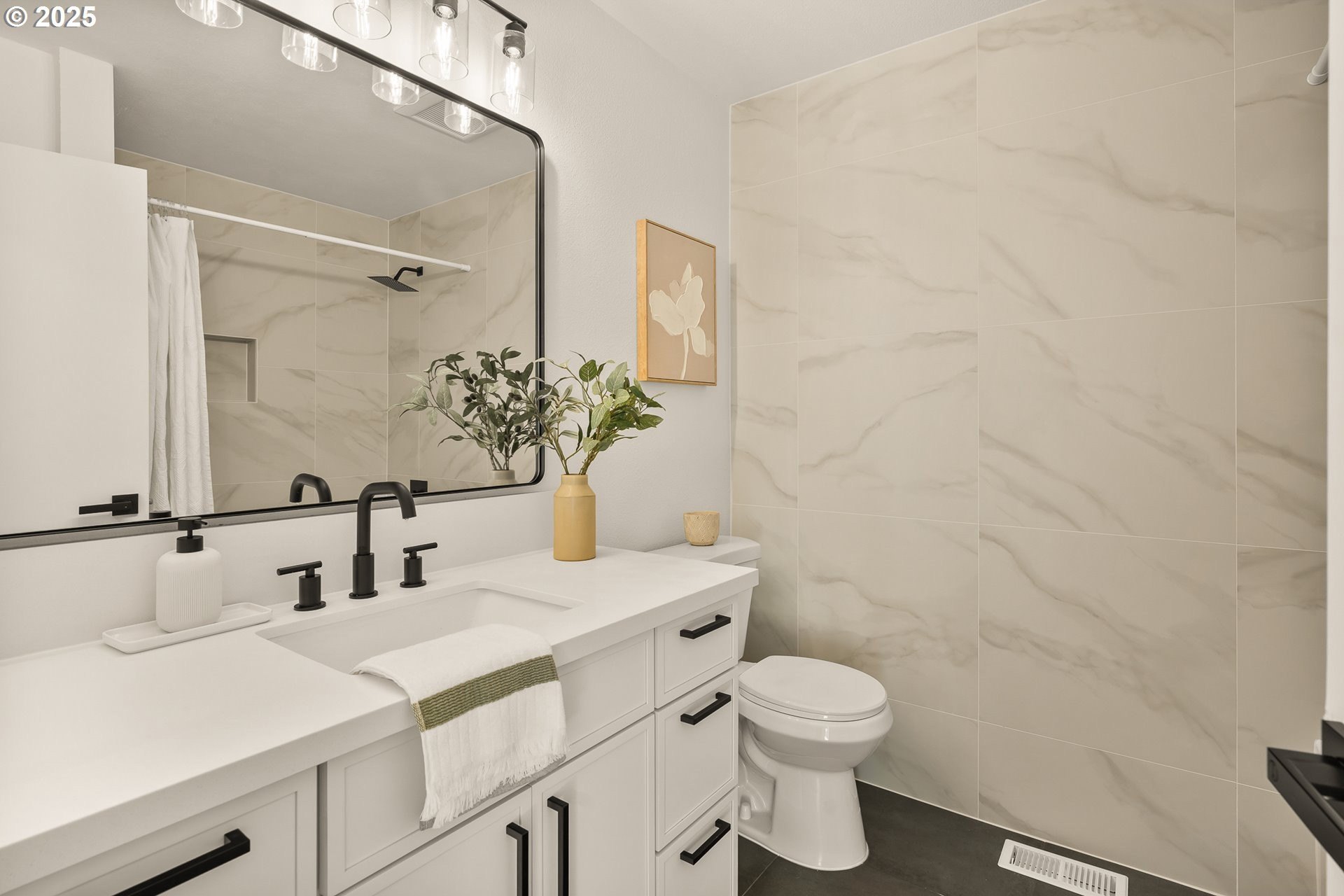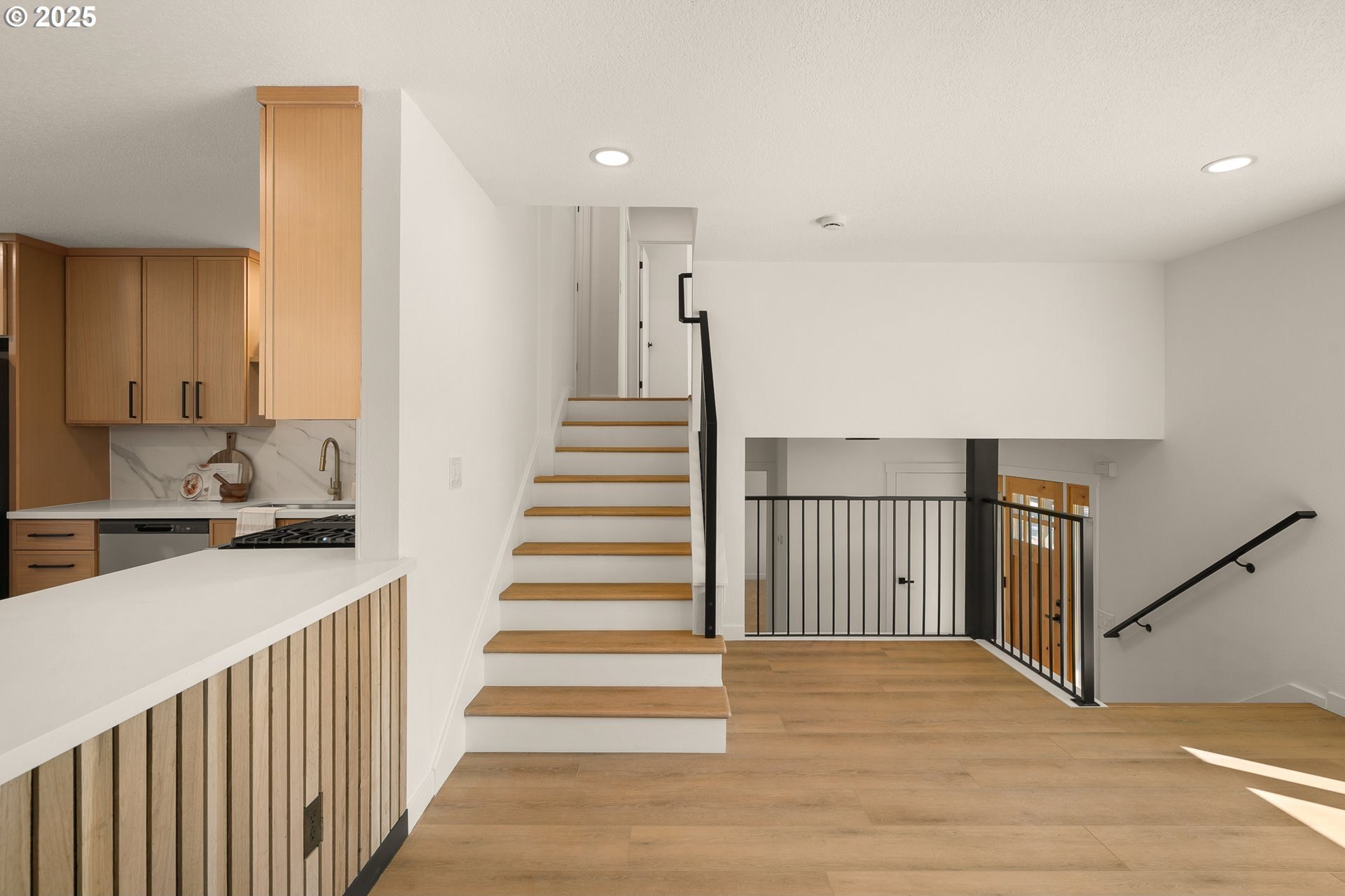 Don't miss this stunning 5-bedroom, 3-bathroom home where modern sophistication blends seamlessly with everyday functionality. Situated in the highly sought-after community of Lake Oswego, this beautiful residence offers an open-concept layout, high-end finishes, and thoughtful design details throughout. As you step inside, you're greeted by a welcoming sitting room and a versatile bedroom accompanied by a stylish full bathroom—perfect for guests or a home office. Sliding doors off the main floor open to a covered patio, creating a seamless indoor-outdoor living experience. The main living area is spacious and open, featuring contemporary finishes and large bay windows that fill the space with natural light. Downstairs, a cozy family room offers the perfect place to relax or entertain, with an additional bedroom, office space, and a full laundry room providing flexible living options for today's lifestyle. Upstairs, you'll find three more bedrooms, including the luxurious primary suite. The primary features an en suite bathroom complete with high-end finishes, a beautifully tiled walk-in shower, and generous closet space. Large windows in the bedrooms offer serene views and abundant natural light. Step outside to enjoy the expansive backyard—complete with a shed/garage for extra storage, and plenty of space for gardening, play, or entertaining. Located across the street from a pristine golf course, a short walk to the new Lake Oswego Recreation and Aquatics Center, and a block away from Lakeridge High School. Don’t miss this rare opportunity to own a stylish, spacious home in one of Lake Oswego’s most desirable neighborhoods.