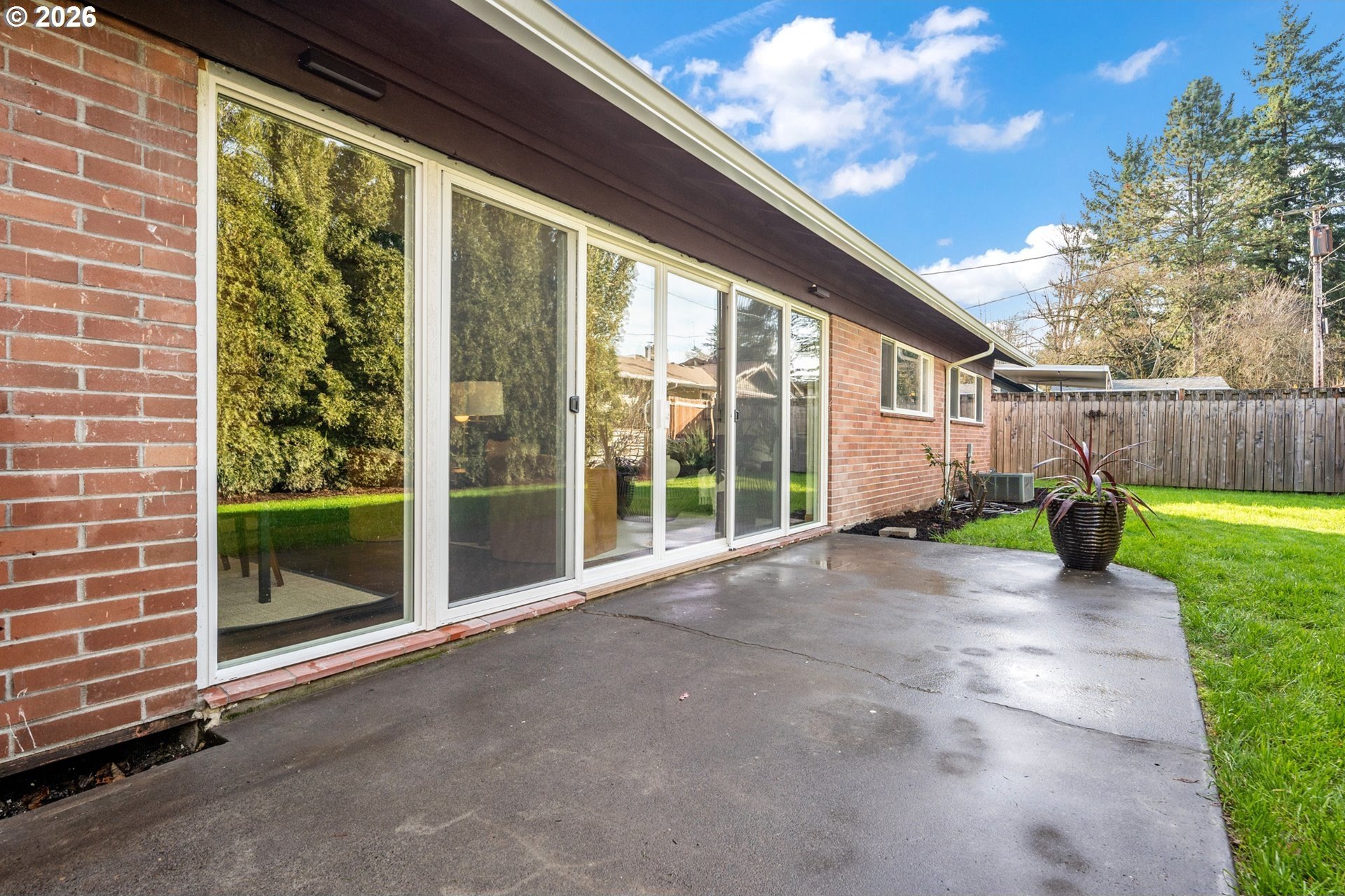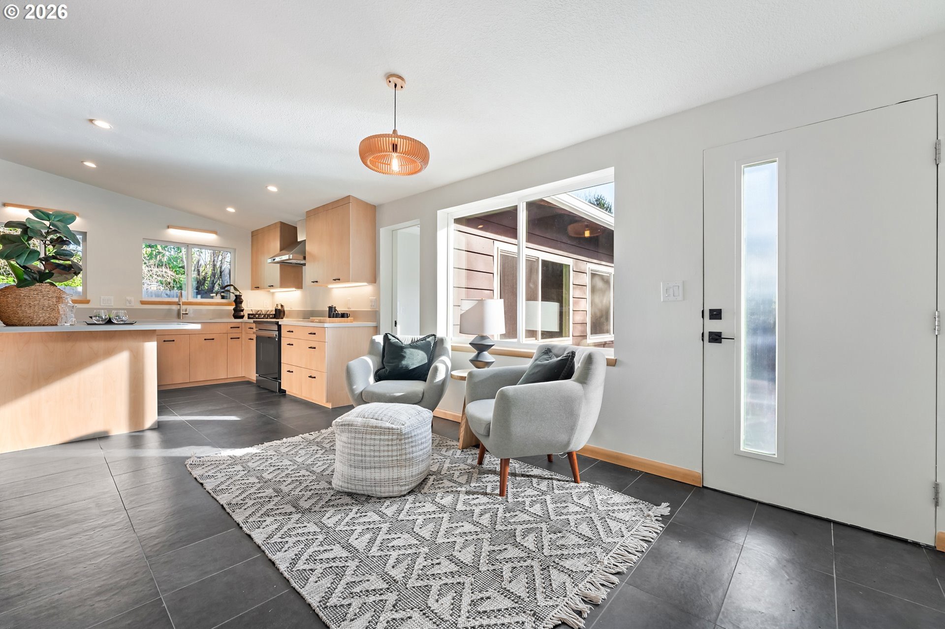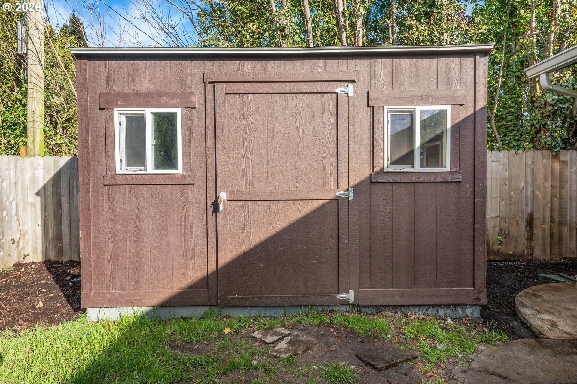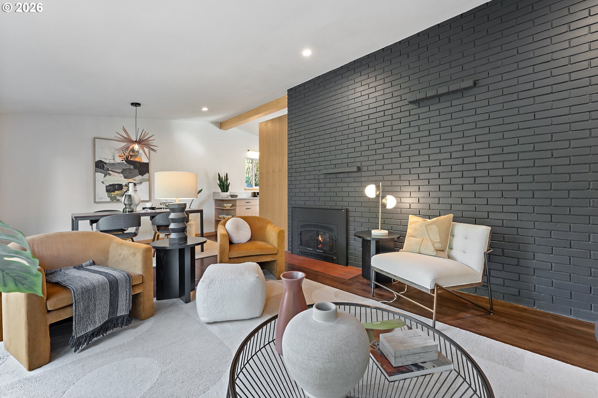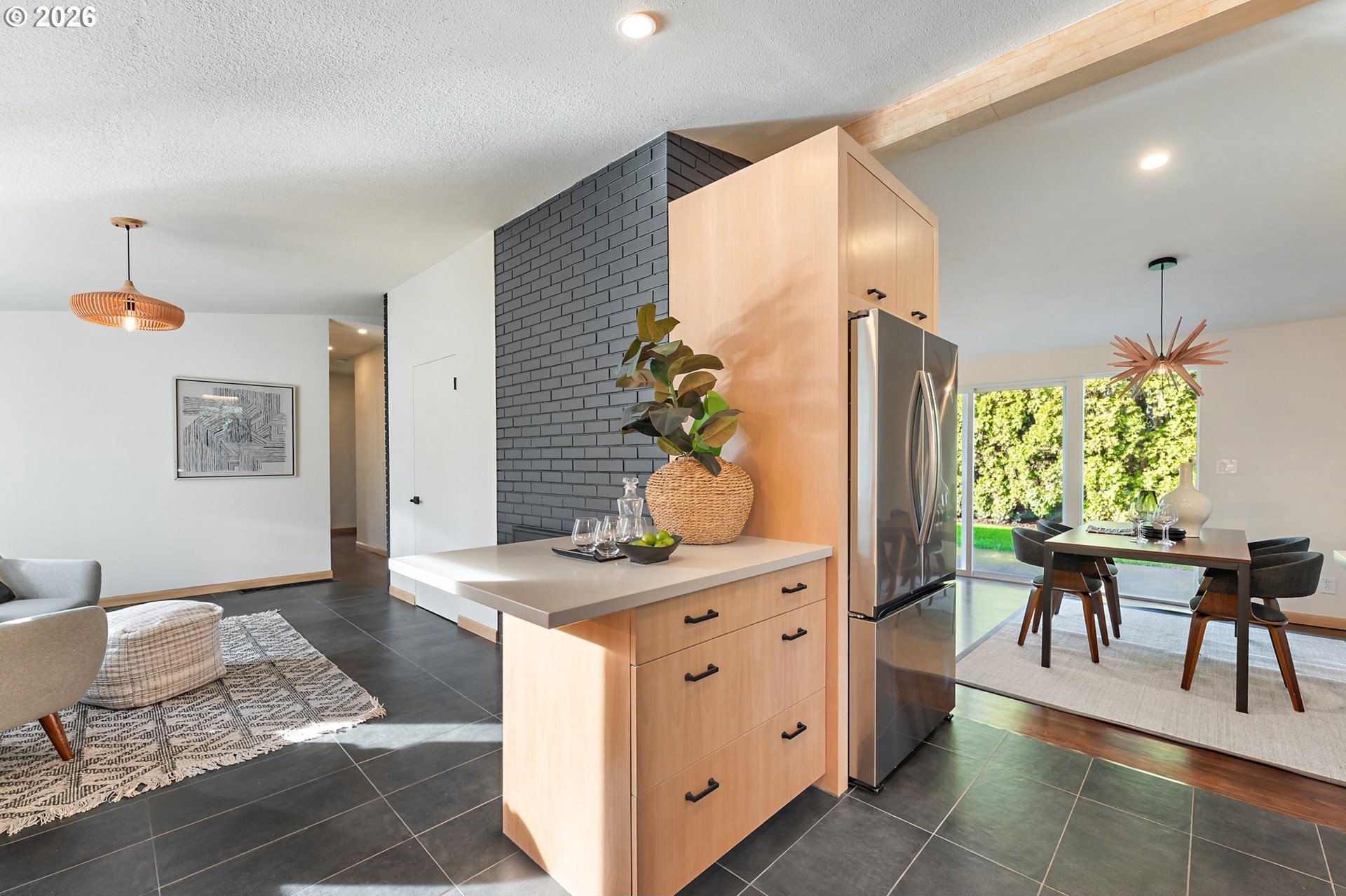 Meticulously updated 1956 mid-century modern ranch with contemporary finishes. Original hardwood floors, period double fireplace, vaulted ceilings. Beautifully remodeled kitchen with custom solid wood cabinets, quartz counters, large pantry, and stainless-steel appliances, including a built-in induction range that flows to a cozy family room and spacious entry. The light and airy living & dining space opens to the fully fenced back yard with an expansive patio that is perfect for outdoor entertaining. A total of four bedrooms and three full baths, including a primary suite with a vaulted tongue and groove wood ceiling, double closets, walk-in shower and custom tile work. A second primary also offers a vaulted ceiling, a walk-in shower and custom tile work. New windows, roof, plumbing, updated electrical, interior and exterior paint, and furnace. The home offers a large tool/garden shed and enclosed exterior storage area on the north side of the home. [Home Energy Score = 1. HES Report