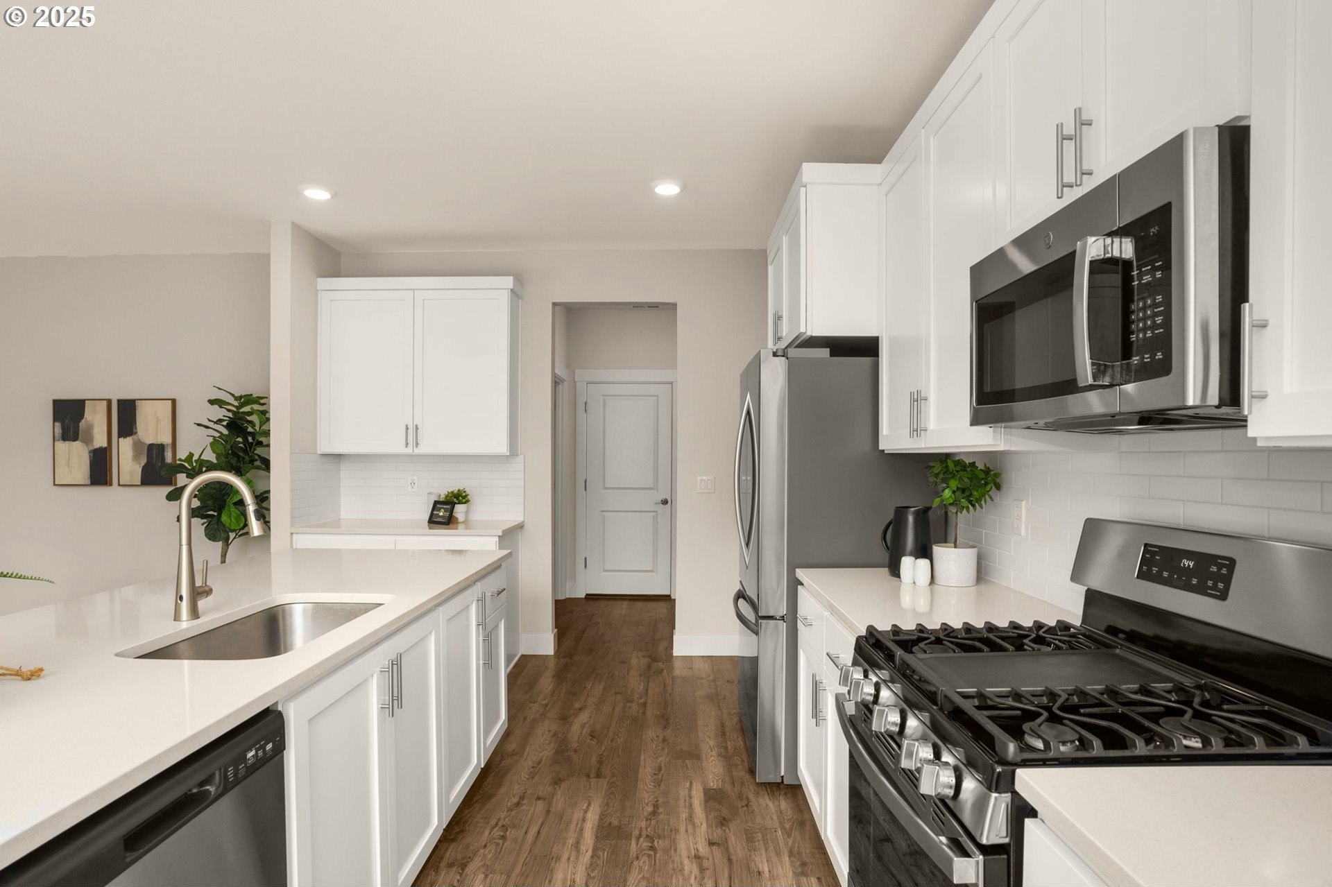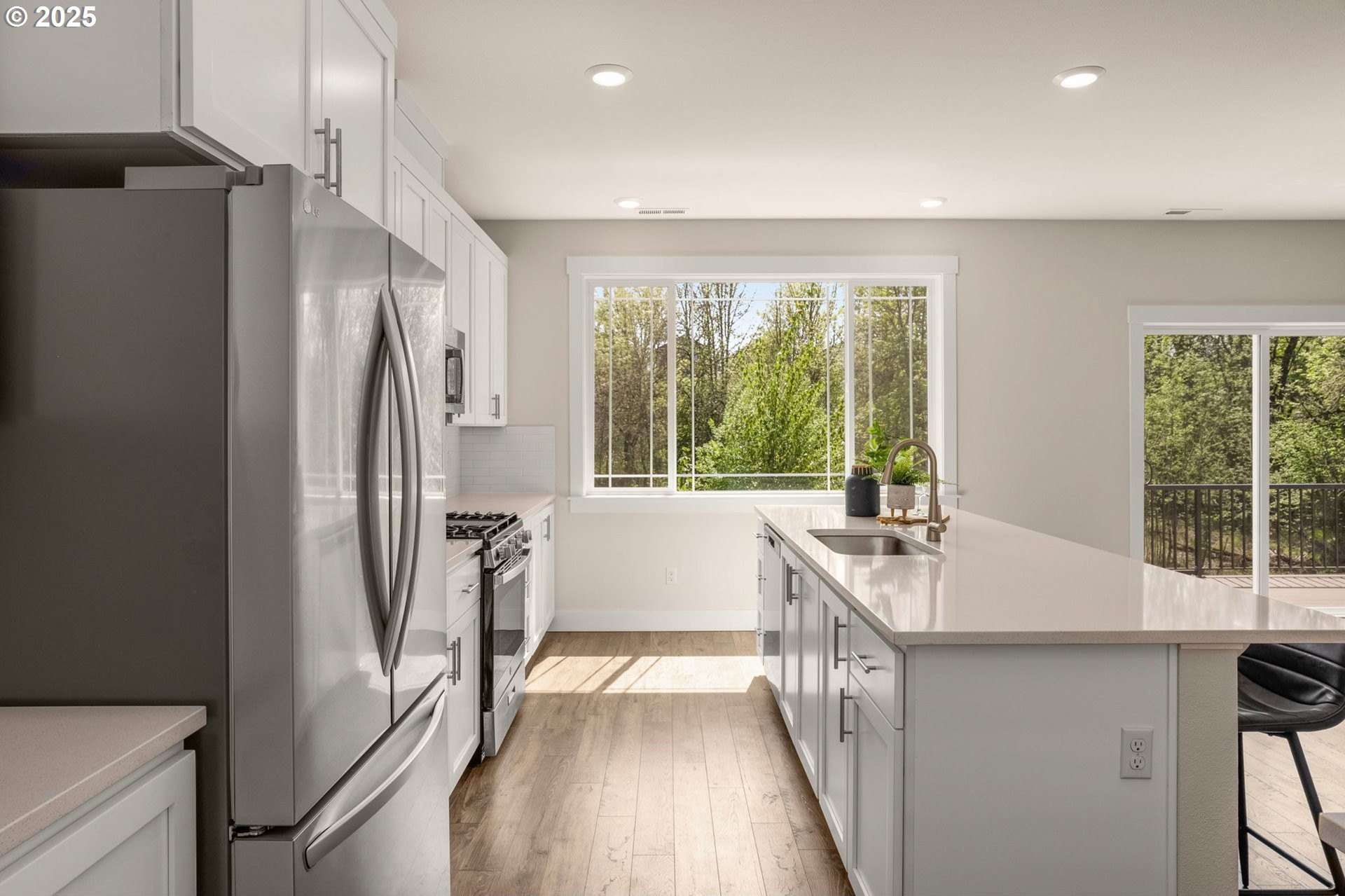Come see this amazing, newer Home that backs to a wooded Greenspace! Imagine, NO Neighbors behind you...PRICELESS! Located in NEW South River Terrace, this home is in pristine condition- even better than new construction with beautiful window coverings, high end Refrigerator, Washer/Dryer and Custom built, Deck Stairs that lead down to the huge back yard. Step into spacious elegance with this impeccable 5-bedroom, 3-bath home, boasting 3,415 sqft of thoughtfully designed space. Better than new, this home offers sophisticated finishes, and a layout that is perfectly designed with an expansive Open Floor Plan. The living space seamlessly connects with the Gourmet Kitchen, Dining and Family Room- ideal for entertaining or relaxed everyday living. Cozy up to the gas Fireplace to create heart-warming memories. The Gourmet Kitchen is a true showstopper, featuring a huge quartz island, sleek white cabinetry, stainless steel appliances, and an extra-large walk-in pantry. Bringing in lots of natural light, the sliding glass door leads to an expansive backyard, made even more accessible with custom-built stairs—an exclusive feature to this home. Ideal for Guests or multi-generational living, the main level offers a Primary/Guest Suite with a full Bathroom with both Walk-in Shower & Walk-in Closet. Upstairs, the 2nd Primary Suite boasts a supersized en-suite complete with a glass-enclosed shower, dual vanities, and a deep soaking tub—a true retreat at the end of a long day! The Laundry room is conveniently located on the upper level. The Upstairs Guest Bathroom has 2 separate vanities and Tub/Shower Combination. An enormous fifth bedroom has endless possibilities-use it as an Bonus Rm, Yoga/Artist studio or Home office. Bring your imagination and create the Outdoor space of your dreams with the huge backyard. You and your guests can enjoy endless afternoons of privacy with the beautiful, wooded green space behind you. Located close to Progress Ridge, shops and restaurants.