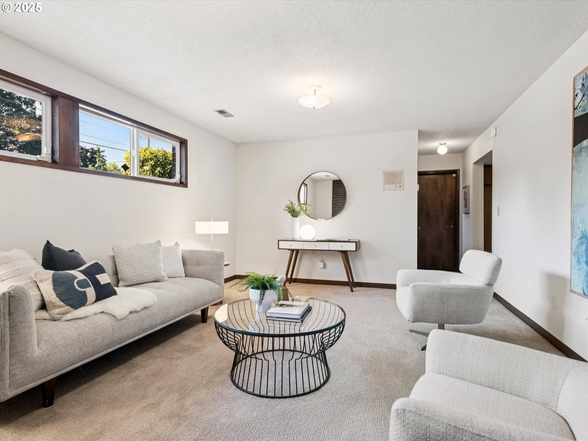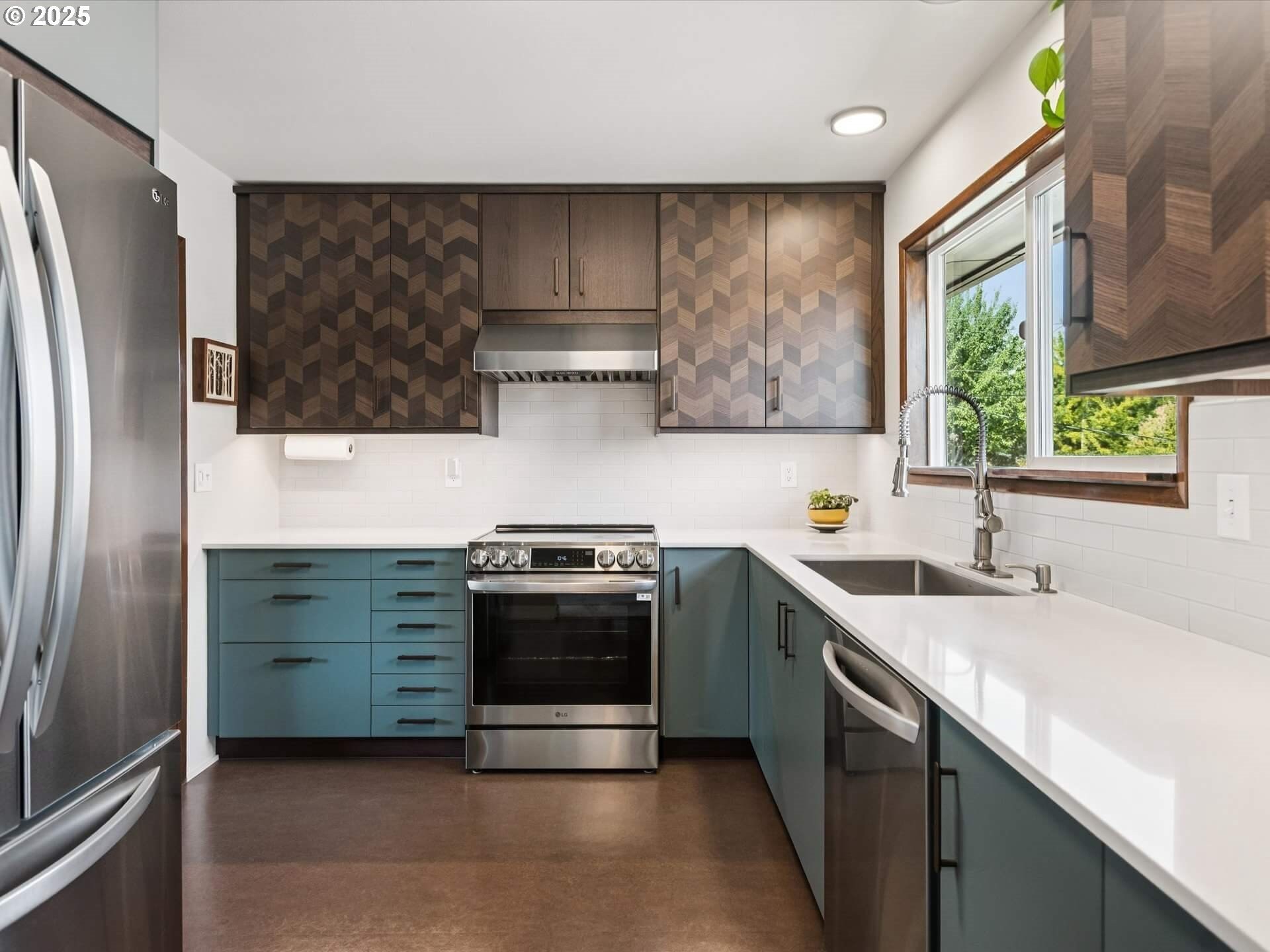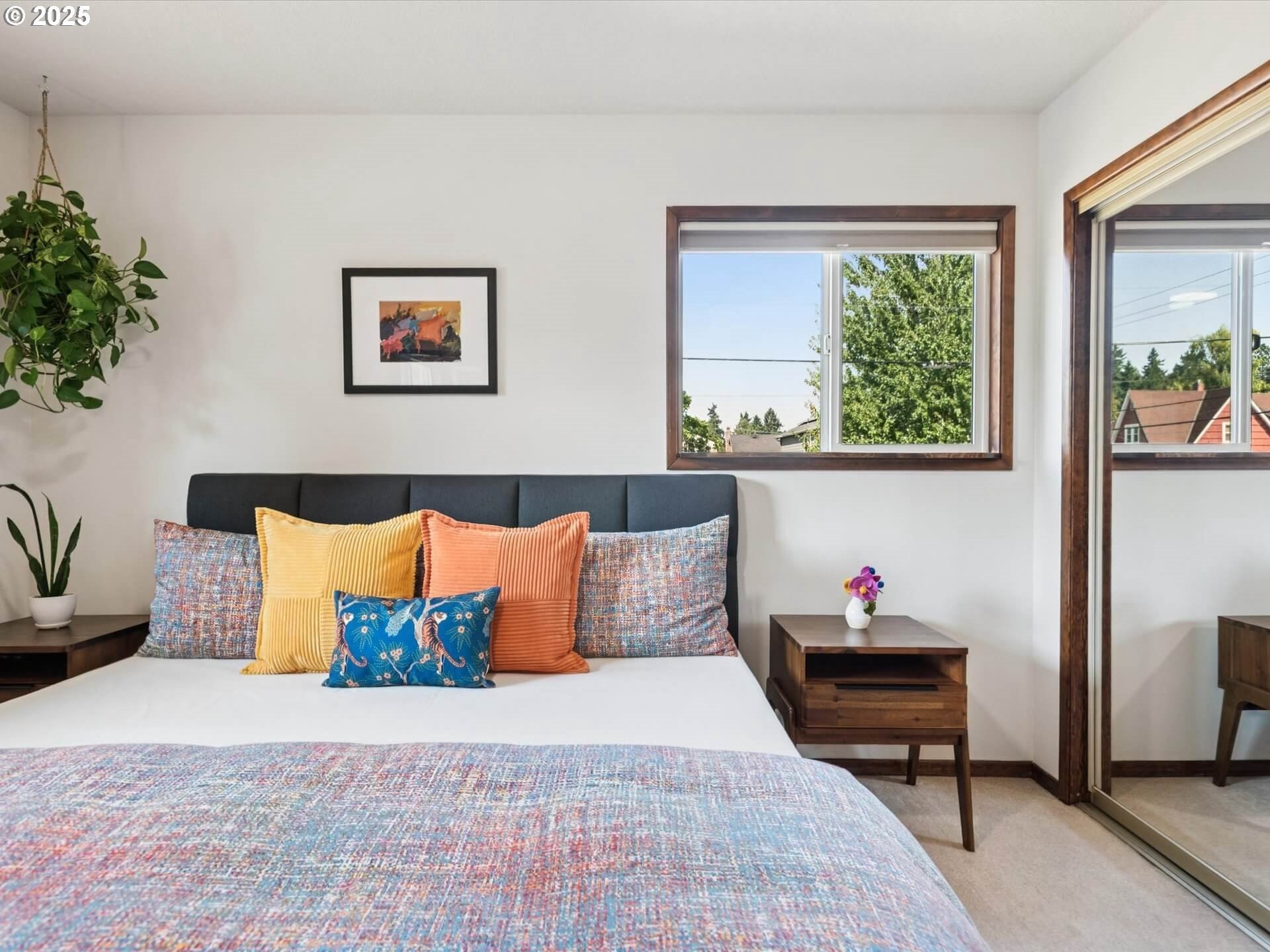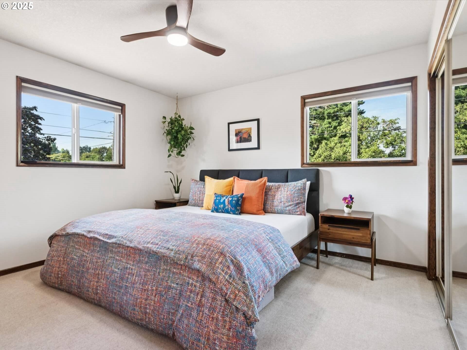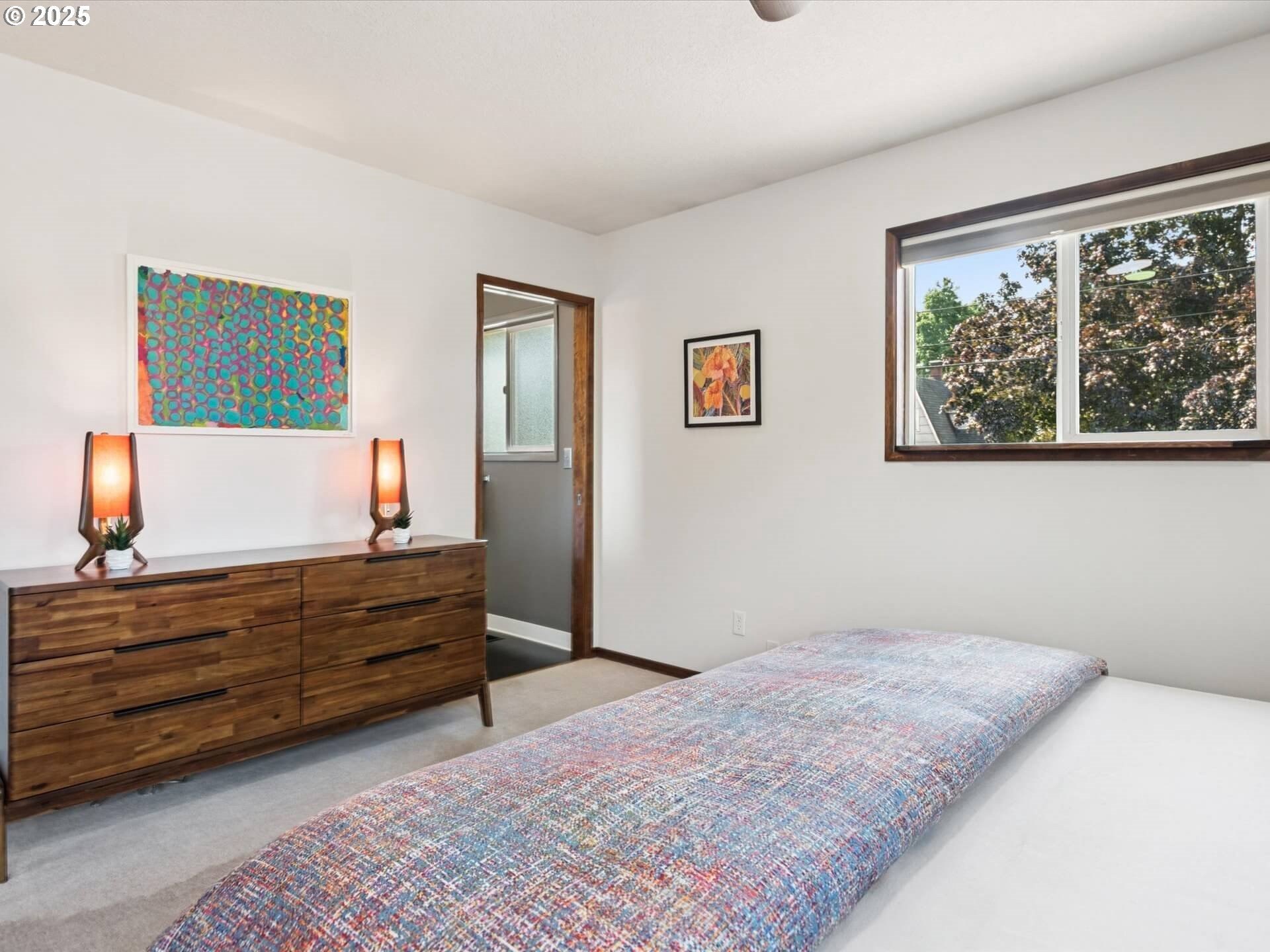 Modern Mid-Century Feel: Thoughtfully Remodeled. This home blends style and comfort with 3 bedrooms on the main level, including a serene primary ensuite. 2 full baths on main with a private guest retreat below with private bath. The newly redesigned kitchen wows with quartz counters, beautiful cabinetry, stainless appliances, and an induction cooktop. Expansive living and dining spaces are filled with natural light, while the lower-level family room with fireplace invites fun-filled gatherings. Updates include a brand-new roof, Milgard double-paned windows, fresh paint inside and out, copper plumbing, high-efficiency furnace, and central AC. A two-car garage completes this turnkey gem. Mere moments to Fernhill park, New Seasons and tons of culinary options. Stylish and ready to roll! [Home Energy Score = 7. HES Report at https://rpt.greenbuildingregistry.com/hes/OR10238952]