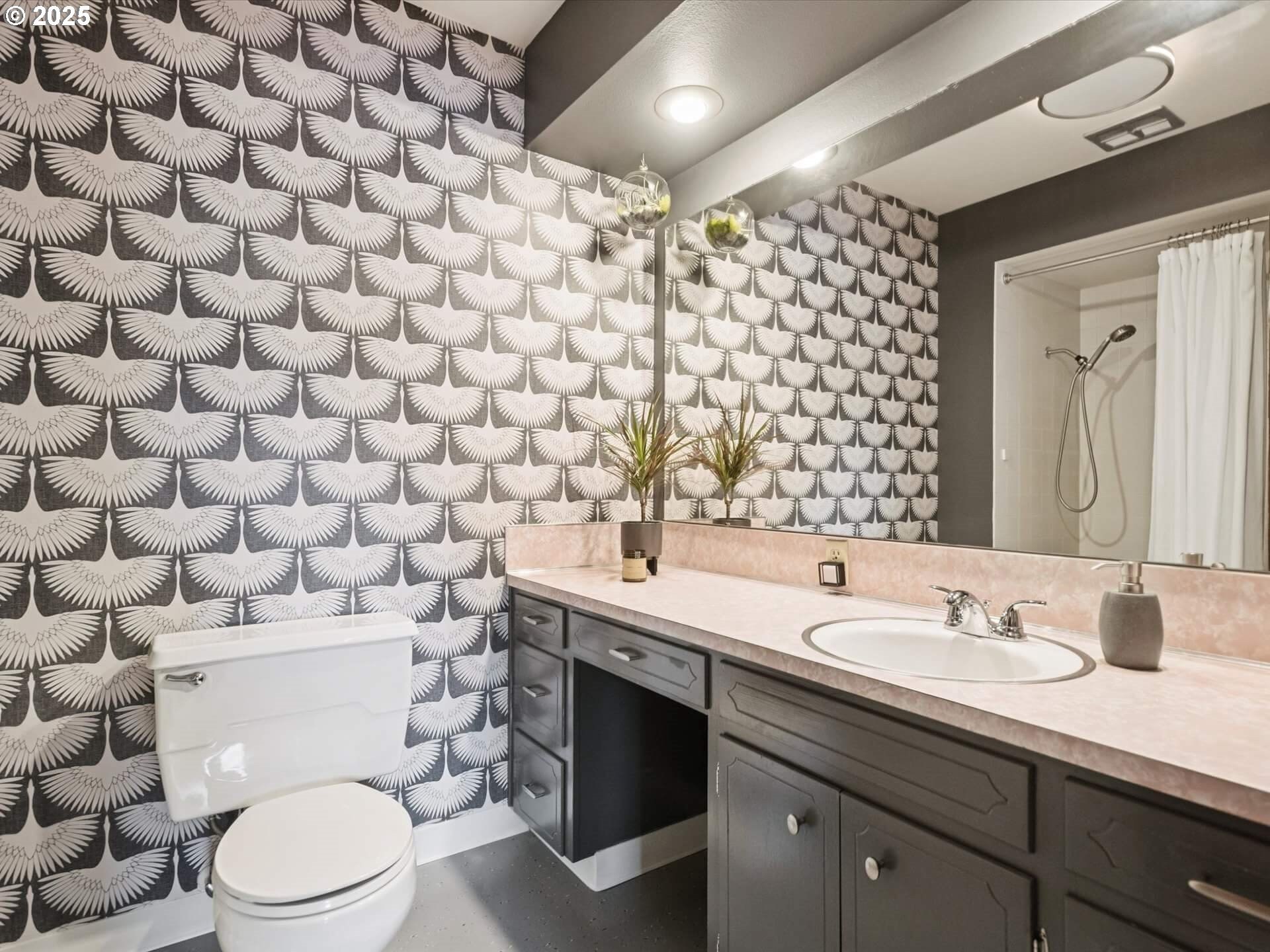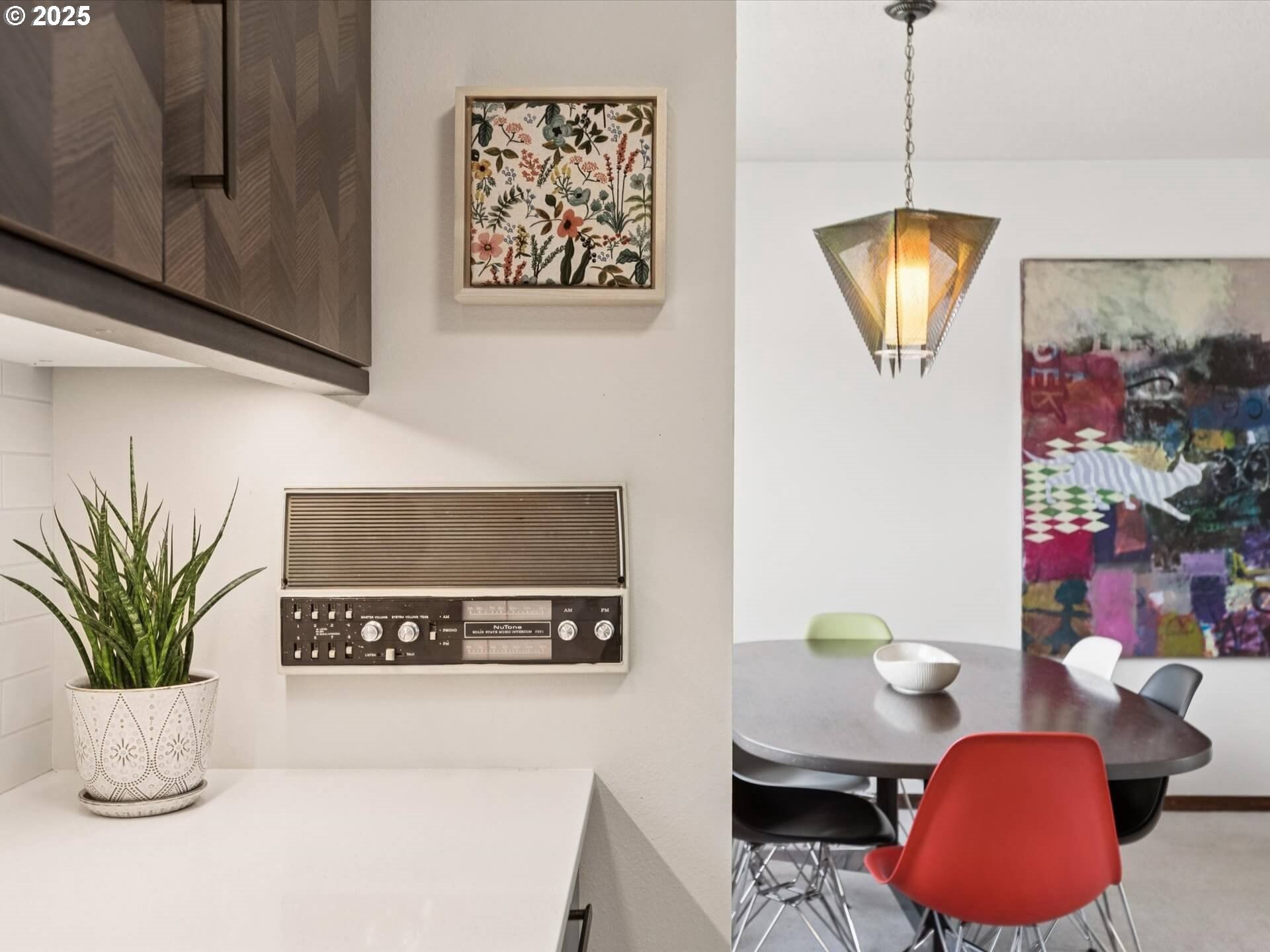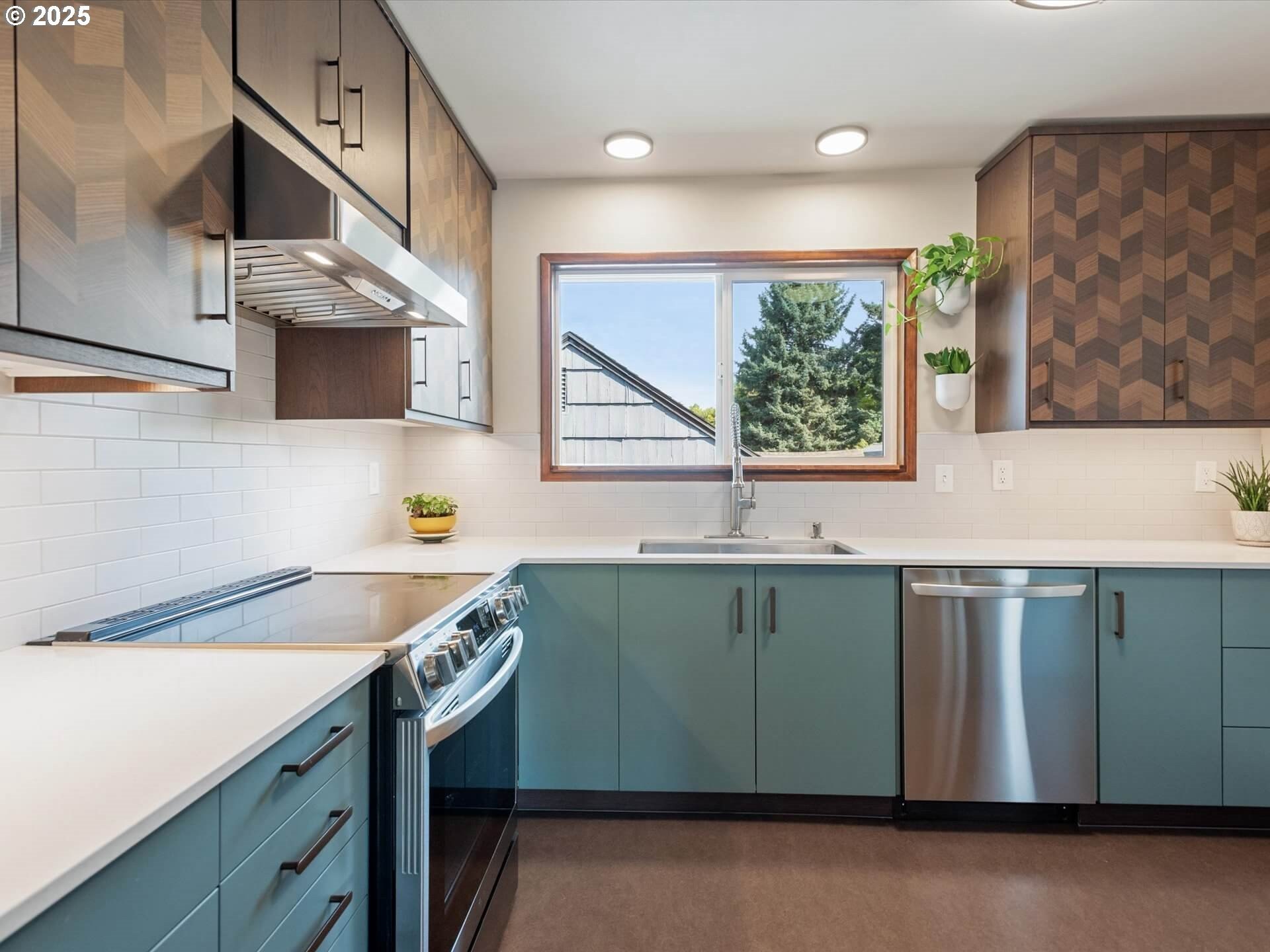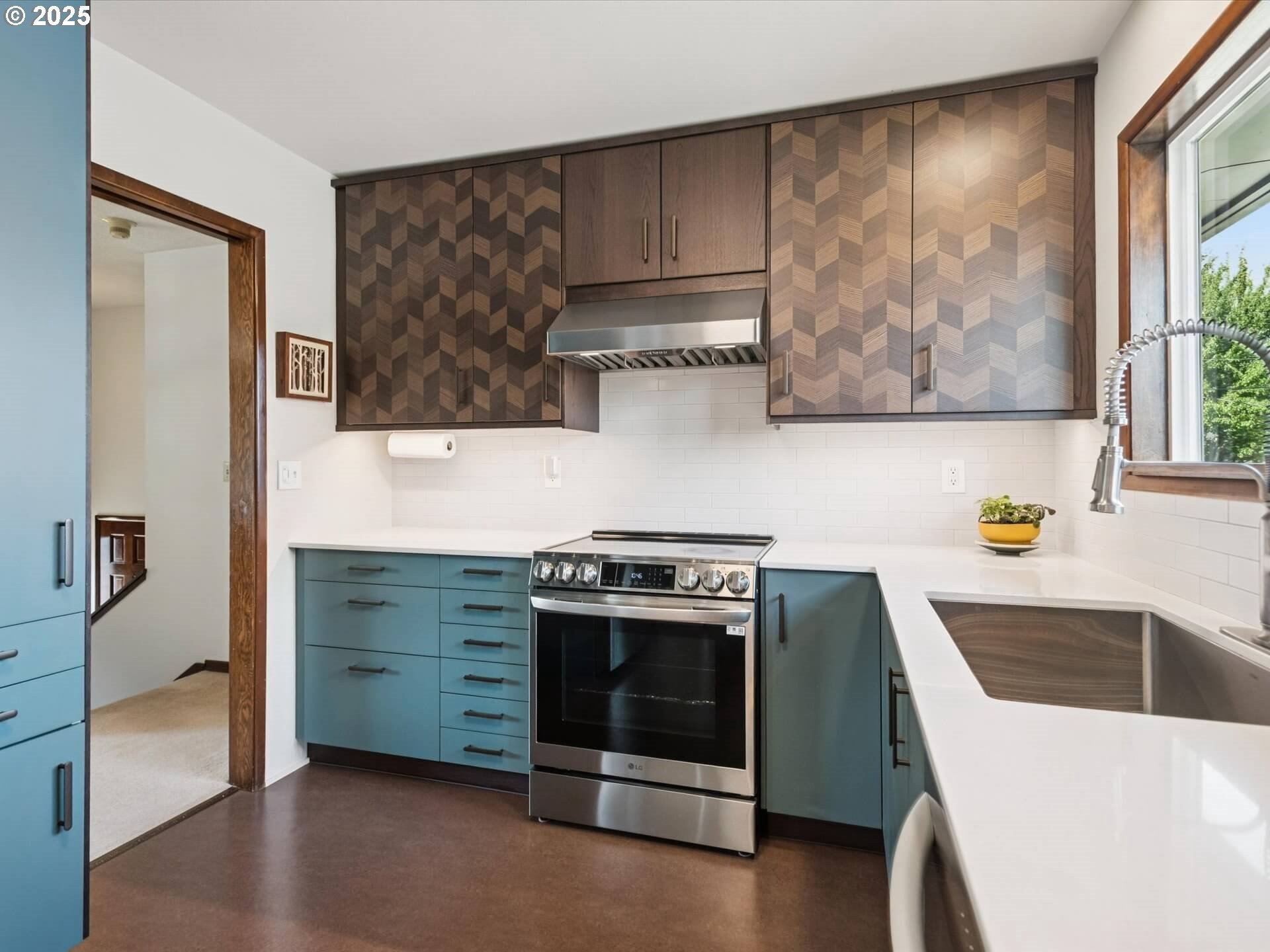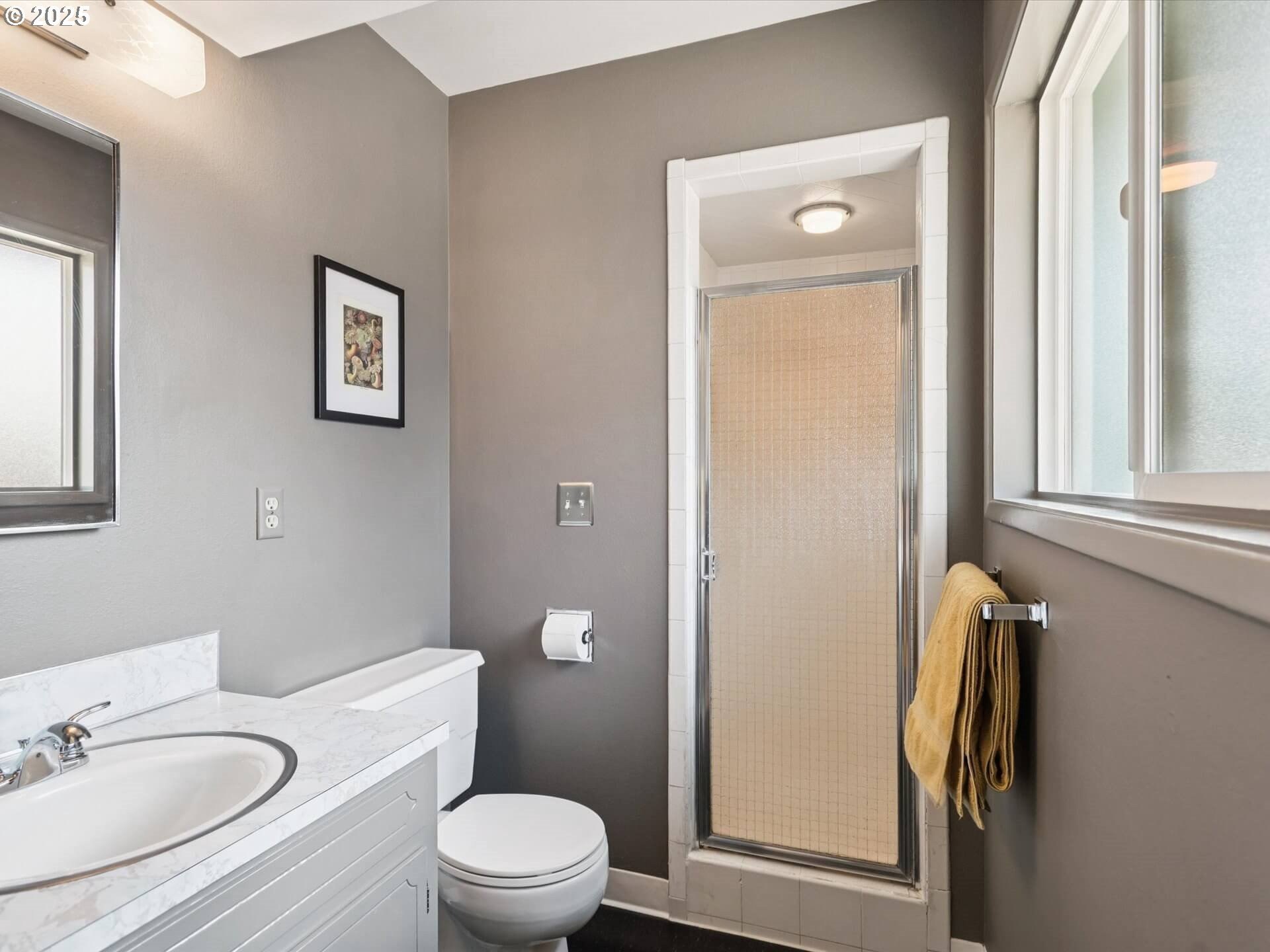 Modern Mid-Century Feel: Thoughtfully Remodeled. This home blends style and comfort with 3 bedrooms on the main level, including a serene primary ensuite. 2 full baths on main with a private guest retreat below with private bath. The newly redesigned kitchen wows with quartz counters, beautiful cabinetry, stainless appliances, and an induction cooktop. Expansive living and dining spaces are filled with natural light, while the lower-level family room with fireplace invites fun-filled gatherings. Updates include a brand-new roof, Milgard double-paned windows, fresh paint inside and out, copper plumbing, high-efficiency furnace, and central AC. A two-car garage completes this turnkey gem. Mere moments to Fernhill park, New Seasons and tons of culinary options. Stylish and ready to roll! [Home Energy Score = 7. HES Report at https://rpt.greenbuildingregistry.com/hes/OR10238952]