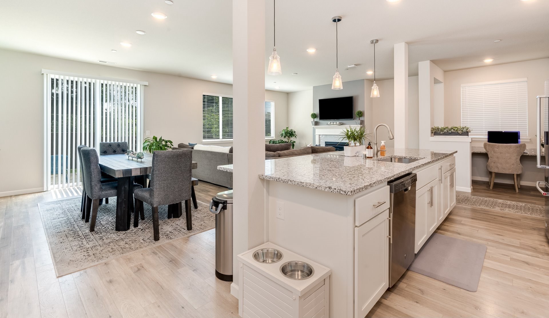 Impeccably maintained Contemporary Home in coveted Green Mountain Neighborhood! Bright, open floor plan with soaring ceilings and natural light from all of the windows. Gourmet kitchen with upgraded stainless appliances, large island, walk-in pantry, and flexible media/office nook. Luxury primary suite with soaking tub and walk-in closet. No rear neighbor for added privacy, plus the mailbox is just steps away and street lights provide extra safety and visibility. Smart home features include Schlage locks, Ring doorbell, and Wi-Fi HVAC. Fully fenced yard with sprinklers. All appliances stay. Close to top-rated schools, shopping, dining, and easy freeway access - move in and enjoy.