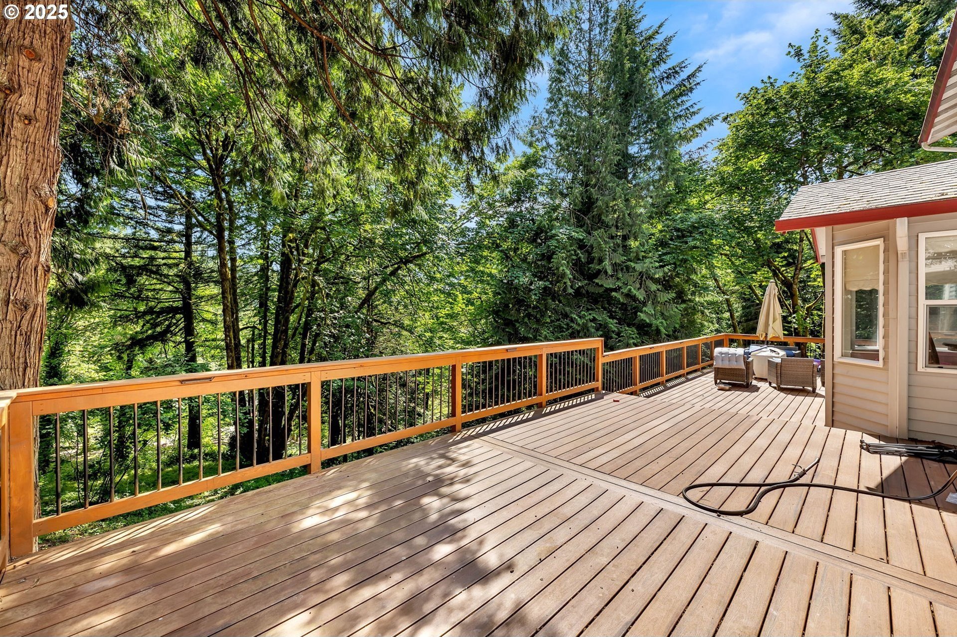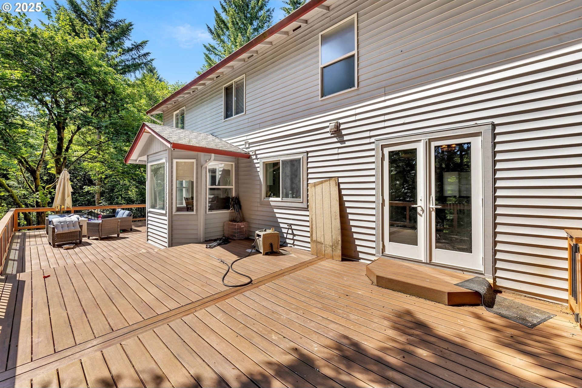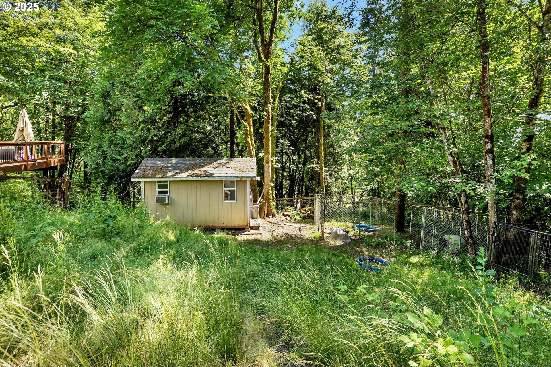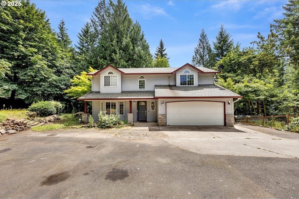 Peaceful 1.88 acre lot, scenic retreat just minutes from town! This spacious home features a newer roof, heat pump, and furnace, along with abundant natural light, gleaming hardwood floors, and a classic layout with separate living and dining rooms accented by a charming new pass-through bay window. Paint, flooring, counter-tops and backsplash are all just over one year old. The open-concept kitchen flows into a cozy family room with a fireplace and tranquil views of the surrounding greenery. Upstairs you'll find three bedrooms, including a generous primary suite with two walk-in closets, plus a large bonus room that could serve as a fourth bedroom (no closet). Queen Size Murphy bed stays with home & pulls down to a desk. Outside, enjoy RV parking, a storage shed, fully fenced yard, side yards, and an expansive 1,100 sq ft. deck perfect for entertaining. Fully Fenced Dog Run Kennel has 4 separate kennels all with Power, AC & Heat. Located in the highly sought-after Hockinson School District!