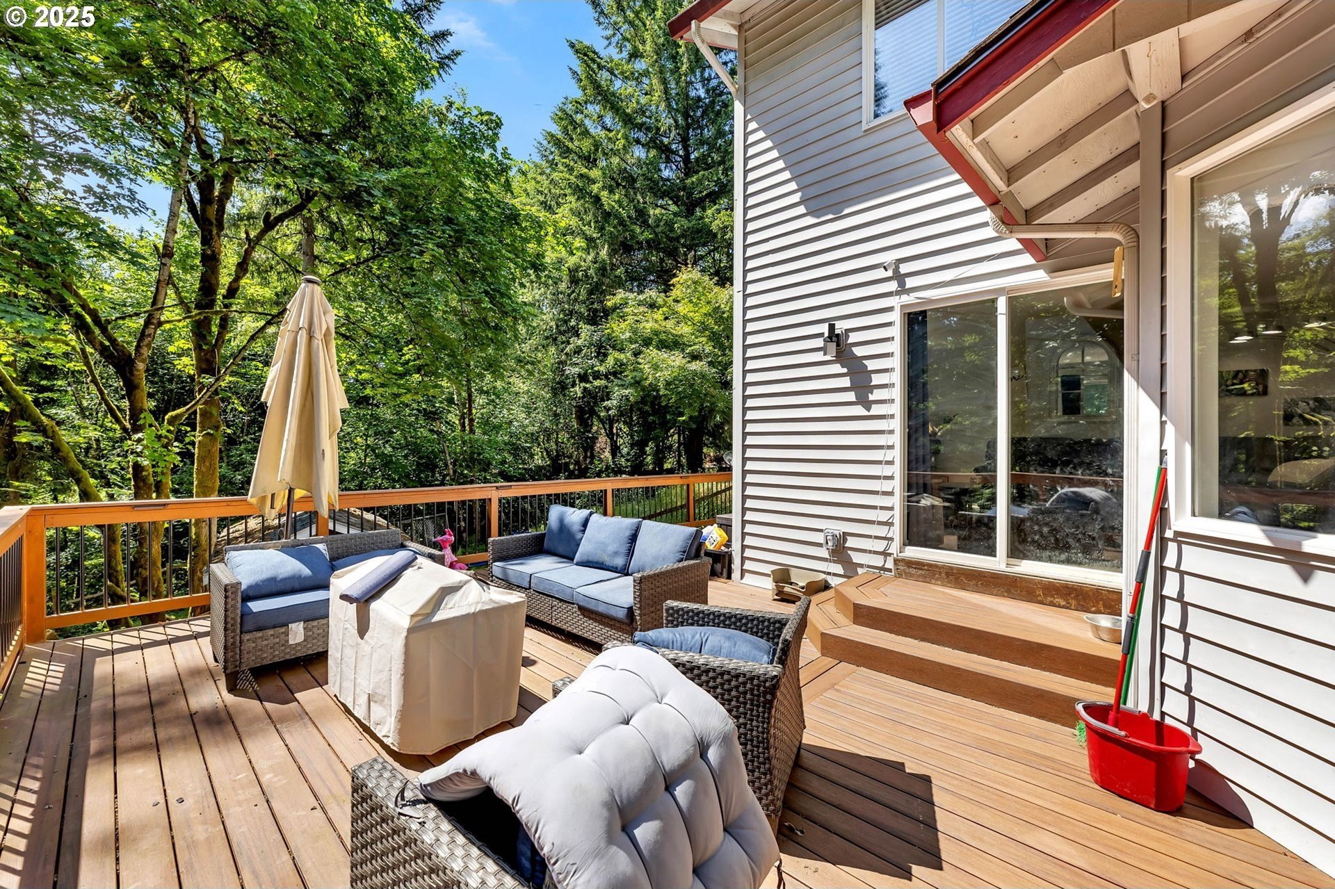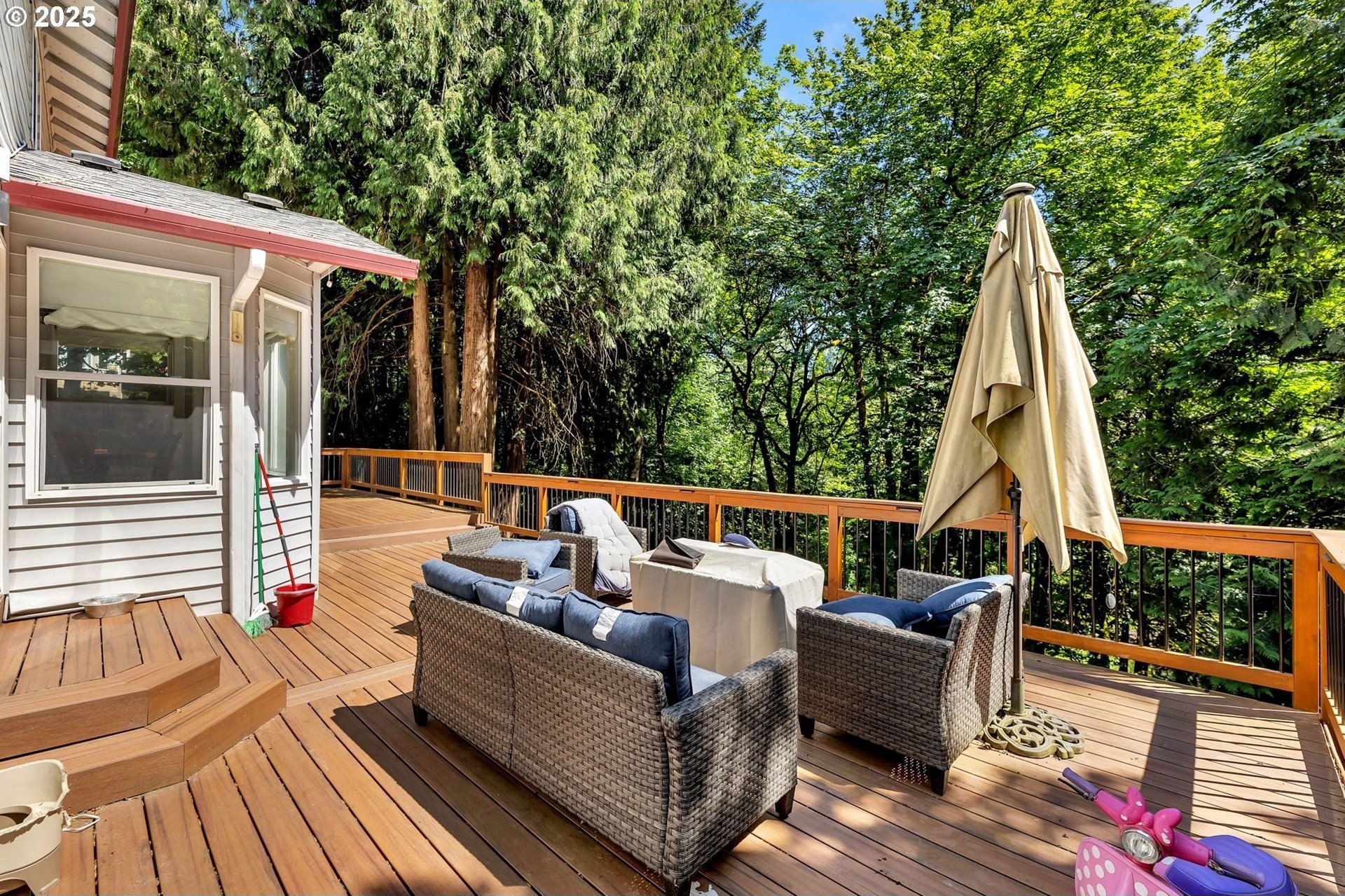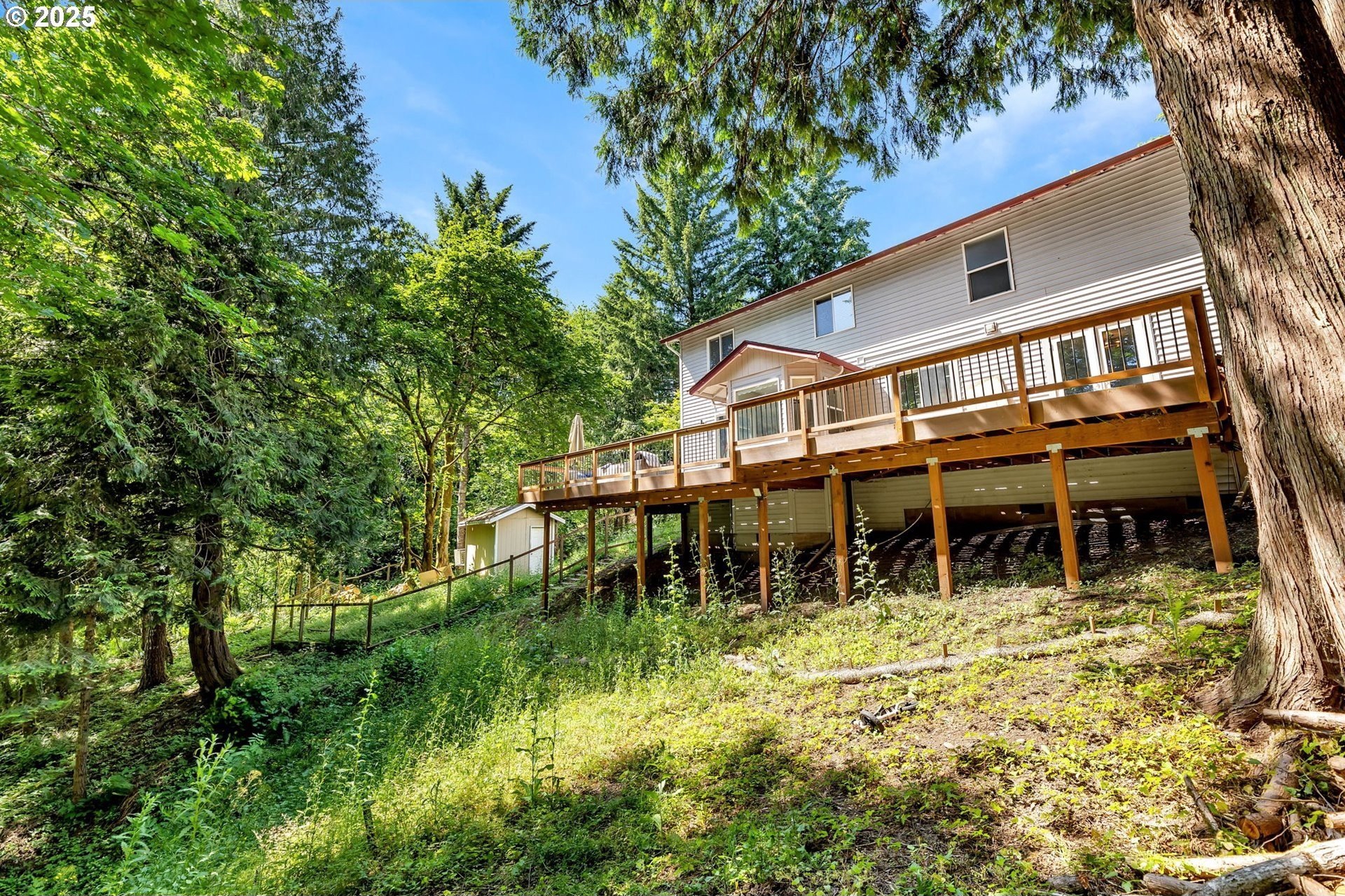 Peaceful 1.88 acre lot, scenic retreat just minutes from town! This spacious home features a newer roof, heat pump, and furnace, along with abundant natural light, gleaming hardwood floors, and a classic layout with separate living and dining rooms accented by a charming new pass-through bay window. Paint, flooring, counter-tops and backsplash are all just over one year old. The open-concept kitchen flows into a cozy family room with a fireplace and tranquil views of the surrounding greenery. Upstairs you'll find three bedrooms, including a generous primary suite with two walk-in closets, plus a large bonus room that could serve as a fourth bedroom (no closet). Queen Size Murphy bed stays with home & pulls down to a desk. Outside, enjoy RV parking, a storage shed, fully fenced yard, side yards, and an expansive 1,100 sq ft. deck perfect for entertaining. Fully Fenced Dog Run Kennel has 4 separate kennels all with Power, AC & Heat. Located in the highly sought-after Hockinson School District!