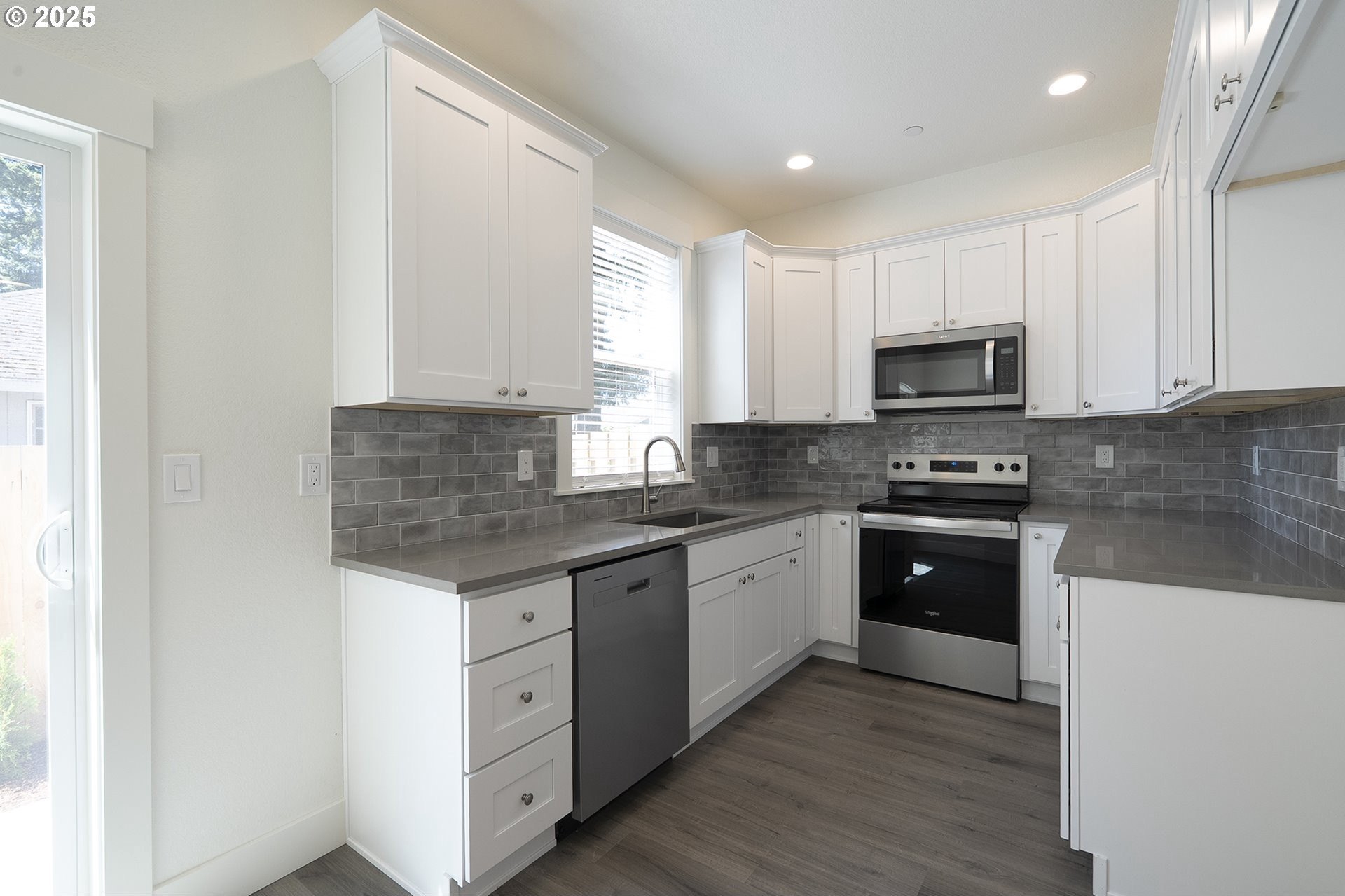 Motivated seller, bring all offers! Brand new 1,402 sq ft home offering modern living at its finest. TEN YEAR PROPERTY TAX ABATEMENT AVAILABLE to purchasers making less than $124,100 per year. With tax abatement, typically property taxes are $900 to $1,200 per year. Without tax abatement figure $3,500 to $4,500 per year. Main floor has9-ceilings, durable and stylish vinyl plank flooring. Modern kitchen has stainless steel appliances, sleek cabinetry and ample counter space. Fully fenced backyard with patio. Kitchen comes with stainless steel range, dishwasher, microwave, refrigerator. Also included are window coverings and a washer/dryer. This home is move in ready! [Home Energy Score = 9. HES Report at https://rpt.greenbuildingregistry.com/hes/OR10239227]