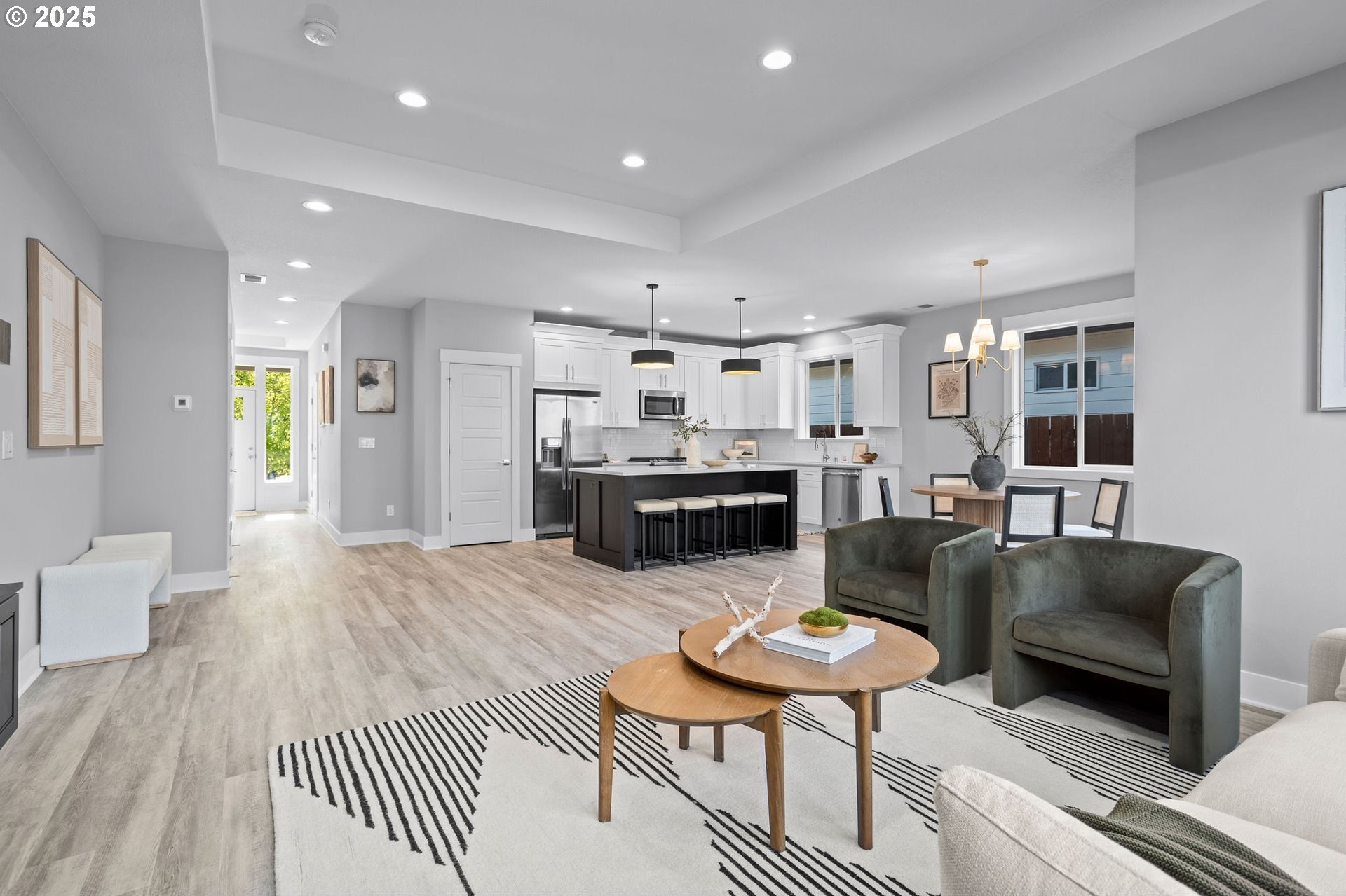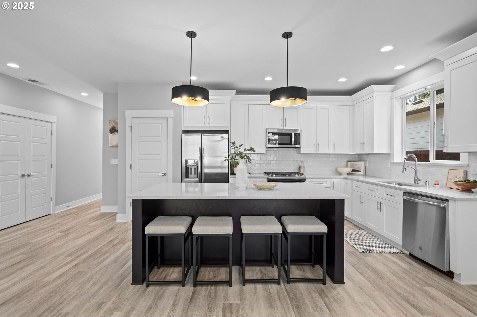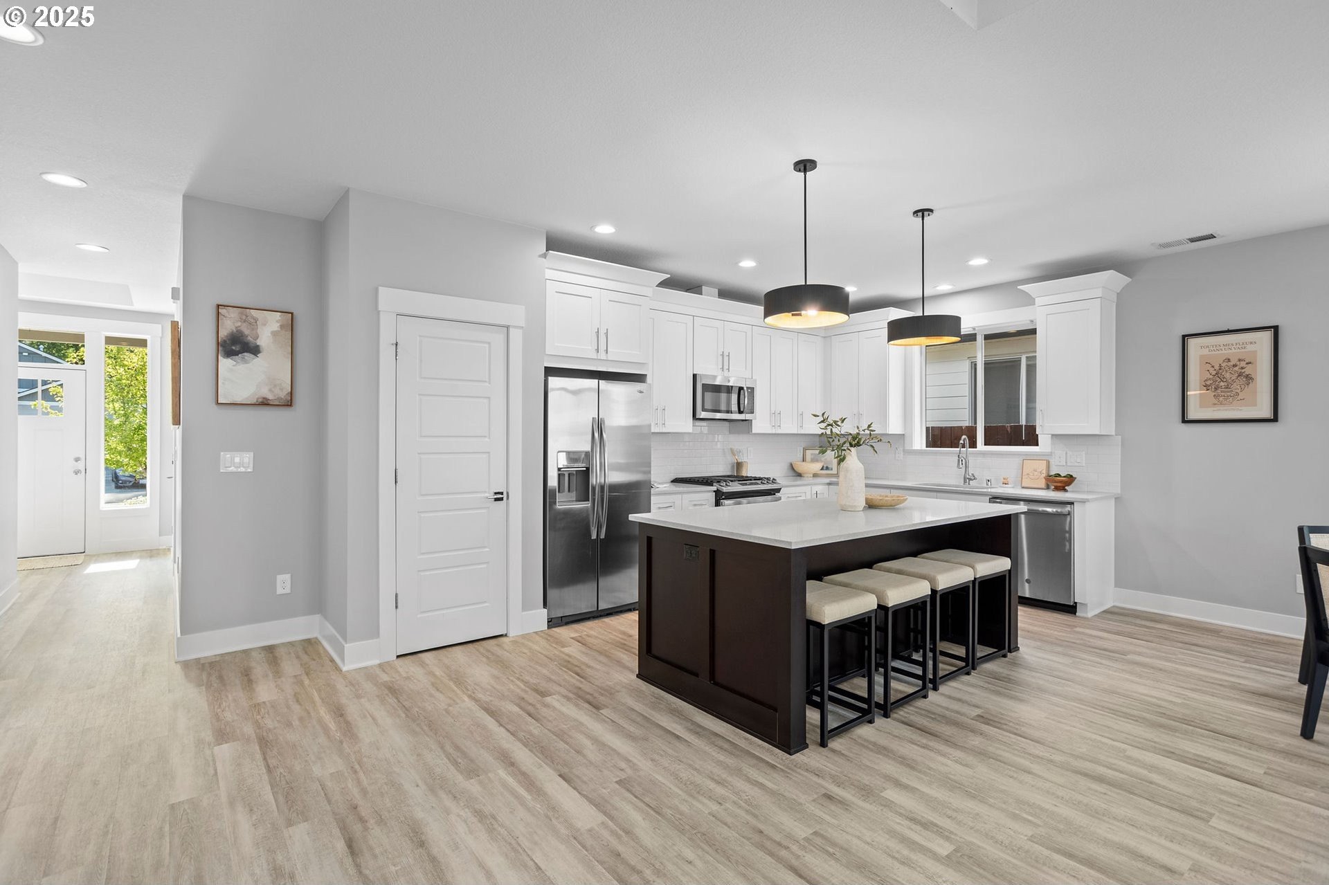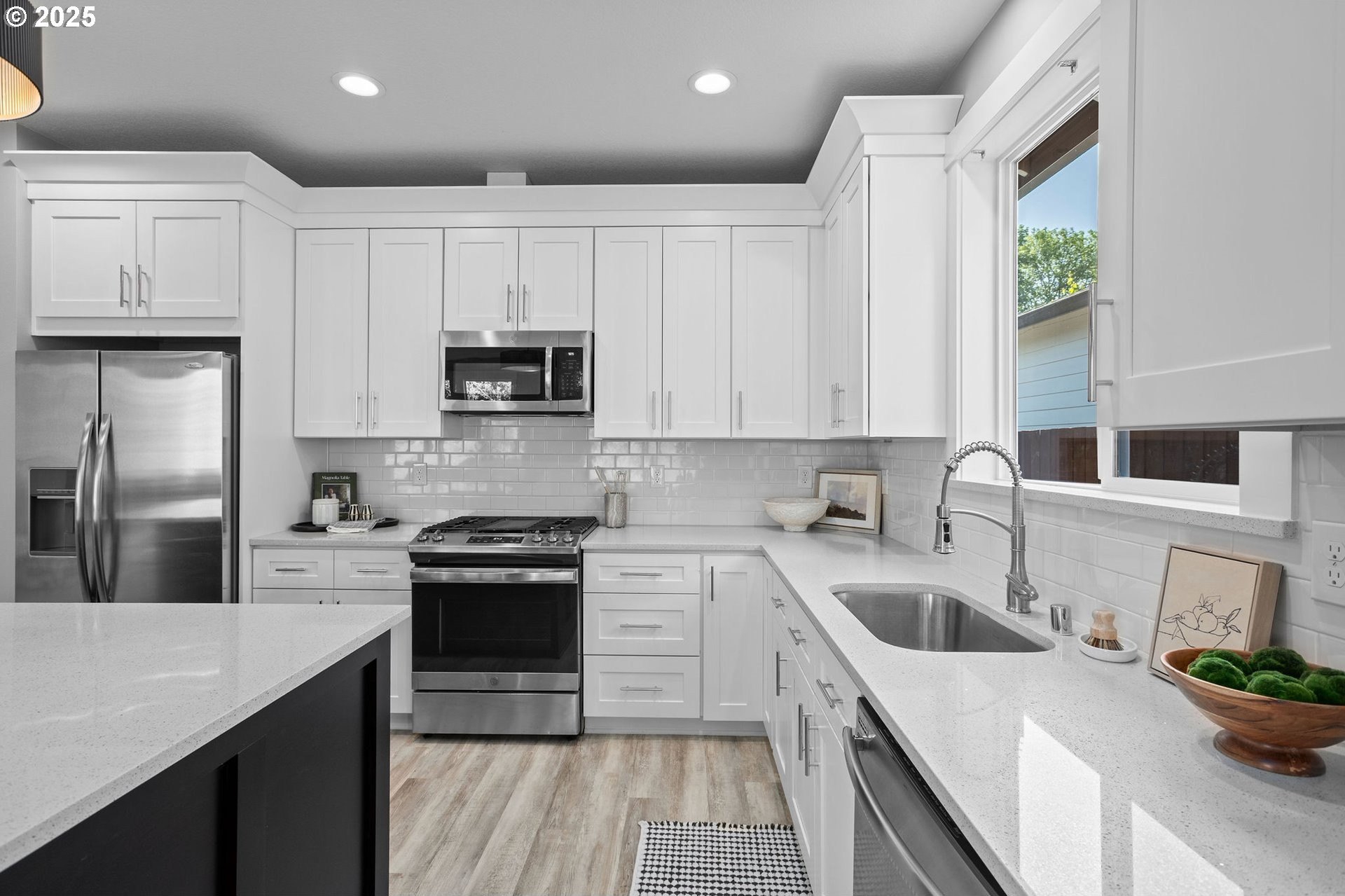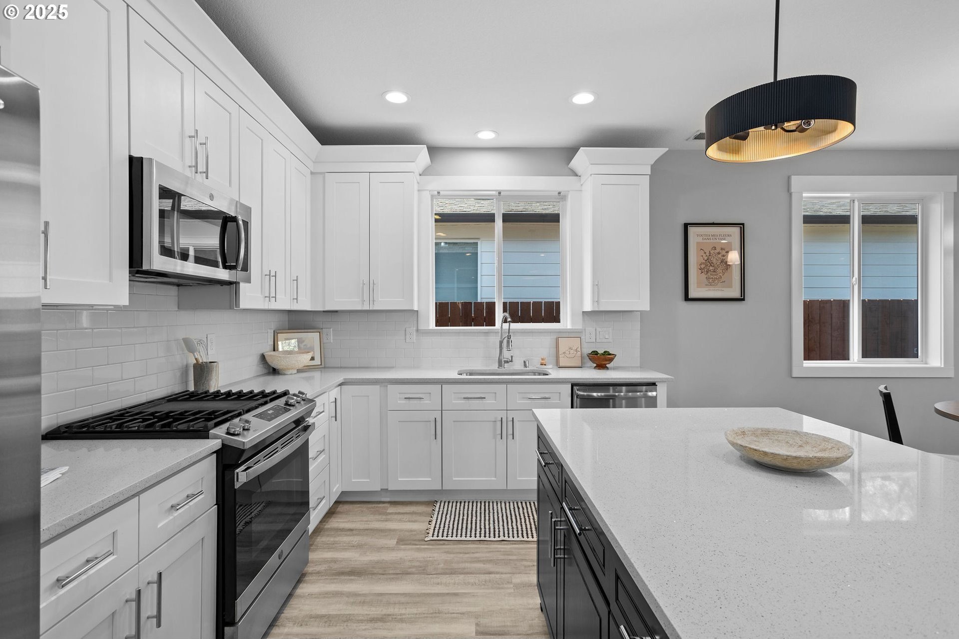Move-in ready and beautifully maintained, this 3-bedroom, 2-bath ranch-style home offers a rare combination of comfort, privacy, and modern design. Backing to a private neighborhood greenbelt with a scenic walking trail, the home sits in a quiet, secluded setting—perfect for those who value peace and nature. Inside, you’ll find an open-concept layout with high ceilings in the family room, creating a bright and spacious atmosphere ideal for everyday living and entertaining. The custom kitchen features sleek quartz countertops, a large center island, an updated stainless steel appliance package, and a walk-in pantry for plenty of storage. The primary suite is a true retreat with a beautifully tiled shower, dual vanities, and a generous walk-in closet. From its thoughtful layout to its serene location, this home checks all the boxes. Don’t miss your chance to own a modern, stylish home in a desirable neighborhood—schedule your tour today!