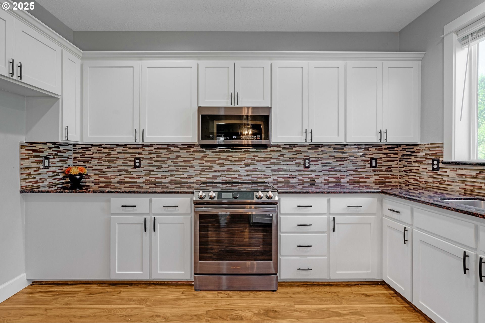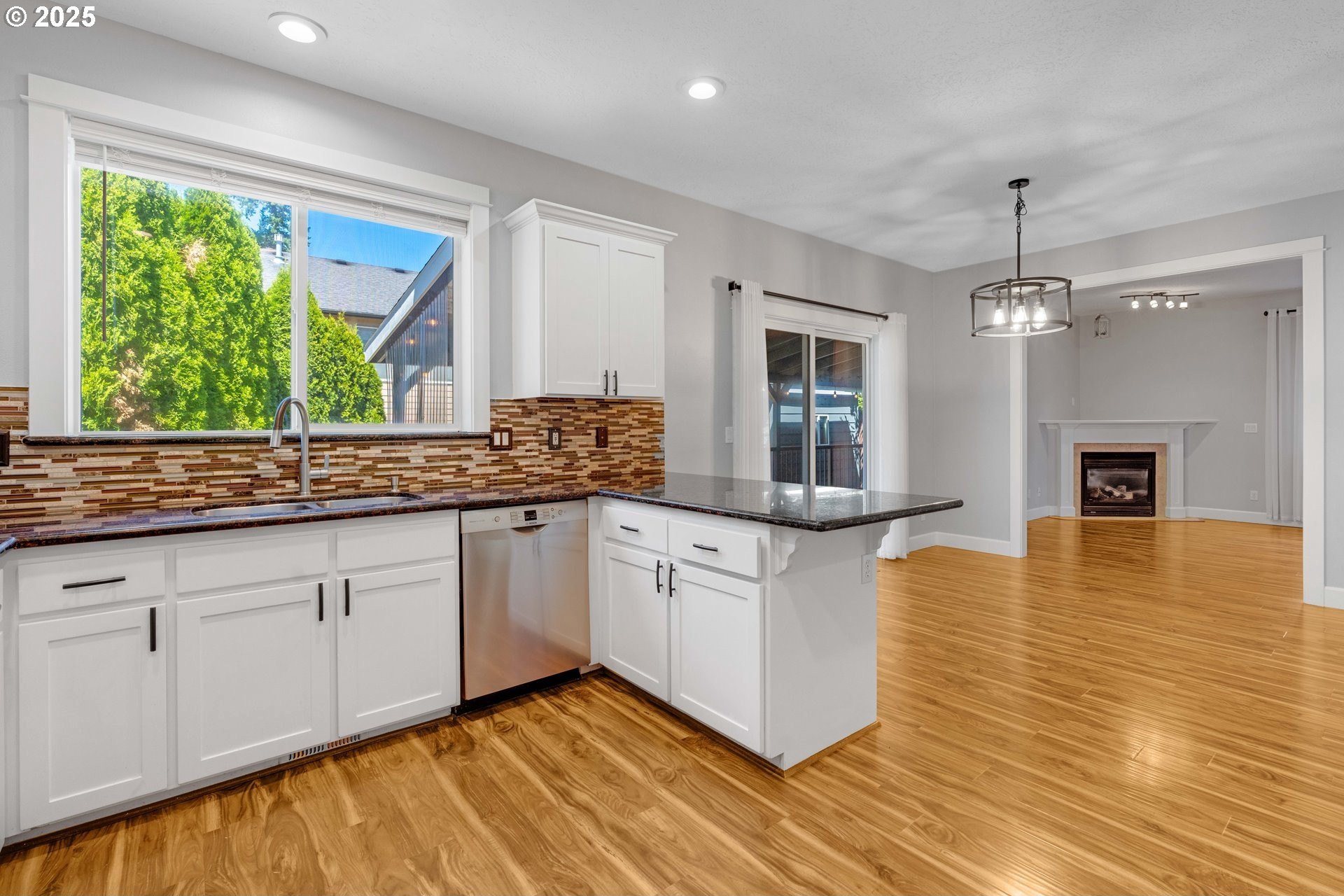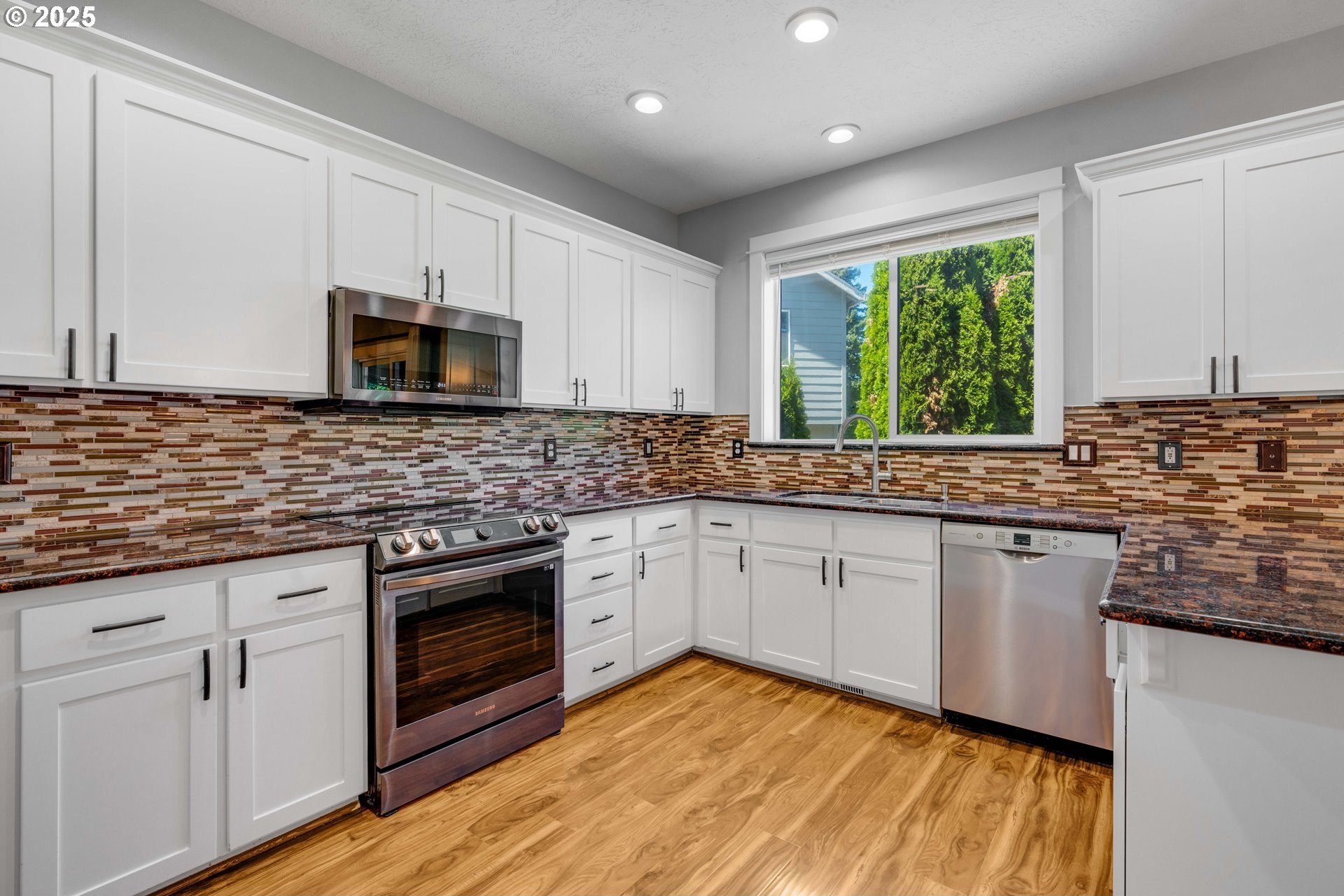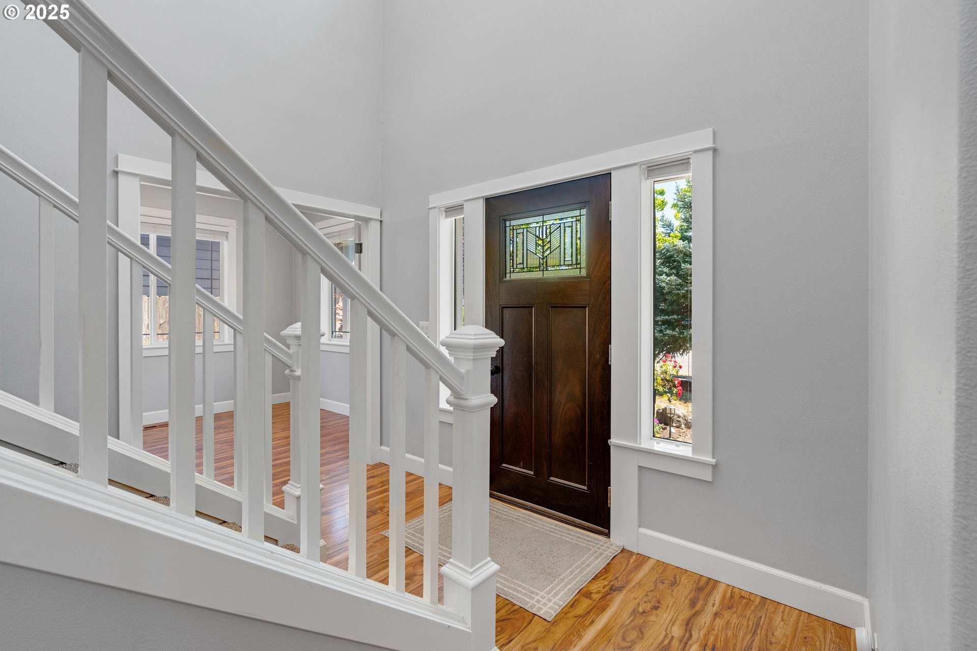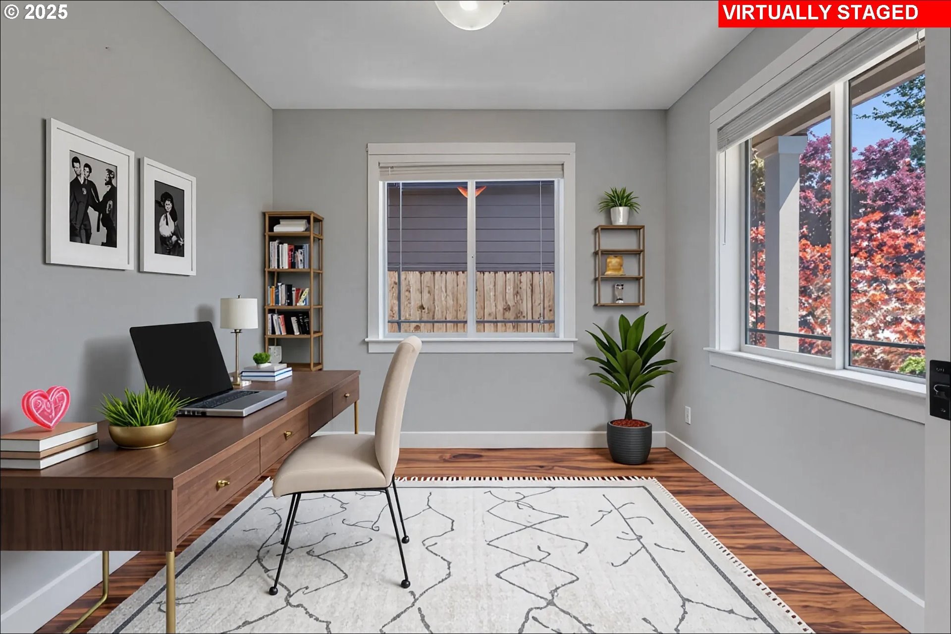 Beautifully maintained 3 bed, 2.5 bath home in Gresham with RV/boat parking & a 2-car garage. Built in 2004 with all-new exterior paint, a brand new roof, & recently serviced HVAC. Covered entry opens to an office with double doors. Main level features laminate flooring, a living room with gas fireplace, dining area, & kitchen with granite slab counters, stainless appliances, tile backsplash, pantry, & upgraded blinds. Sliding door leads to a covered deck & fully fenced yard with shed. Laundry room, half bath, washer/dryer included. Upstairs offers 3 bedrooms, a full bath with tile, plus a primary suite with vaulted ceilings, walk-in closet, double vanity, soaking tub, & separate shower. Garage has built-in cabinets & newer opener. Nest thermostat adds modern comfort. Move-in ready!