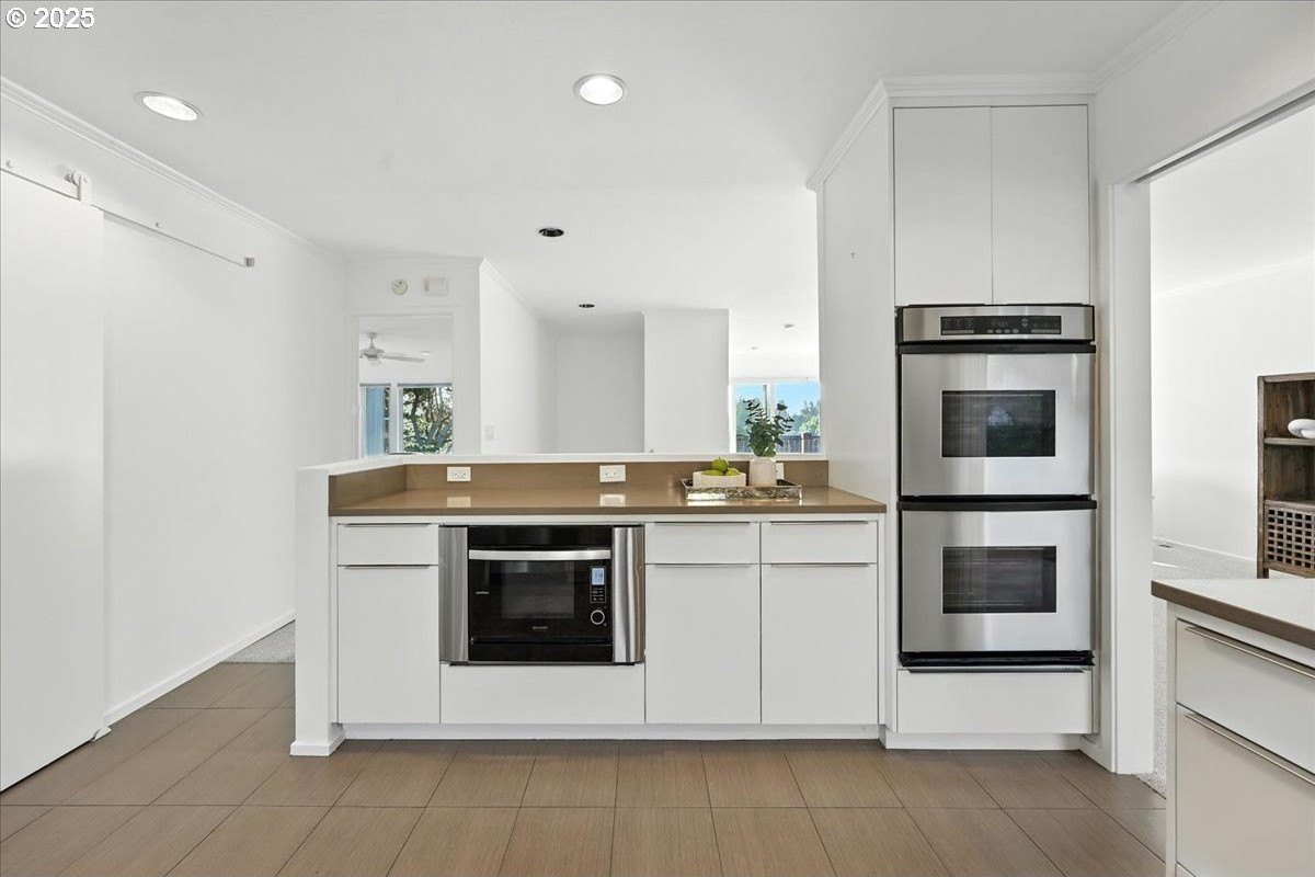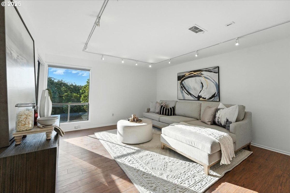 Elegantly updated condo with expansive garden view and abundant light. Main level walk-in living with spacious primary suite, formal living and dining rooms, a library alcove, sitting room, and a guest bedroom adjacent to a full bathroom. Flexible lower-level space with a private exterior entrance includes a large bedroom that can be used as a second primary suite or office, and a family/media/entertainment room that's wired for sound, a full bathroom, and storage areas creates options for guest quarters, live-in accommodations, or extra entertainment space. Updated kitchen---cabinets, quartz counters, appliances, and built-in refrigerator. Bathroom updates, including completely new lower-level bathroom with gorgeous oversized tiled shower, extra-large jetted tub and new double vanity in primary bathroom. New interior paint and carpet. Custom built-ins and generous storage throughout the home. There’s lots of outdoor living here with a large sunny deck overlooking the gardens and a private inner courtyard adjoining the sitting area and kitchen. The Condolea community offers access to a private pool, a large clubhouse for gatherings, and plenty of off-street. Situated in Mountain Park, this gorgeous condo is surrounded by scenic local trails, has access to the Mountain Park recreation center and amenities, including a pool and gym, and is conveniently located just half a mile away from New Seasons Market, restaurants, and shops. This remarkable home offers an ideal living experience with a functional and modern living space, views of greenery out every window, and extensive nearby amenities, creating the ultimate in comfort, convenience, privacy, and sophistication. OPEN Sat 11am-2pm & Sun 2pm - 4pm. OPEN HOUSE PARKING on Condolea DRIVE (not Condolea Ct) please.
