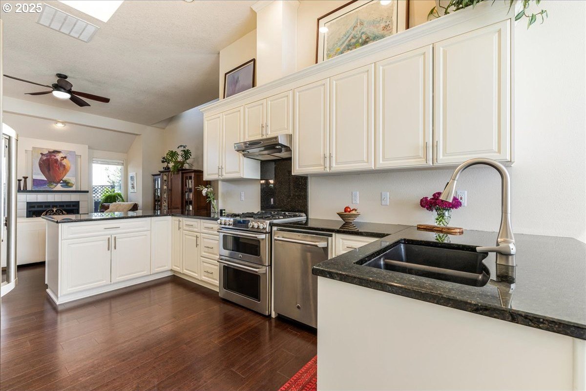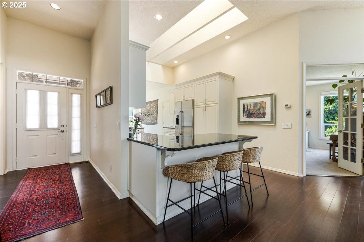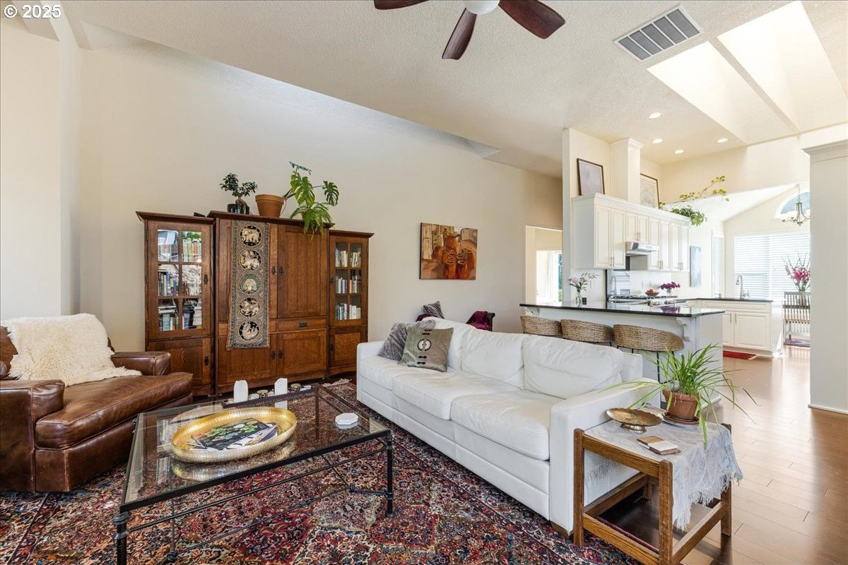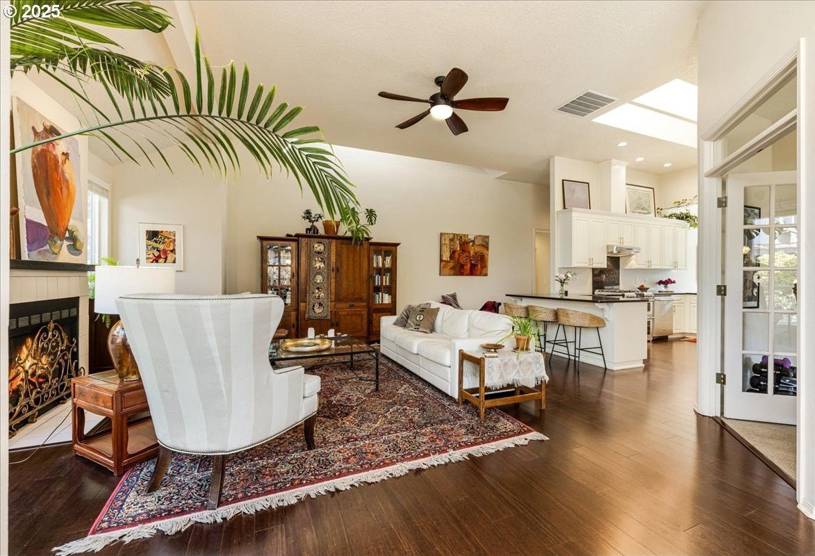 Welcome to this beautifully updated 1,615 sqft, 1988-built single-level home located on a coveted corner lot in the friendly Windfield community. This residence combines modern upgrades with fantastic natural light and functionality, offering the perfect blend of comfort, style, and convenience. The home features an open floor plan filled with an abundance of sunlight, thanks to large custom oversized windows and skylights that allow light throughout the year. The kitchen provides high-end stainless steel appliances, a gas range, granite countertops, and a large eat-at peninsula, making it ideal for both everyday living and entertaining. The great room is a bright, airy space with oversized windows and skylights, complemented by a cozy gas fireplace—perfect for relaxing evenings. The primary suite offers a walk-in closet and a relaxing soaking tub, providing an ideal space for unwinding. The third bedroom includes elegant French doors, making it versatile as a bedroom, office, or guest space. Updates throughout the home include bamboo floors, utility sink, attic and crawl space insulation, new siding in 2024, and brand new water heater. The home’s energy-efficient features provide comfort year-round. Step outside to enjoy the professionally landscaped yard, which features a fenced backyard for the 4-legged fam with beautiful perennial gardens. Spacious flagstone courtyard—perfect for outdoor enjoyment. The attached garage offers secure parking and easy access. Located within walking distance to Trader Joe’s, Zupans, and Mercato Grove, with quick access to I-5, 217, and 205, this neighborhood combines convenience with community charm. The home’s corner lot offers additional privacy and outdoor space, making it a perfect place to enjoy the vibrant local scene, outdoor recreation, and a welcoming neighborhood vibe. Don’t miss this exceptional opportunity to own a home in one of Lake Oswego’s most sought-after neighborhoods, offering ample space with all the amenities
