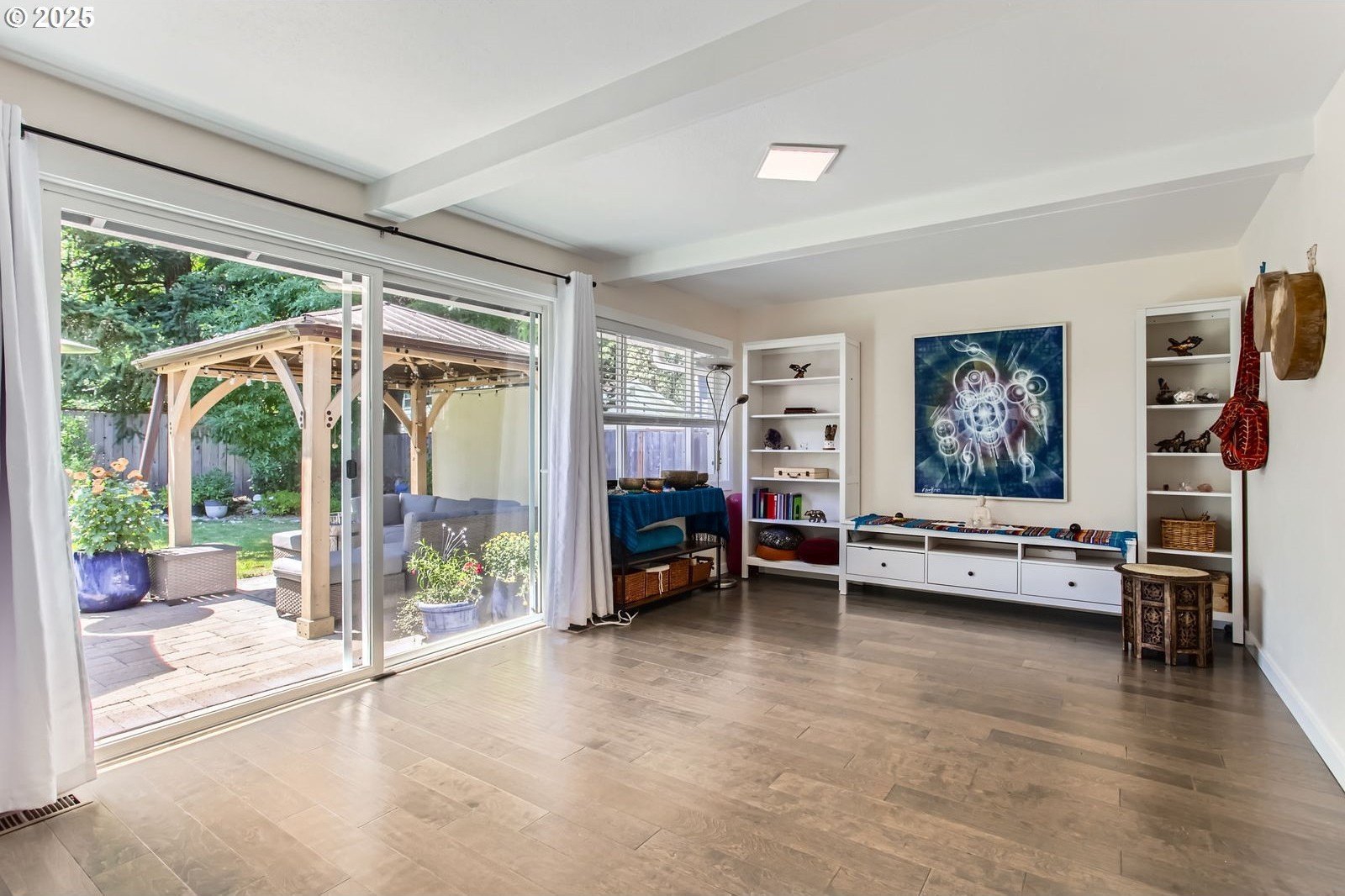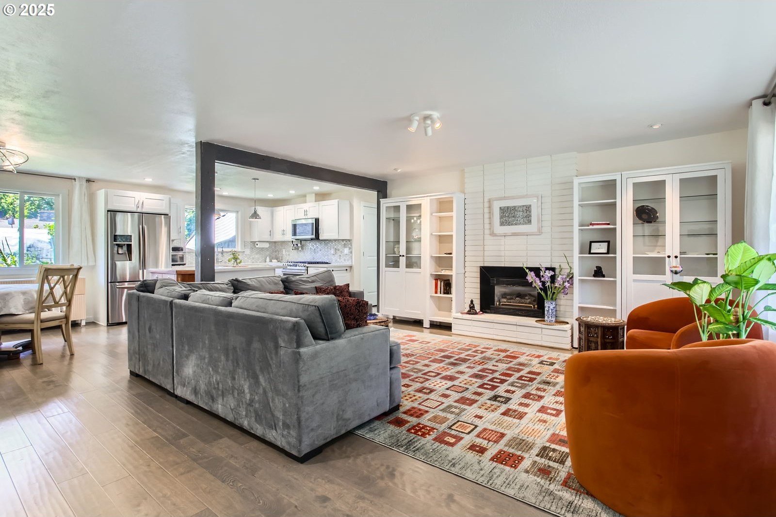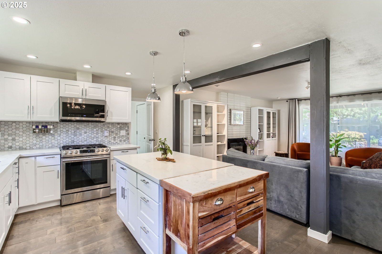 Welcome to 7475 SW Wilson Ave, a well-cared-for single-level home in Beaverton’s desirable Highland Hills neighborhood. Featuring a smart layout, thoughtful updates, and a central location near major employers, parks, and shopping, this home offers both practicality and comfort. Step into the front living room, where a gas fireplace with a whitewashed brick hearth stretching from floor to ceiling serves as the centerpiece, flanked by shelving—perfect for displaying books, art, or keepsakes. The kitchen has been updated with quartz countertops, stainless steel appliances, and clean-lined cabinetry, opening to a casual dining area and a second living space with access to the backyard—ideal for everyday living or weekend hosting. The primary suite features an attached bathroom with a walk-in shower and modern finishes. Two additional bedrooms provide flexibility for guests, remote work, or hobbies. Both bathrooms have been refreshed with modern updates. Outside, the fully fenced backyard is a true highlight. Enjoy a newly paved patio with durable pavers and a charming gazebo—perfect for outdoor dining or relaxing year-round. The yard also includes a lawn and a large garden area, ready for vegetables, flowers, or your personal touch. The home’s exterior has just been freshly and professionally painted for great curb appeal and peace of mind. The two-car garage includes additional overhead storage, ideal for seasonal items or tools. Located minutes from Nike World Headquarters, Cedar Hills Crossing, Washington Square, and the Beaverton Transit Center, with quick access to Hwy 217, Beaverton-Hillsdale Hwy, Camille Park (1 mile), and Fanno Creek Trail (0.5 miles). Groceries, coffee shops, and schools are just around the corner. If you're looking for a move-in ready, single-level home in a convenient Beaverton location, 7475 SW Wilson Ave is ready to welcome you.