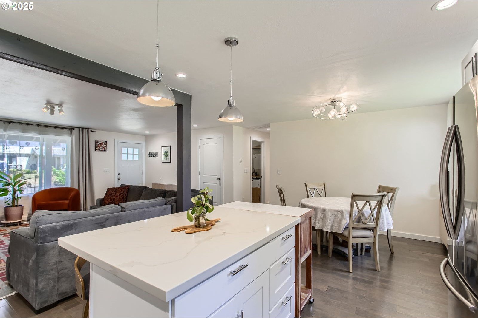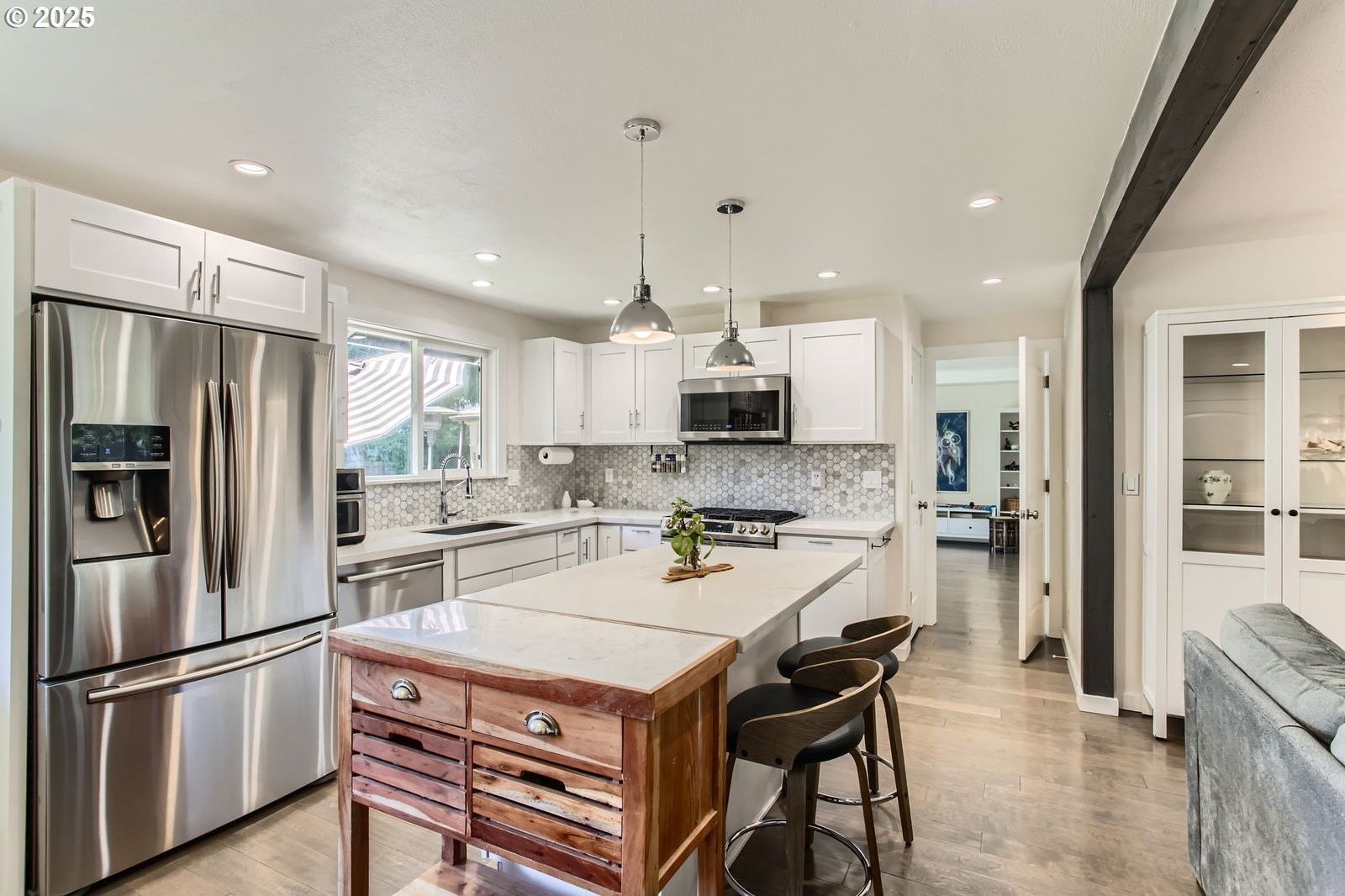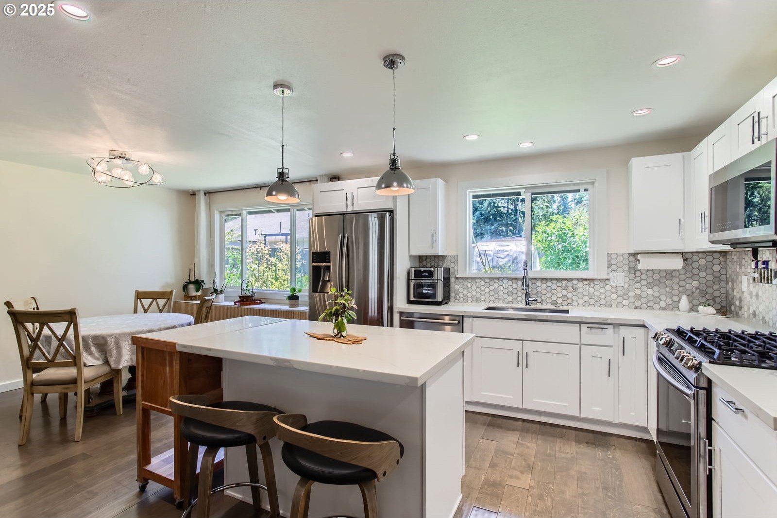 Welcome to 7475 SW Wilson Ave, a well-cared-for single-level home in Beaverton’s desirable Highland Hills neighborhood. Featuring a smart layout, thoughtful updates, and a central location near major employers, parks, and shopping, this home offers both practicality and comfort. Step into the front living room, where a gas fireplace with a whitewashed brick hearth stretching from floor to ceiling serves as the centerpiece, flanked by shelving—perfect for displaying books, art, or keepsakes. The kitchen has been updated with quartz countertops, stainless steel appliances, and clean-lined cabinetry, opening to a casual dining area and a second living space with access to the backyard—ideal for everyday living or weekend hosting. The primary suite features an attached bathroom with a walk-in shower and modern finishes. Two additional bedrooms provide flexibility for guests, remote work, or hobbies. Both bathrooms have been refreshed with modern updates. Outside, the fully fenced backyard is a true highlight. Enjoy a newly paved patio with durable pavers and a charming gazebo—perfect for outdoor dining or relaxing year-round. The yard also includes a lawn and a large garden area, ready for vegetables, flowers, or your personal touch. The home’s exterior has just been freshly and professionally painted for great curb appeal and peace of mind. The two-car garage includes additional overhead storage, ideal for seasonal items or tools. Located minutes from Nike World Headquarters, Cedar Hills Crossing, Washington Square, and the Beaverton Transit Center, with quick access to Hwy 217, Beaverton-Hillsdale Hwy, Camille Park (1 mile), and Fanno Creek Trail (0.5 miles). Groceries, coffee shops, and schools are just around the corner. If you're looking for a move-in ready, single-level home in a convenient Beaverton location, 7475 SW Wilson Ave is ready to welcome you.