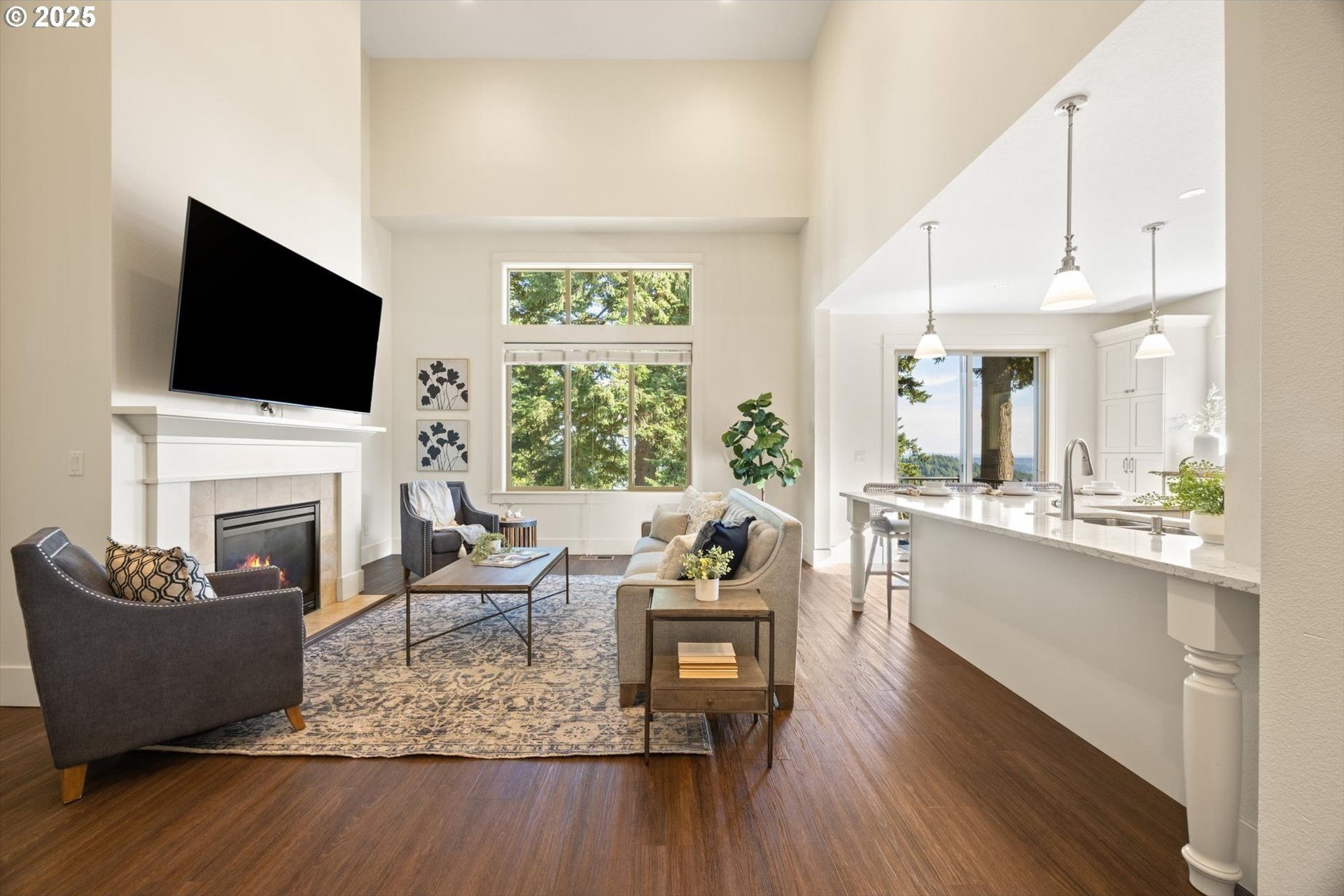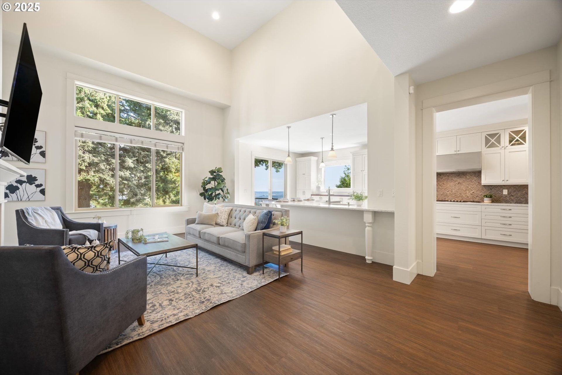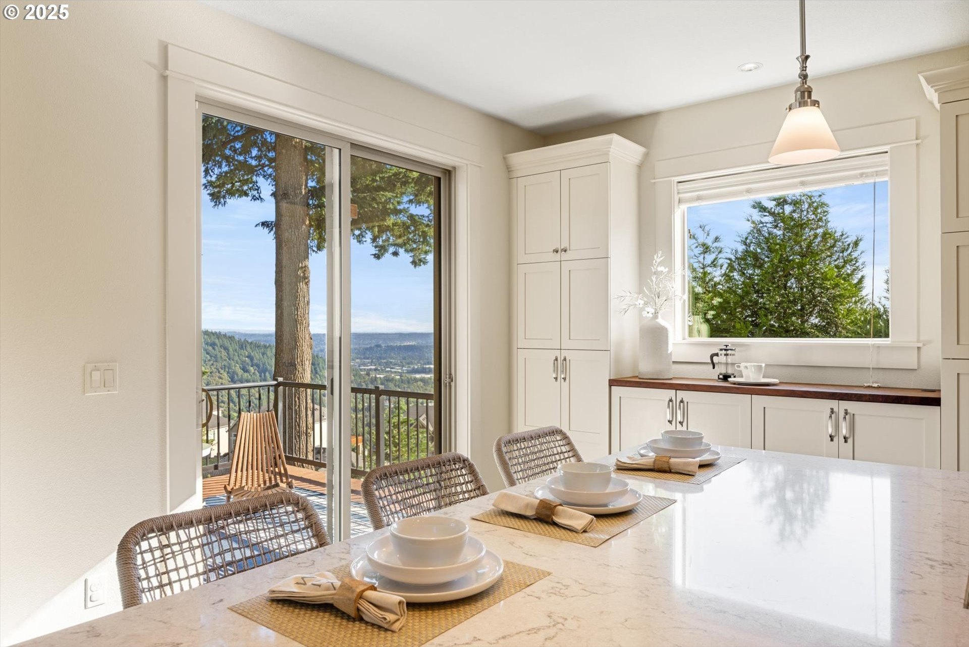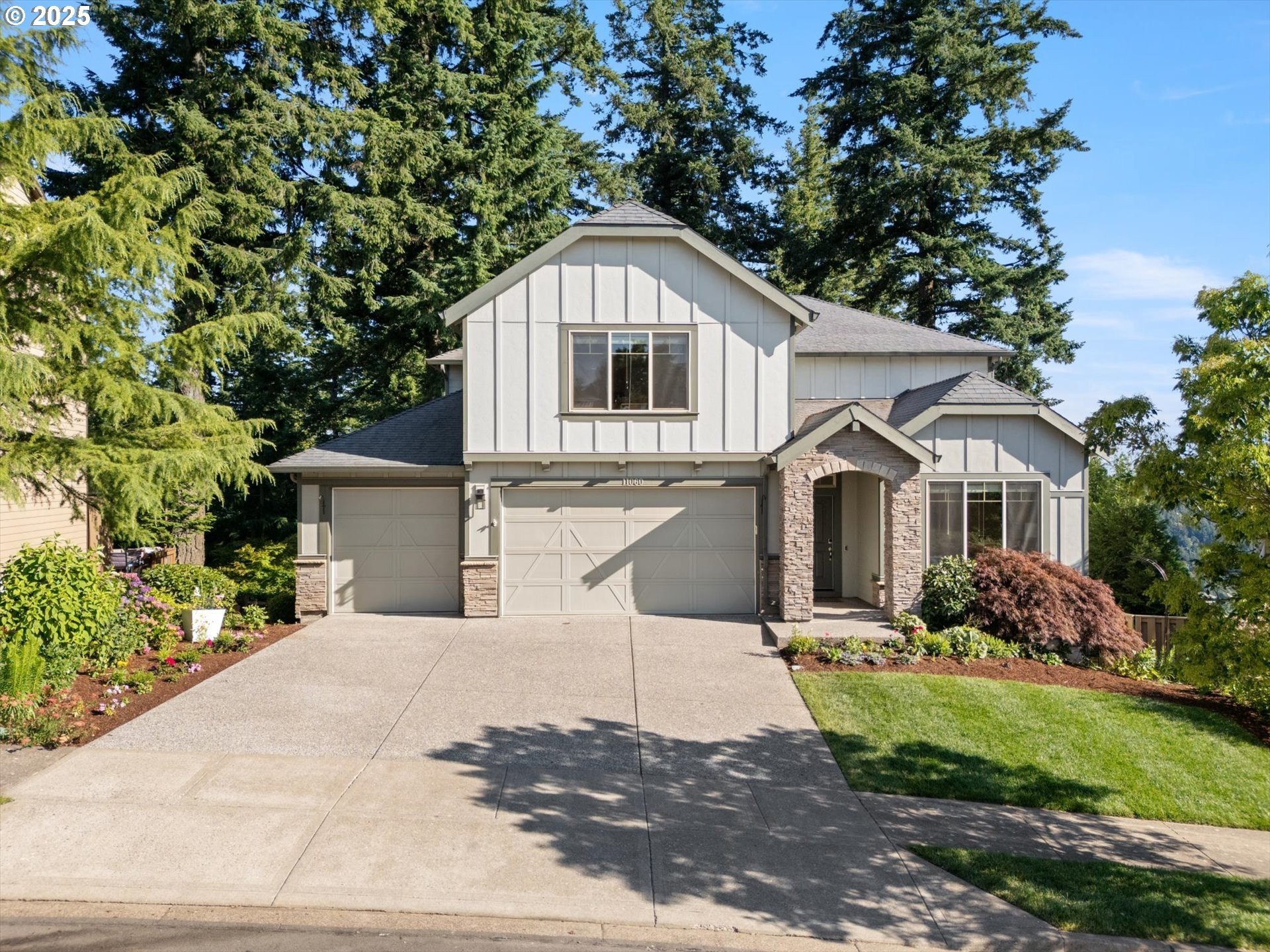 This rare 5-bedroom, 3.1-bathroom property in the friendly Sunnyside Highlands neighborhood has it all: location, views, comfort, style, and convenience. Come home to a quiet cul-de-sac and relax with gorgeous views in every room. The spacious open-concept layout, three finished levels, and majestic backyard provide room to work, relax, or play. Vaulted ceilings fill the home with natural light. In this move-in-ready home, your family will be the first to enjoy fresh interior paint, brand-new carpet, and updated light fixtures. The gourmet kitchen features stainless steel appliances, quartz countertops, a large island with seating, and plenty of cabinet space—perfect for cooking and entertaining. With a flat driveway, attached 3-car garage, and convenient entry near the kitchen, returning home from shopping is a breeze. The primary suite is conveniently located on the main floor, separate from the upstairs and downstairs bedrooms, so everyone has their own quiet place at night. Each floor has its own bedrooms and full bath, perfect for private space for guests or a home office. Don’t miss the secret climbing wall hidden behind the basement bookshelf!