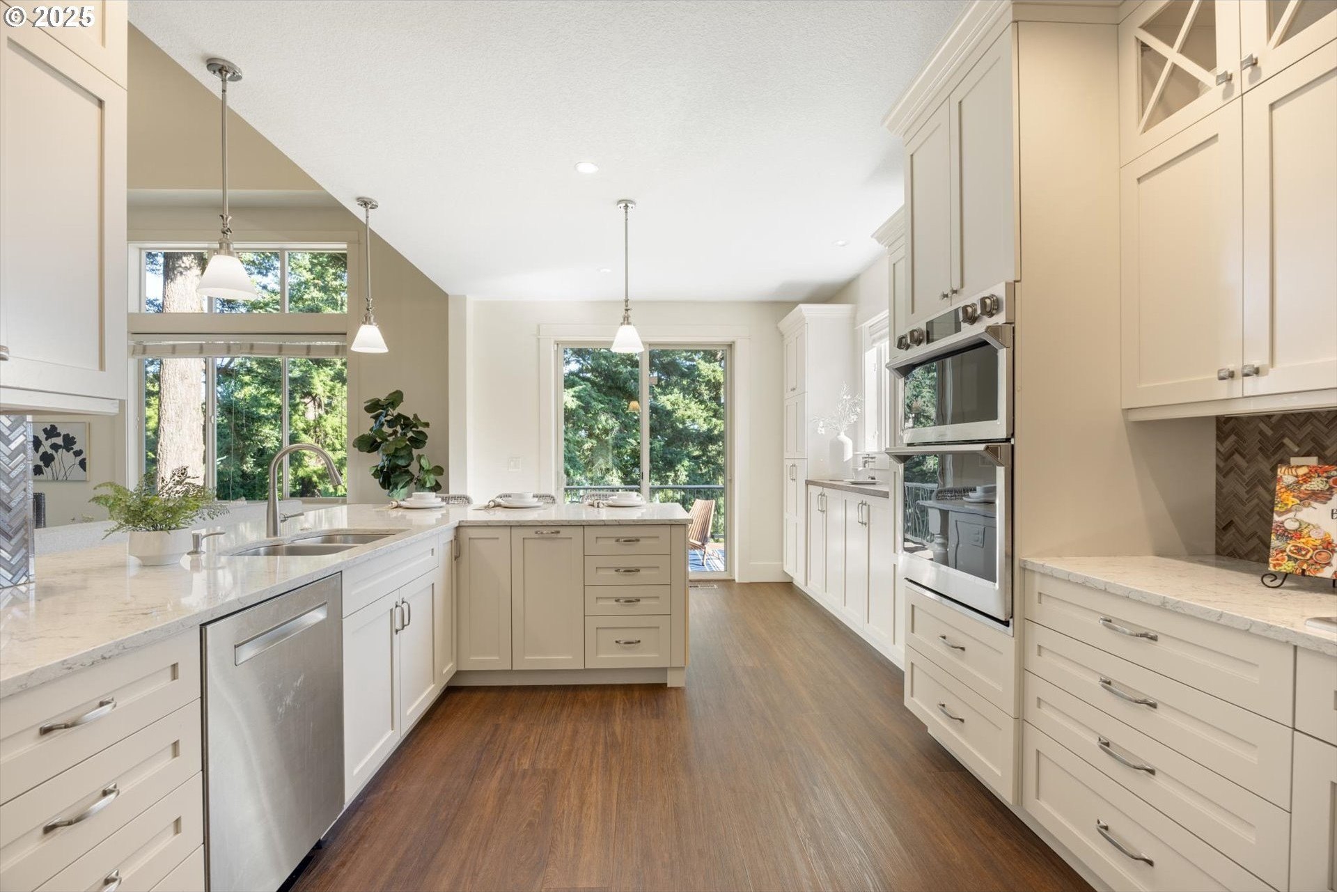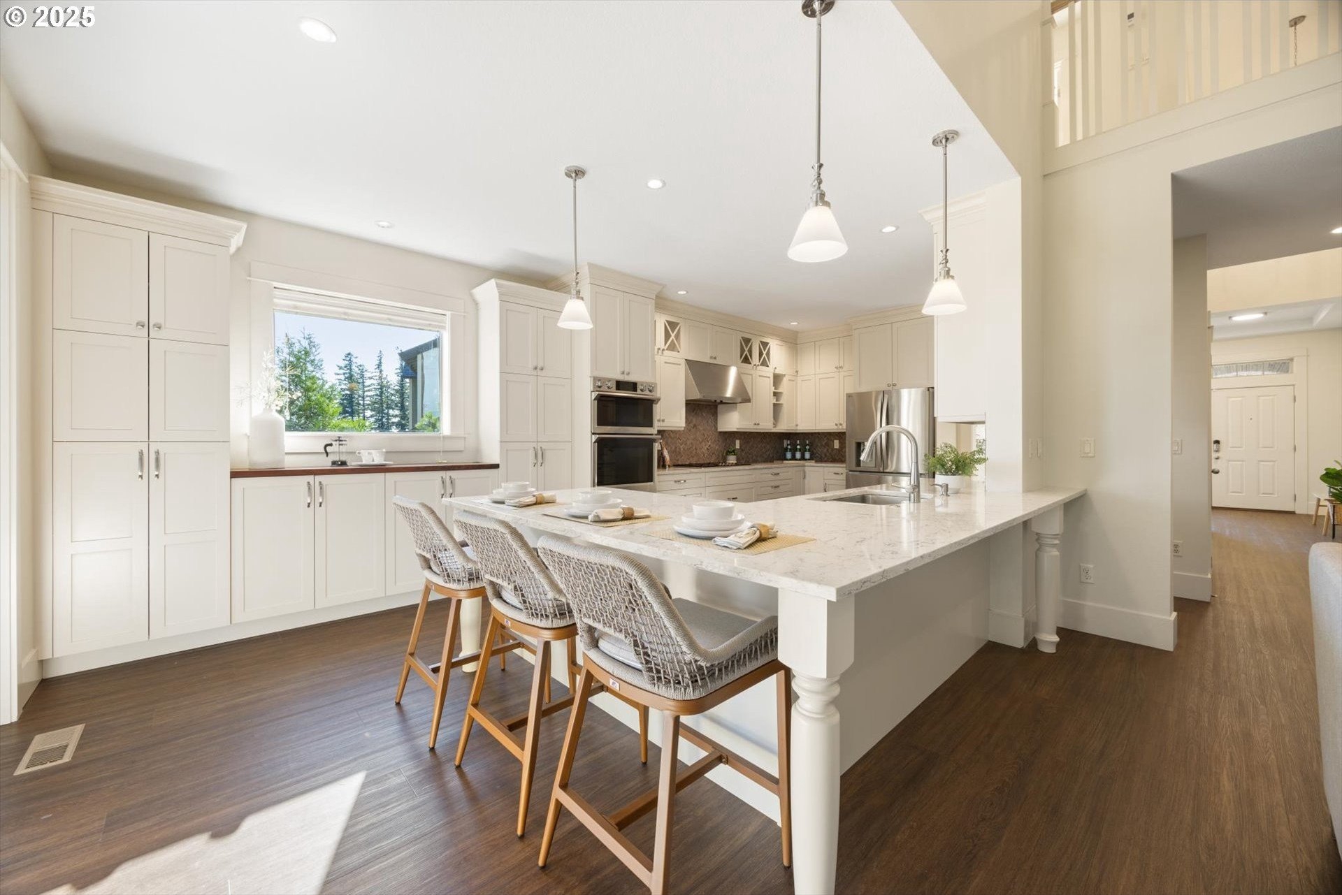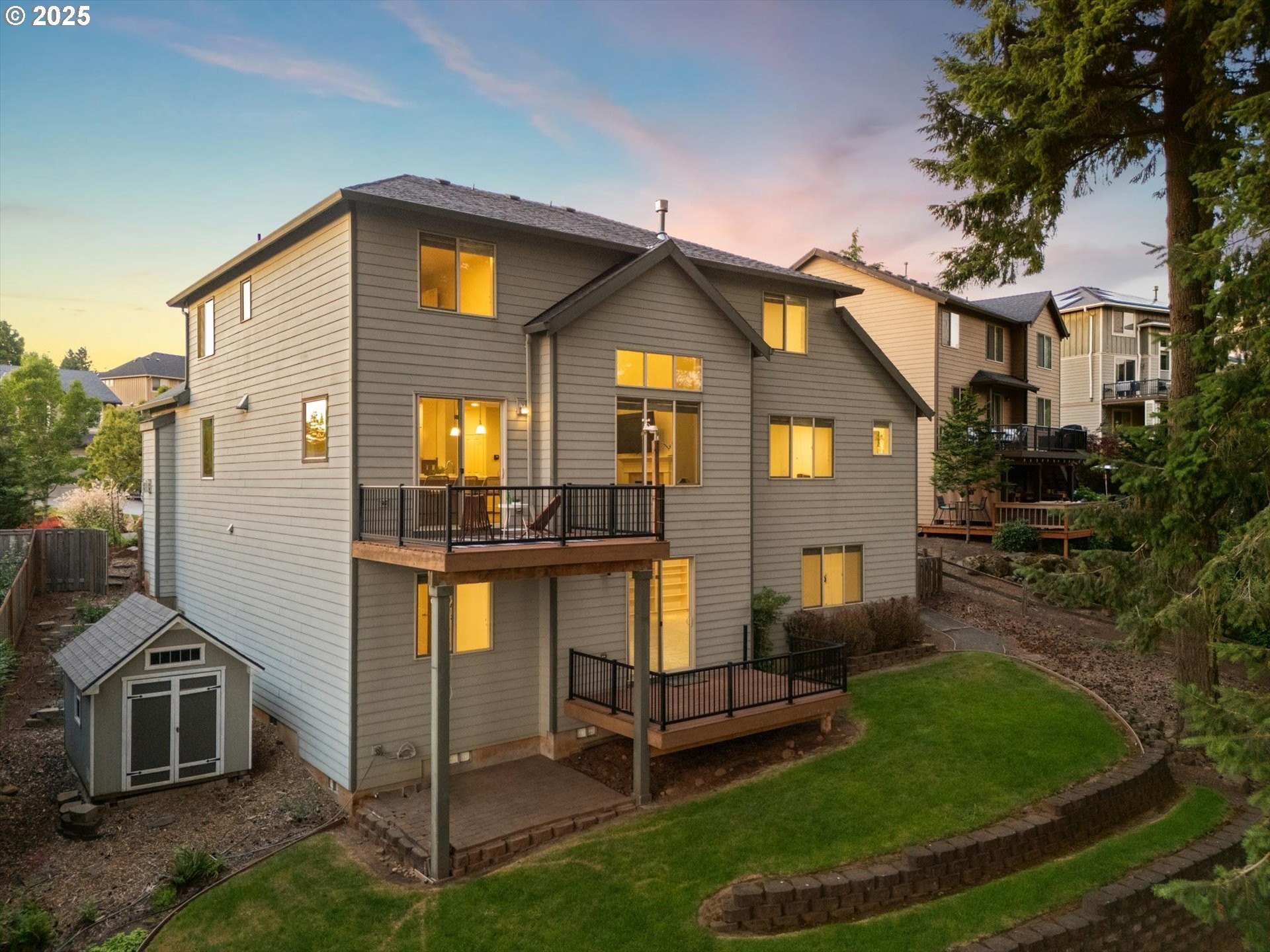 This rare 5-bedroom, 3.1-bathroom property in the friendly Sunnyside Highlands neighborhood has it all: location, views, comfort, style, and convenience. Come home to a quiet cul-de-sac and relax with gorgeous views in every room. The spacious open-concept layout, three finished levels, and majestic backyard provide room to work, relax, or play. Vaulted ceilings fill the home with natural light. In this move-in-ready home, your family will be the first to enjoy fresh interior paint, brand-new carpet, and updated light fixtures. The gourmet kitchen features stainless steel appliances, quartz countertops, a large island with seating, and plenty of cabinet space—perfect for cooking and entertaining. With a flat driveway, attached 3-car garage, and convenient entry near the kitchen, returning home from shopping is a breeze. The primary suite is conveniently located on the main floor, separate from the upstairs and downstairs bedrooms, so everyone has their own quiet place at night. Each floor has its own bedrooms and full bath, perfect for private space for guests or a home office. Don’t miss the secret climbing wall hidden behind the basement bookshelf!