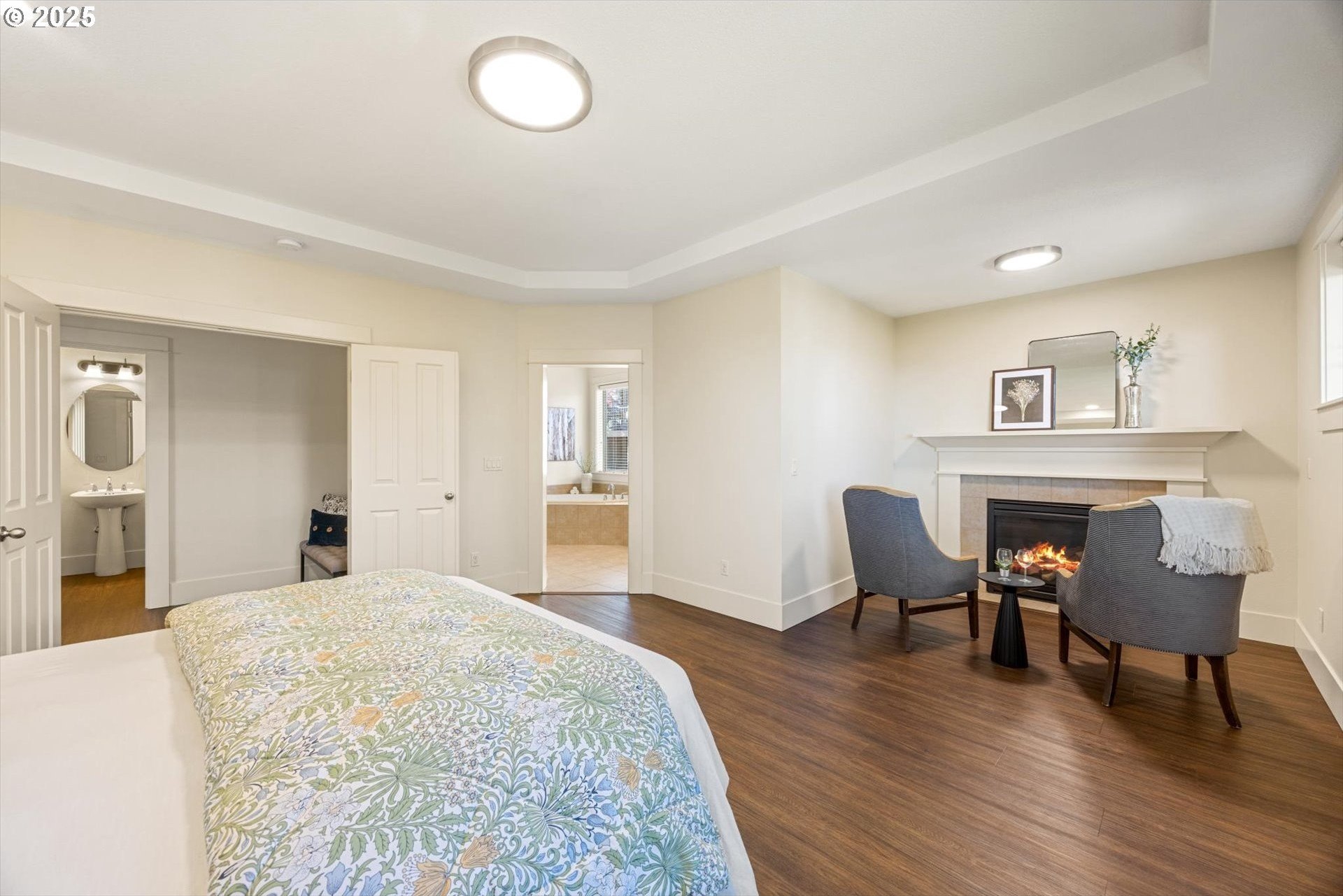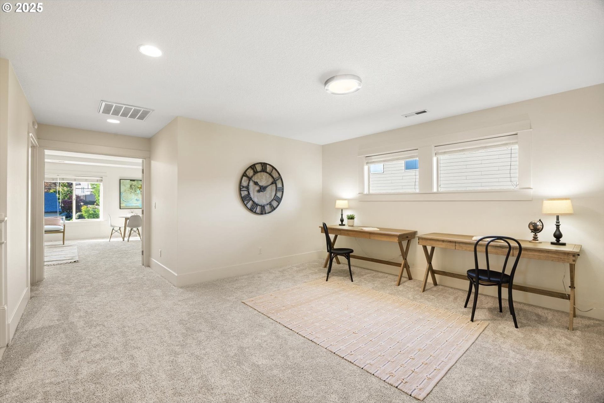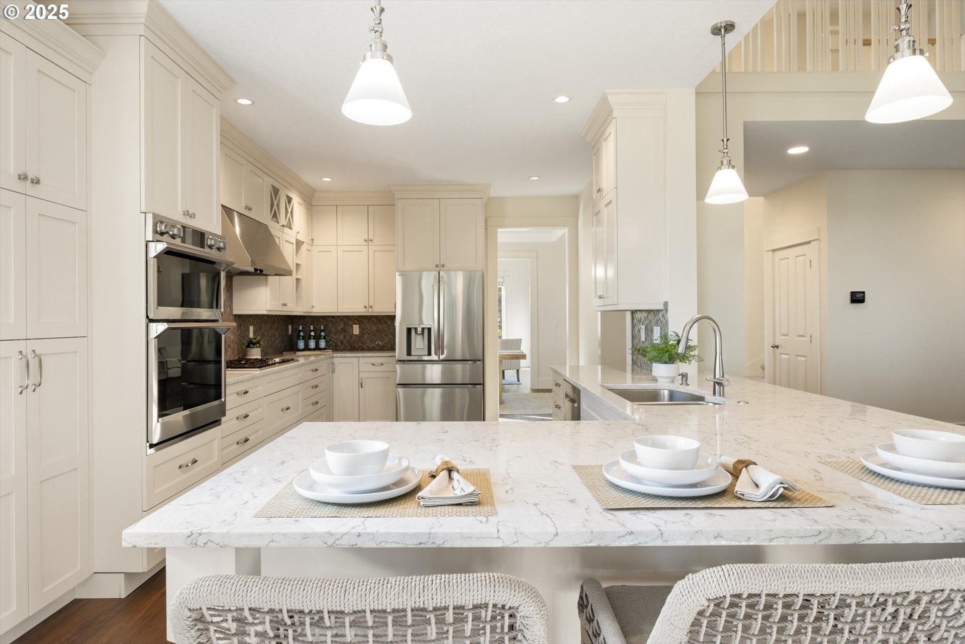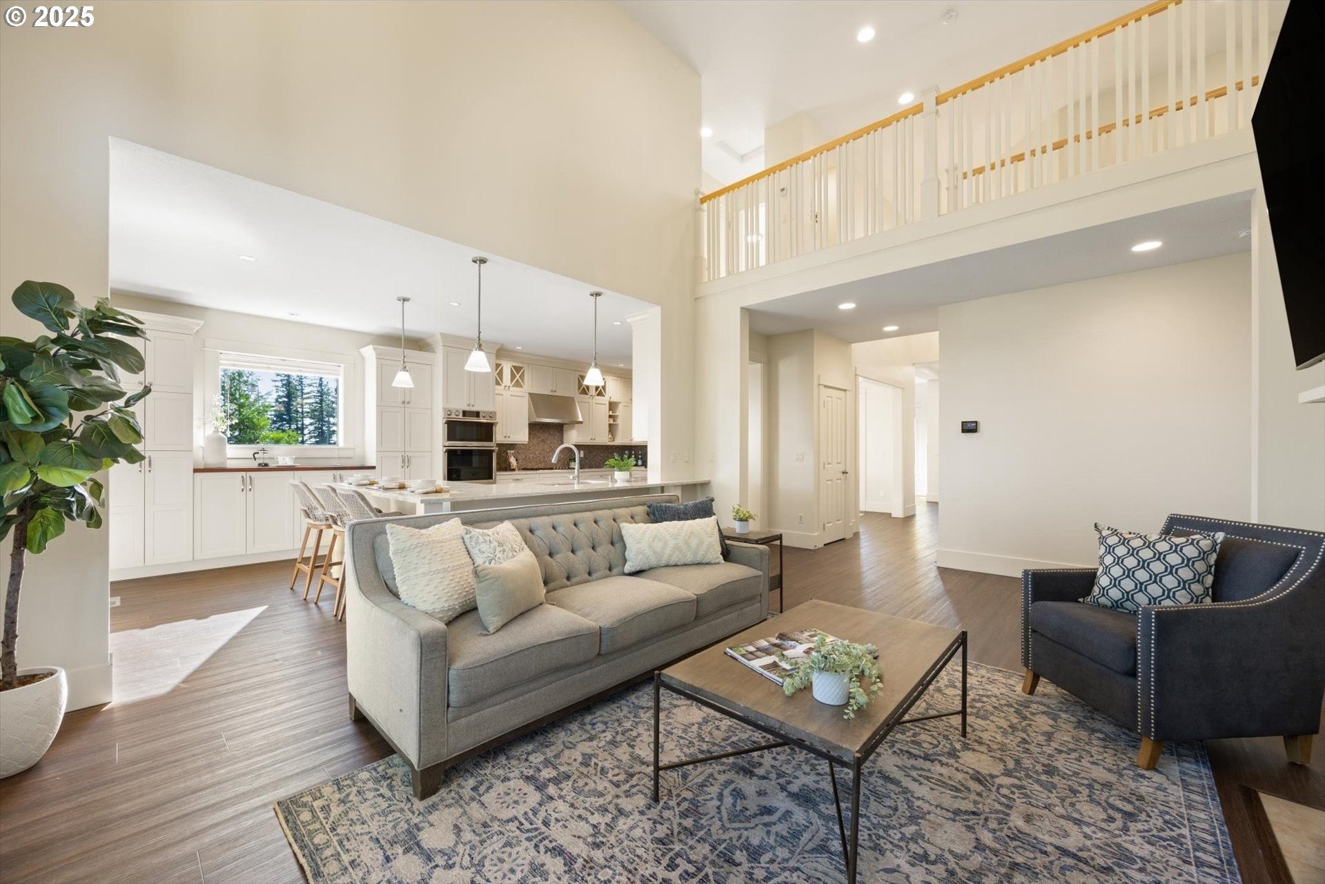 This rare 5-bedroom, 3.1-bathroom property in the friendly Sunnyside Highlands neighborhood has it all: location, views, comfort, style, and convenience. Come home to a quiet cul-de-sac and relax with gorgeous views in every room. The spacious open-concept layout, three finished levels, and majestic backyard provide room to work, relax, or play. Vaulted ceilings fill the home with natural light. In this move-in-ready home, your family will be the first to enjoy fresh interior paint, brand-new carpet, and updated light fixtures. The gourmet kitchen features stainless steel appliances, quartz countertops, a large island with seating, and plenty of cabinet space—perfect for cooking and entertaining. With a flat driveway, attached 3-car garage, and convenient entry near the kitchen, returning home from shopping is a breeze. The primary suite is conveniently located on the main floor, separate from the upstairs and downstairs bedrooms, so everyone has their own quiet place at night. Each floor has its own bedrooms and full bath, perfect for private space for guests or a home office. Don’t miss the secret climbing wall hidden behind the basement bookshelf!