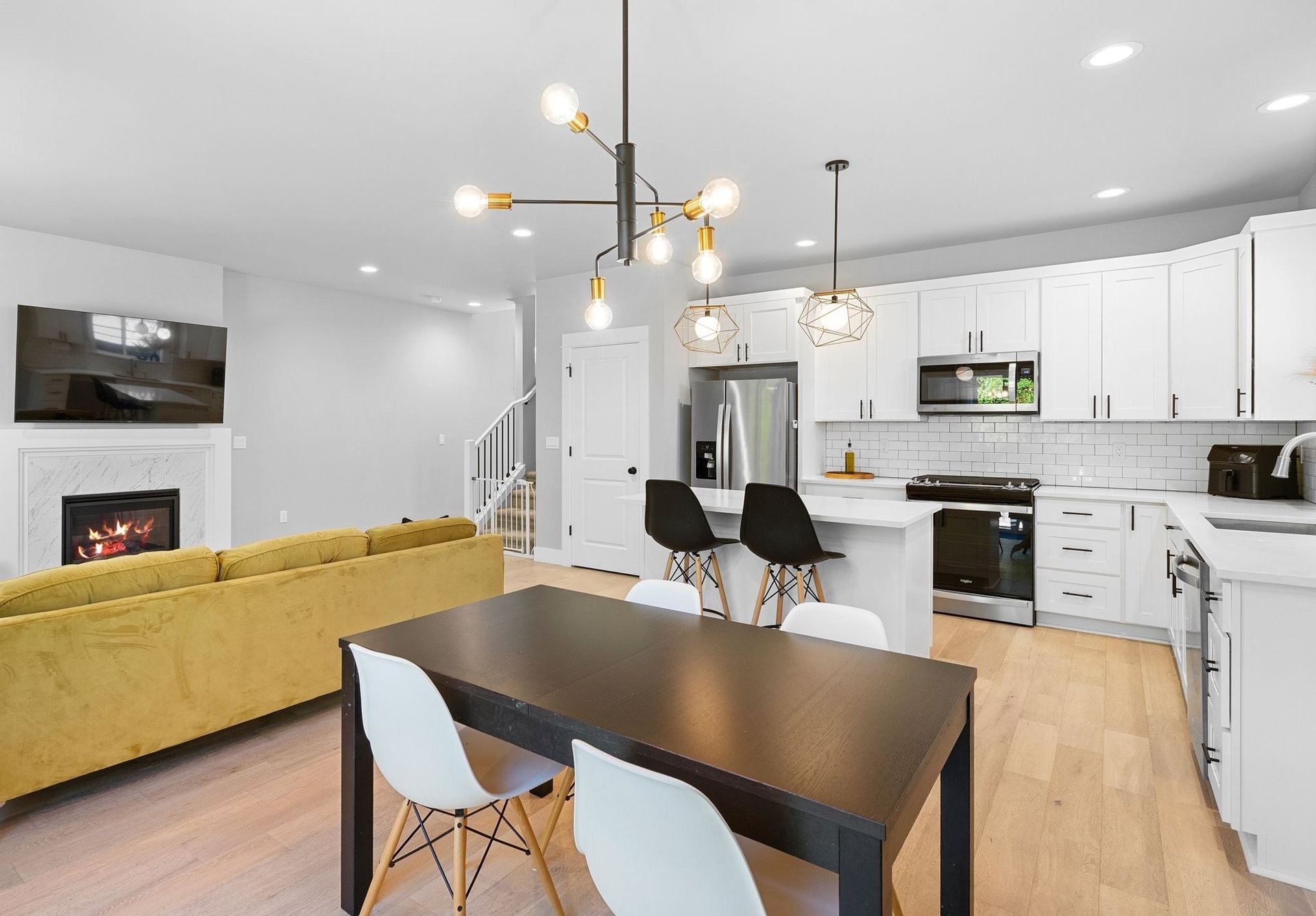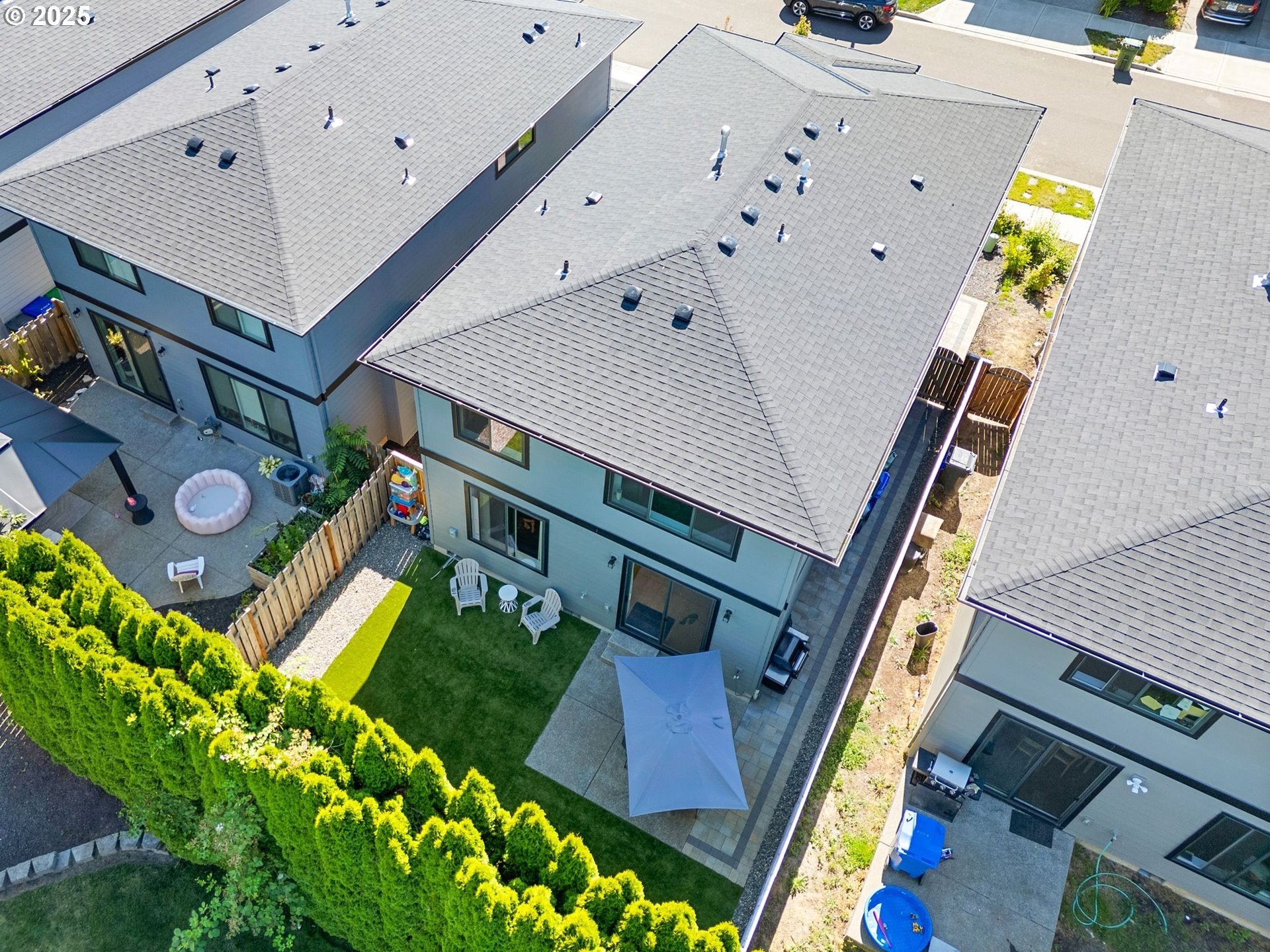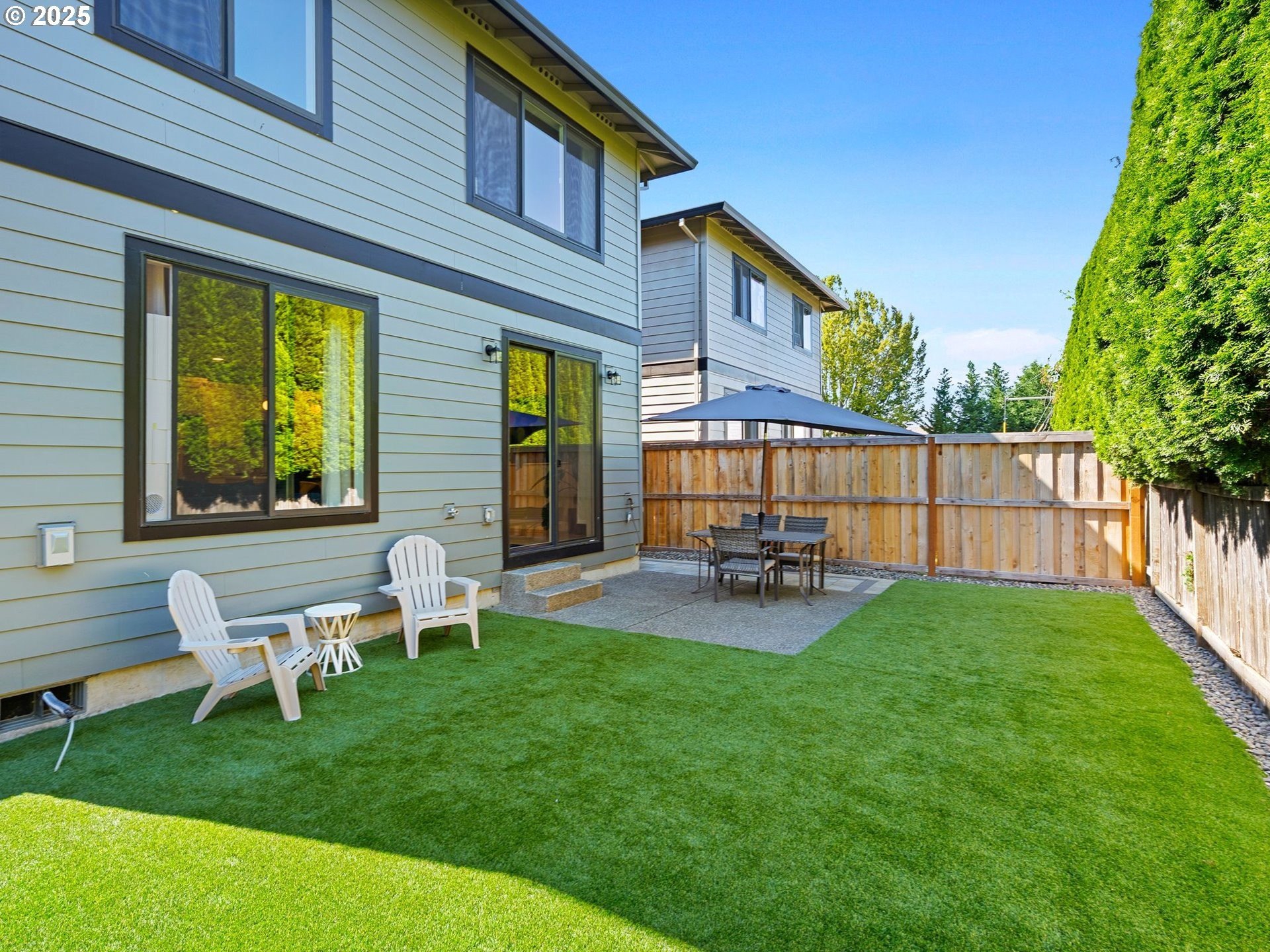 Upgraded and cherished new home in SW Gresham! Fashionable engineered hardwood flooring leads you to a great room that keeps everyone connected and features 9-foot ceilings, large windows letting natural light pour in, and a gas fireplace. Quartz countertops, a large island perfect for dining, a pantry, white subway tile, and statement light fixtures make this the dream kitchen. All four bedrooms are together upstairs where the laundry is conveniently located. The spacious primary bedroom has the ideal bathroom with a double vanity, tiled walk-in shower, and a walk-in closet with an elevated wood closet organizer. Every detail was attended to as the hallway bathroom also features a dreamy custom blue tile. The home is energy efficient, well insulated, and A/C ready. In the back, a beautiful cedar fence and tall arborvitae hedge ensure privacy and keep everyone safe. The green turf is picturesque and perfect for playing year-round. The patio is perfect for outdoor dining and has a gas connection for a barbecue. The front landscaping has a sprinkler system. Near Butler Creek Elementary School and the Mayor Charles Becker Park neighborhood playground in an ascending area of Gresham ready to be called home!!
