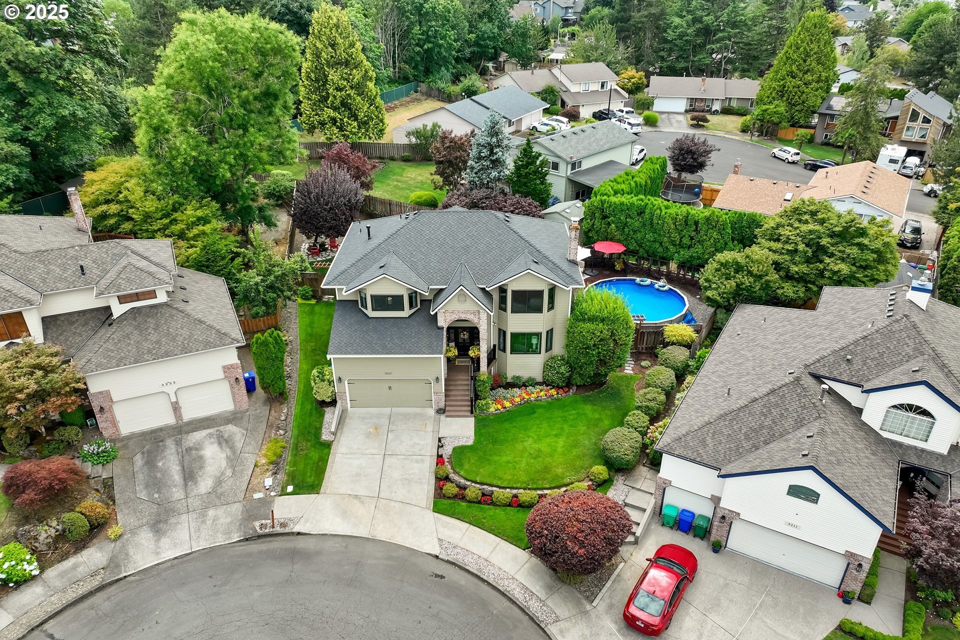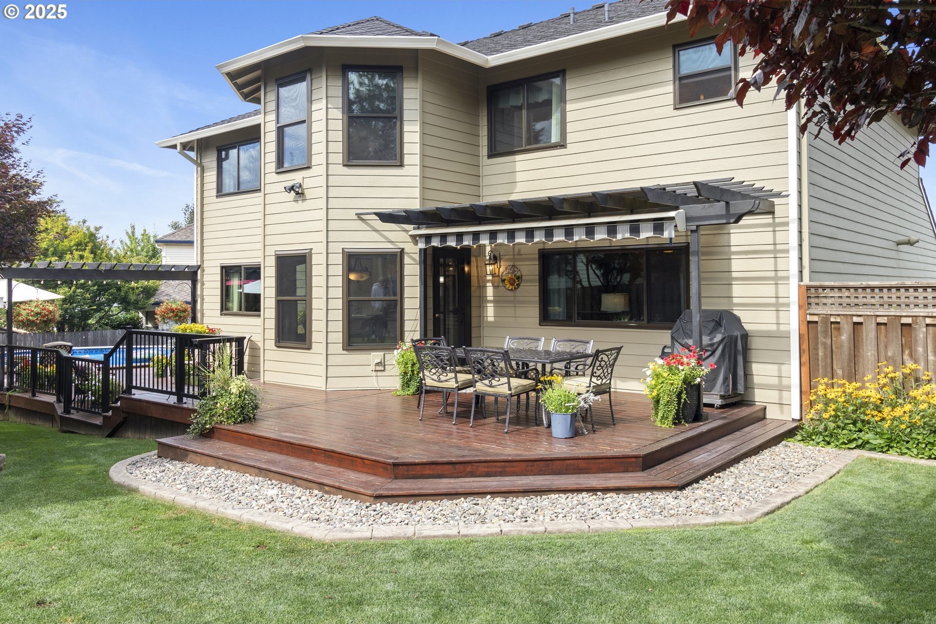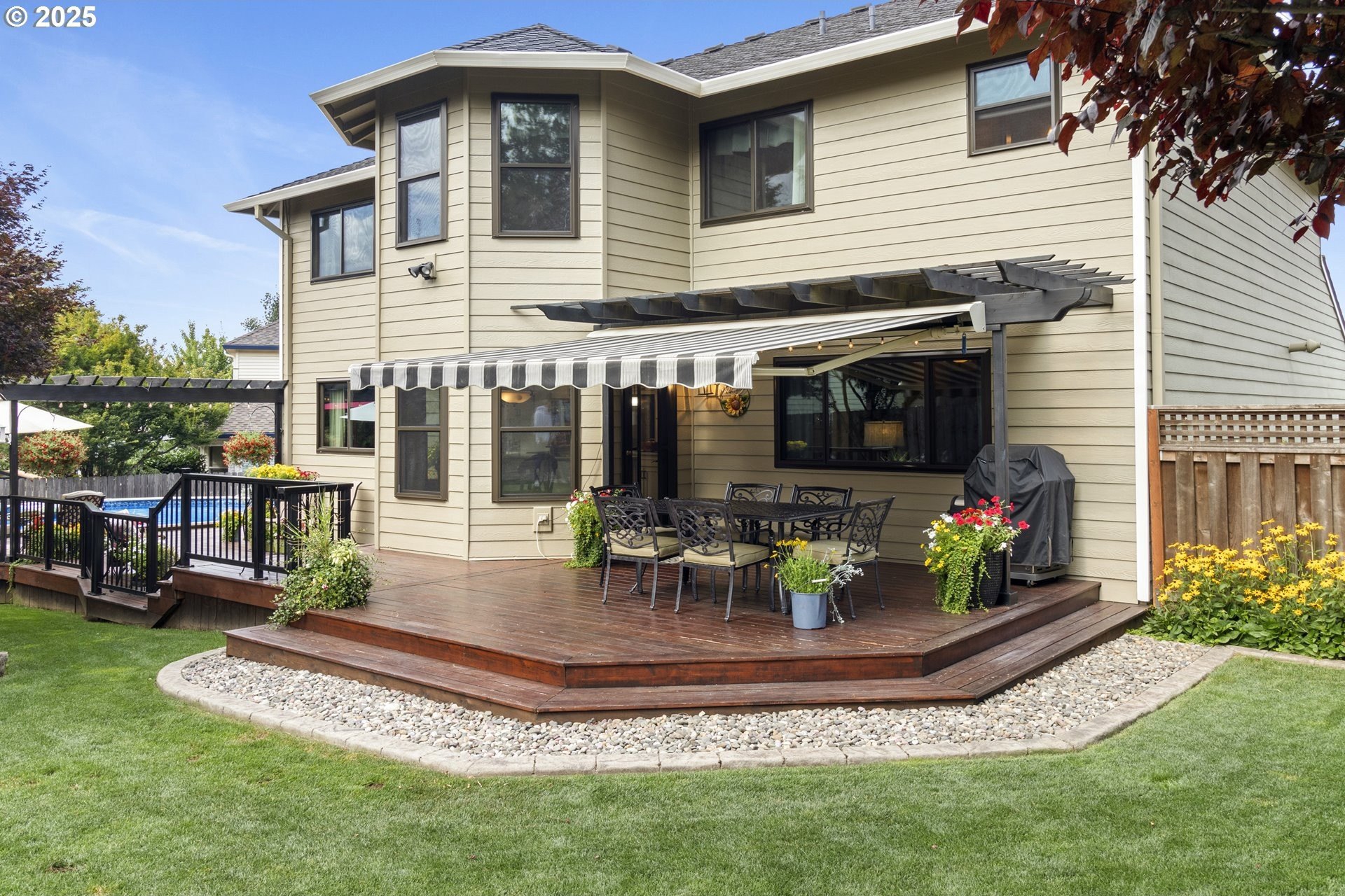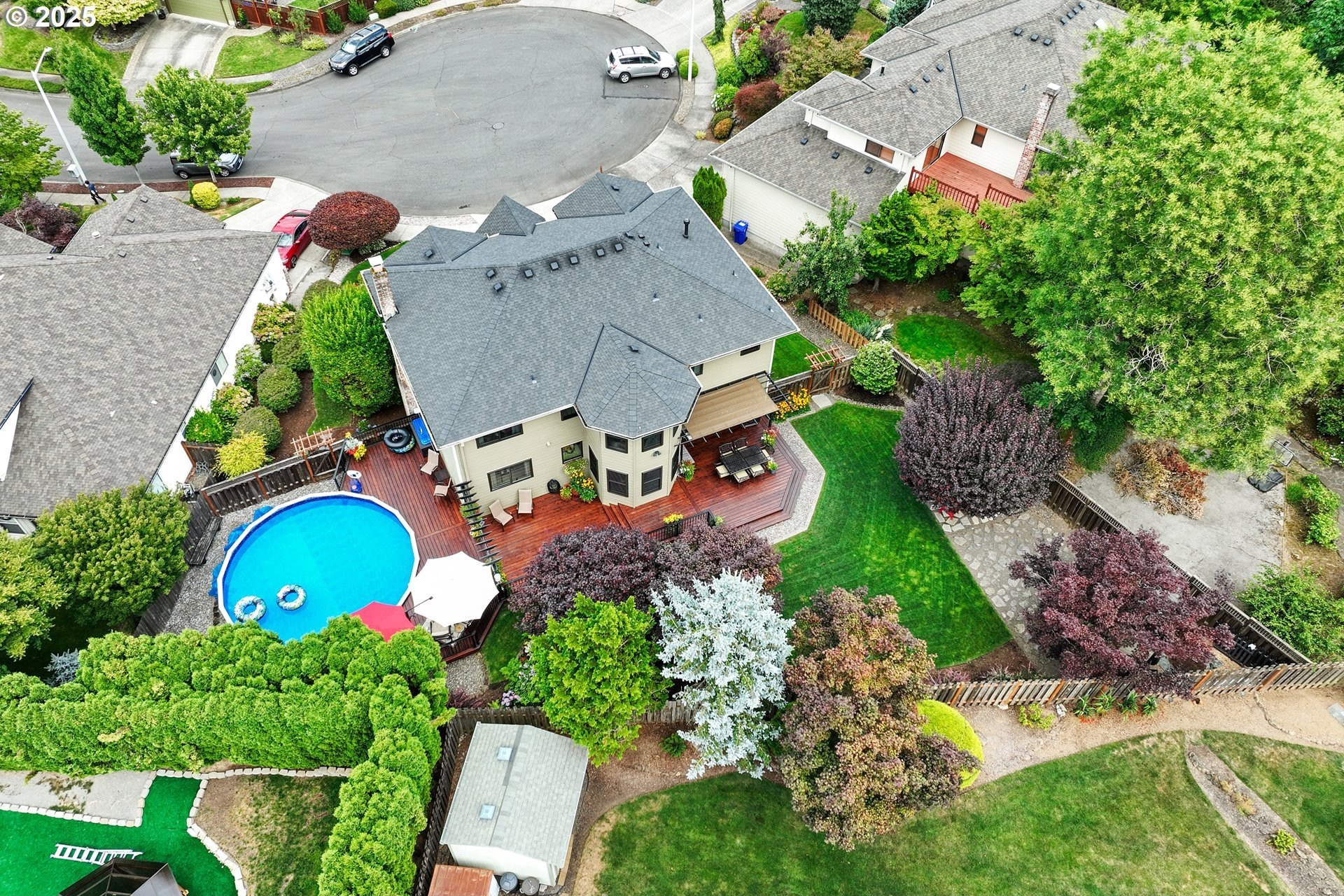 Immaculate Home with Views, Updates & a Backyard Oasis Tucked away on a quiet cul-de-sac, this beautifully maintained home has been lovingly cared for by the original owners. With 4 bedrooms—or 3 plus an office—it offers a flexible layout to suit your needs.A cozy living room with a gas fireplace and territorial views greets you at the front door. The open-concept great room features a spacious kitchen with quartz counters, GE Profile appliances, updated lighting, and durable luxury vinyl floors. There’s also a breakfast nook and family room that make this space feel warm and inviting. Upstairs, you'll find 4 generous bedrooms (or 3 + office) with territorial views—including a peek at Mt. St. Helens on clear days. Solid construction and pride of ownership are evident throughout, with updates that include:50-year roof (2018)New gutters and downspouts (2019)Triple-glazed Apex windowsAdded loft storage in the garageEasy-access dry crawlspace for extra storageOutside this home continues to shine—mature landscaping, an electric SunSetter awning for shade, and a custom deck that wraps around an above-ground poo.. This is one of those rare homes that checks all the boxes: thoughtful layout, quality updates, and a truly special outdoor space.