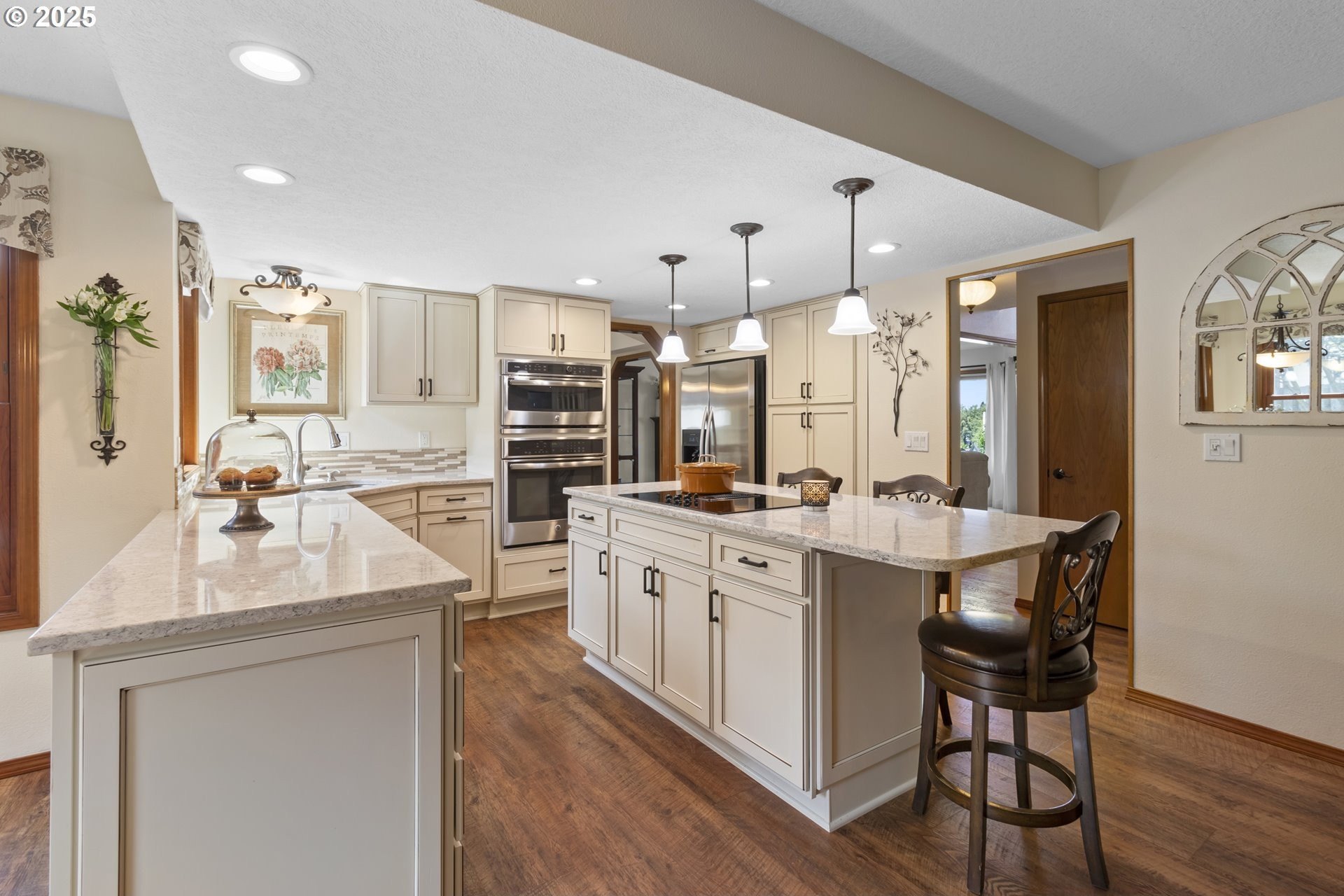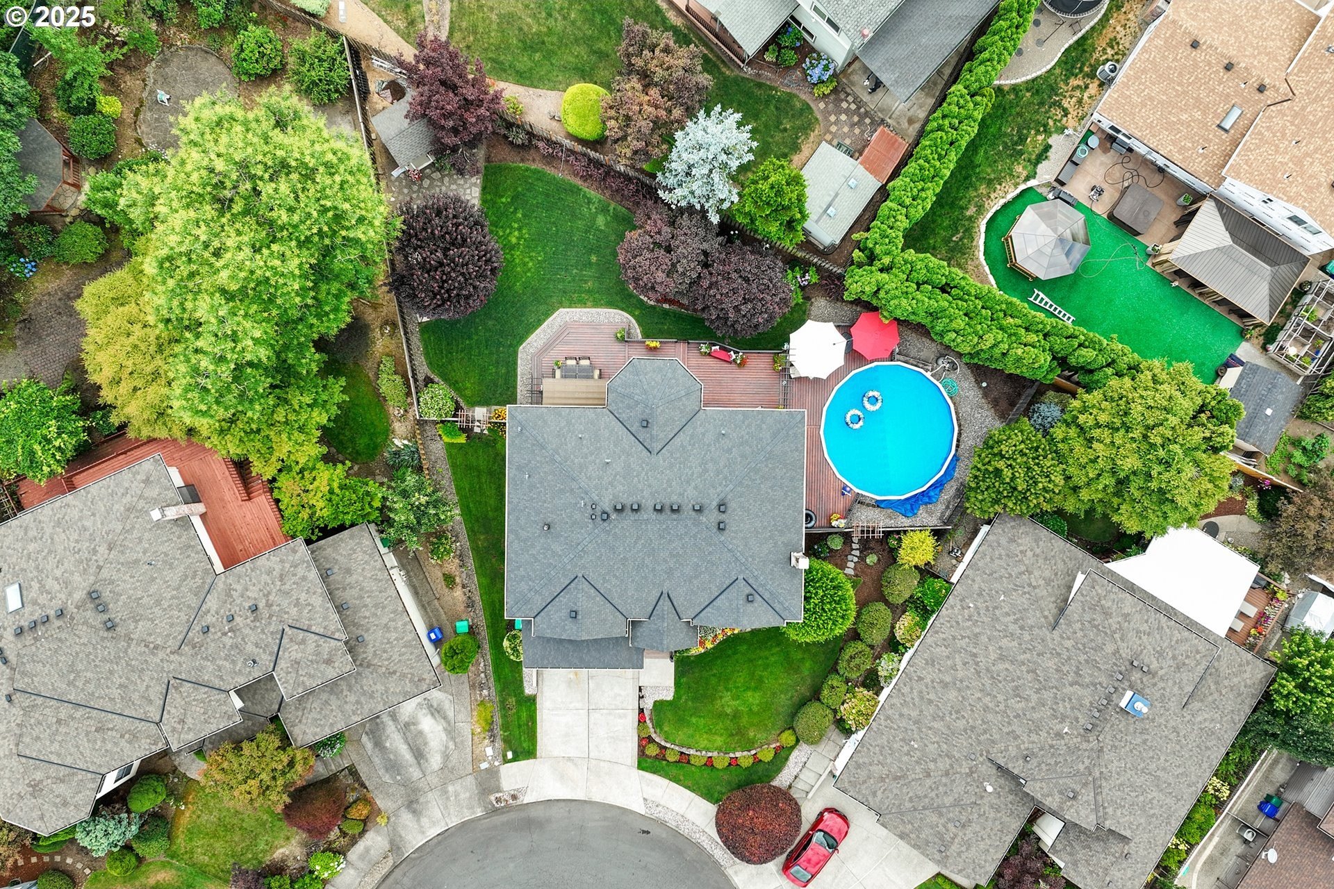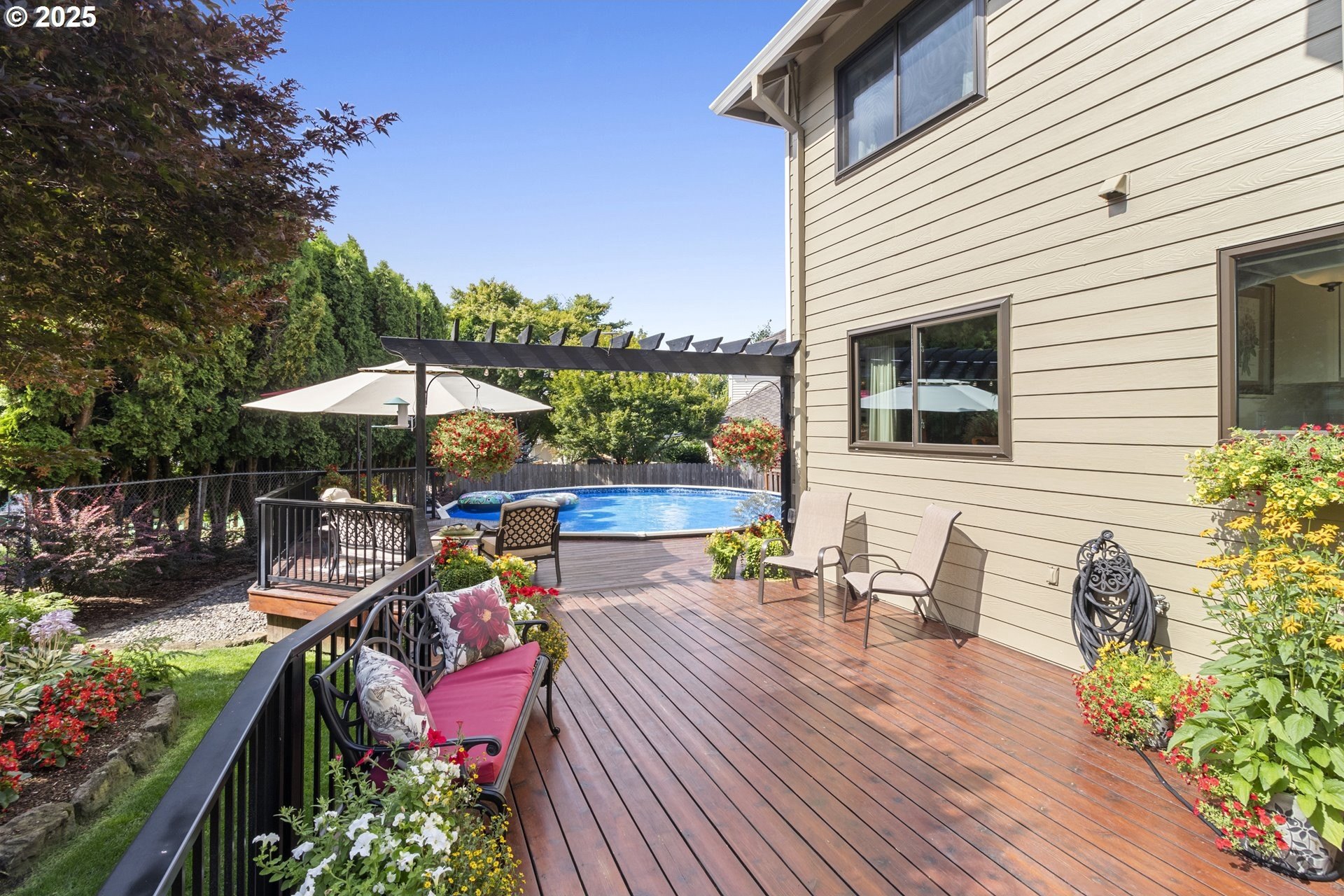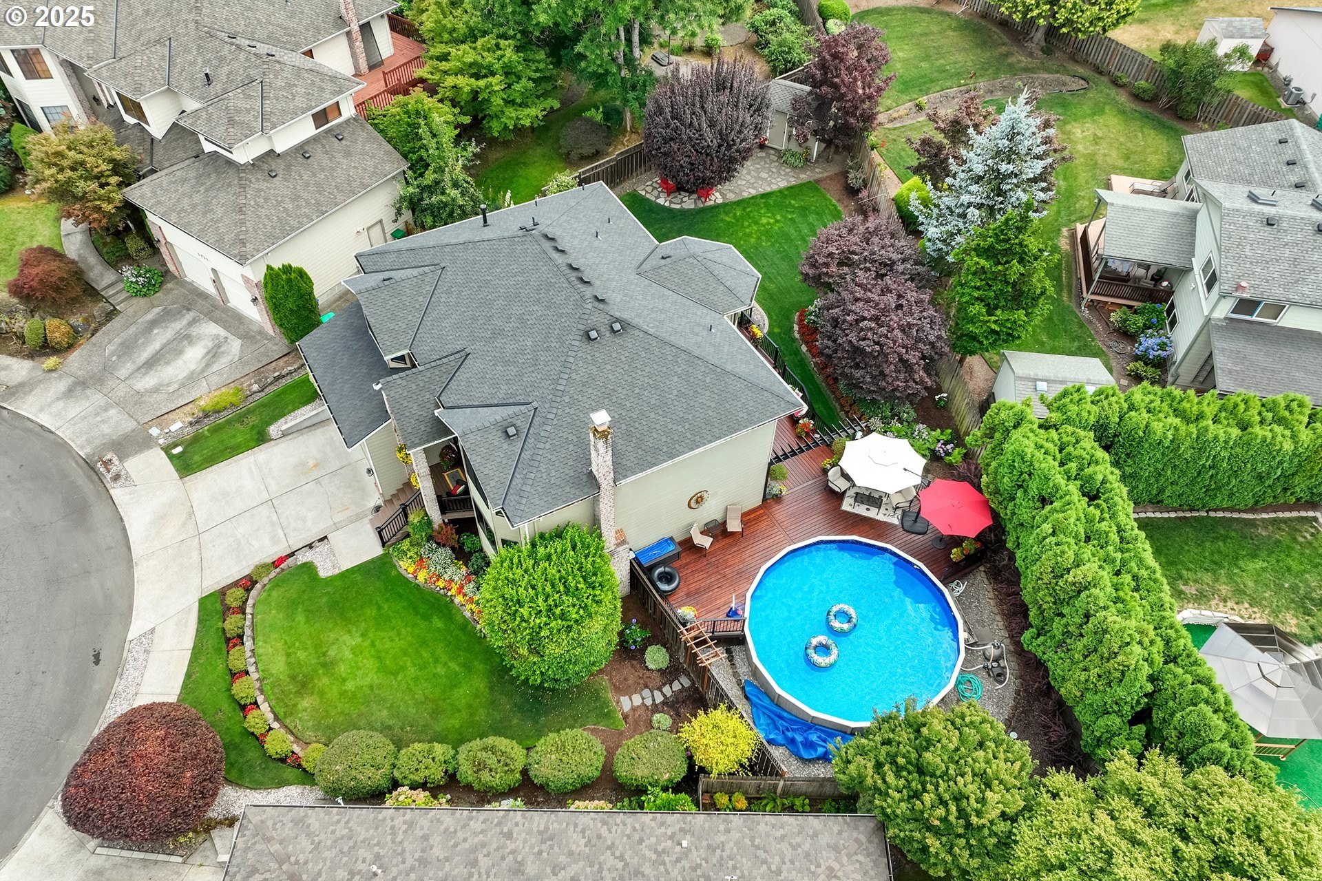 Immaculate Home with Views, Updates & a Backyard Oasis Tucked away on a quiet cul-de-sac, this beautifully maintained home has been lovingly cared for by the original owners. With 4 bedrooms—or 3 plus an office—it offers a flexible layout to suit your needs.A cozy living room with a gas fireplace and territorial views greets you at the front door. The open-concept great room features a spacious kitchen with quartz counters, GE Profile appliances, updated lighting, and durable luxury vinyl floors. There’s also a breakfast nook and family room that make this space feel warm and inviting. Upstairs, you'll find 4 generous bedrooms (or 3 + office) with territorial views—including a peek at Mt. St. Helens on clear days. Solid construction and pride of ownership are evident throughout, with updates that include:50-year roof (2018)New gutters and downspouts (2019)Triple-glazed Apex windowsAdded loft storage in the garageEasy-access dry crawlspace for extra storageOutside this home continues to shine—mature landscaping, an electric SunSetter awning for shade, and a custom deck that wraps around an above-ground poo.. This is one of those rare homes that checks all the boxes: thoughtful layout, quality updates, and a truly special outdoor space.