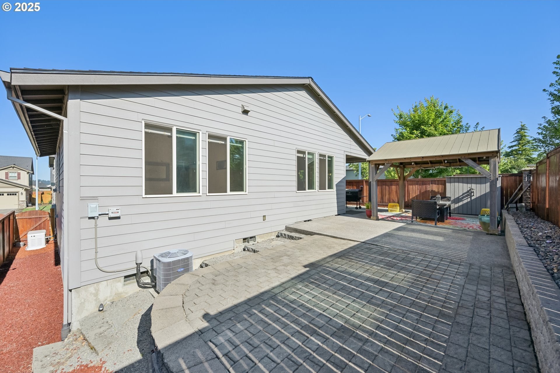 Welcome to this beautifully maintained 4-bedroom, 2.5-bathroom home, where comfort, style, and modern amenities come together seamlessly. With soaring ceilings and rich laminate flooring throughout, the spacious interior offers an open, airy feel that invites relaxation and easy living.The gourmet kitchen is a chef’s dream—featuring stunning granite countertops, stainless steel appliances, and abundant workspace, perfect for both daily meals and entertaining. The main-level primary suite is a true retreat, offering a luxurious soaking tub, dual vanities, and generous closet space.For those working from home, the dedicated office space provides flexibility for productivity, while the oversized bonus room upstairs opens up endless possibilities, whether for a media room, play area, or guest suite.Enjoy year-round comfort with central air conditioning, and rest easy knowing a whole-home backup generator is in place to ensure uninterrupted power no matter the weather.Outdoors, you’ll find a fully fenced yard with a covered patio, a charming gazebo, and an outdoor fireplace—perfect for unwinding or hosting gatherings. A convenient tool shed offers extra storage for your hobbies and gear.In addition, this home is equipped with an EV fast charger, making it easy to keep your electric vehicle powered and ready to go. Plus, the home is situated just steps from a neighborhood park—ideal for morning walks, afternoon picnics, or weekend playtime with family and friends.This home truly has it all—modern conveniences, elegant living spaces, and a fantastic location.