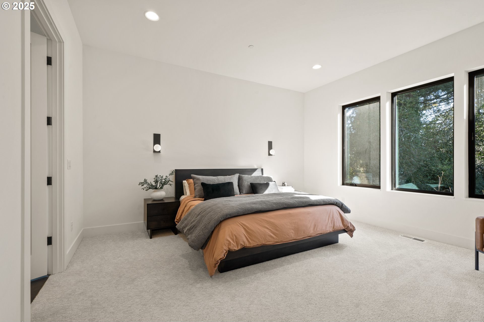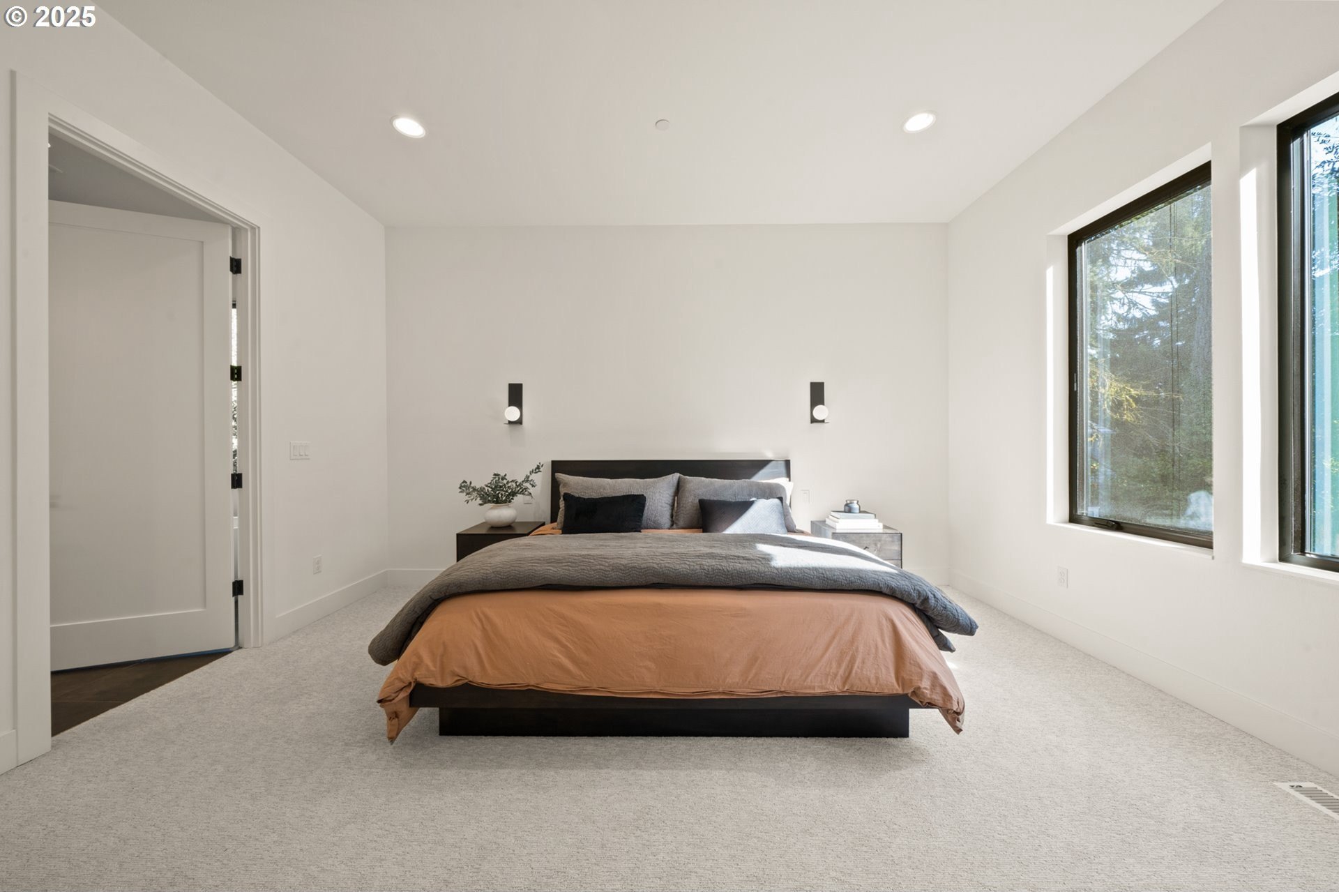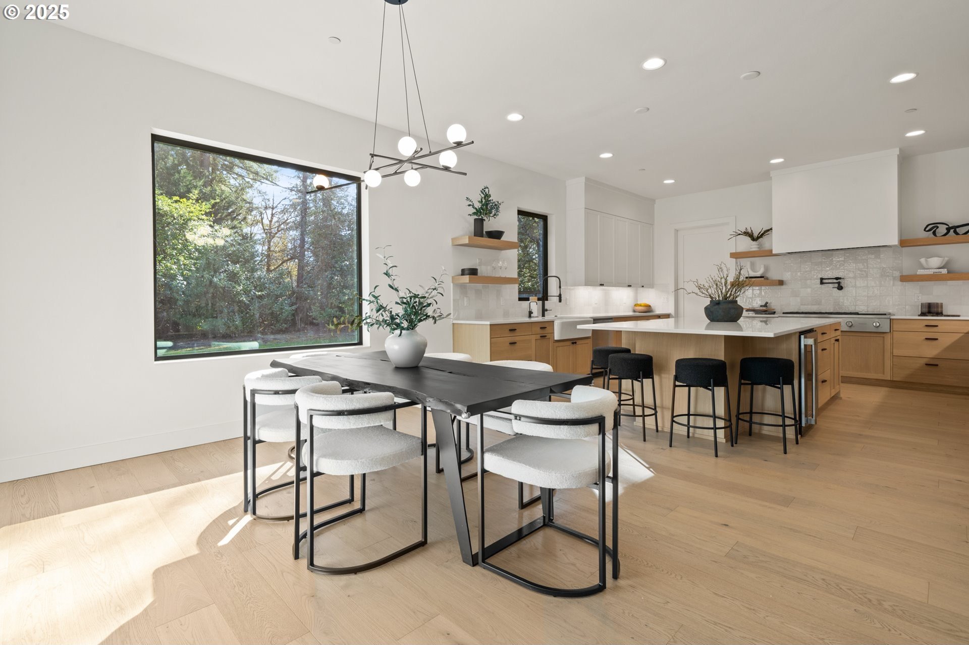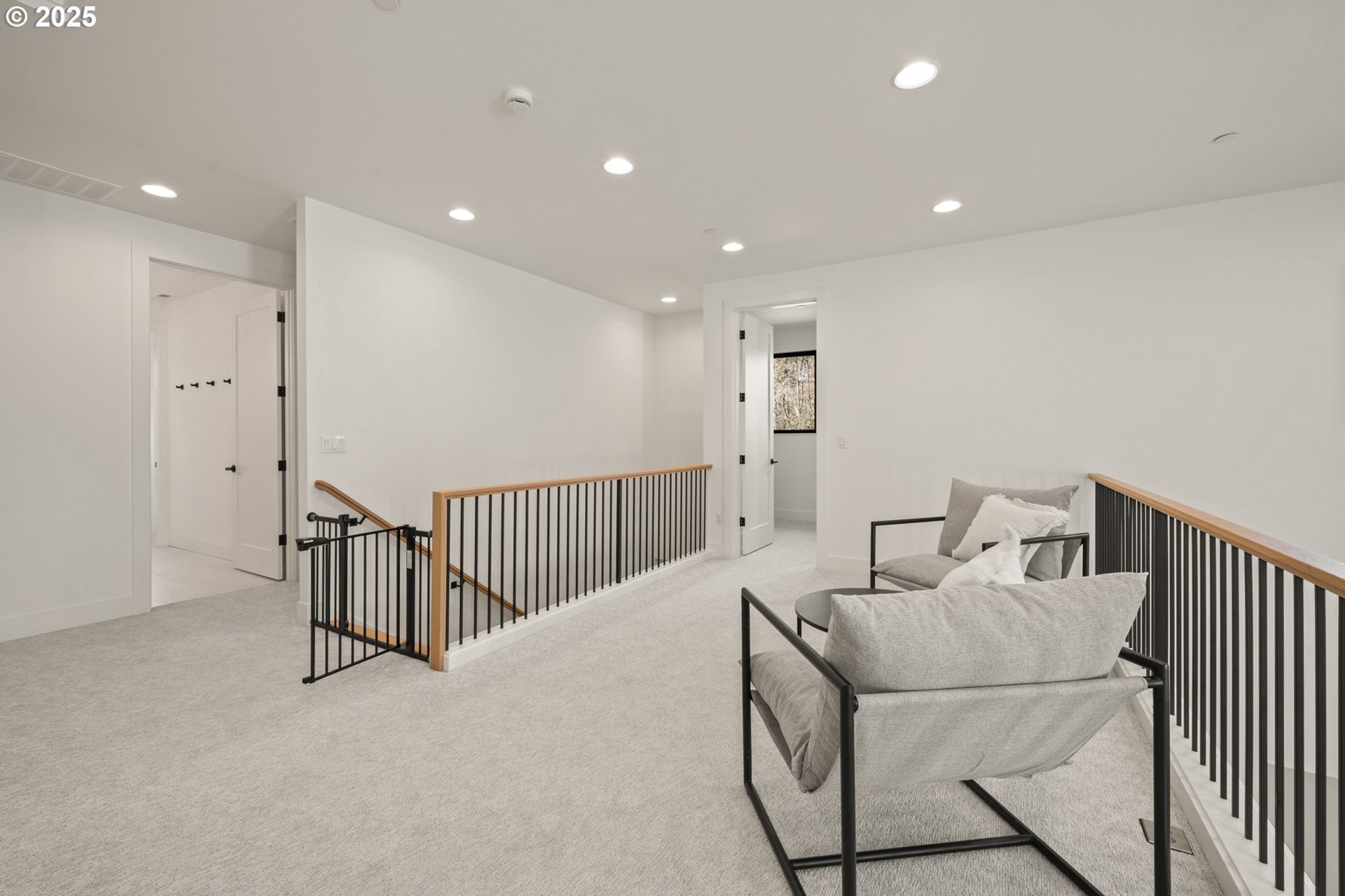 Tucked into the coveted First Highlands neighborhood, this newer custom build by notable Street of Dreams builder is a striking blend of minimalistic design and warm, organic elegance. Set on an ultra-rare 0.6-acre lot, the home offers unmatched privacy, a sprawling backyard with endless potential, and the quiet serenity of an elevated lifestyle. Step inside to soaring two-story ceilings in the great room, grounded by a stunning wood-burning masonry fireplace. The open-concept floor plan is intentionally designed with defined, yet open spaces including a sunken living room, custom white oak cabinetry, clean lines, and refined finishes throughout. A seamless indoor-outdoor flow leads to a covered outdoor living space, perfect for year-round enjoyment. The main floor offers highly desirable main-level living with both primary suite and guest room. Enjoy the versatility of dual home offices with built-ins, each thoughtfully positioned on the main level and the upper floor, offering separate work spaces. Upstairs, a lofted common area and expansive bonus room offer flexibility for media, fitness, or play. A statement of refined craftsmanship from a celebrated builder, this residence is surrounded by nature, beautifully situated on one of the neighborhood’s most exceptional lots.