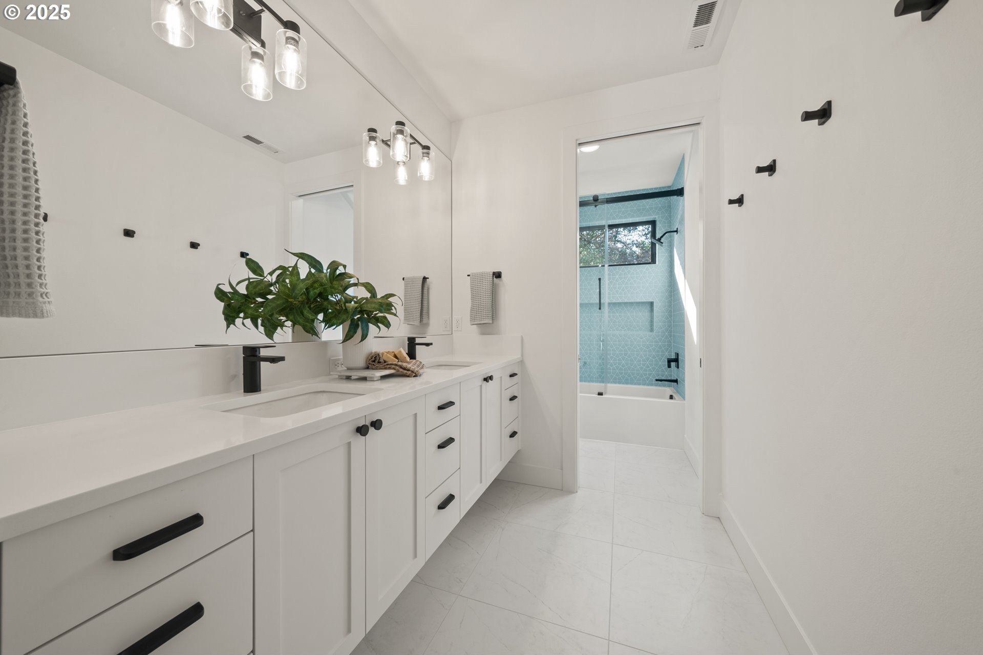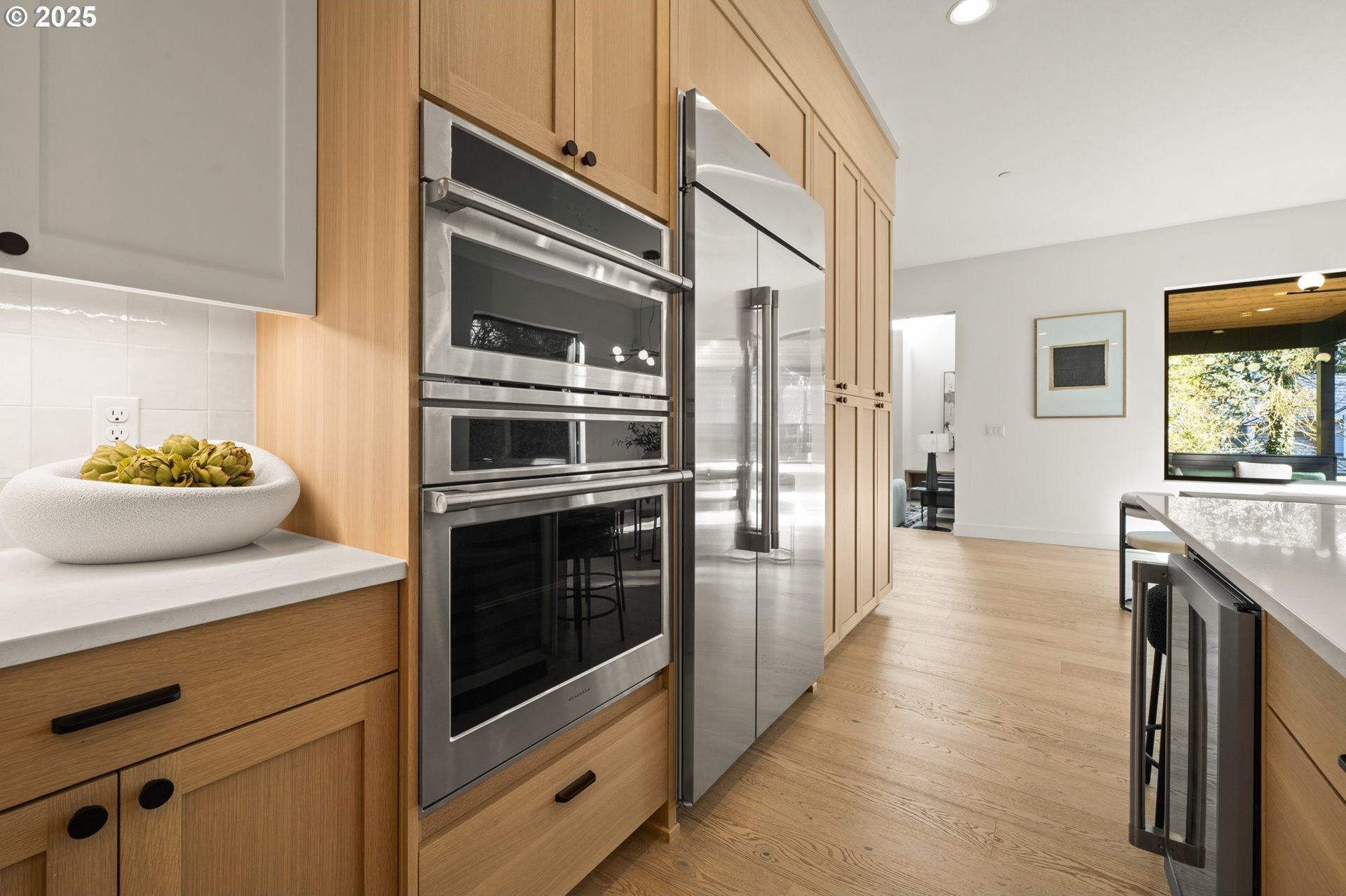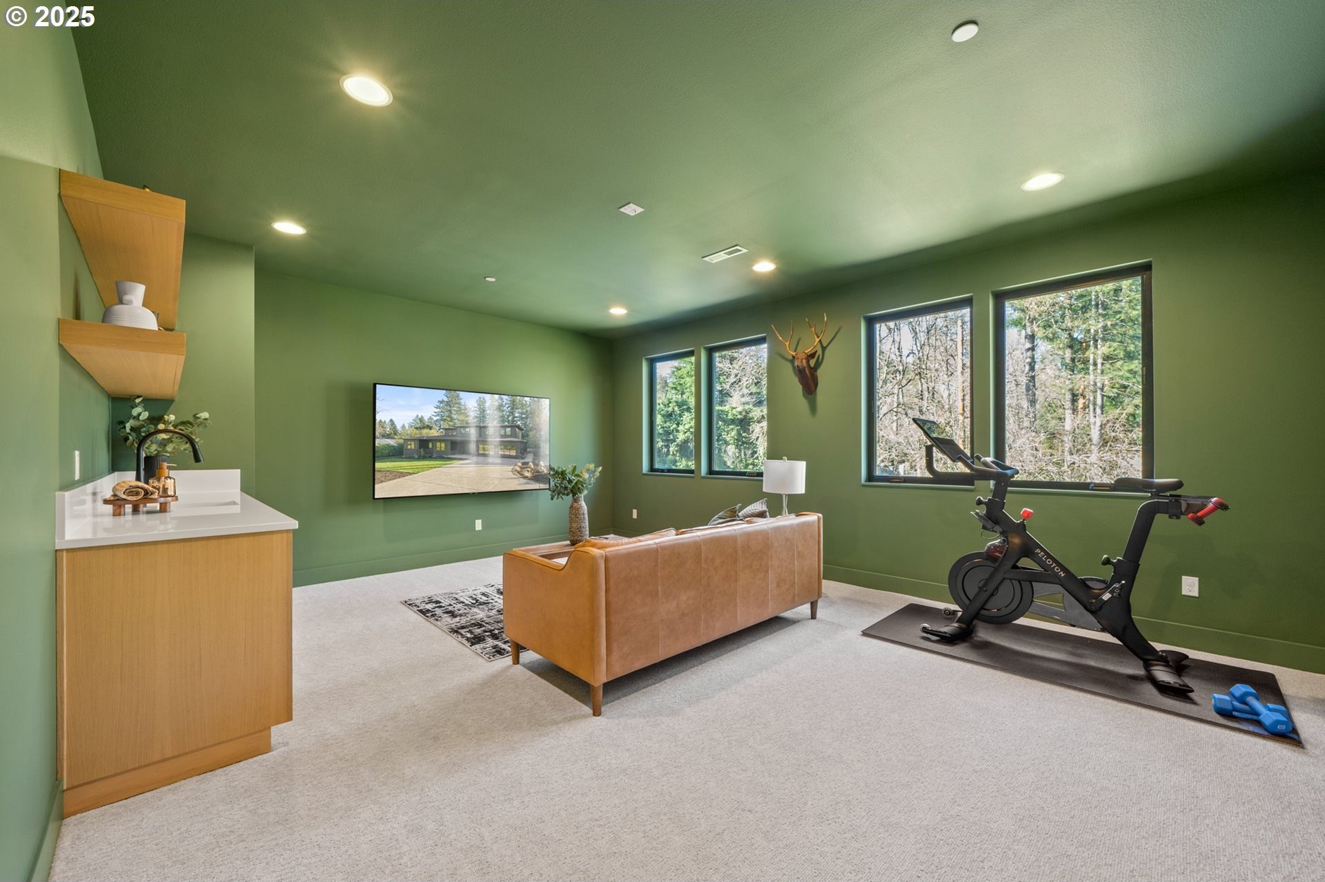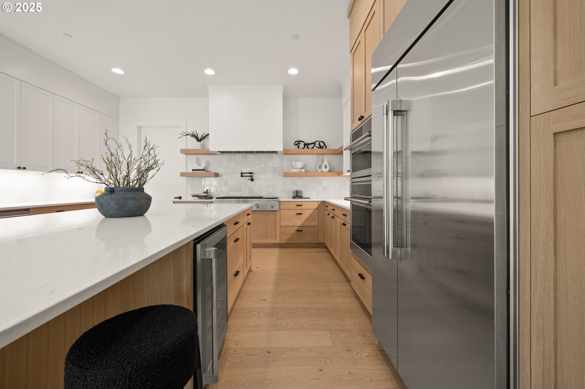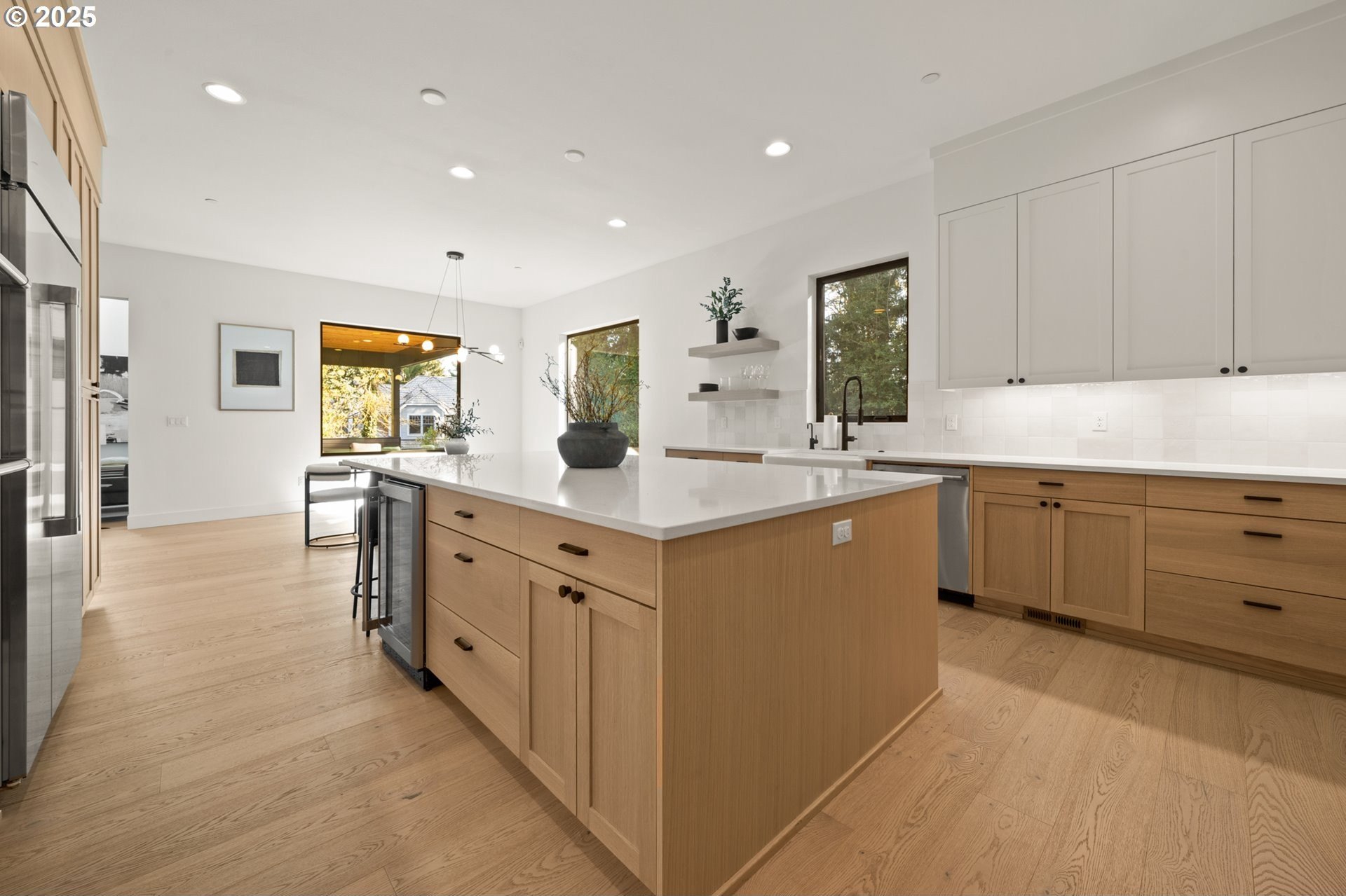 Tucked into the coveted First Highlands neighborhood, this newer custom build by notable Street of Dreams builder is a striking blend of minimalistic design and warm, organic elegance. Set on an ultra-rare 0.6-acre lot, the home offers unmatched privacy, a sprawling backyard with endless potential, and the quiet serenity of an elevated lifestyle. Step inside to soaring two-story ceilings in the great room, grounded by a stunning wood-burning masonry fireplace. The open-concept floor plan is intentionally designed with defined, yet open spaces including a sunken living room, custom white oak cabinetry, clean lines, and refined finishes throughout. A seamless indoor-outdoor flow leads to a covered outdoor living space, perfect for year-round enjoyment. The main floor offers highly desirable main-level living with both primary suite and guest room. Enjoy the versatility of dual home offices with built-ins, each thoughtfully positioned on the main level and the upper floor, offering separate work spaces. Upstairs, a lofted common area and expansive bonus room offer flexibility for media, fitness, or play. A statement of refined craftsmanship from a celebrated builder, this residence is surrounded by nature, beautifully situated on one of the neighborhood’s most exceptional lots.