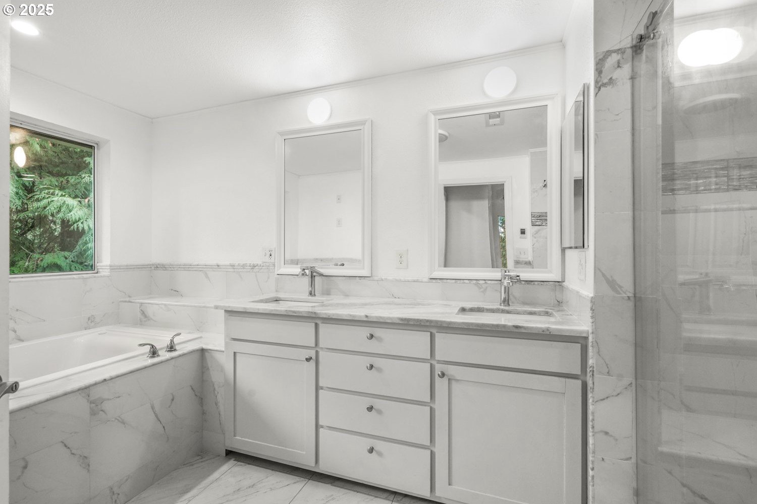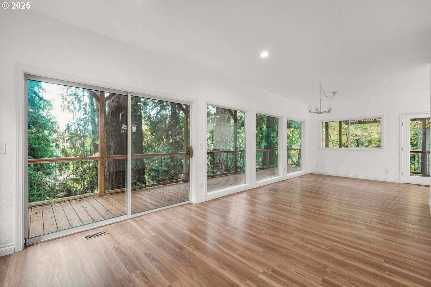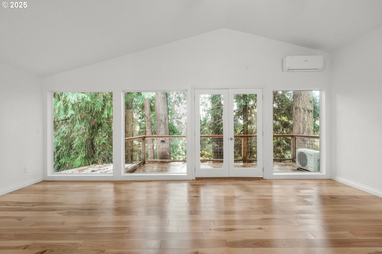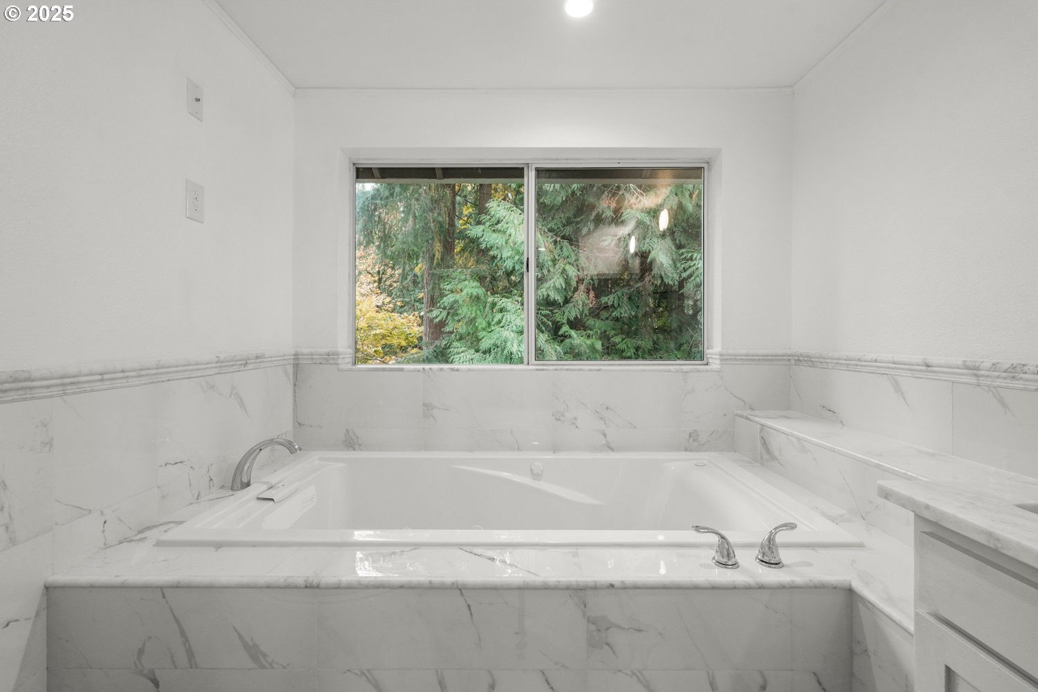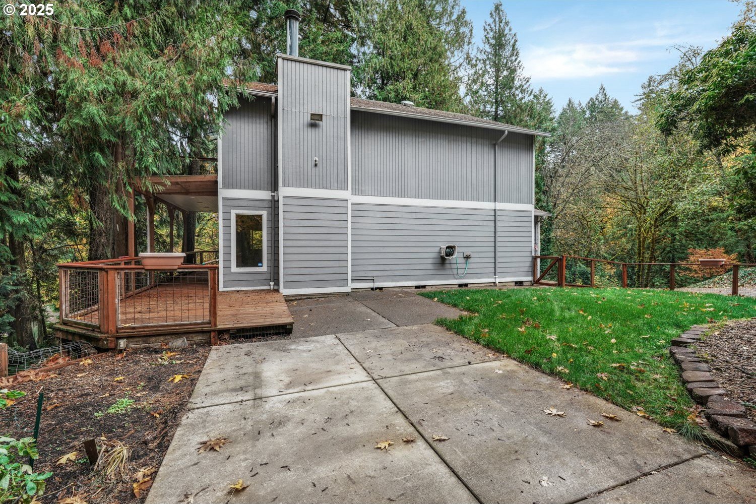 Beautifully updated home rests on a private, peaceful, wooded 0.32-acre lot and includes an adjoining 0.49-acre vacant parcel (zoned R10). The second tax lot adds incredible value with utilities already available at the street making it perfect for future development or enhancing your privacy. Buyers are encouraged to perform their own due diligence. This additional land provides outstanding flexibility to build a second residence, expand outdoor amenities, or simply enjoy the extra space and seclusion. Set among mature trees and vibrant greenery, the property exudes a peaceful, elevated ambiance. Inside, you'll find fresh interior paint throughout, a full remodel of the upper level, and new hardwood laminate flooring on the lower level. The open-concept floor plan creates a seamless flow between living areas. The spacious living room has a wall of windows showcasing the view, a cozy gas fireplace and sliding doors that lead to a large back deck overlooking the creek, making it ideal for both relaxation and entertaining. The modernized kitchen features quartz countertops, a stylish tile backsplash, refreshed cabinetry, a new sink, and a new stove, along with lots of storage and prep space. A glass door off the kitchen opens to a covered side deck that's perfect for year-round gatherings. Upstairs, the vaulted primary suite impresses with a wall of windows that frame stunning treetop views. The ensuite bathroom offers a spa-like retreat with a double vanity, jacuzzi tub, generous walk-in closet, and a luxurious walk-in shower with multiple shower heads. Two additional bedrooms, a remodeled guest bath, and a convenient laundry area complete the upper level.Additional highlights include a new gas furnace and central A/C installed in 2023. Located less than 10 minutes from local dining, golf courses, outdoor recreation, with easy access to the Springwater Corridor Trail, Powell Butte Nature Park, and Mt. Hood for hiking. Just 15 minutes to PDX. [Home Energy Score = 4. HES Report