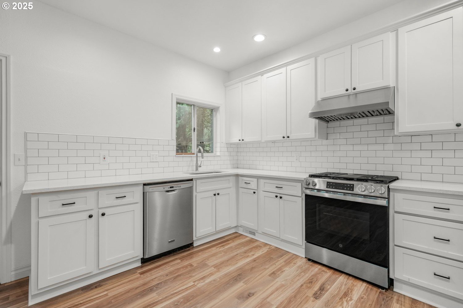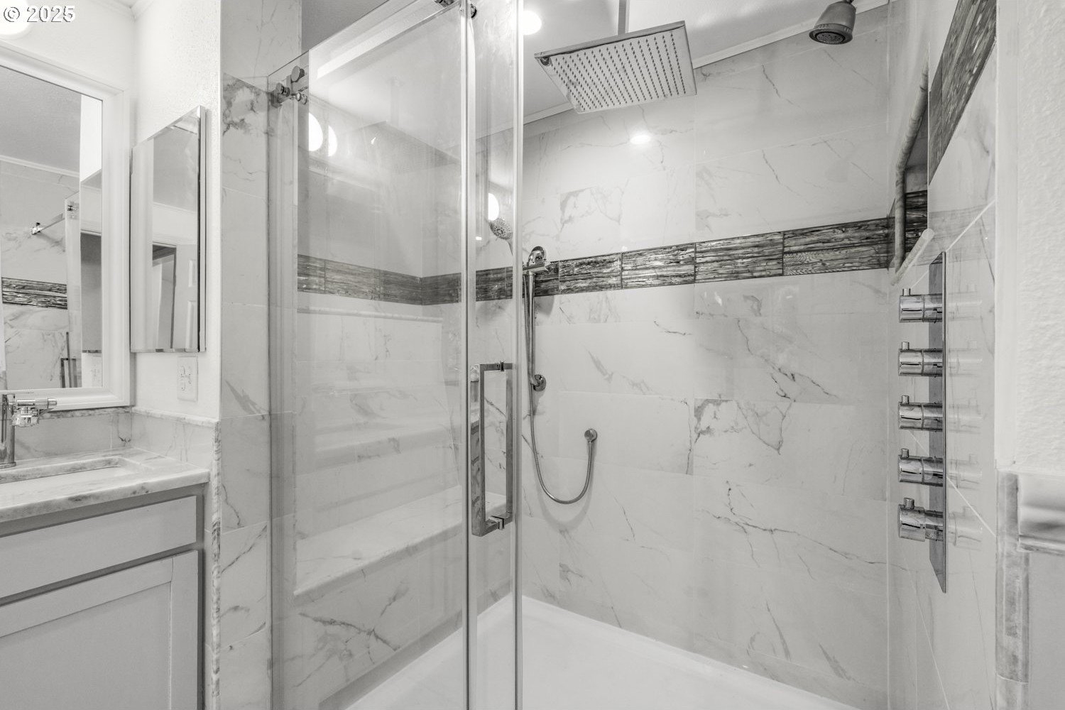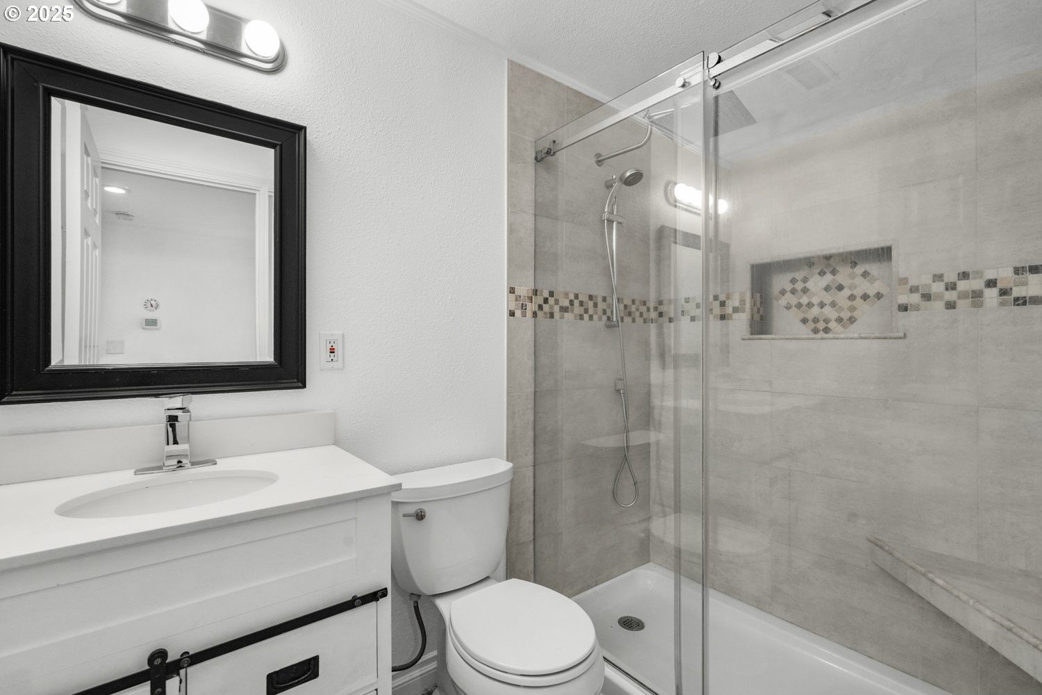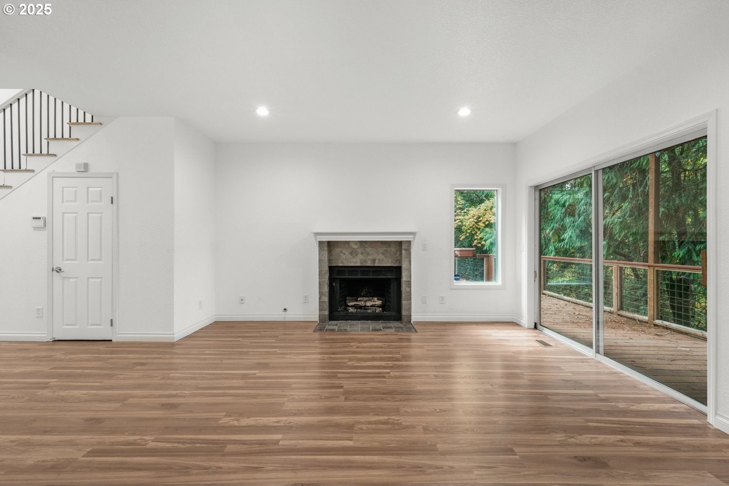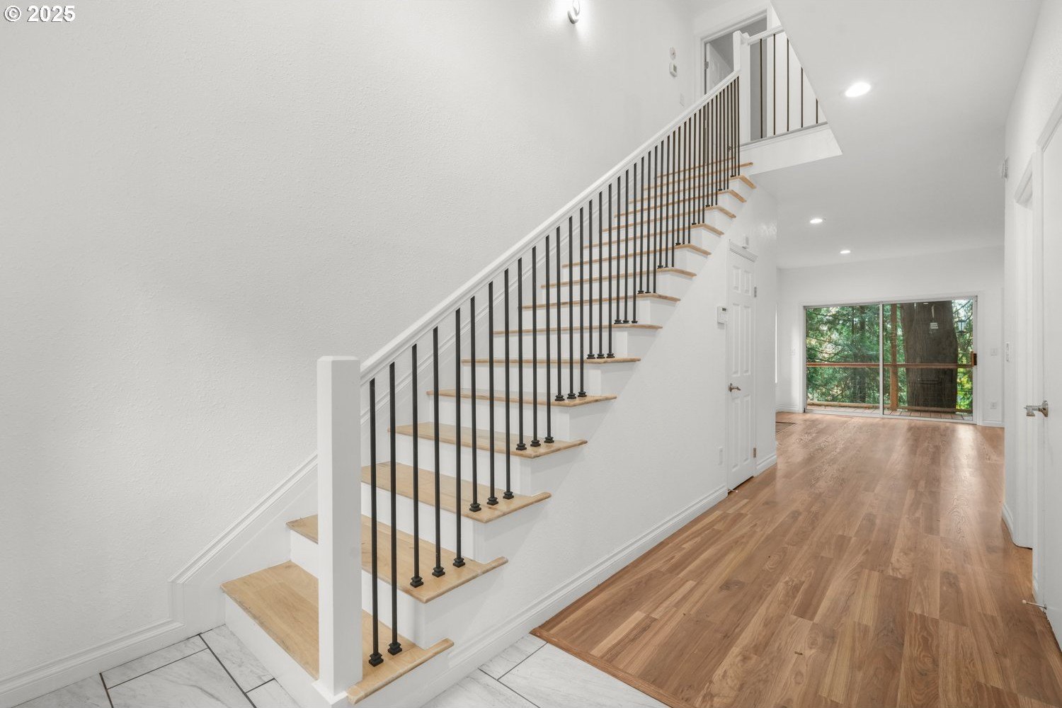 Beautifully updated home rests on a private, peaceful, wooded 0.32-acre lot and includes an adjoining 0.49-acre vacant parcel (zoned R10). The second tax lot adds incredible value with utilities already available at the street making it perfect for future development or enhancing your privacy. Buyers are encouraged to perform their own due diligence. This additional land provides outstanding flexibility to build a second residence, expand outdoor amenities, or simply enjoy the extra space and seclusion. Set among mature trees and vibrant greenery, the property exudes a peaceful, elevated ambiance. Inside, you'll find fresh interior paint throughout, a full remodel of the upper level, and new hardwood laminate flooring on the lower level. The open-concept floor plan creates a seamless flow between living areas. The spacious living room has a wall of windows showcasing the view, a cozy gas fireplace and sliding doors that lead to a large back deck overlooking the creek, making it ideal for both relaxation and entertaining. The modernized kitchen features quartz countertops, a stylish tile backsplash, refreshed cabinetry, a new sink, and a new stove, along with lots of storage and prep space. A glass door off the kitchen opens to a covered side deck that's perfect for year-round gatherings. Upstairs, the vaulted primary suite impresses with a wall of windows that frame stunning treetop views. The ensuite bathroom offers a spa-like retreat with a double vanity, jacuzzi tub, generous walk-in closet, and a luxurious walk-in shower with multiple shower heads. Two additional bedrooms, a remodeled guest bath, and a convenient laundry area complete the upper level.Additional highlights include a new gas furnace and central A/C installed in 2023. Located less than 10 minutes from local dining, golf courses, outdoor recreation, with easy access to the Springwater Corridor Trail, Powell Butte Nature Park, and Mt. Hood for hiking. Just 15 minutes to PDX. [Home Energy Score = 4. HES Report